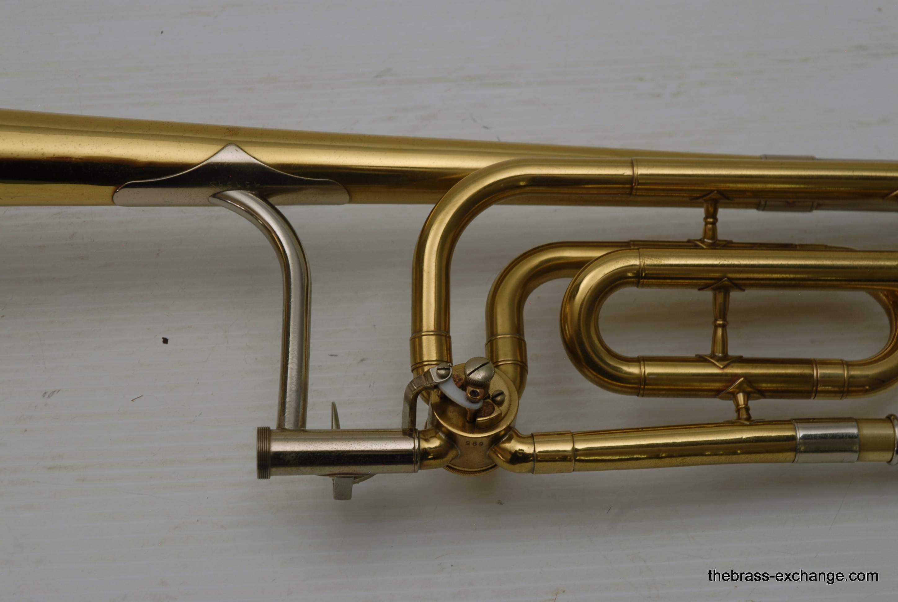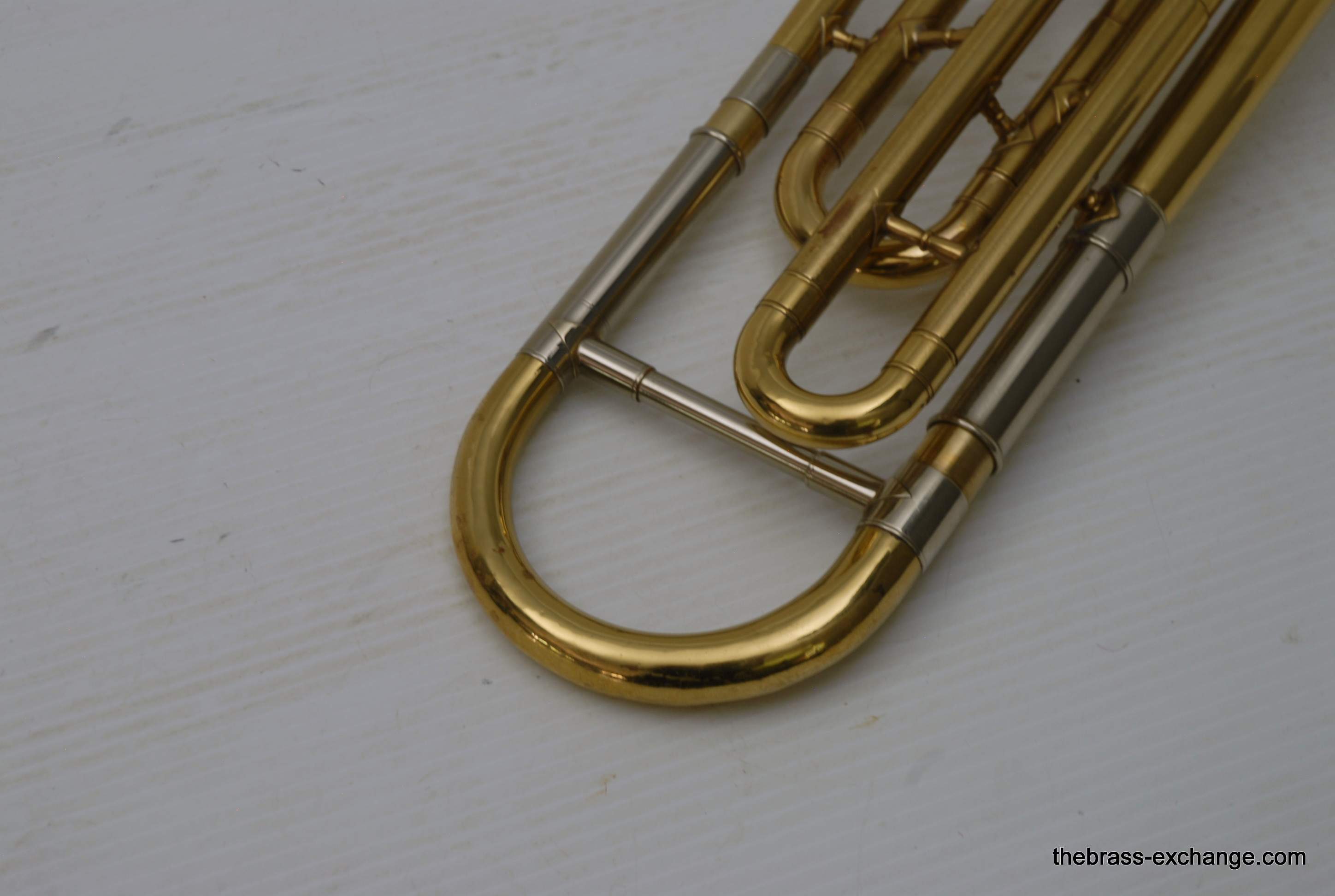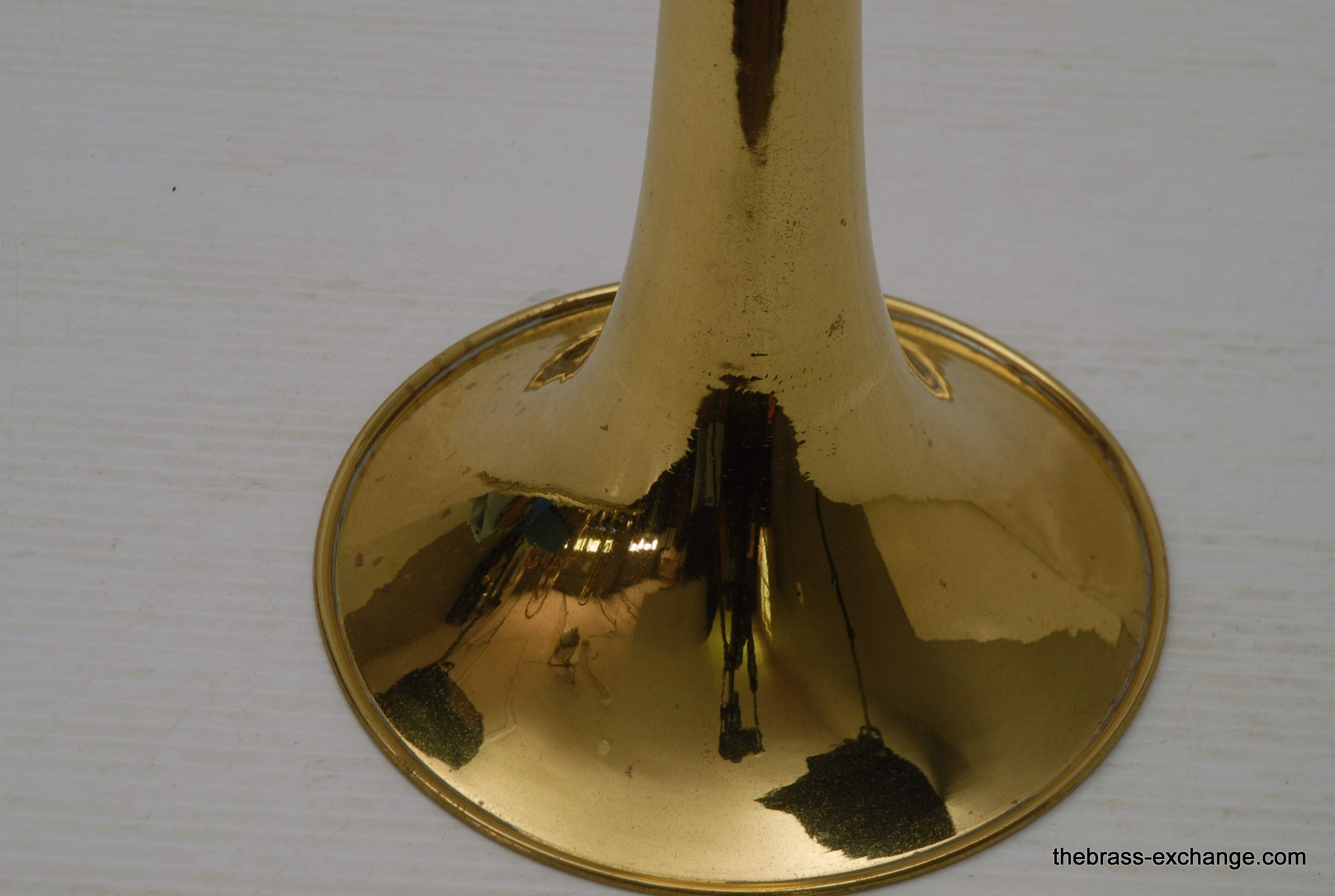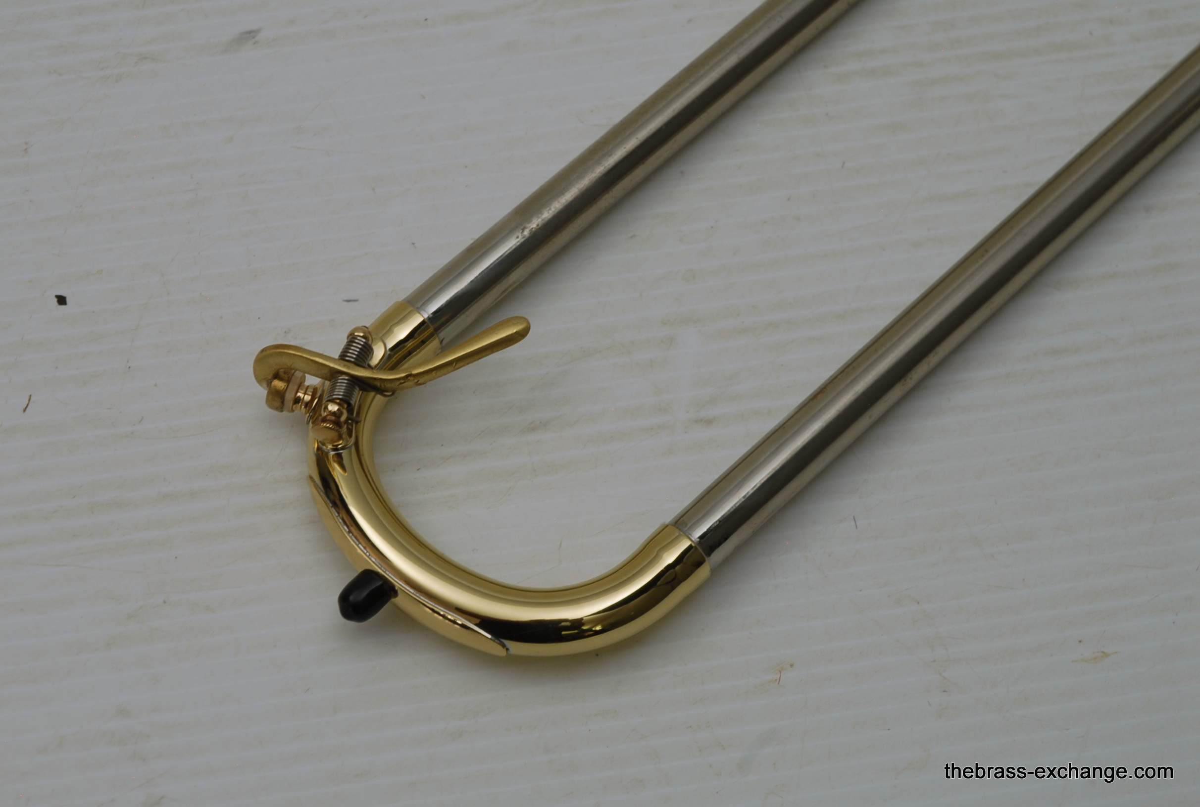 King 3BF Trombone, 1960's Make H.N. White Cleveland Era. Bell Section is H.N. White Era, Handslide is from mid 1970's. One of the most popular small bore tenor trombones of all time for jazz/commercial use. Straight bore .508, with 8" yellow brass bell. This 3BF has had full shop service including chemical bath and full once over. The original slide end crook had issues, so we replaced it. Hand slide is most likely not the original slide, as the SN 495XXX is from a 1970's 3B. Slide has proper alignment, straight tubes, and plays easily. Previous owner had the lacquer re-done over the entire instrument, although some of the lacquer has worn off. This is just an older 3B that has been played on a lot, but has many years of useful life ahead. Includes a King 4B case, about the same weight as the regular coffin style, just a different shape, fits well no problem. No service needs to improve playability.
