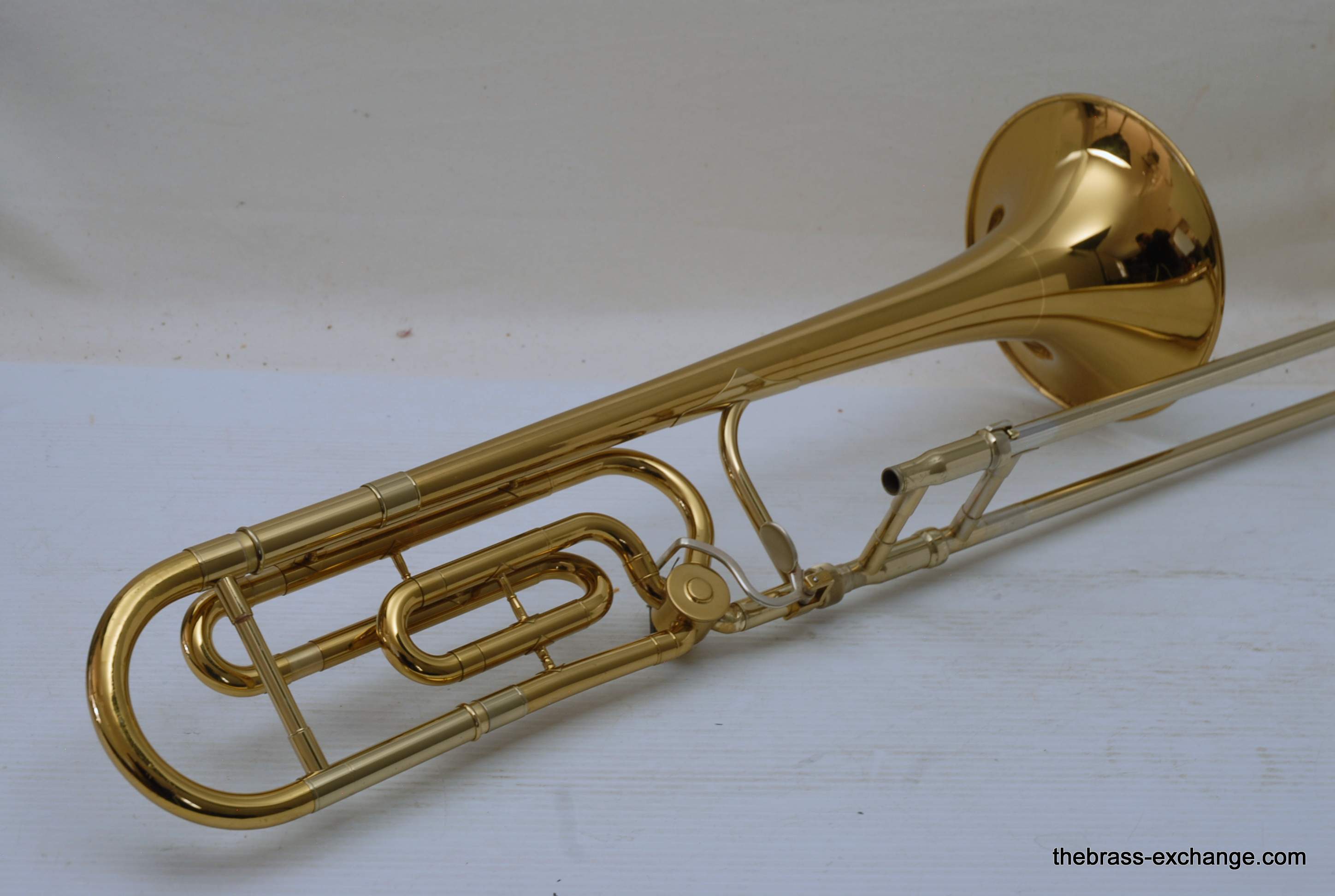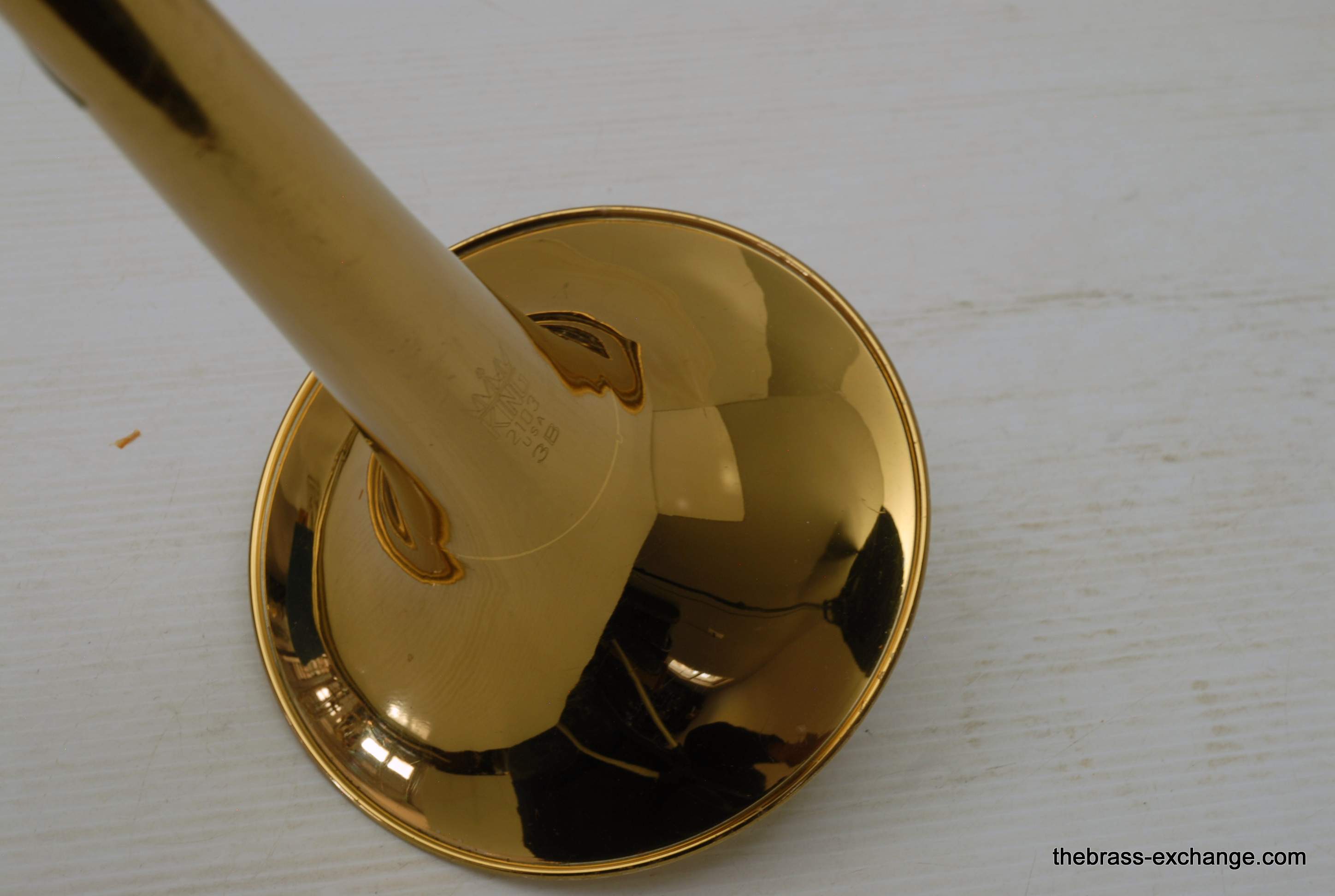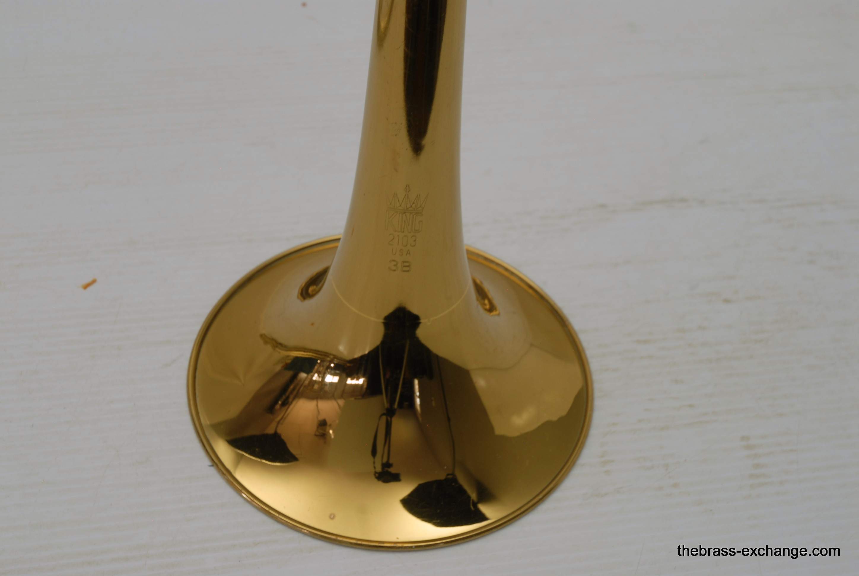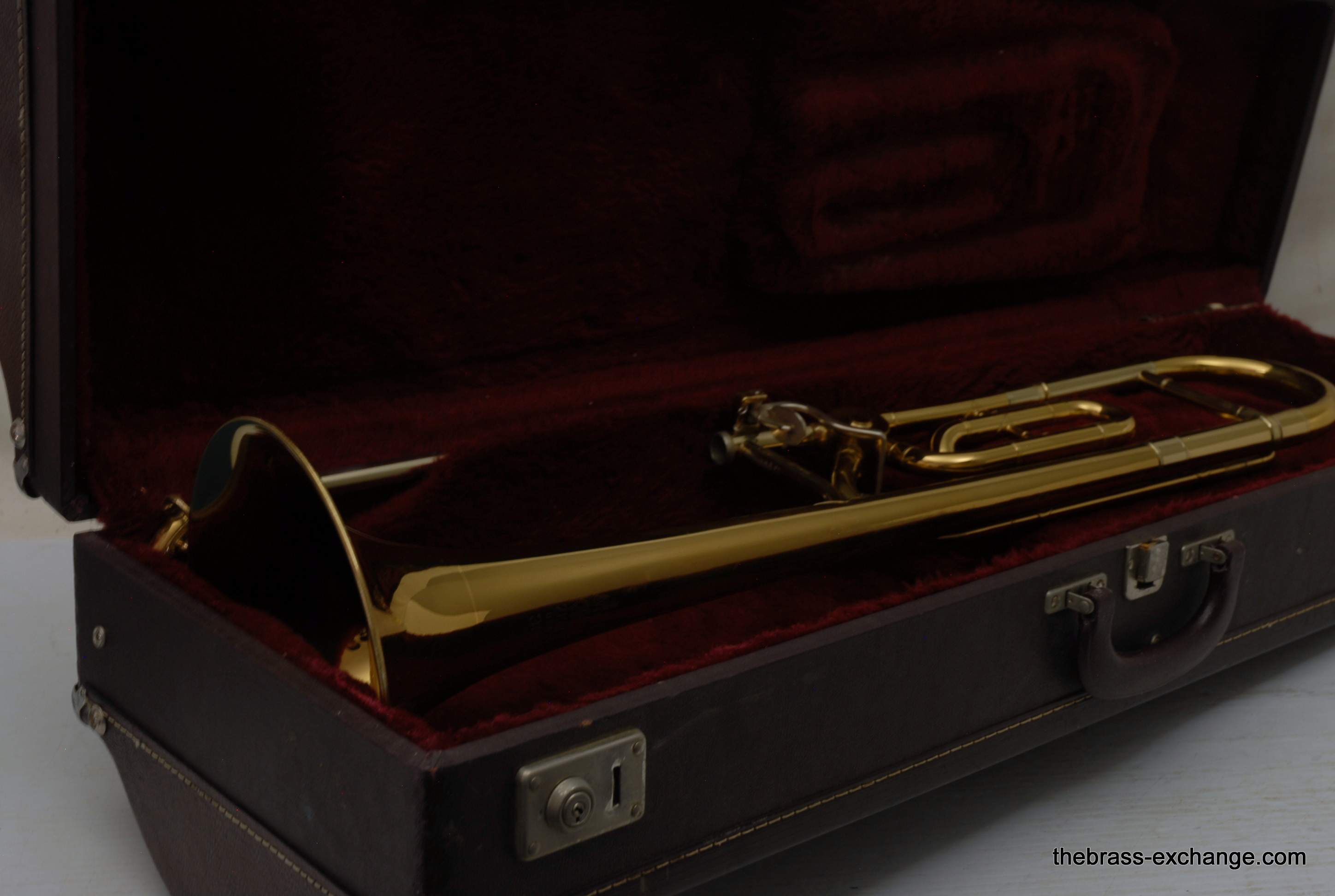 King 3BF Model 2103 from the mid 1980’s. This is a single owner horn. Well cared for and never damaged. Is in excellent playing condition. Has had full shop service here including chemical bath. No dents, dings, or issues with slide, valve or playability. All original parts and lacquer. Has gorgeous appearance. Has the classic 3B sound, it’s hard to beat the pure sound of a nice 3B when played proper. This one has an F attachment. Some 3B guys prefer a straight version without F. But, I know plenty of pro players that love the 3B with F. Yes, jazz guys included. This would be an ideal choice for a HS or College player that is most interested in Jazz band, but also has to play in symphonic band, but doesn’t want to go between large bore and small bore. This horn will do it all. If you want it to play bigger, simply put in a bigger mouthpiece. Bach in the 80’s King would ship this model with a 12C. Today we think a 12C is a little small in general. But, there is no reason why you couldn’t use 11C, 7C, 6.5, even 5G. Original case in excellent condition. In stock for immediate delivery. Mouthpiece not included.