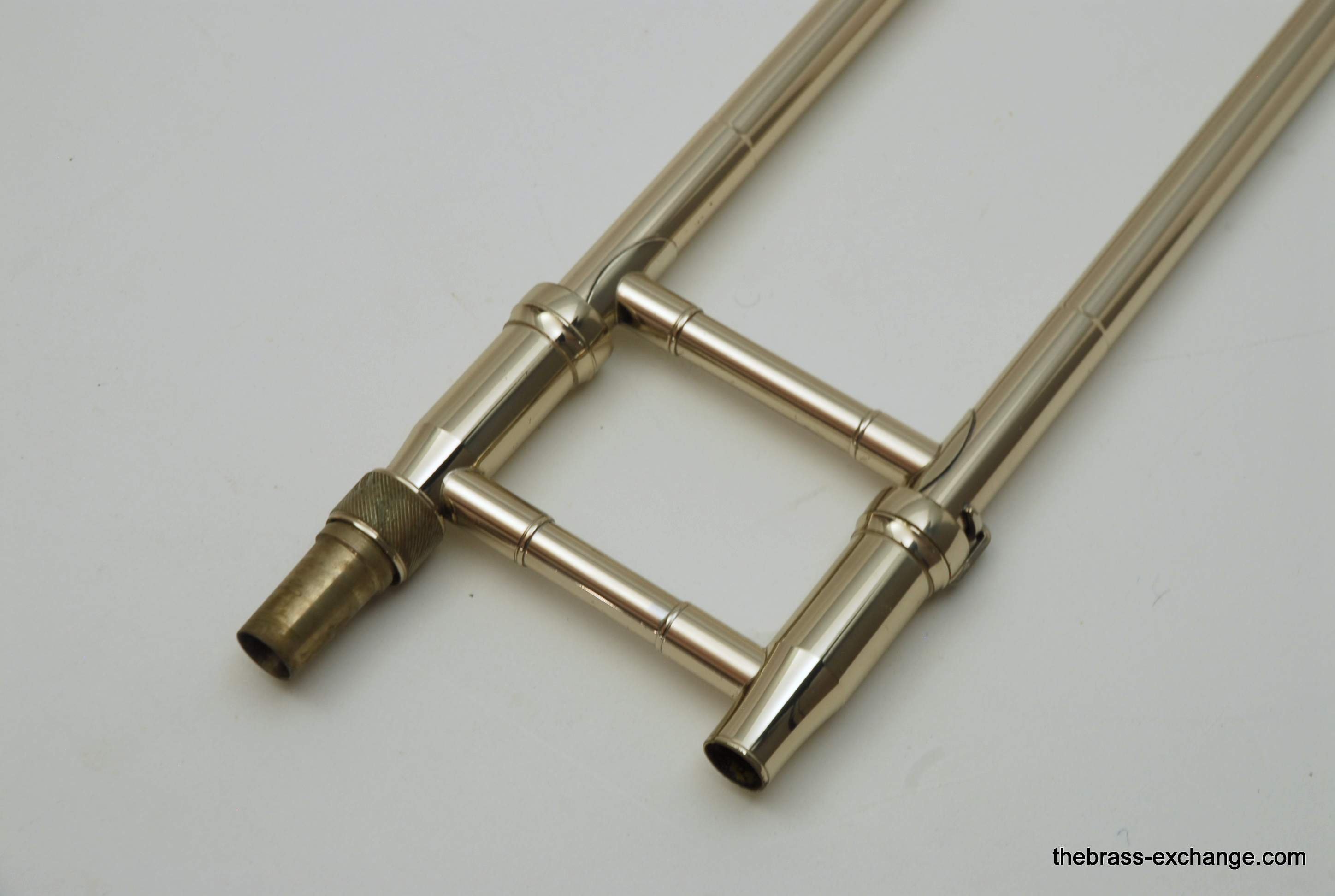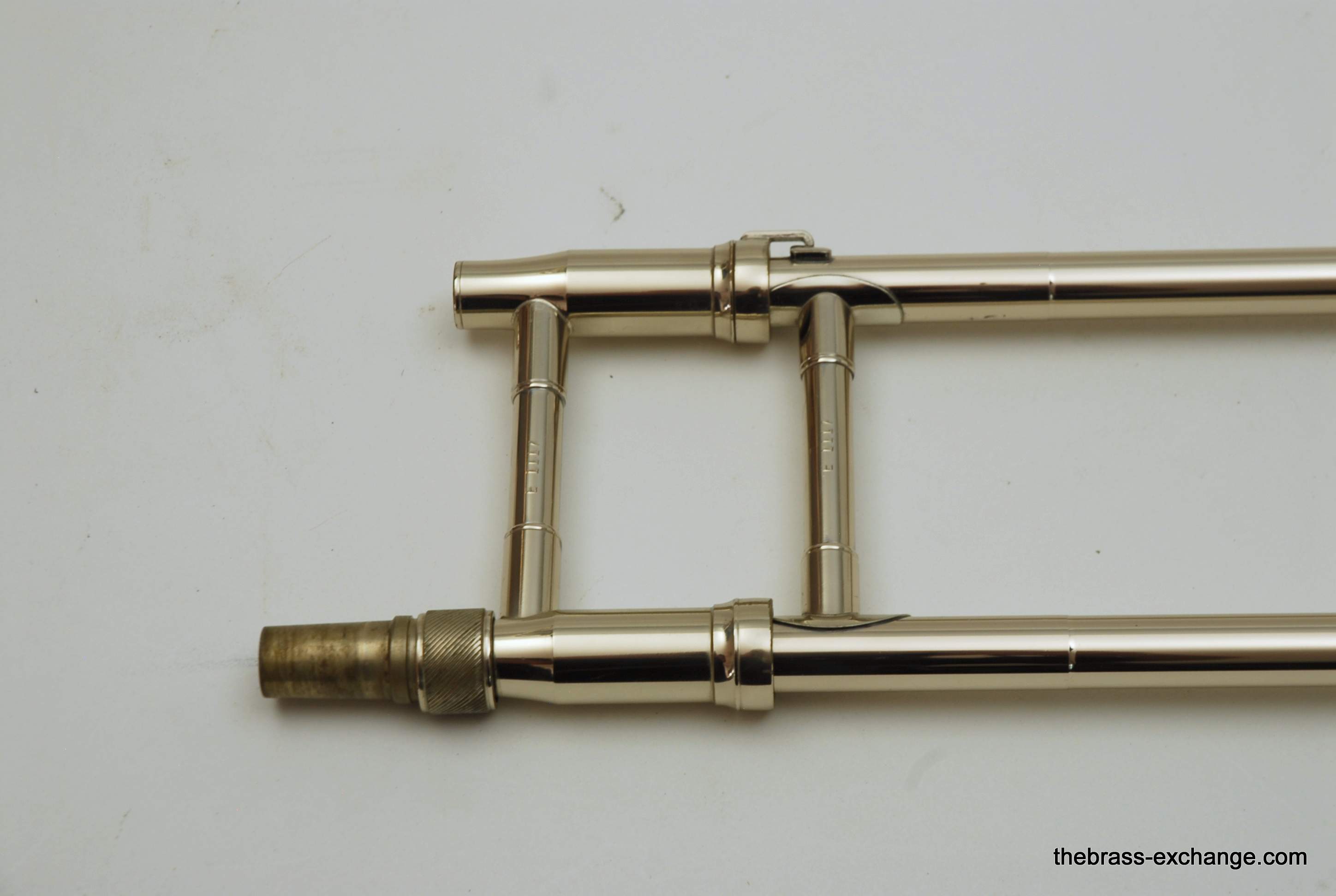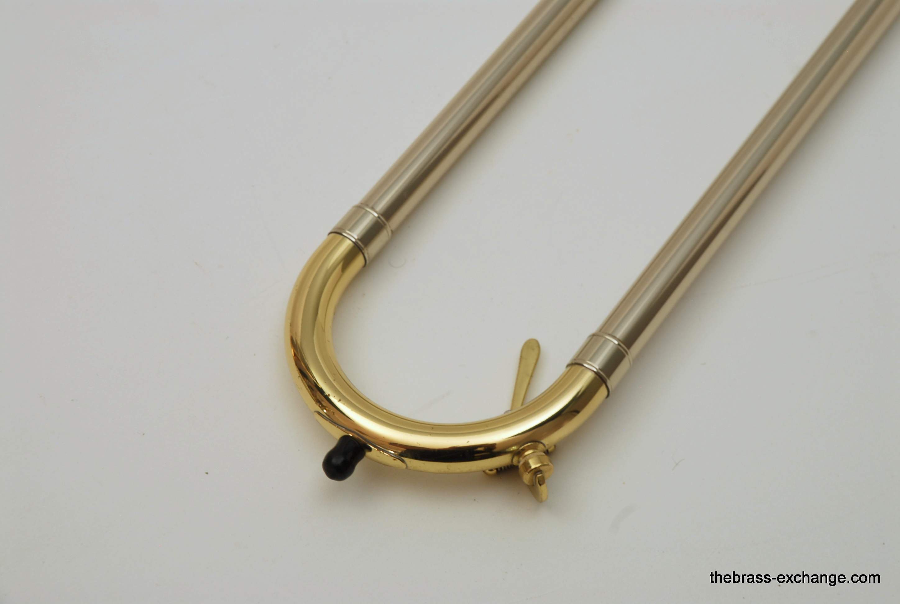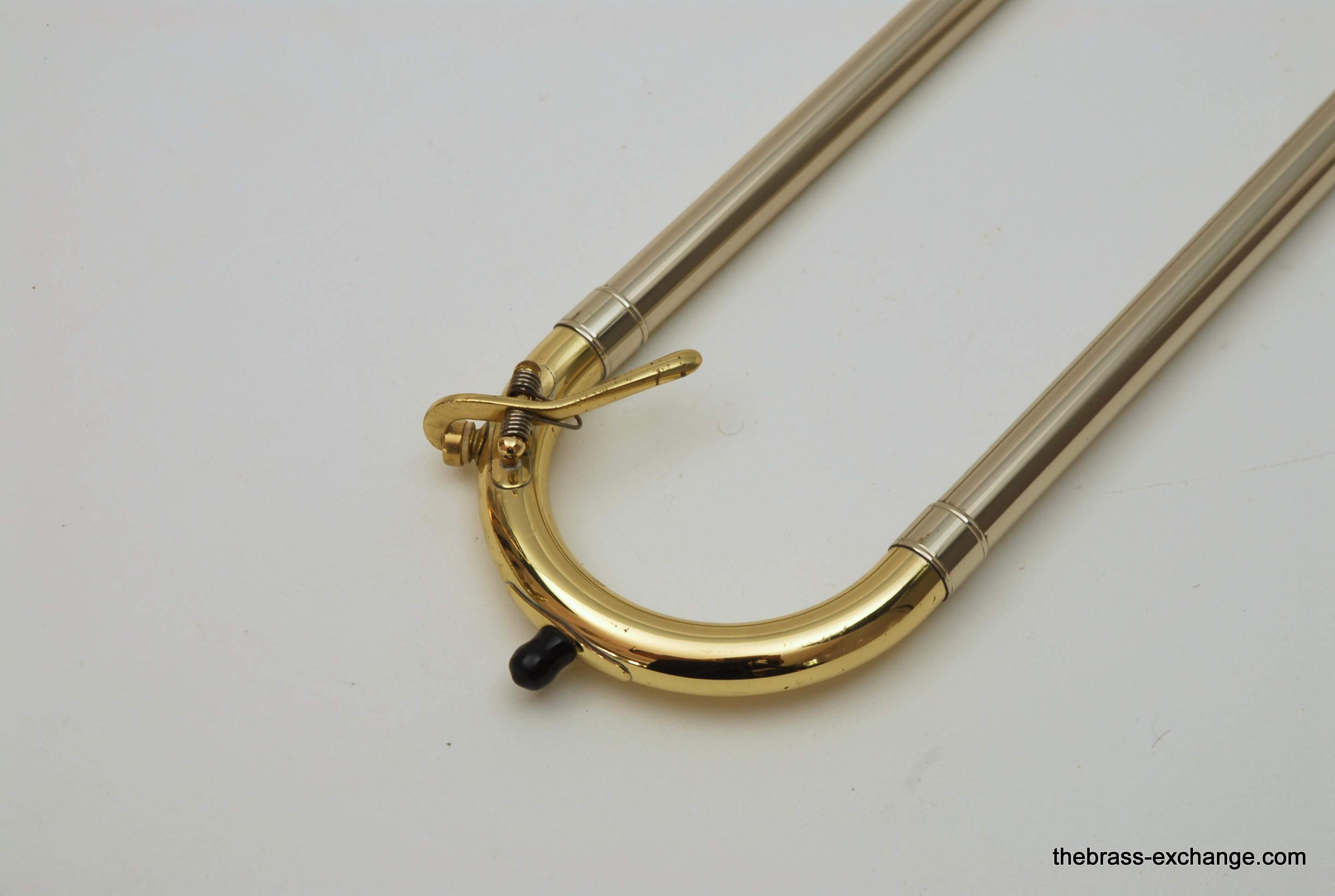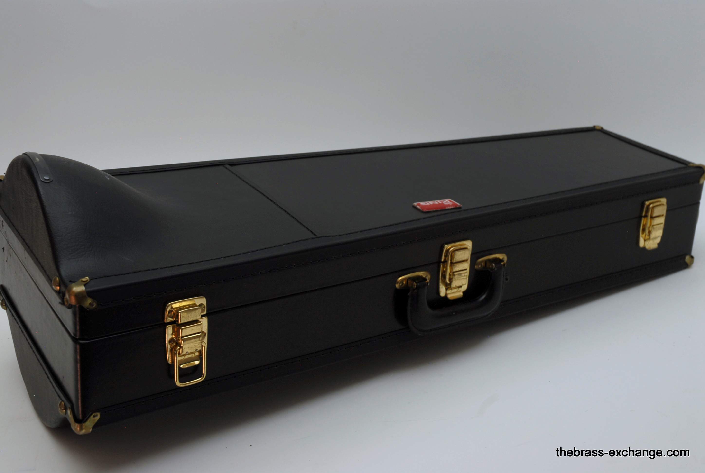 King 4B-G Model 2104.  Pre-owned, in excellent condition.  Plays perfectly, no prior damage or repairs, has a fantastic slide.  Is approximately 10 years old.  Has 8.5" gold brass bell, .547 bore nickel silver slide.  Plays with a lot of warmth, as you would expect with gold brass, gorgeous sound.  Takes standard large shank mouthpiece, not included.  Original case in excellent condition.  Would be a fantastic all around tenor for any player that wants a large horn but no F attachment.  Would also be a great large tenor Jazz Trombone.  This model sells new today for over $3000, with limited availability.