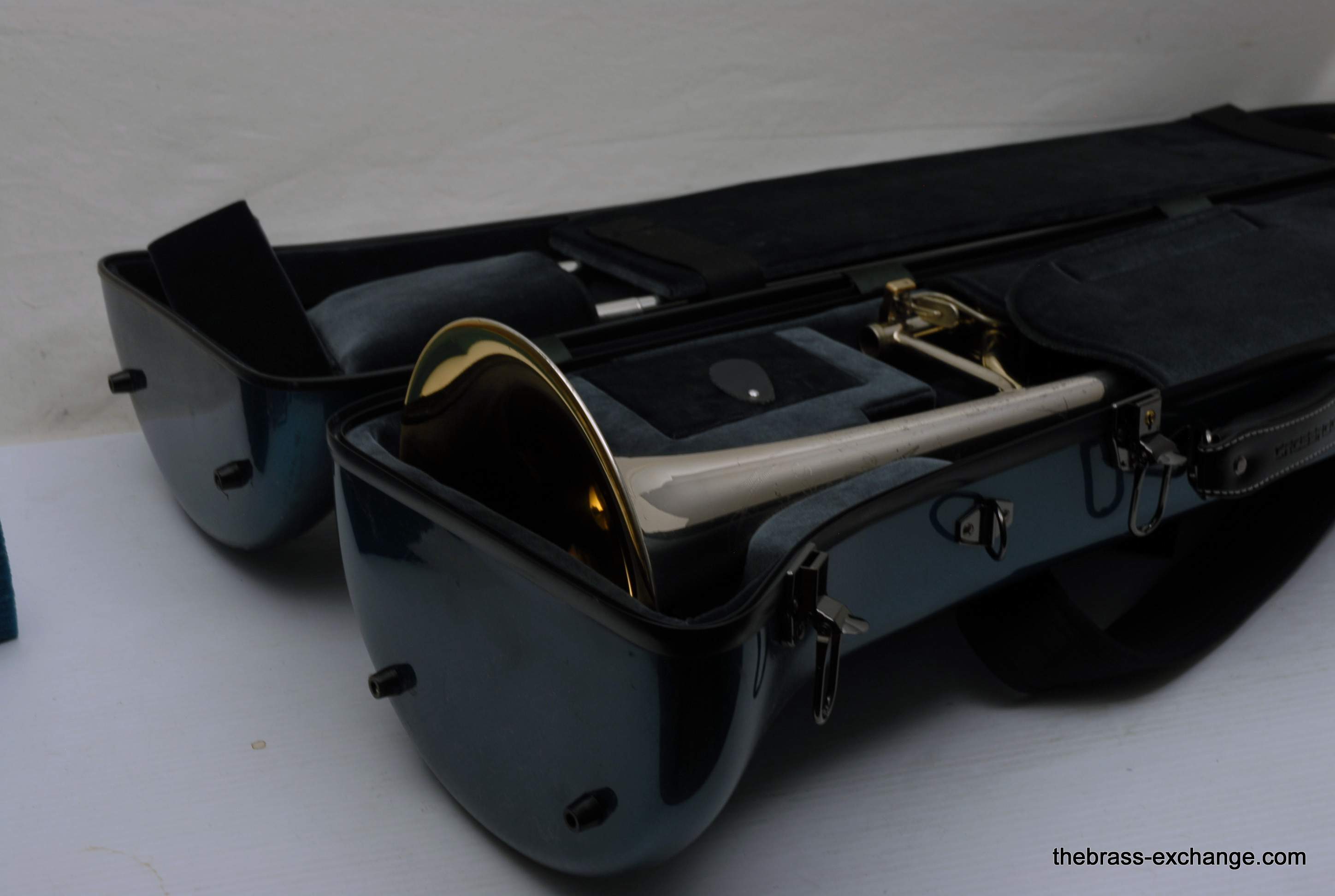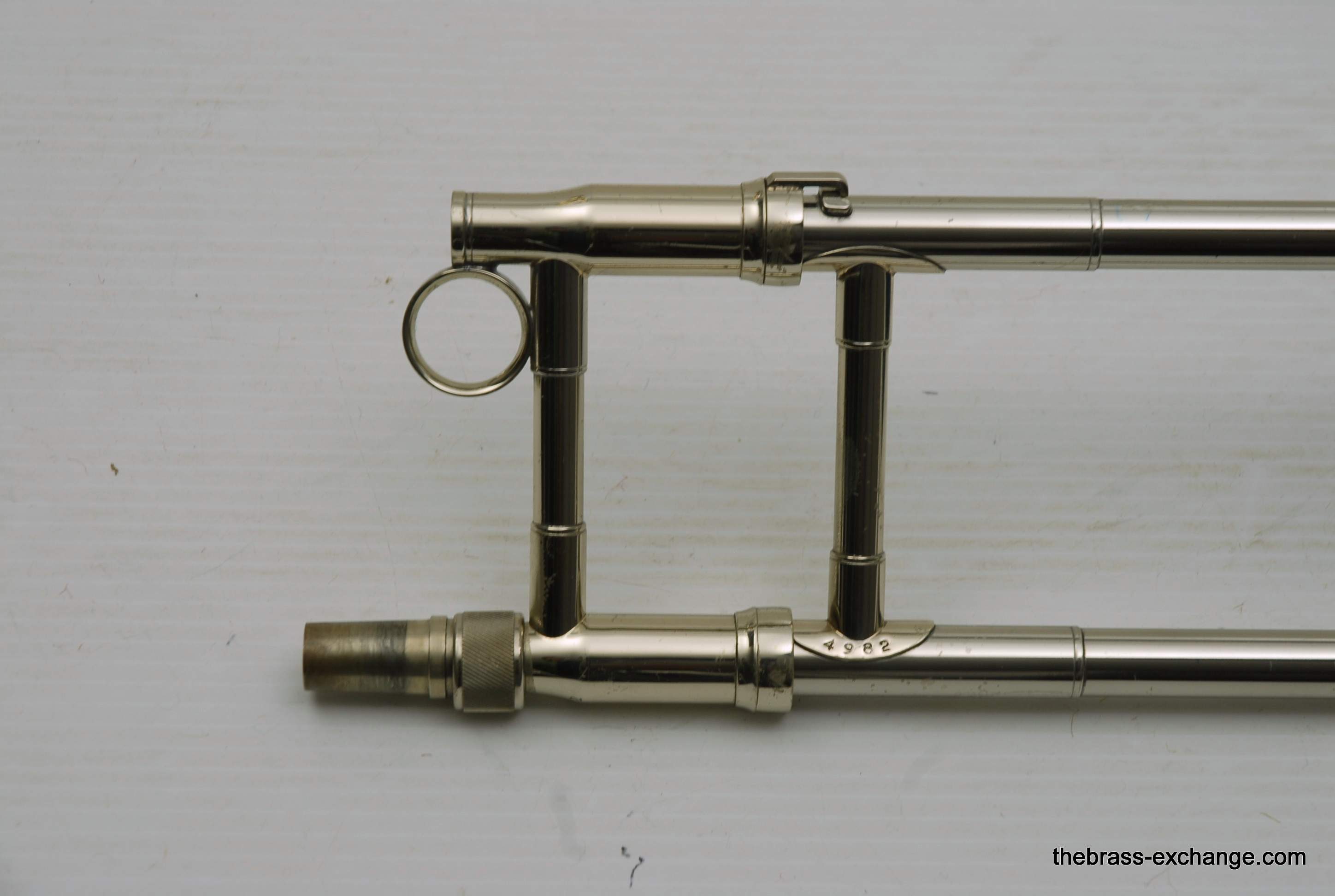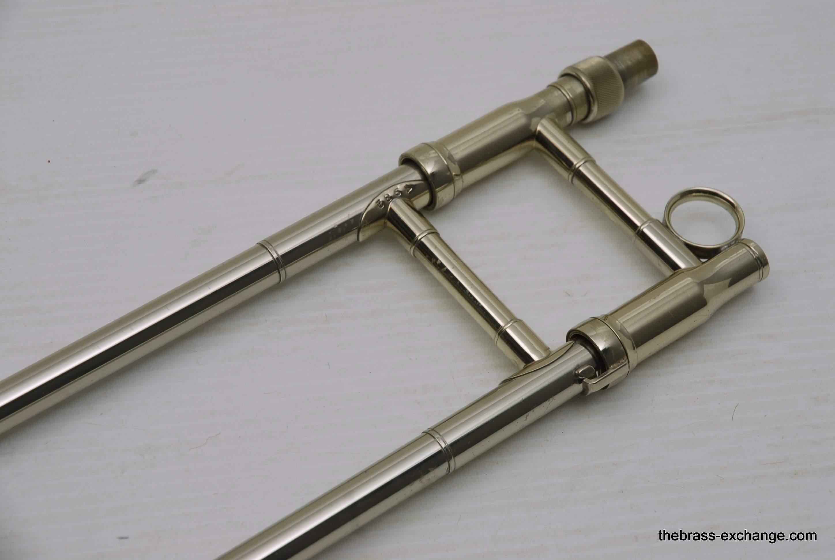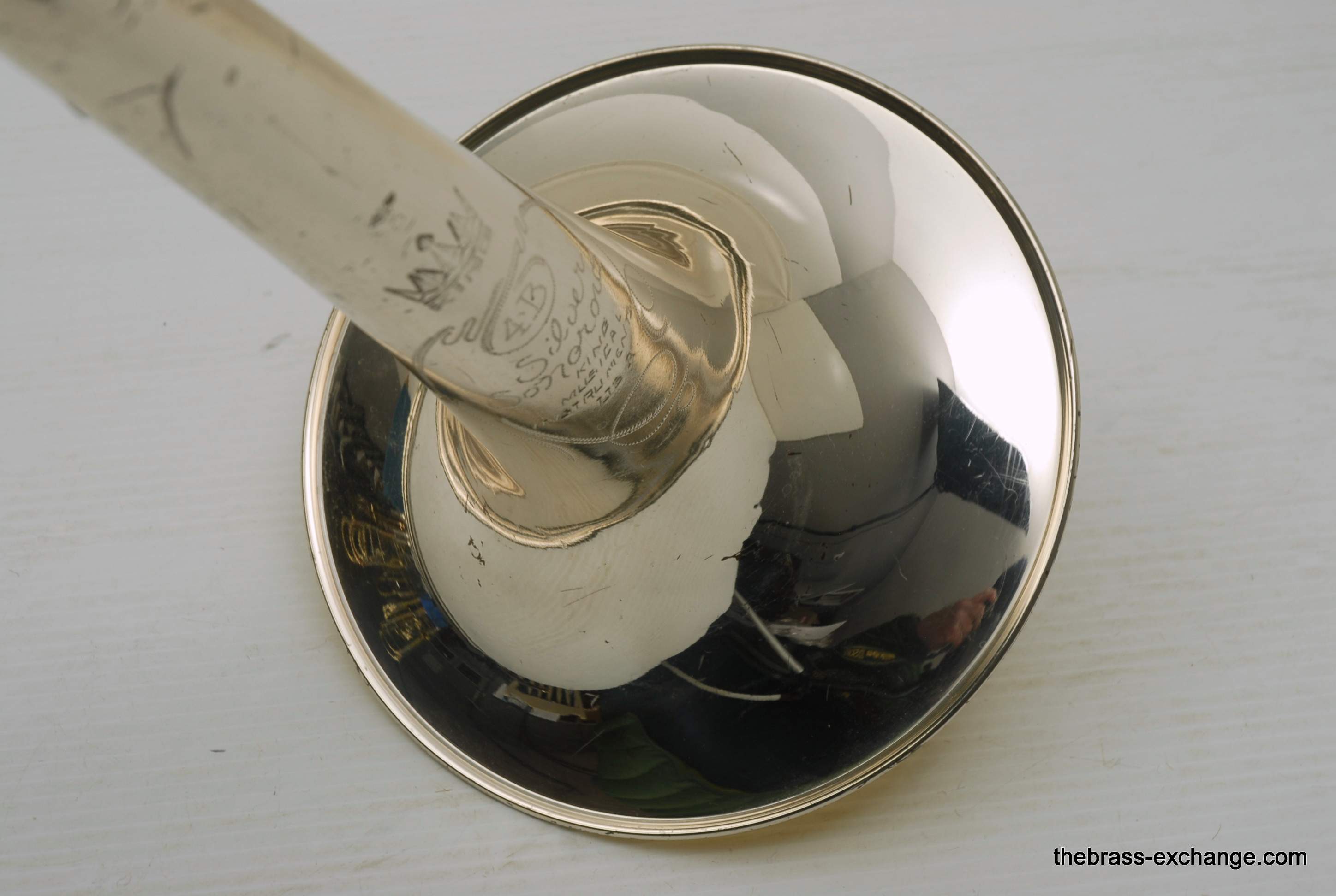 King 4B Silversonic Sonorous.   Classic Sterling Silver King 4B Silversonic.  Has 8.5" Sterling Silver Bell with Gold Plating on inner bell.  Traditional Rotor.  Lightweight Nickel Silver Handslide .547 Bore for large shank mouthpiece.  This instrument is in excellent playing condition and has an excellent without defects.  No previous damage or repairs.  Some lacquer wear but not bad.  Is still a very attractive instrument.  Enormous Energy out front with Sterling silver.  Sound carries with outstanding forward projection.  True pitches, and slots easily.  Would be an excellent choice for any player looking to play a large bore sterling silver horn.  King no longer offers the 4B Model in Sterling.  But, if they did, you would get an upcharge of $1600 for Sterling, because this is exactly what they do today on the 3B model.  Current price for a new Brass 4BF is over $3400, add a $1600 upcharge and you are at 5K.  No wonder they don't offer it any longer.  This one comes with a new fiberglass Crossrock Case, Blue, these sell new in the $350-400 range.  In-stock for immediate delivery.