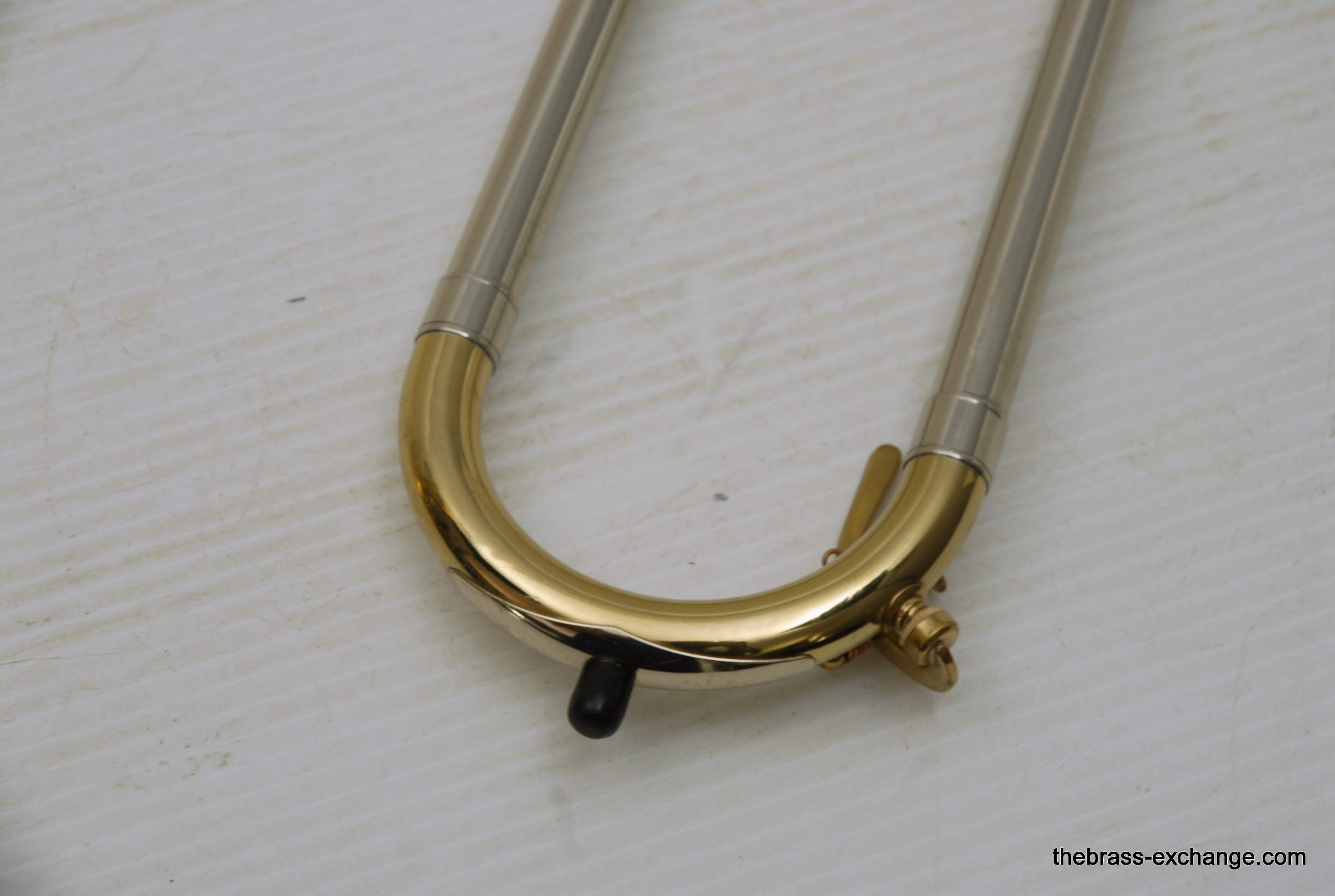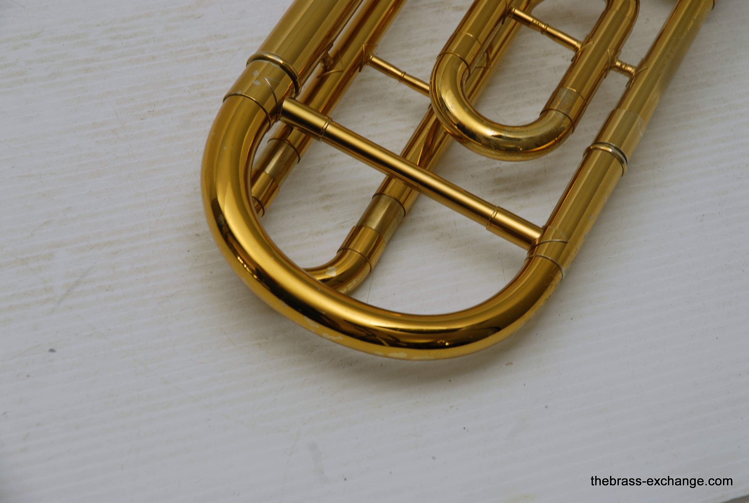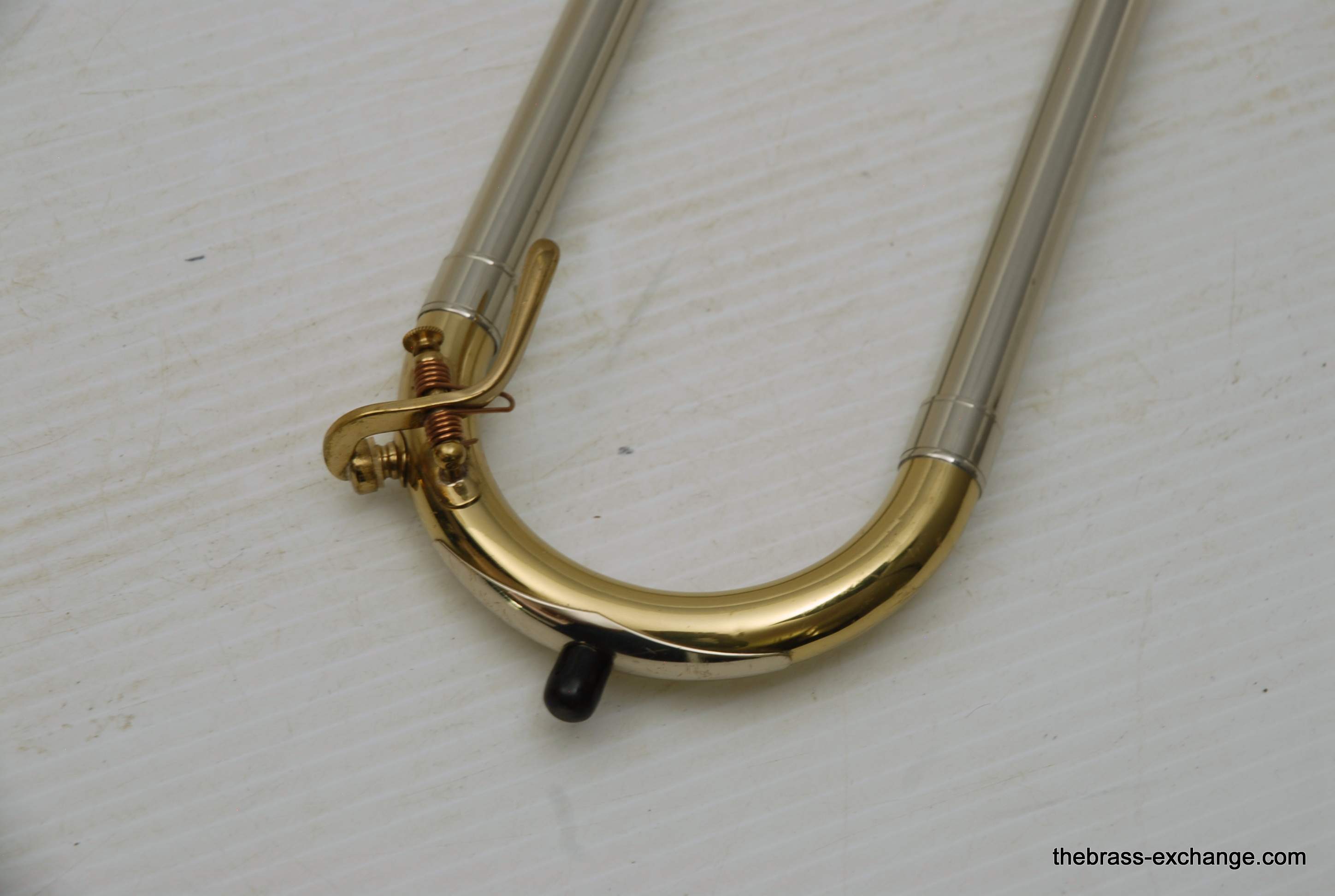 The horn features the traditional-wrap rotary F-attachment, a .547-bore nickel-silver handslide, and an 8.5″ yellow-brass bell with the distinctive ropy-style King engraving used during this period. Its warm yet projecting tone made it a trusted all-around large-bore tenor for band, orchestra, and small-group work. Many players still regard the 1970’s King 4BF as one of the most versatile professional-grade tenors ever built.
