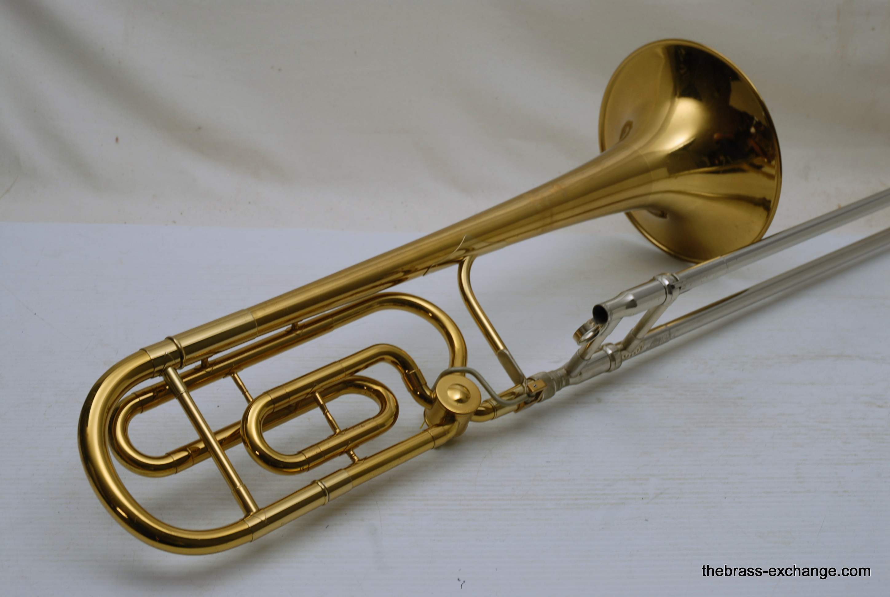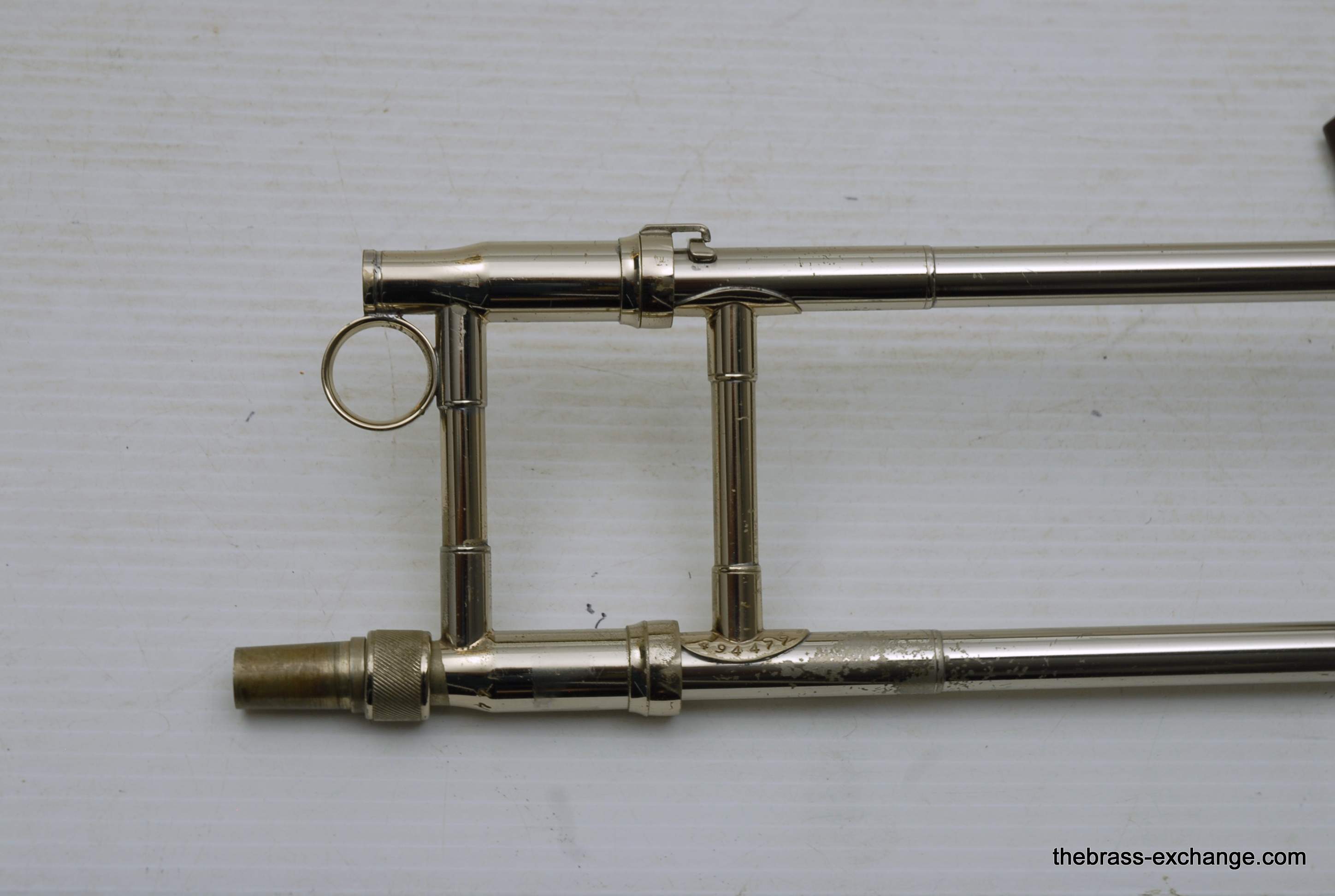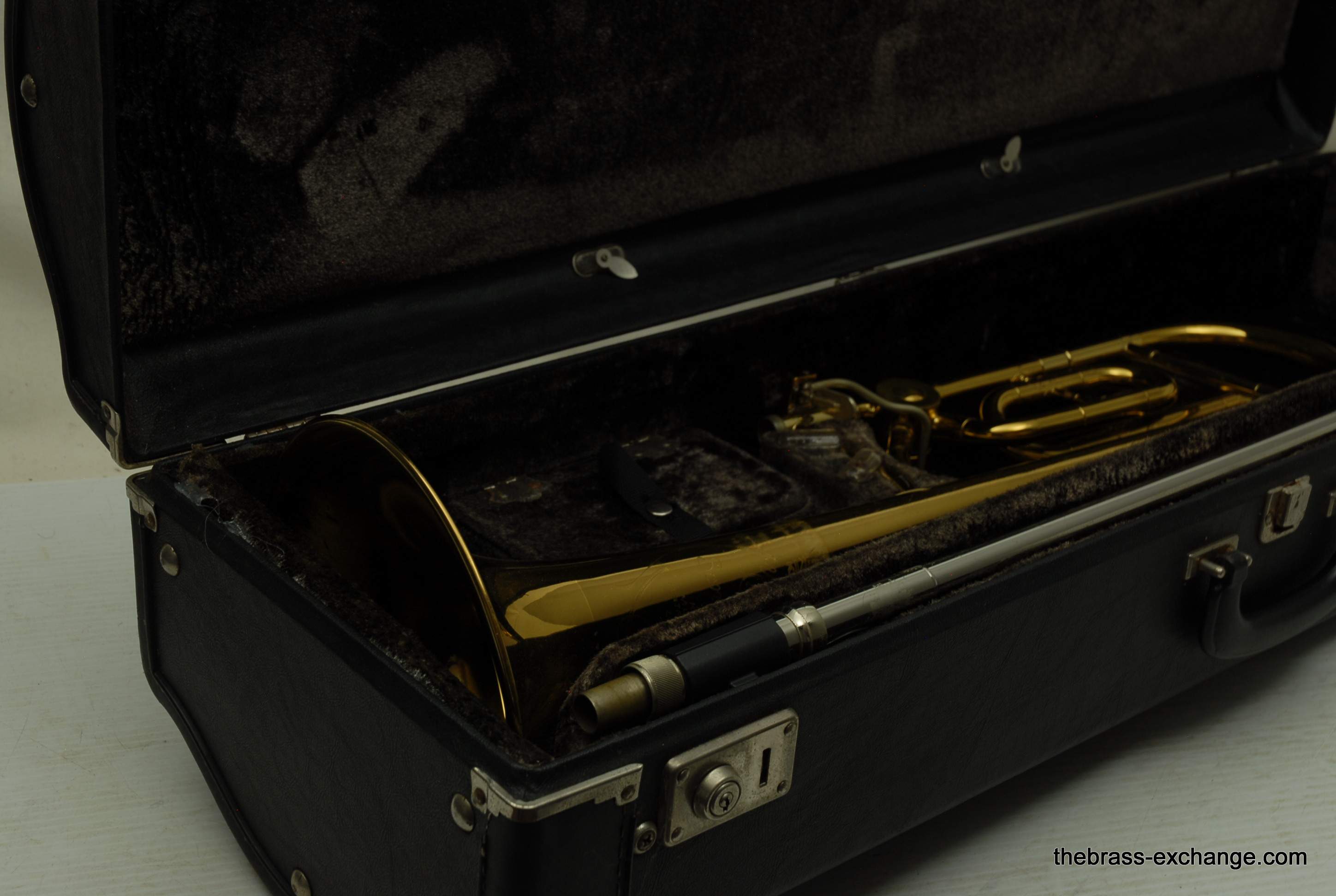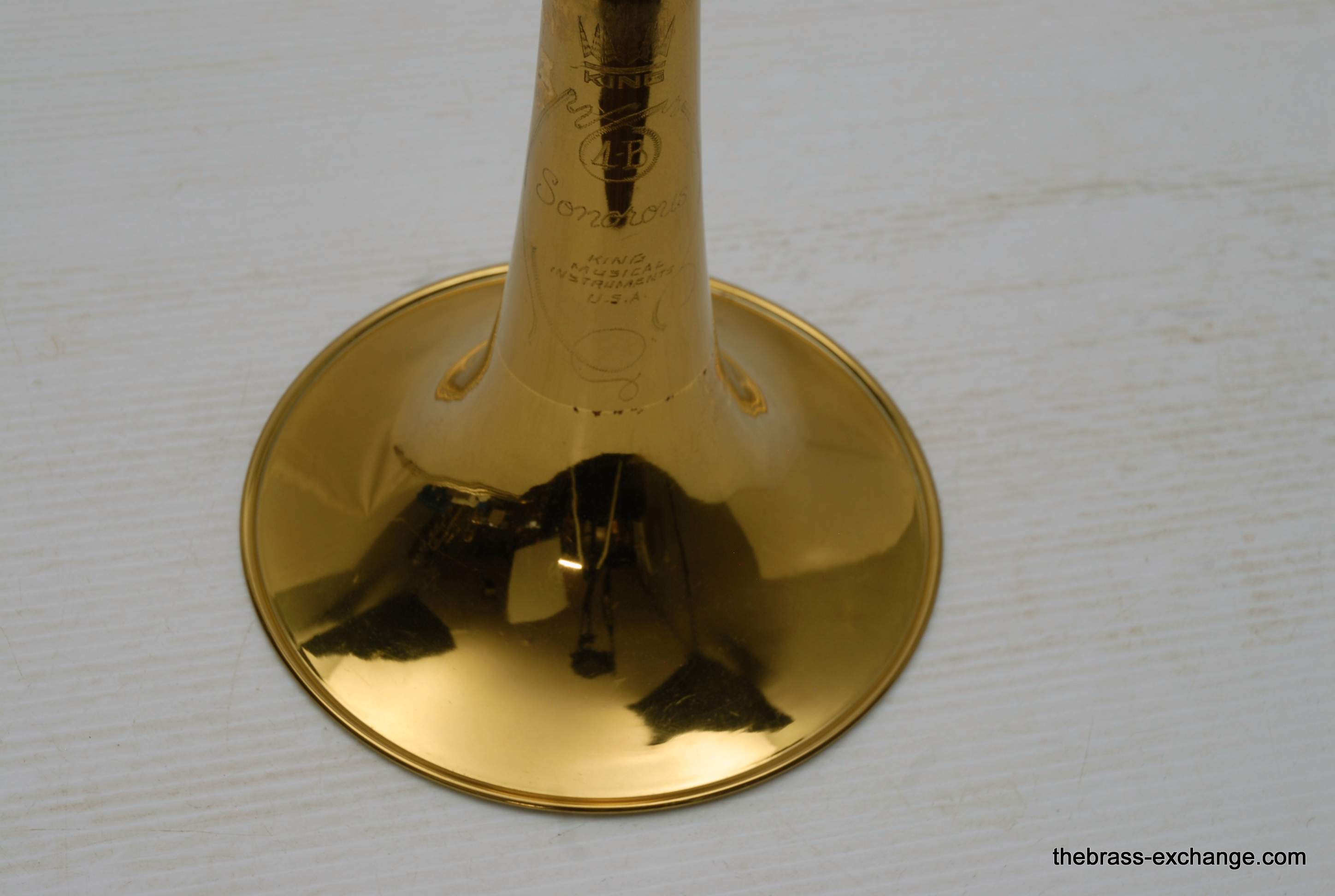 King 4B with F attachment.  Early 1970's Make SN 494477.  All original parts and lacquer.  Has 8.5" yellow brass bell, .547 nickel silver handslide, takes large shank mouthpiece.  This is a classic model that many great players started their large tenor playing on.  This one is super clean and has been serviced.  No issues or need for additional service. It plays proper and will no disappoint.  King small bore guys like 2B-3B that need an occasional large bore with F, will take to this horn instantly.  Has original case.  In-stock for immediate delivery.