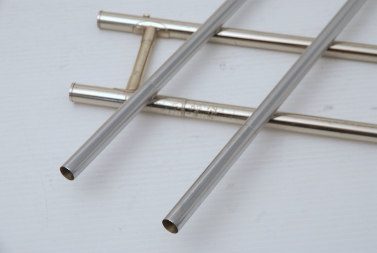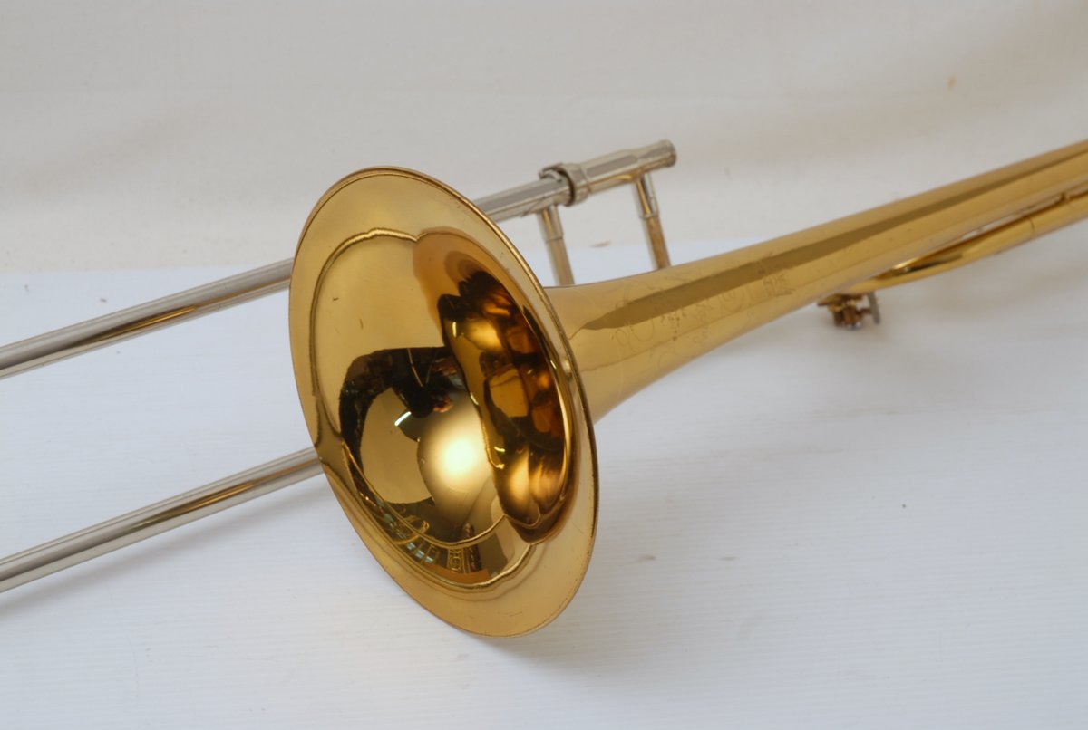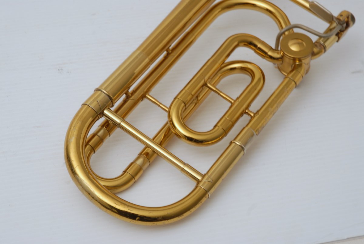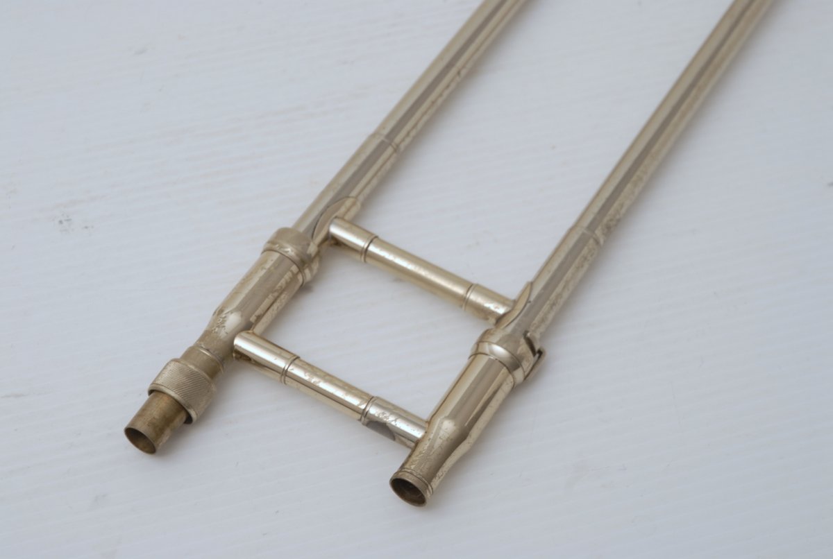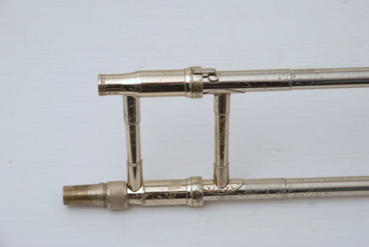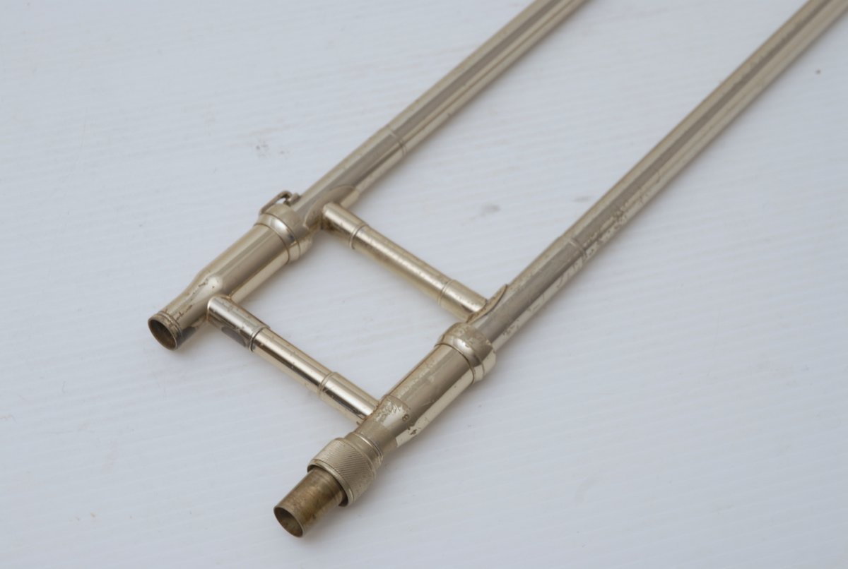 Before sale, it received recent cleaning and mechanical service at The Brass Exchange. The handslide operated smoothly and reliably, and the instrument played well following preparation. A non-original Benge case in very good condition was included along with mouthpiece and basic lubricants.