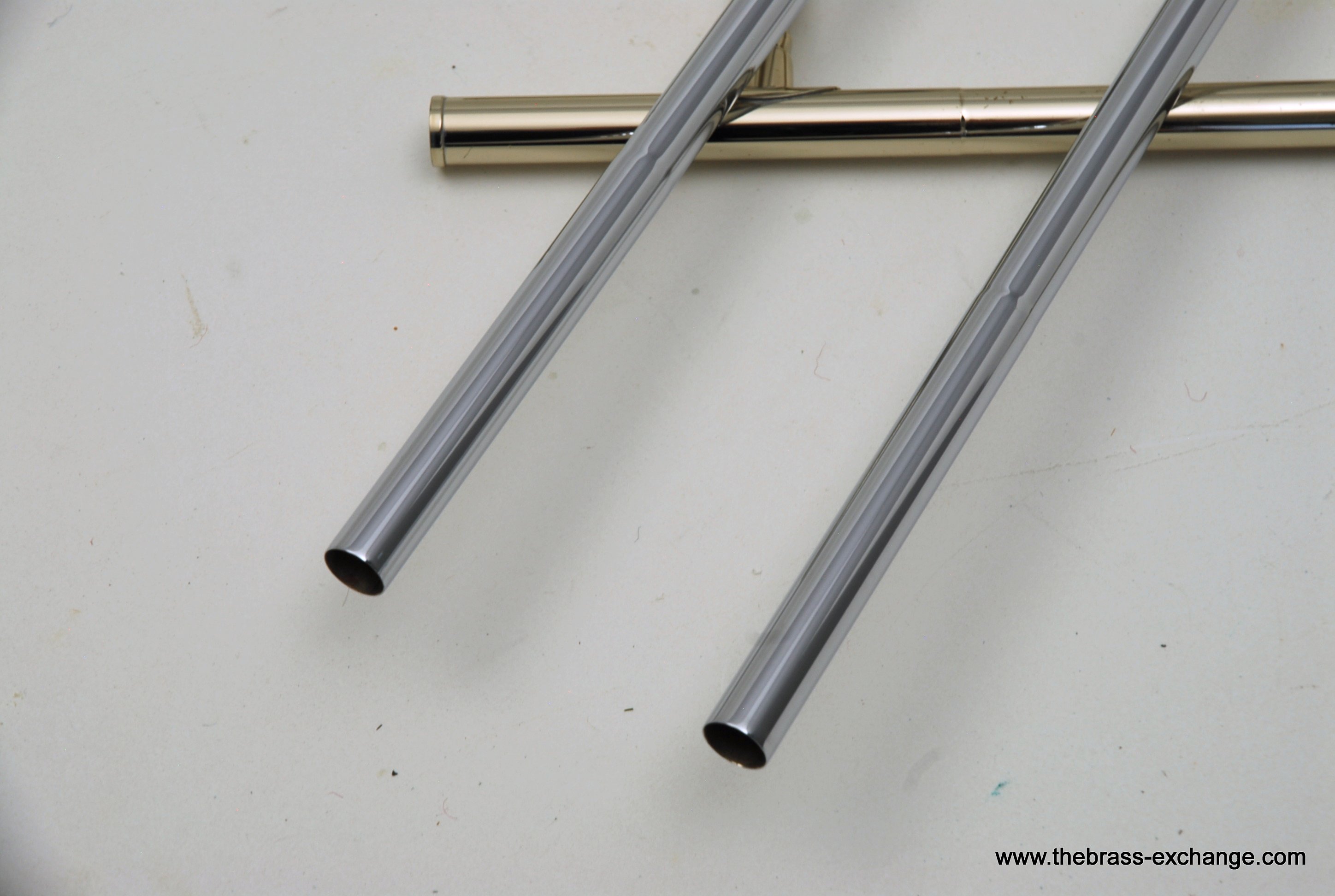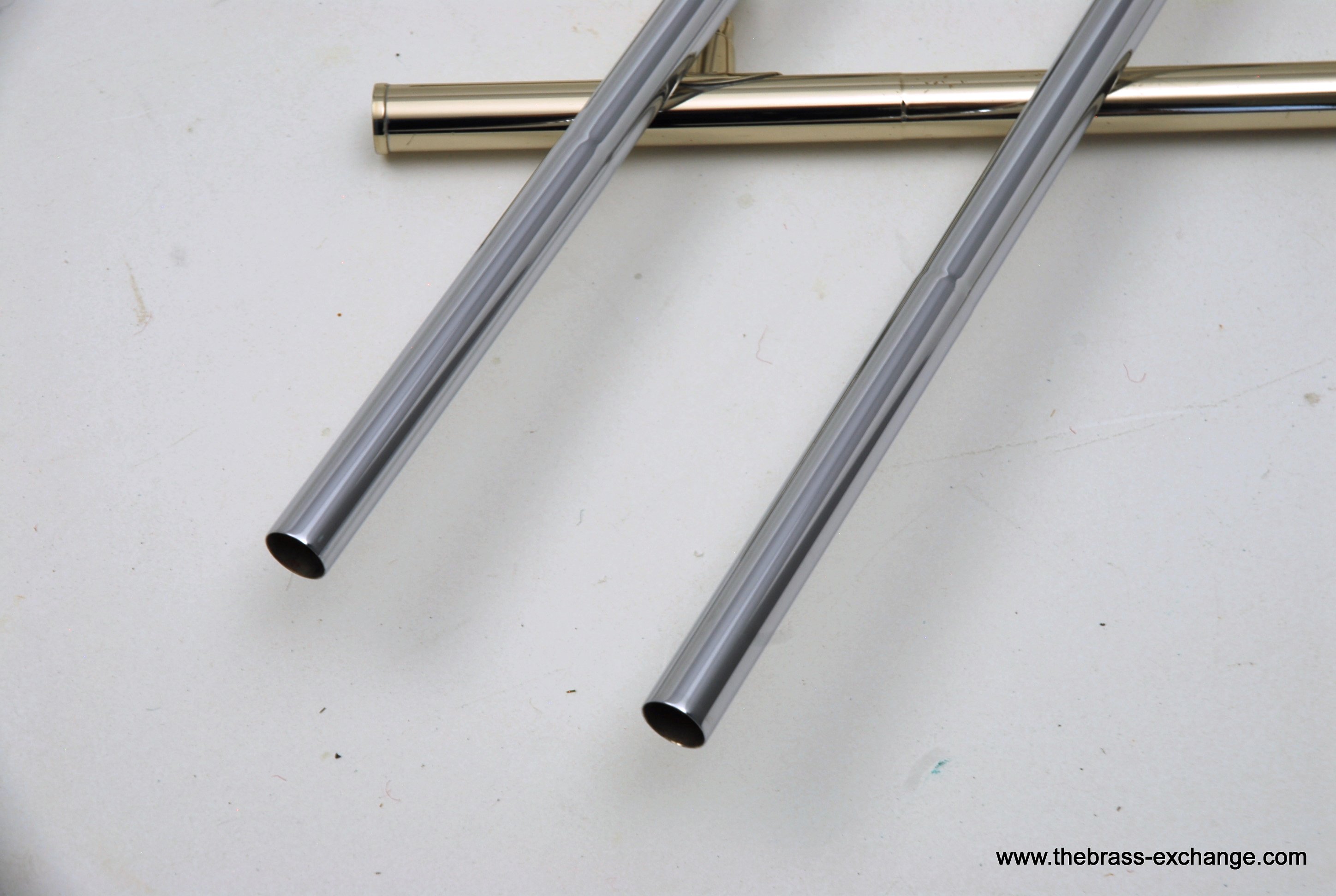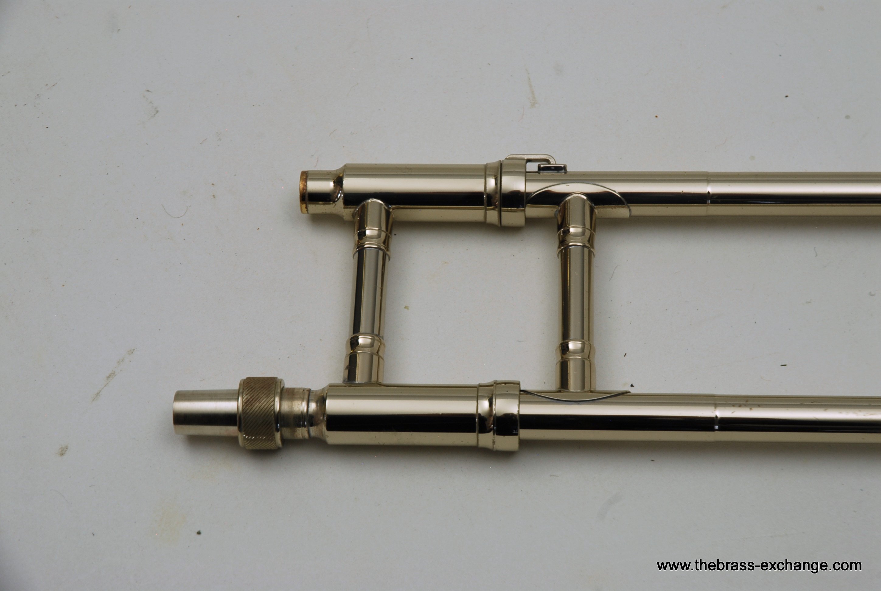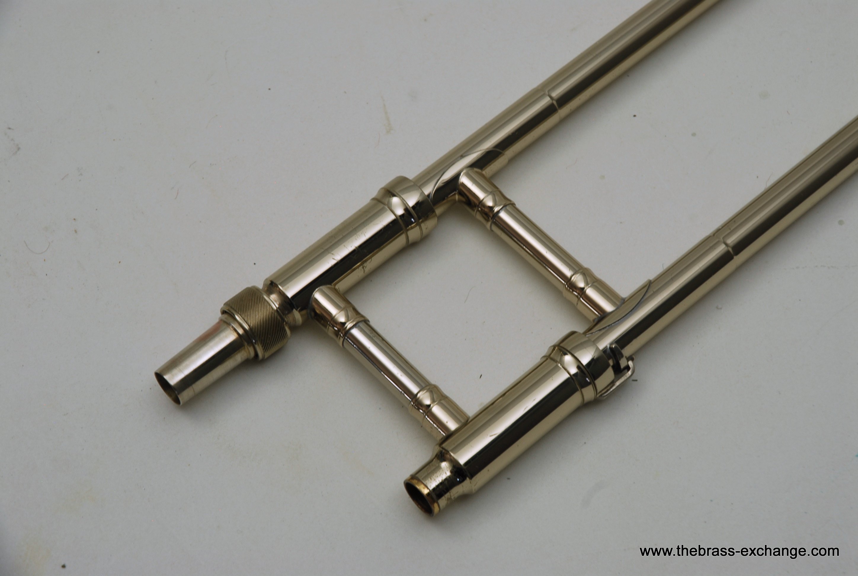 Nickel-silver outer slide with yellow-brass end-crook for durability and consistent action