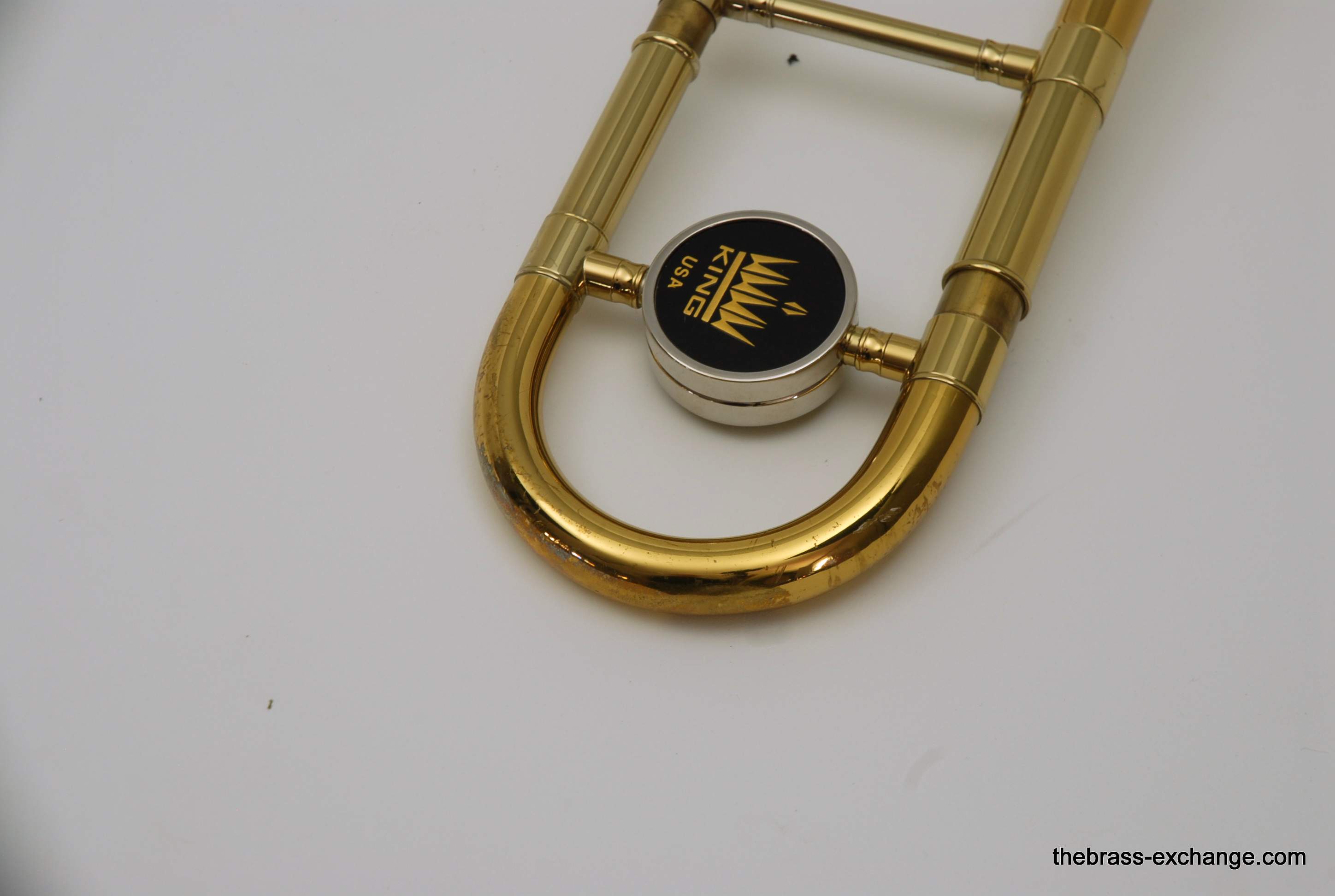 King 606 Student Trombone, Made in the 1990's in America. This is a personal favorite student trombone for a first time player, both student and adults. Here's why: It has an 8" Yellow Brass Bell and the handslide is .500 bore. These are the same specs as a Yamaha 354, also a favorite. This one listed was just serviced and has a great slide- easy to play, has had full shop service, including chemical bath. Excellent condition lacquer, minimal wear, no dents or dings, plays 100% proper and is without issues. Includes case, and mouthpiece. Perfect choice for Band, Jazz Band, Marching Band.