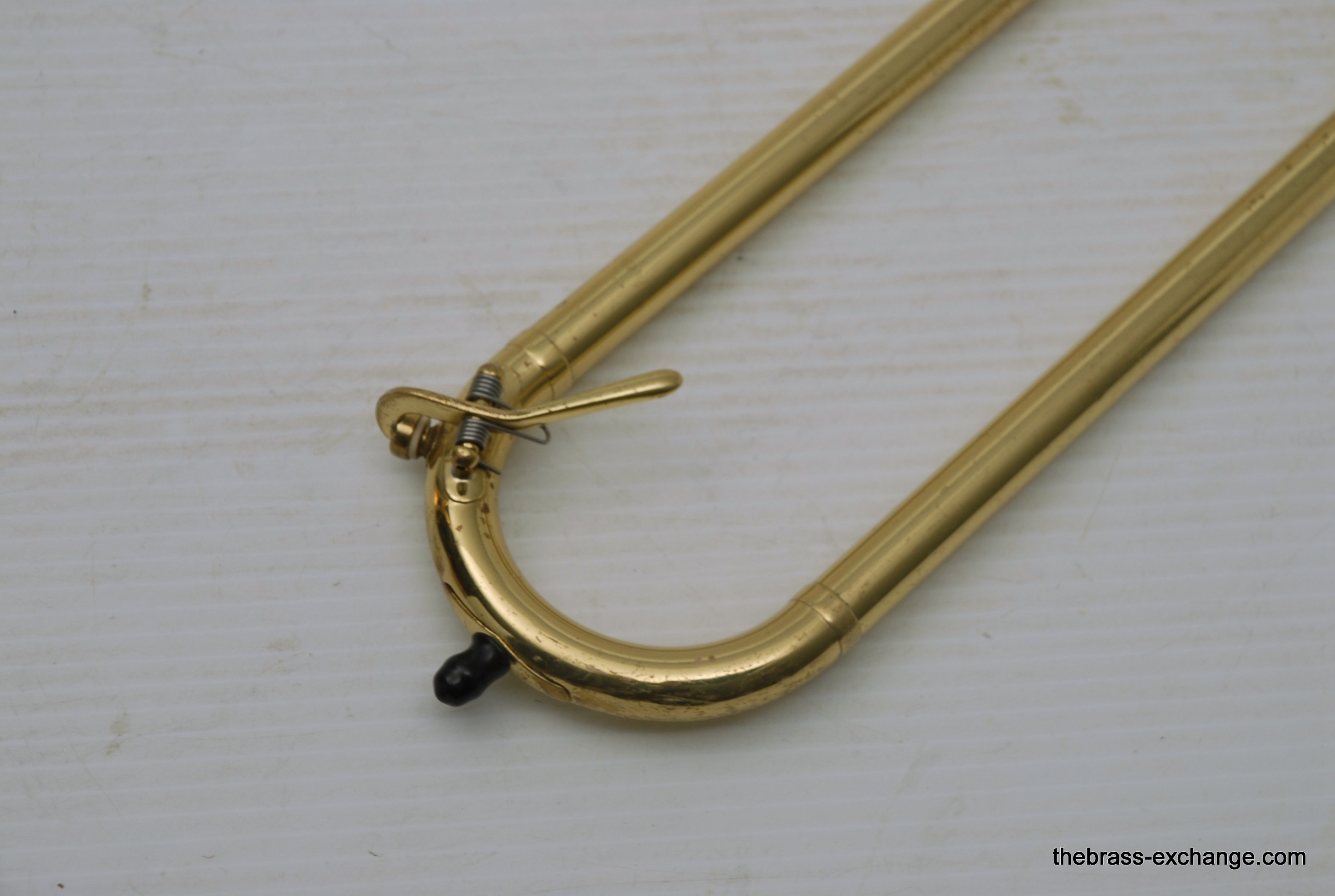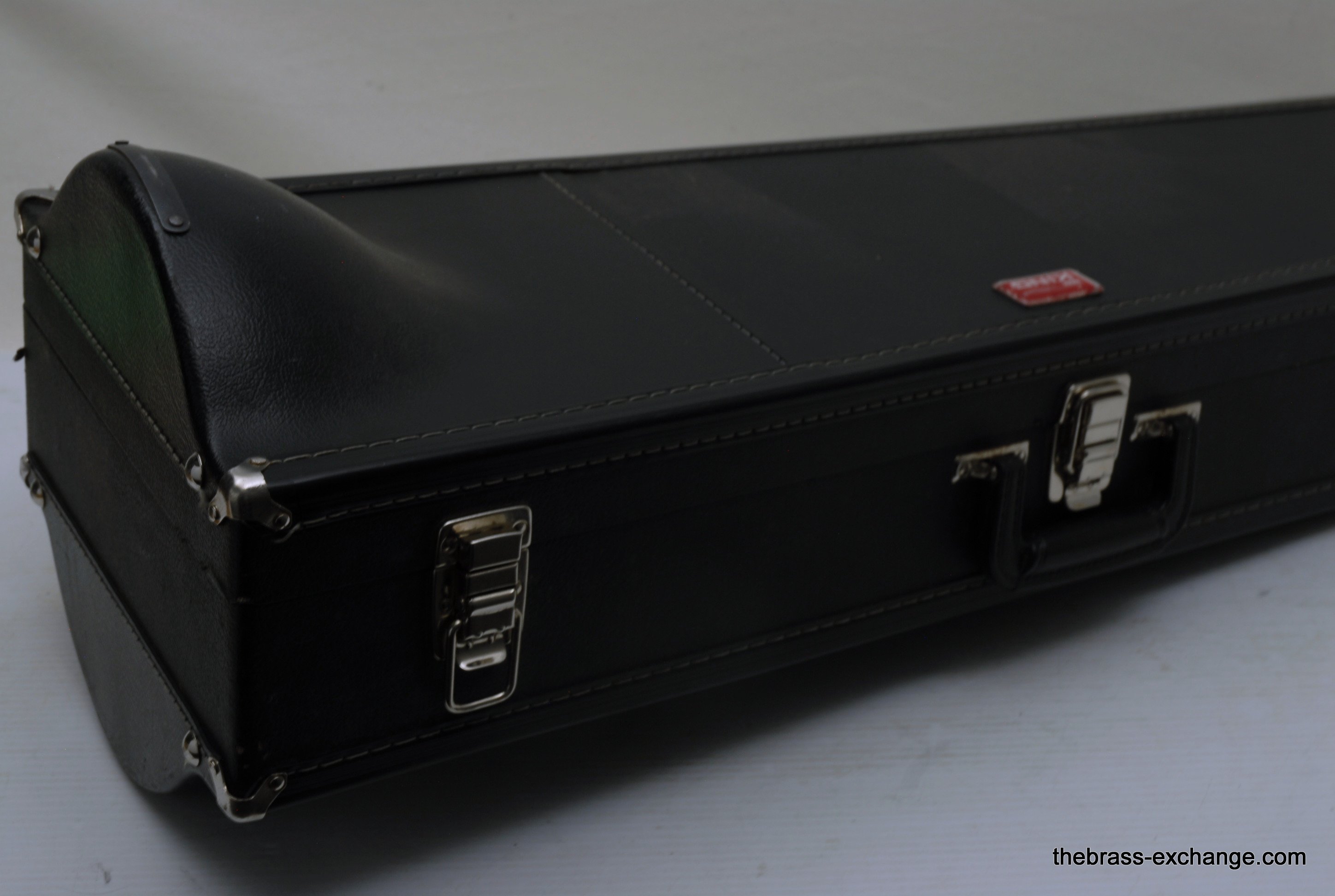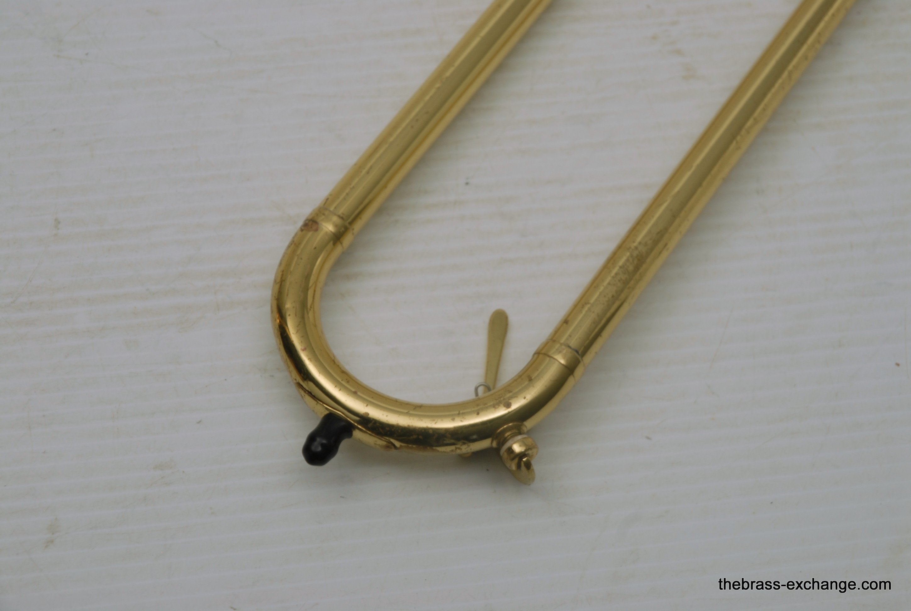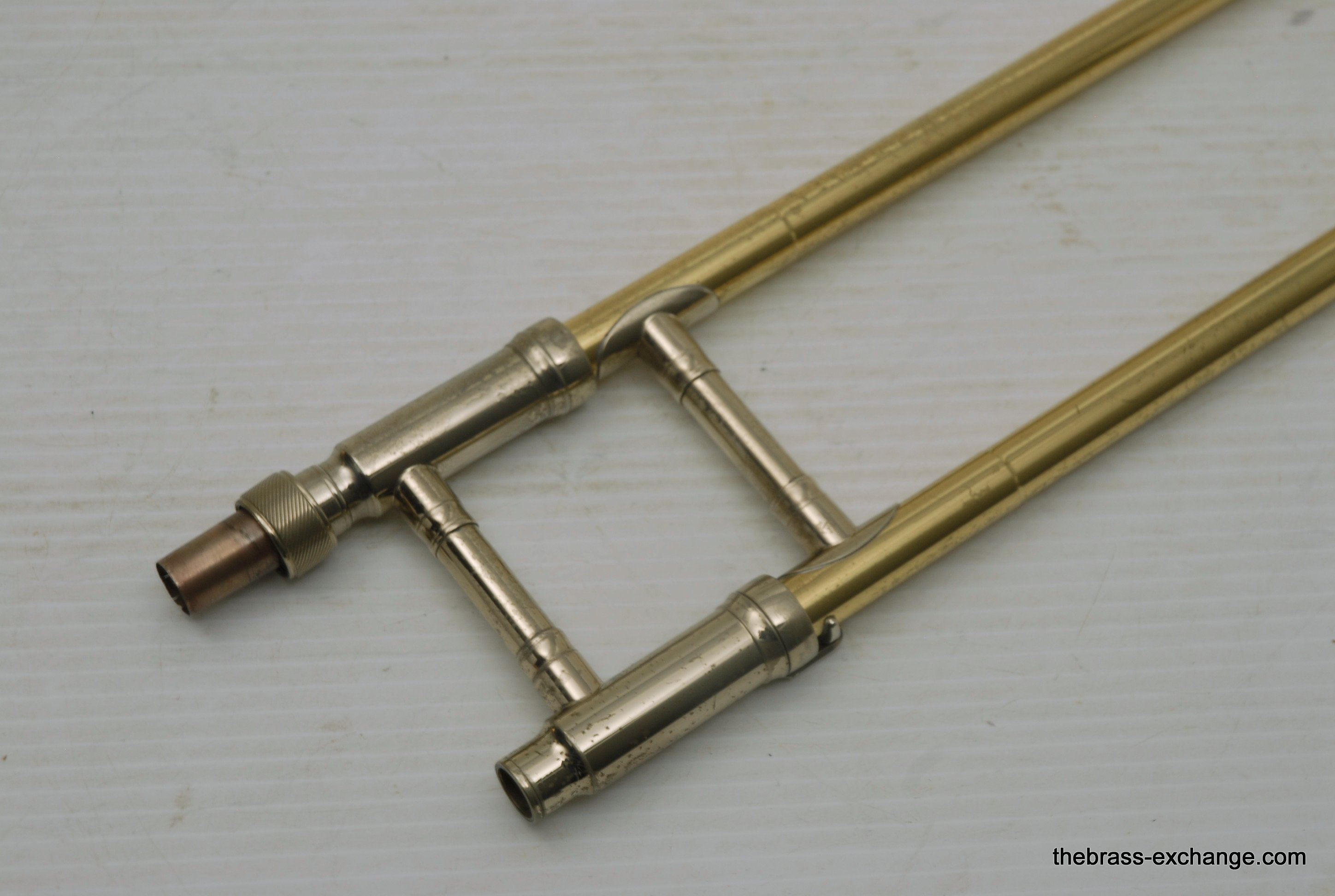 King 608 Medium Bore Tenor.  Pre-owned tenor w/F attachment.  Has .525 bore and 8" gold/rose brass bell.  This is a current model which sells new today in the $2000 range.  Takes standard small shank mouthpiece.  Has similar specs to a Bach 36B.  Has had full shop service, rotor, chemical bath, handslide set-up.  Some lacquer loss, no dents or dings, very straight horn, no signs of any major damage previous.  Clean case also in good condition.  Would make an excellent first trigger horn for a young player, or perhaps a come back player looking to stay under 1K.  It plays exactly as it is intended to play, perhaps even a little better, since we servied it here.  Includes case, mouthpiece, lubricants for handslide and valve.  In-stock for immediate delivery.