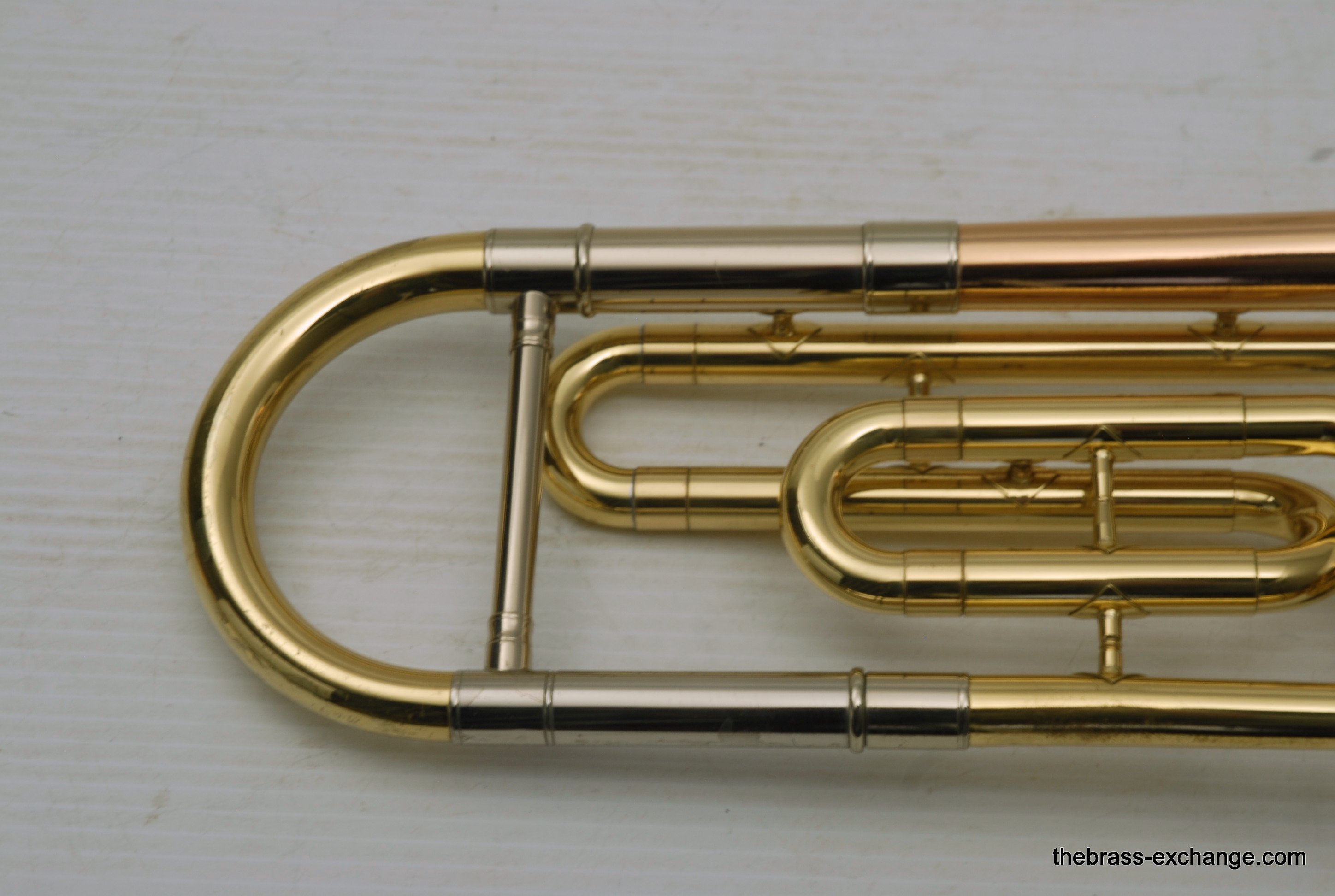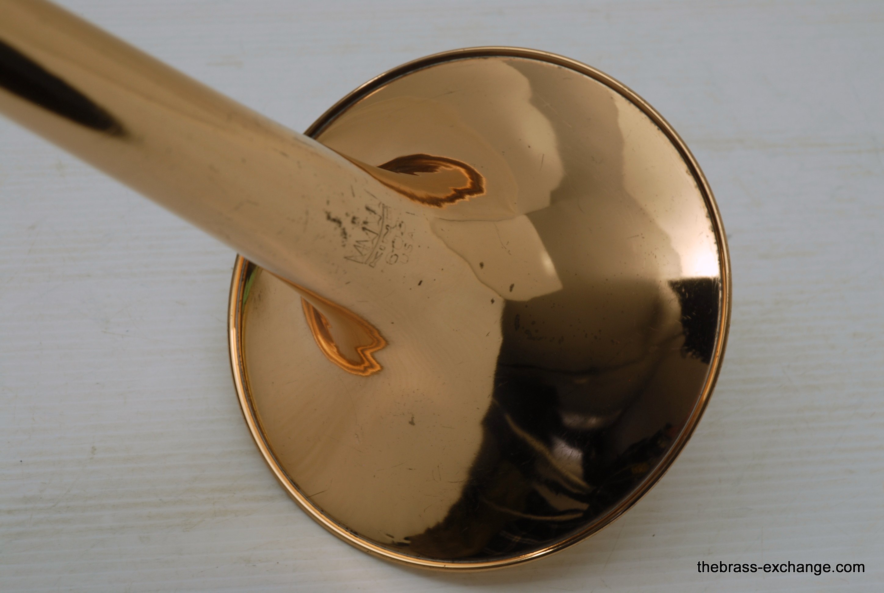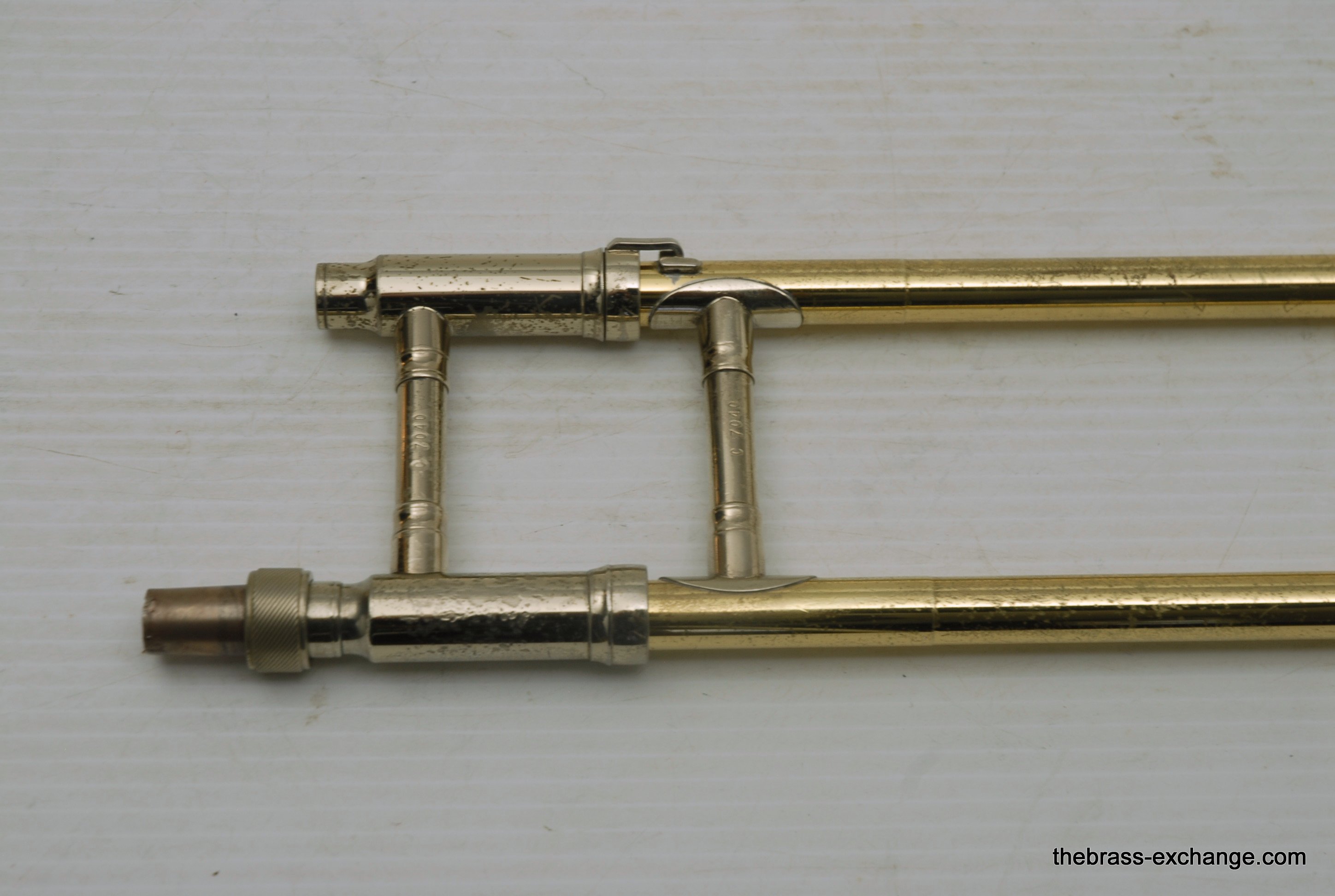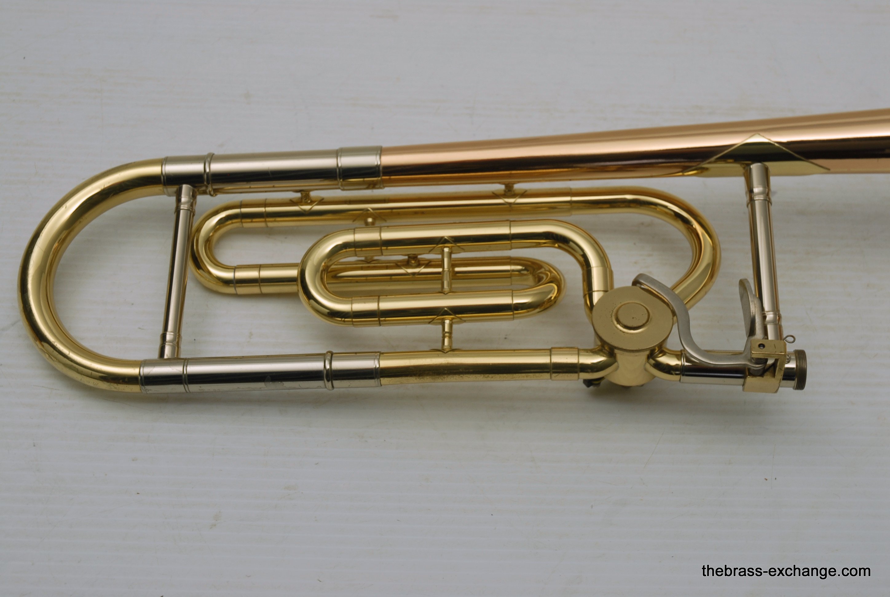 King 608 Medium Bore Tenor.  Pre-owned tenor w/F attachment.  Has .525 bore and 8" gold/rose brass bell.  This is a current model which sells new today in the $2000 range.  Takes standard small shank mouthpiece.  Has similar specs to a Bach 36B.  Has had full shop service, rotor, chemical bath, handslide set-up.  Some lacquer loss, no dents or dings, very straight horn, no signs of any major damage previous.  Clean case also in good condition.  Would make an excellent first trigger horn for a young player, or perhaps a come back player looking to stay under 1K.  It plays exactly as it is intended to play, perhaps even a little better, since we servied it here.  Includes case, mouthpiece, lubricants for handslide and valve.  In-stock for immediate delivery.