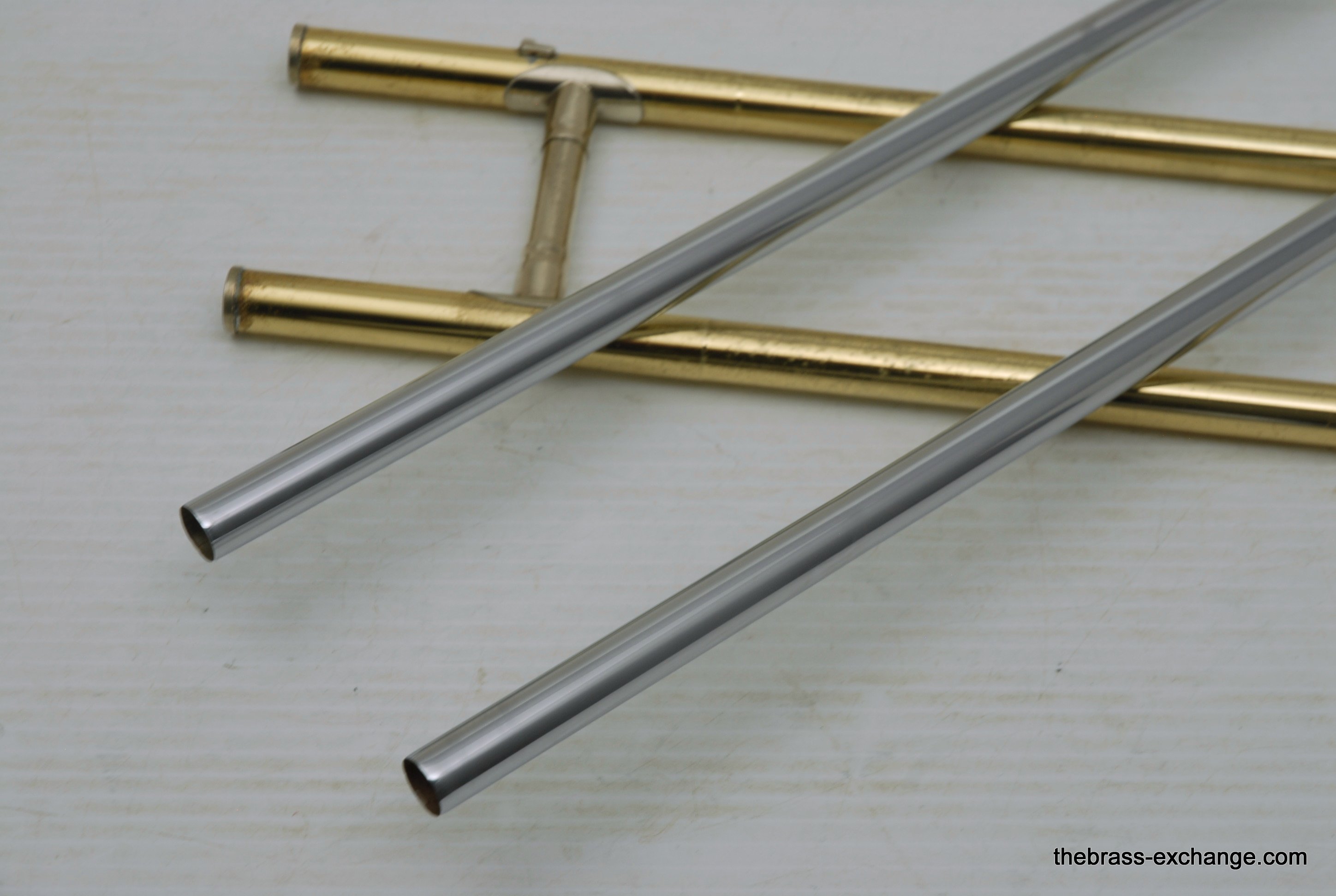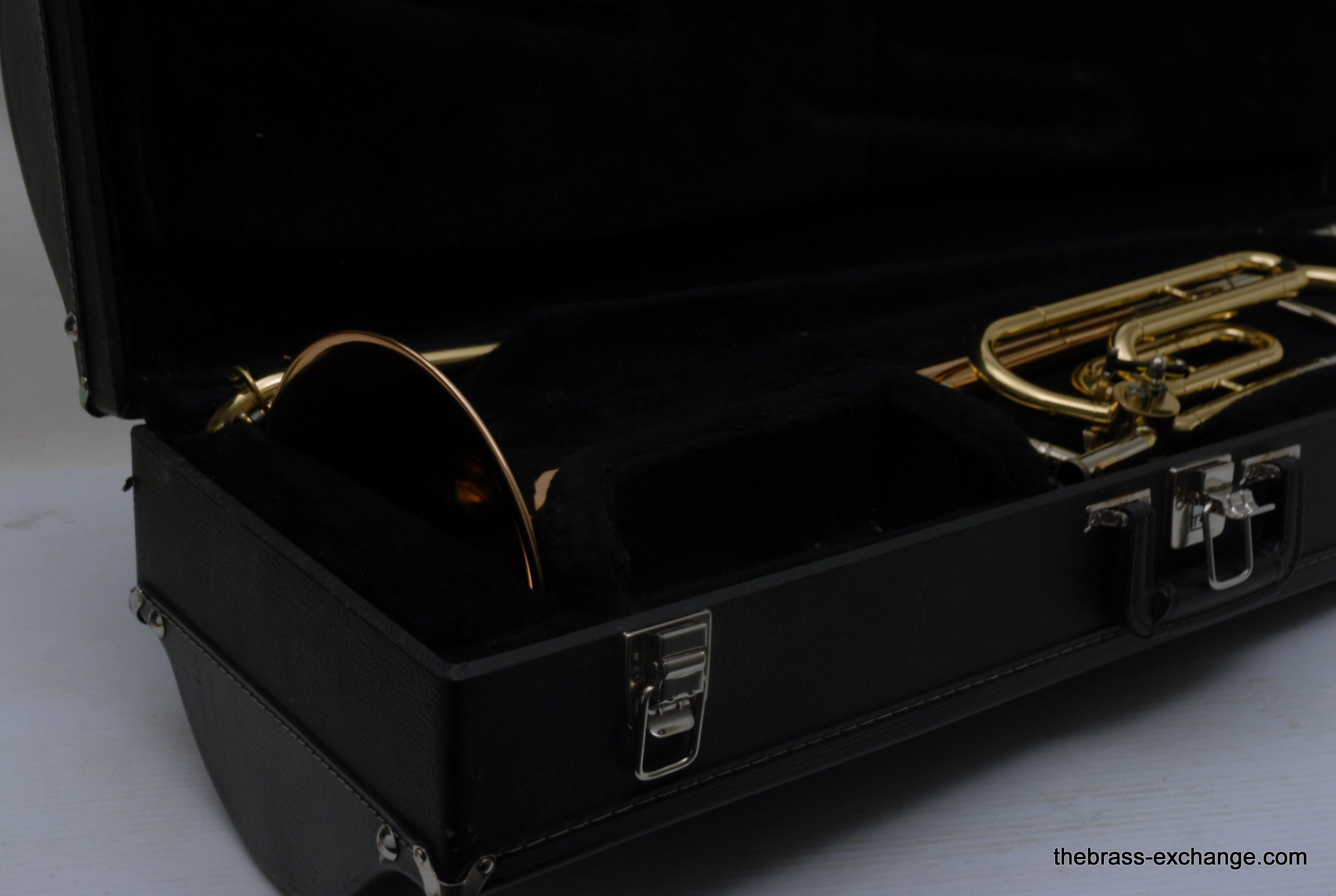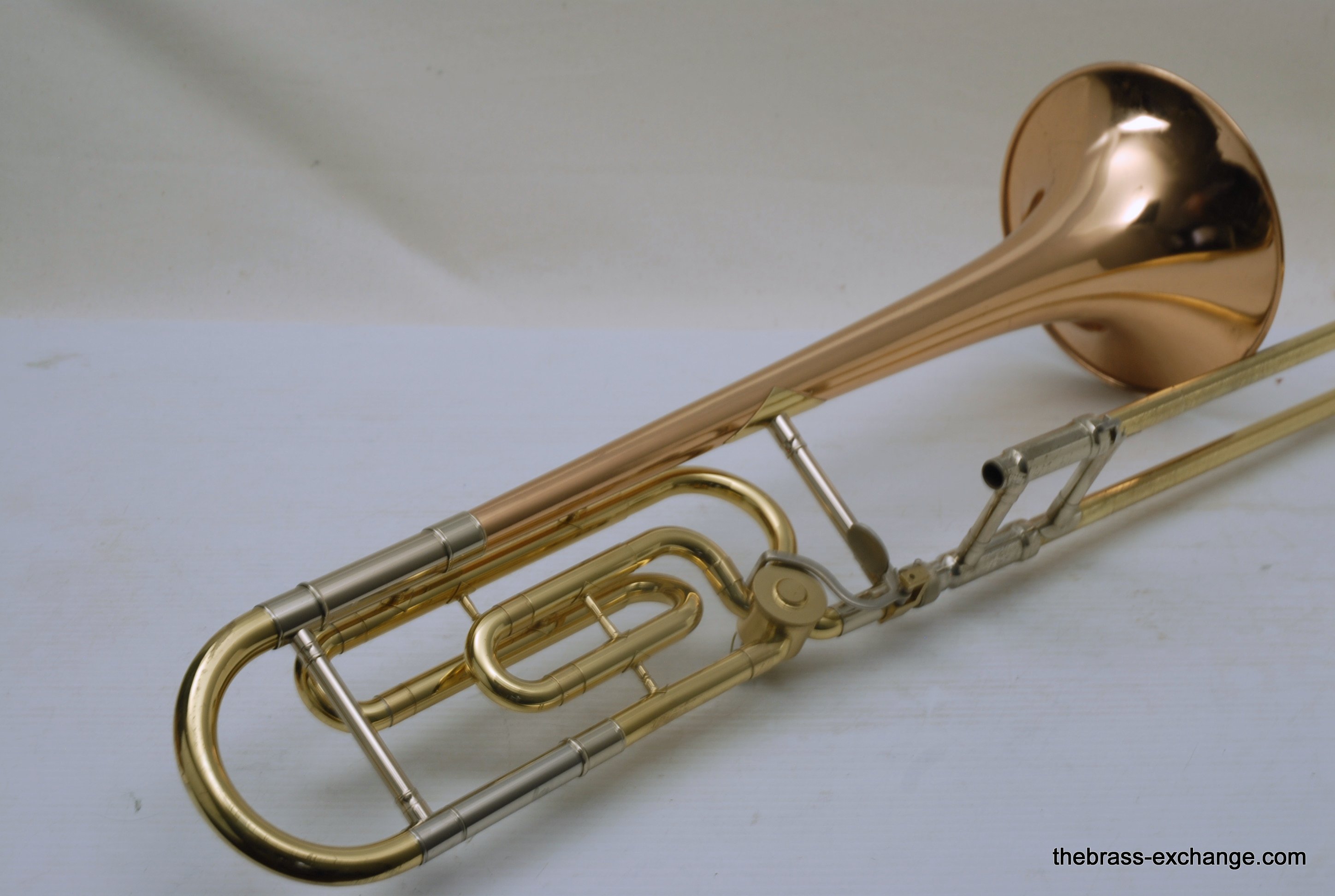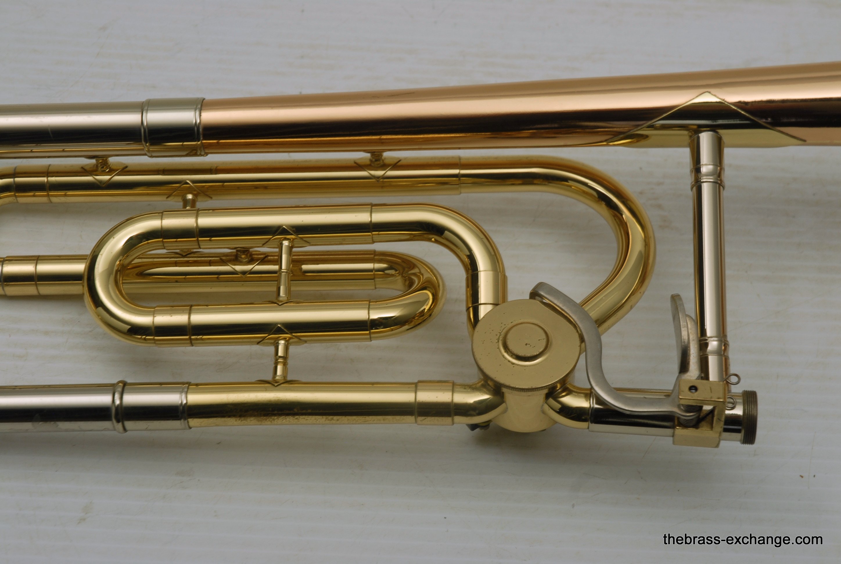King 608 Medium Bore Tenor.  Pre-owned tenor w/F attachment.  Has .525 bore and 8" gold/rose brass bell.  This is a current model which sells new today in the $2000 range.  Takes standard small shank mouthpiece.  Has similar specs to a Bach 36B.  Has had full shop service, rotor, chemical bath, handslide set-up.  Some lacquer loss, no dents or dings, very straight horn, no signs of any major damage previous.  Clean case also in good condition.  Would make an excellent first trigger horn for a young player, or perhaps a come back player looking to stay under 1K.  It plays exactly as it is intended to play, perhaps even a little better, since we servied it here.  Includes case, mouthpiece, lubricants for handslide and valve.  In-stock for immediate delivery.