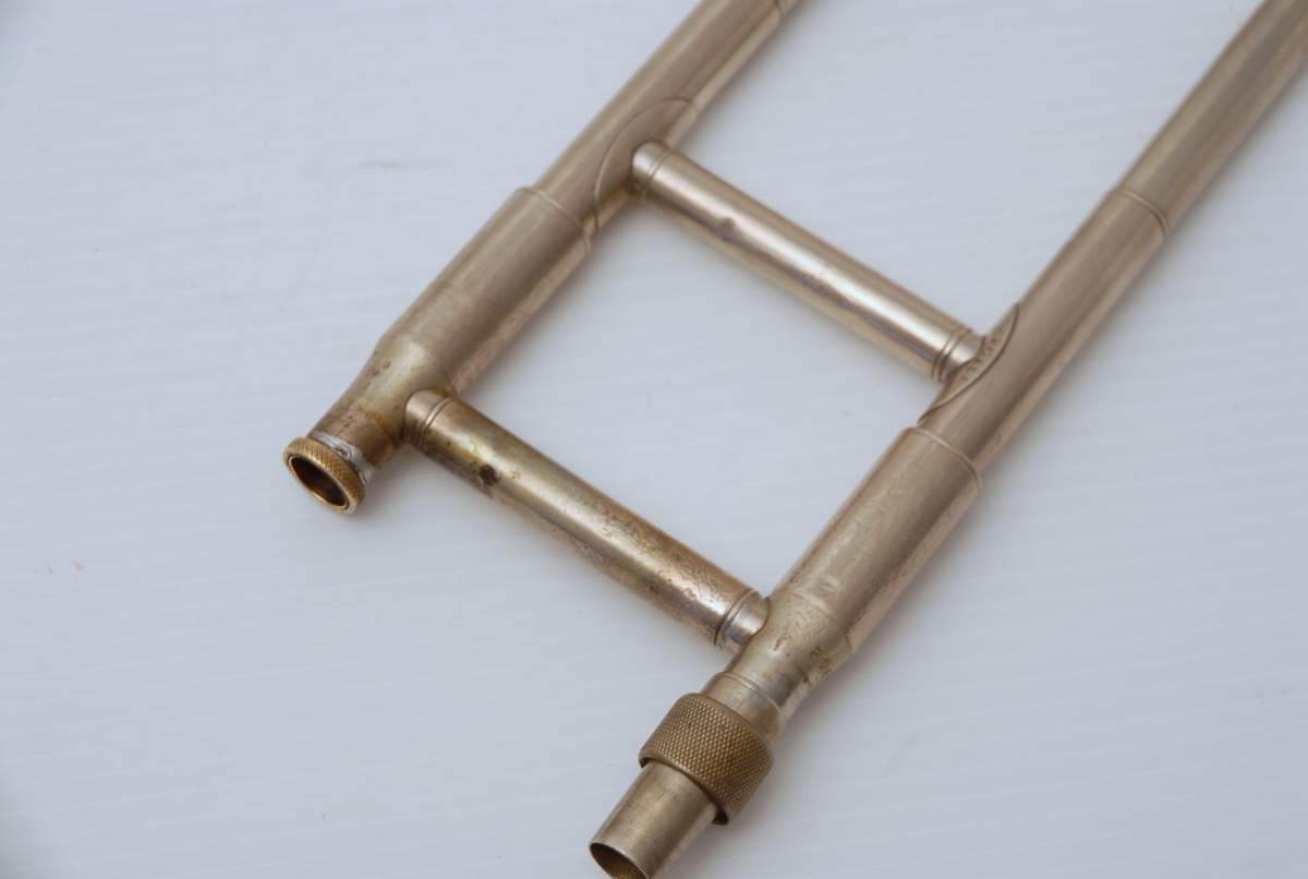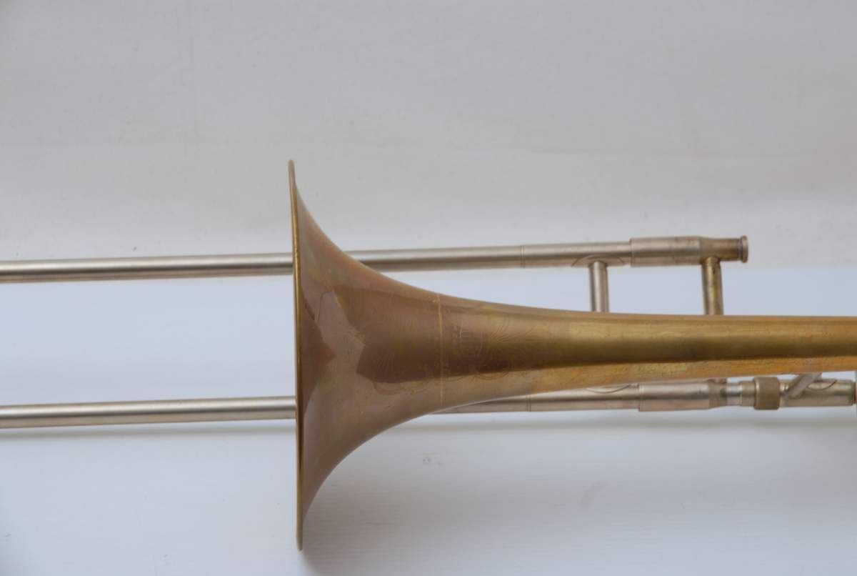 This particular example remains in very good condition. It has received full shop service, including a chem-clean, slide alignment and adjustment, and a new leadpipe for improved playability. The bell section and valve are original and structurally solid. While it shows signs of age, it remains a functional and musically satisfying trombone.