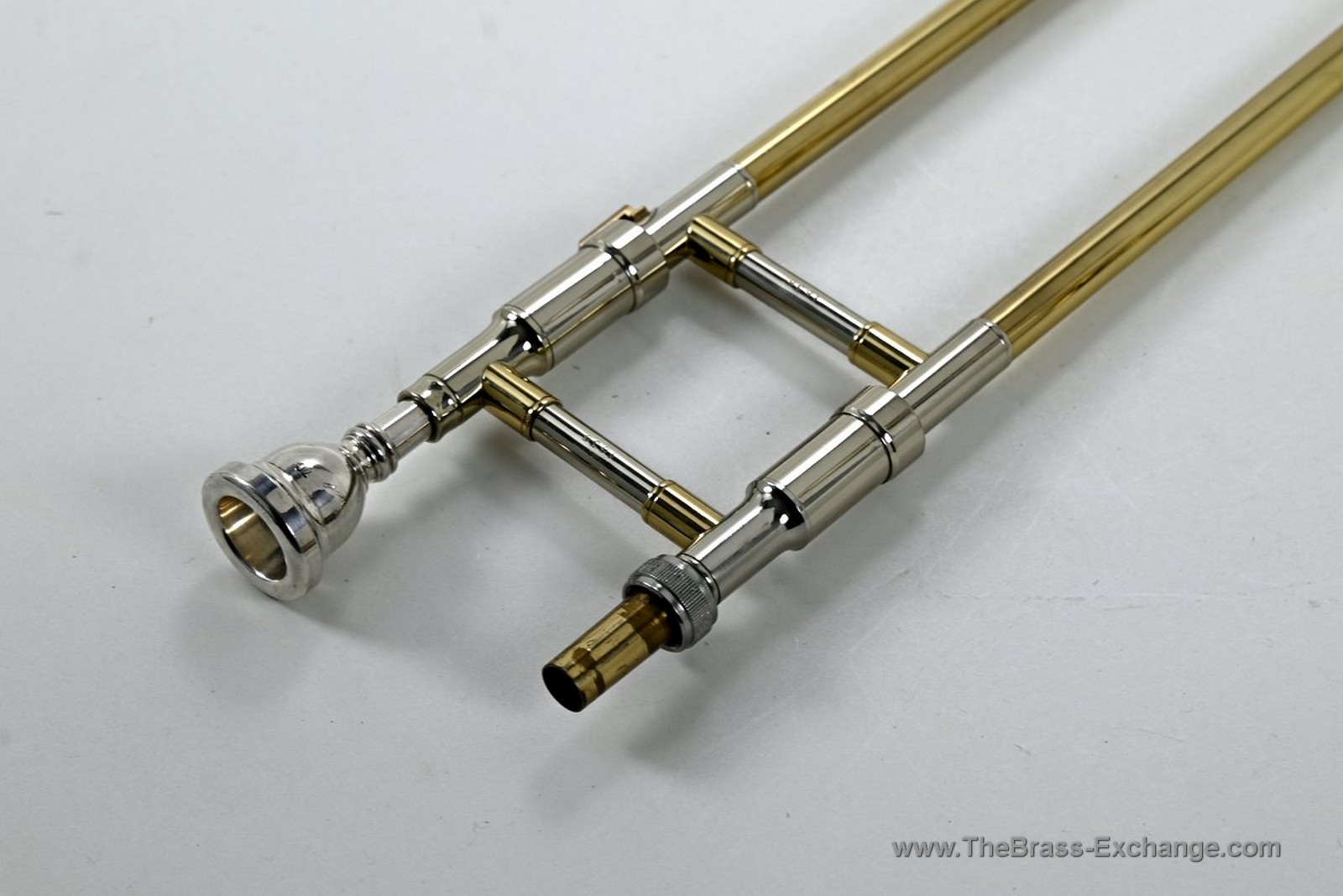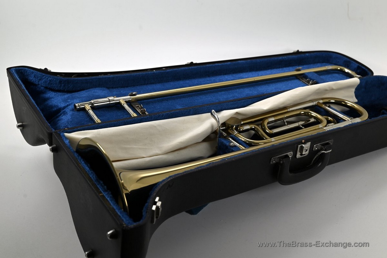 Condition is excellent throughout. The instrument has seen very little playing time and shows no prior damage or repair history. Our shop performed a complete inspection and play test: the slide action is smooth and fast, valve is quiet and airtight, and there are no service needs for appearance or playability.
