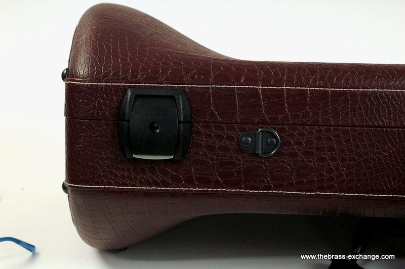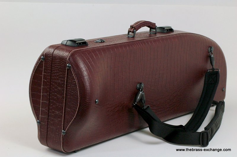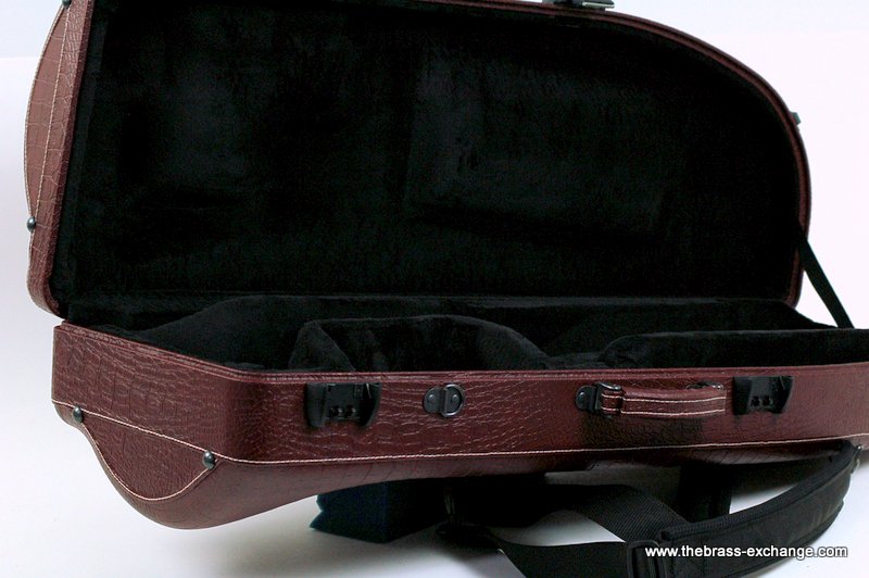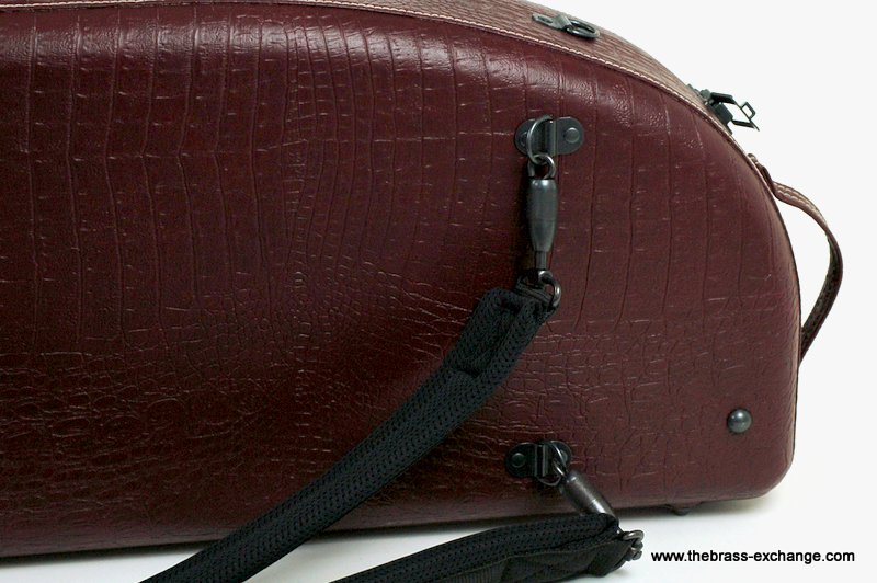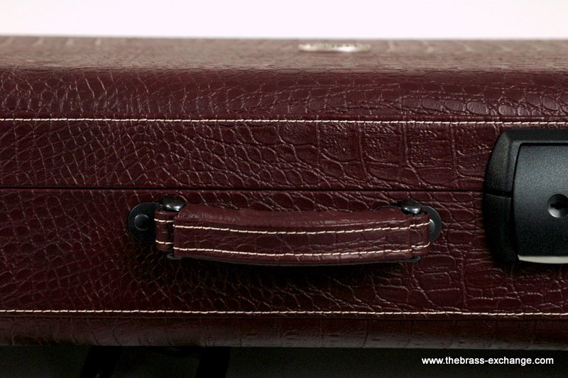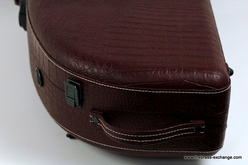 The Marco Magi Small Bore Trombone Artist Series Case – Model DR is a compact, premium-quality shaped case built by hand in Italy. This limited edition finish, created exclusively for The Brass Exchange, features a textured deep red reptile-style exterior with white accent stitching and durable scuff-resistant panels.