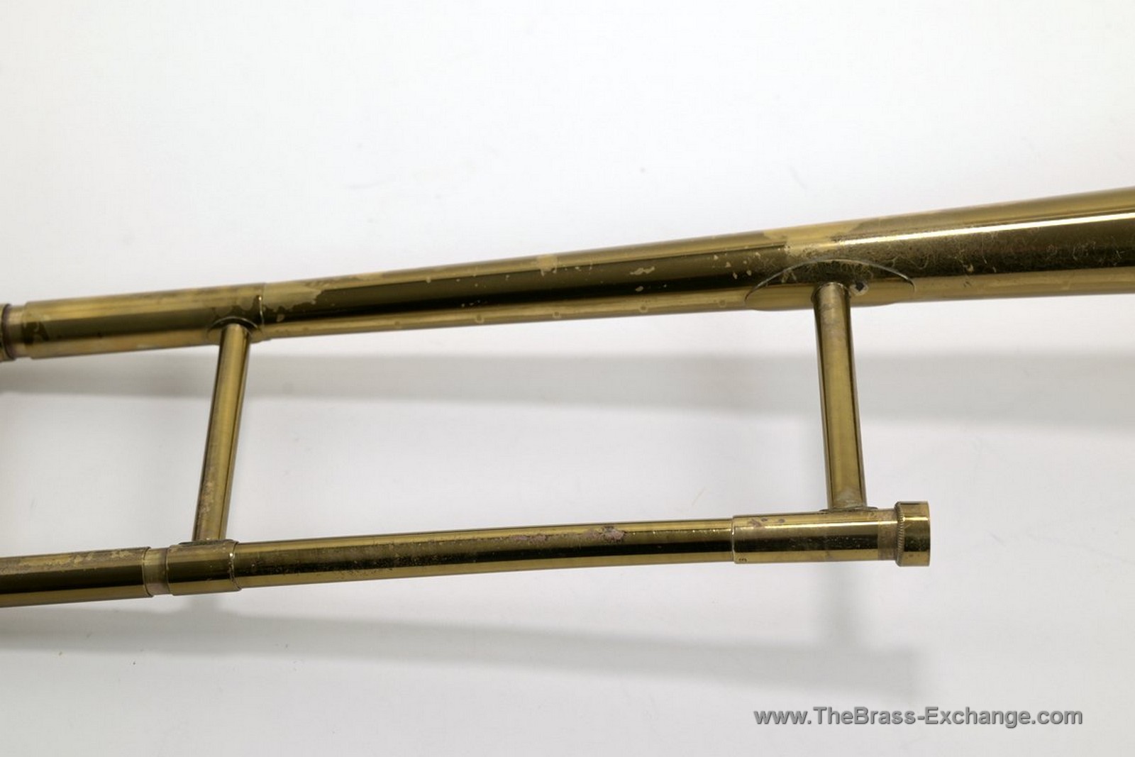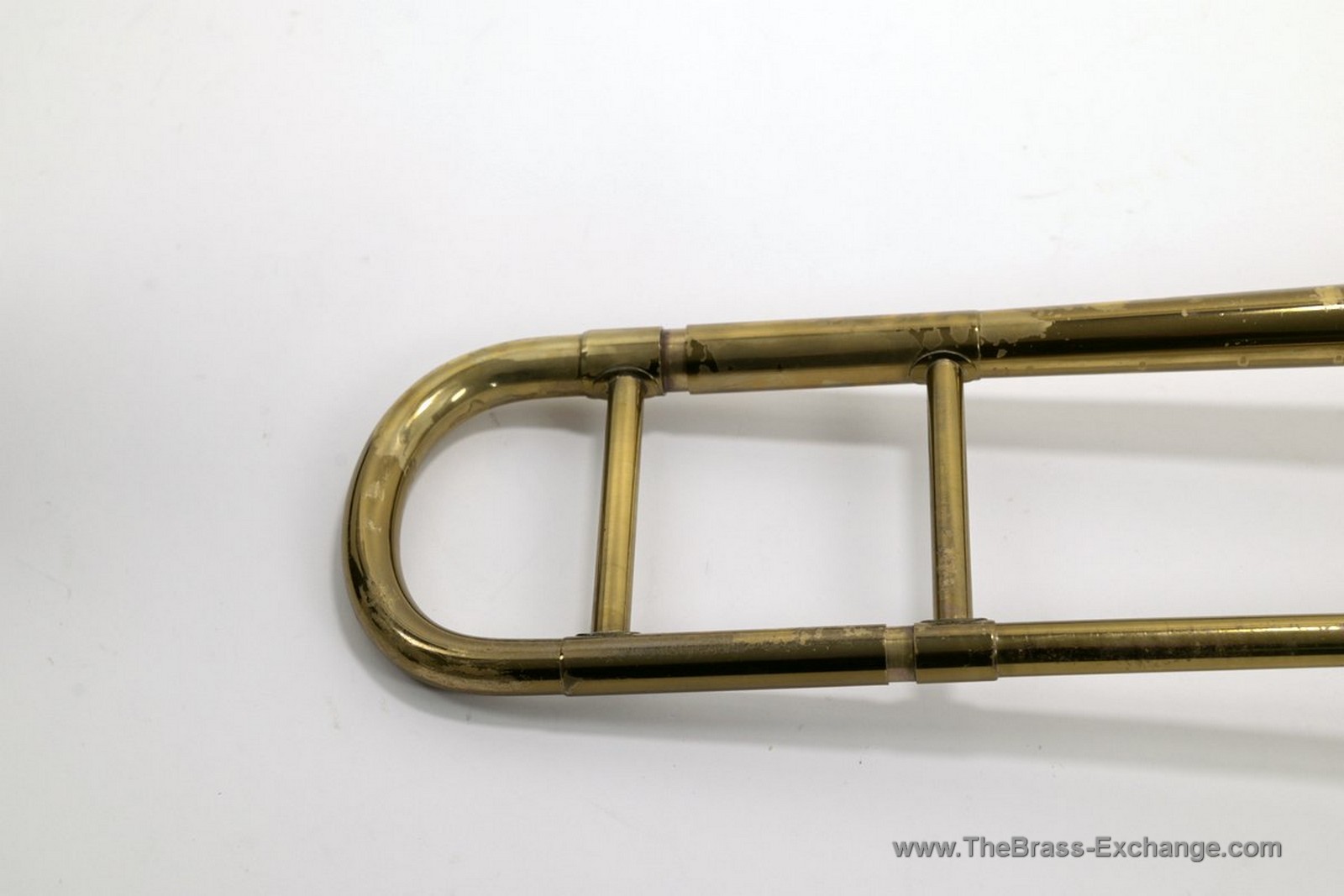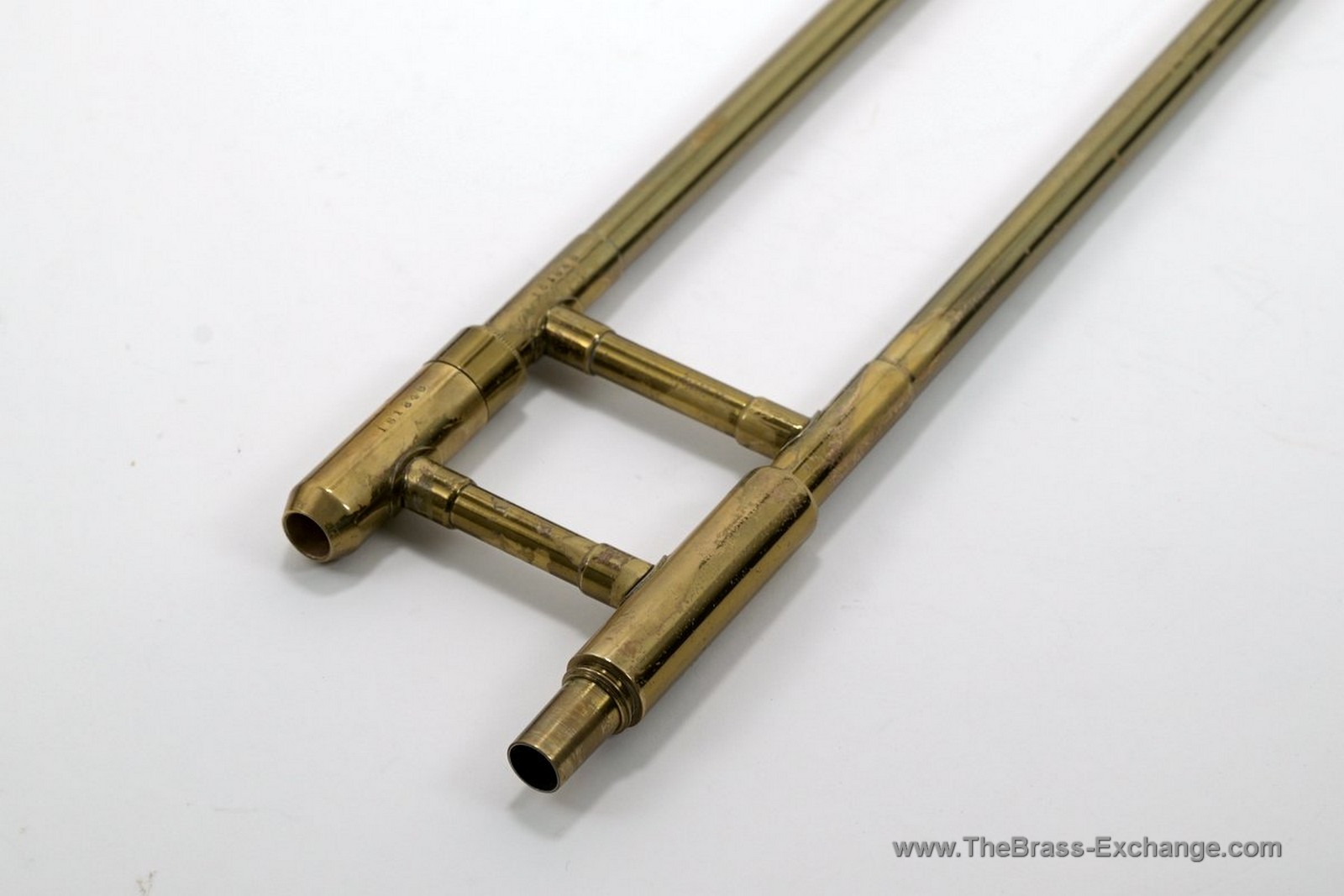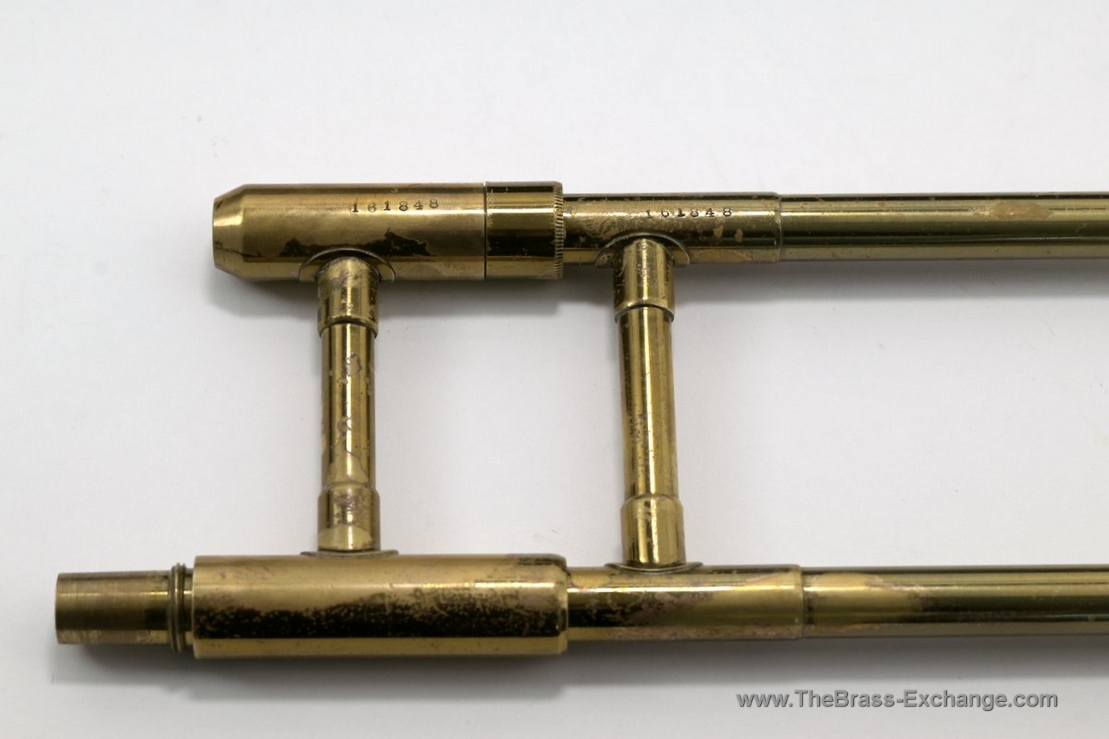 The handslide is in solid vintage condition. The outer tubes are straight and the original inner tube plating remains intact. Following full shop service and alignment, the slide action is smooth and dependable and meets our standards as player-ready.