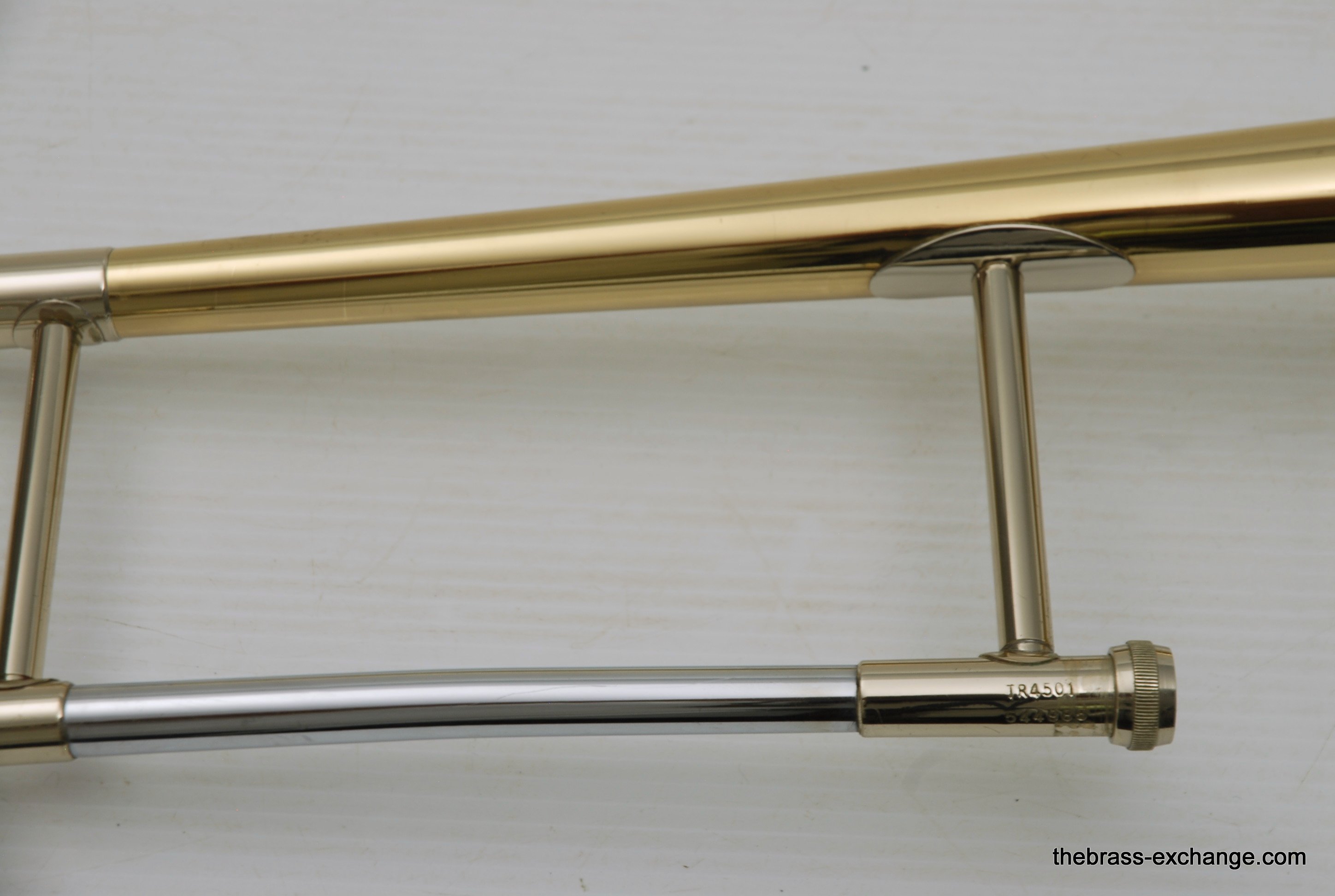 Martin TR4501 Urbie Green Model.ย This horn was made around 1978.ย Most of the TR4501's have had the curved hand brace, this one is a traditional brace. The solder joints appear to be all factory, so it was made with a straight grip.ย The instrument is all original parts and lacquer.ย The handslide is very straight and free of defect, no plating loss on the inners- is actually a great slide.ย Also, the bell diameter is approx 7.75", later TR4501 had the 8" bell.ย This would be a great lead/jazz/commercial style horn for any serious player.ย Comes with original case.ย ย Mouthpiece not included.