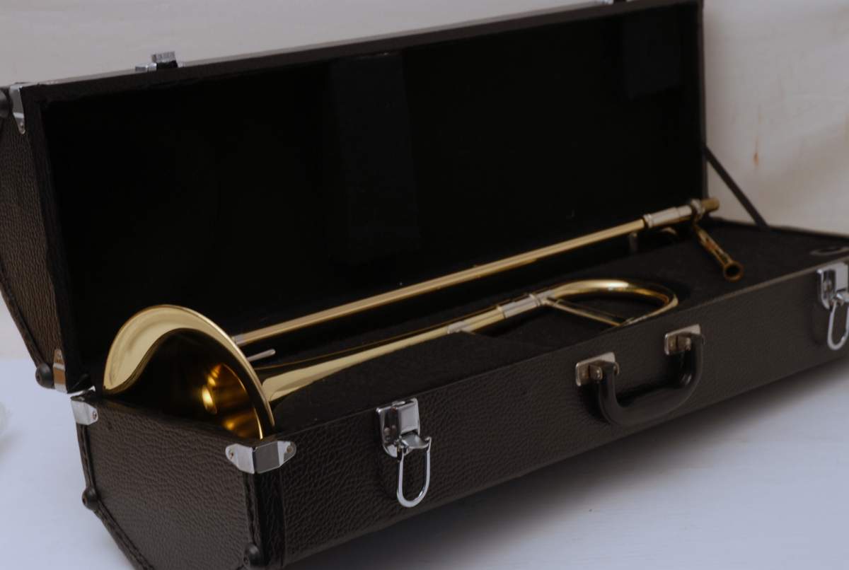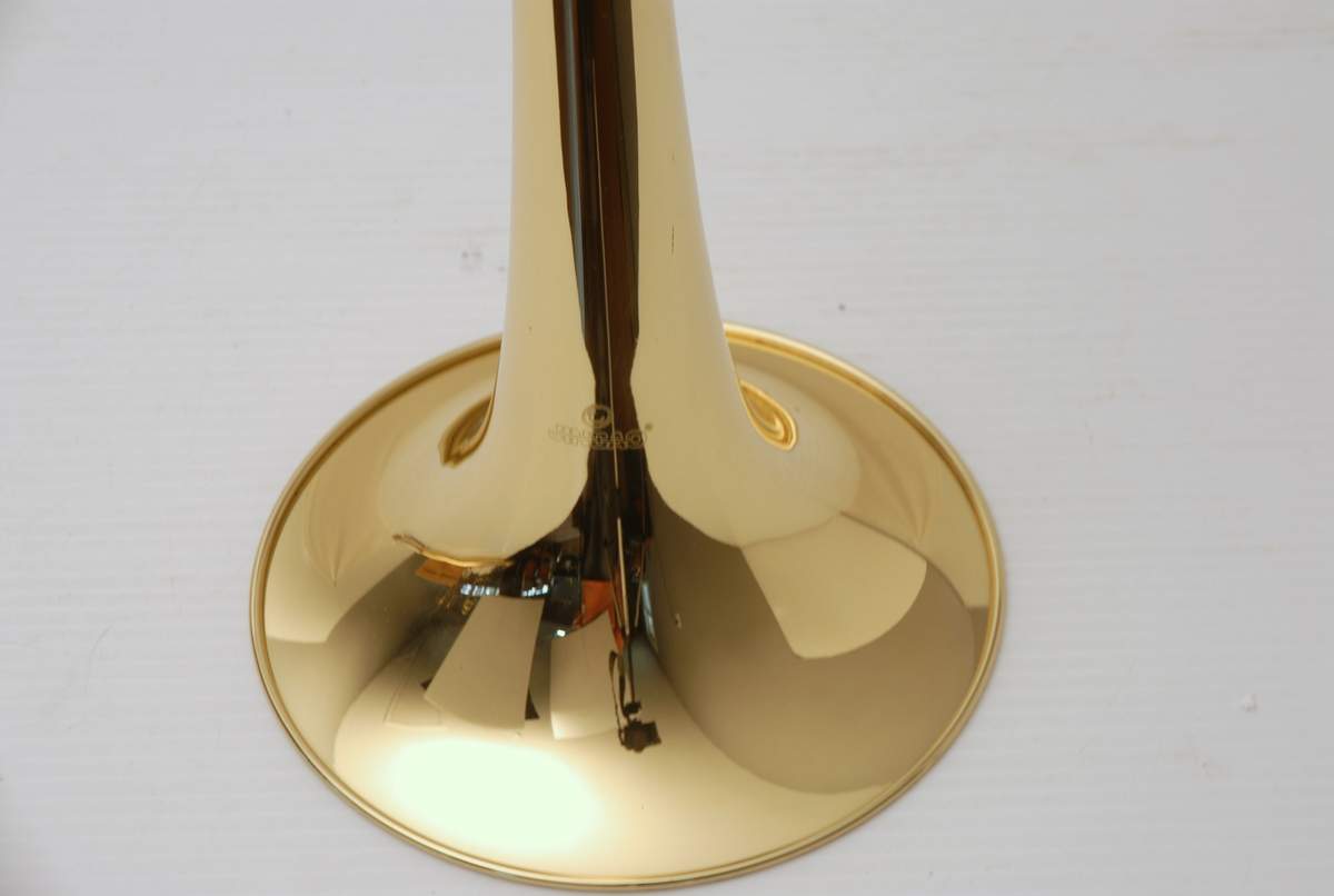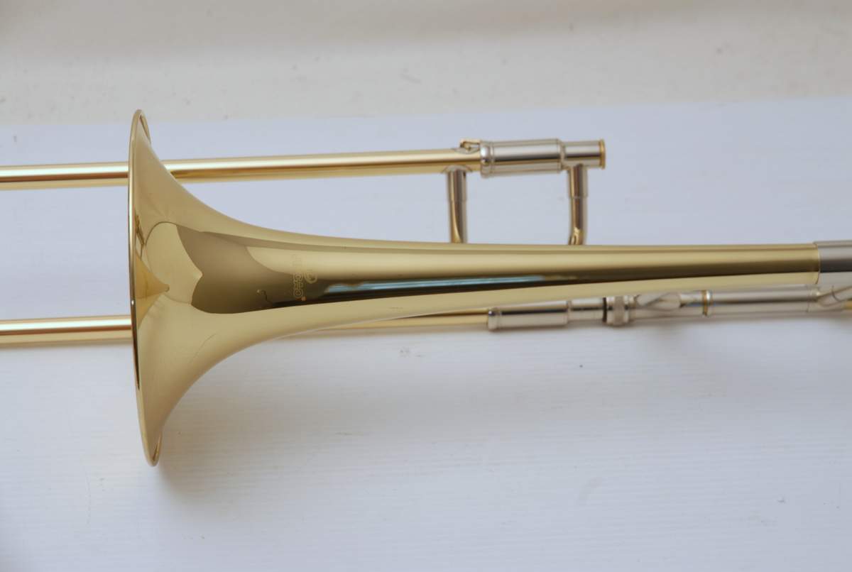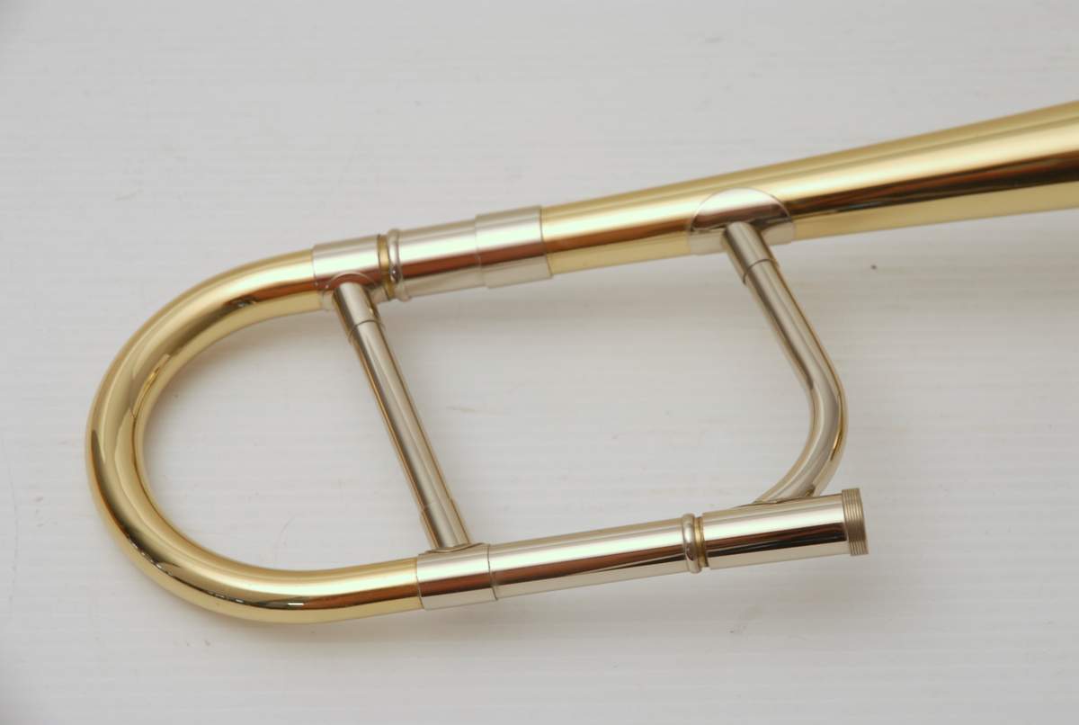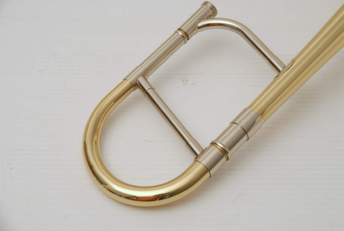 Alto Trombone Eb, Jinbao Music in Tianjin, China. Slightly used student model based on the Slokar alto design. Has yellow brass bell includes two removable ledpipes custom by Horn Guys. No dents dings or scratches, very close to new condition. Ideal for advancing player in need of an alto. Included: hard case and second leadpipe.