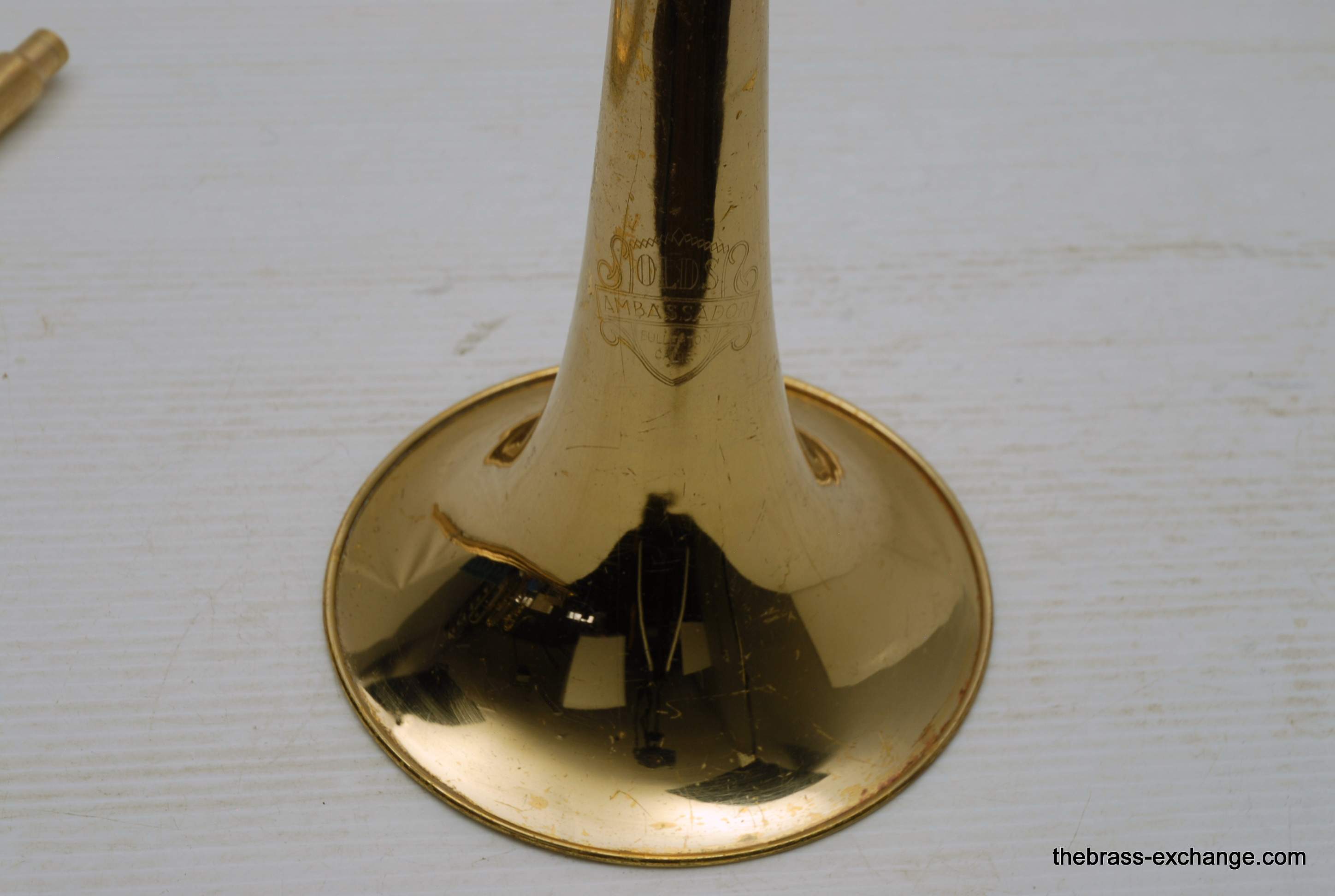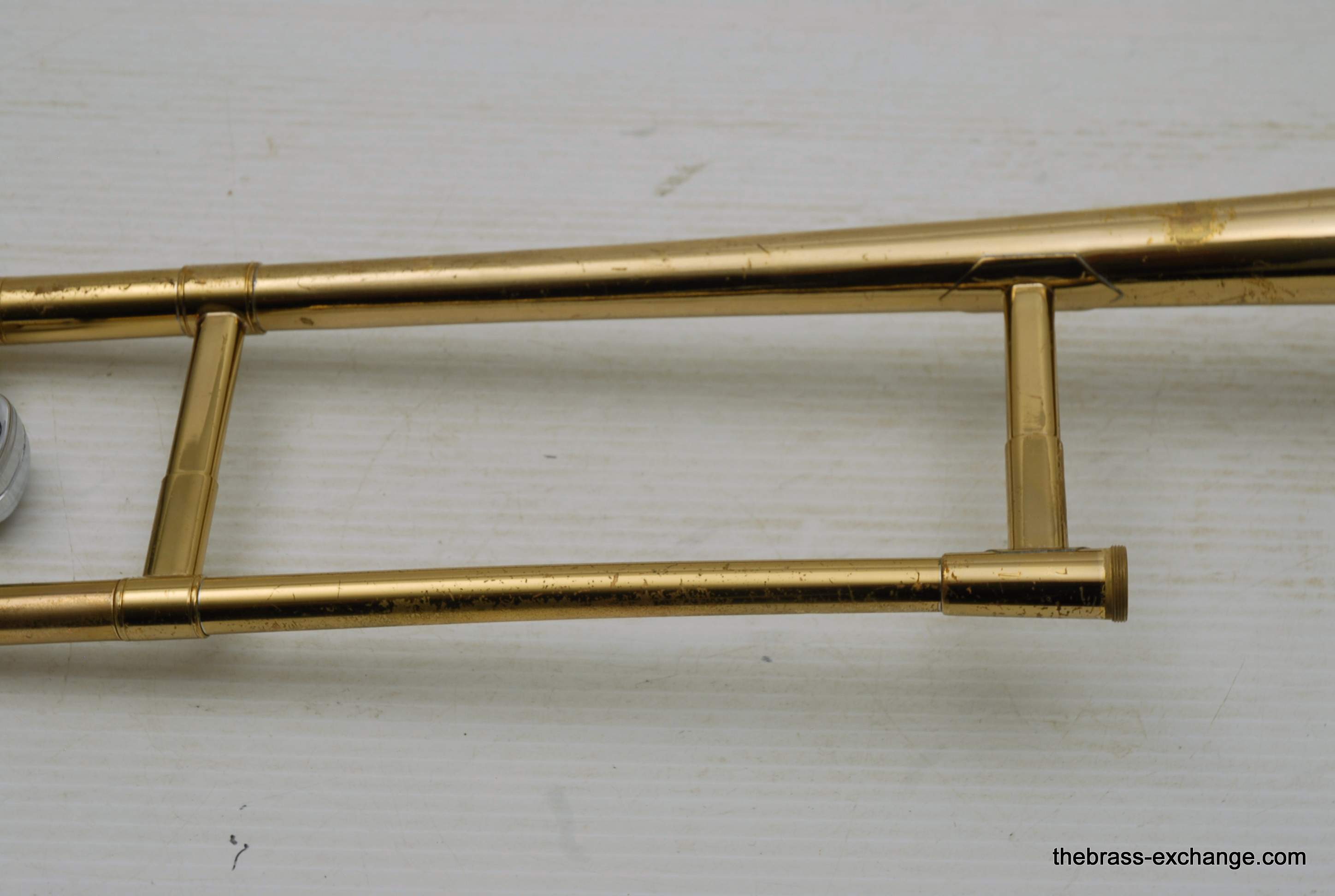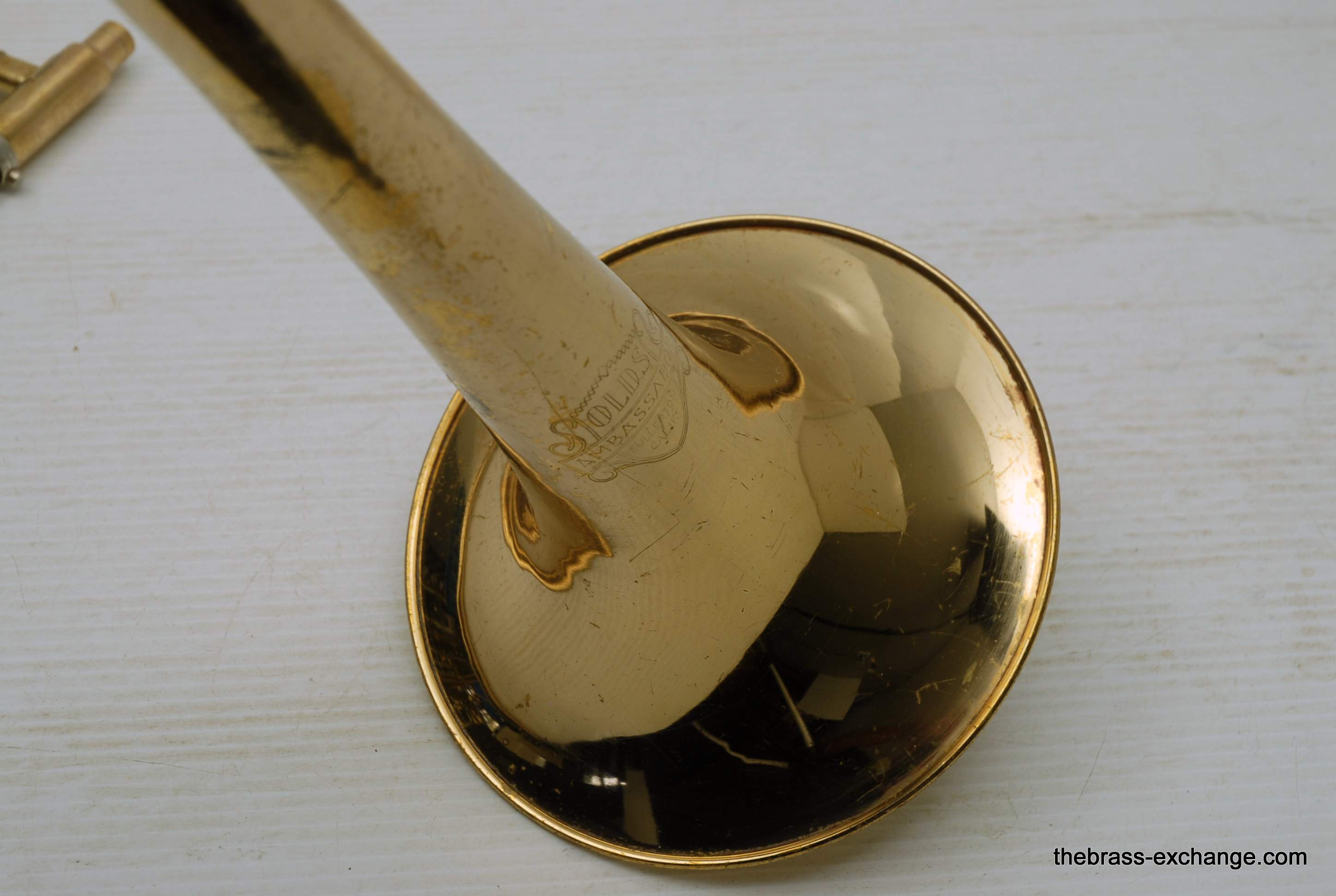 Olds Ambassador Student model trombone made in the 1970's. This is a single owner Ambassador. The horn has not been played since the early 80's and was kept in storage. We took care of full shop service including chemical bath and slide adjust. Olds always had excellent quality instruments from Pro level to student models. All of their instruments were American made. Olds closed it's factory in the late 1970's. They were excellent quality instruments in the final years of F.E. Olds, a true classic American Instrument Factory. This one has 7.5" bell and dual bore handslide for small shank mouthpiece. I personally had one of these from 6th grade all through high school. We bought it used from our local music store. My slide was never very good, but this one has a really nice slide and will not disappoint. This model definitely will do the job for any advancing player from beginner to intermediate. Excellent starter set. Includes case and mouthpiece.