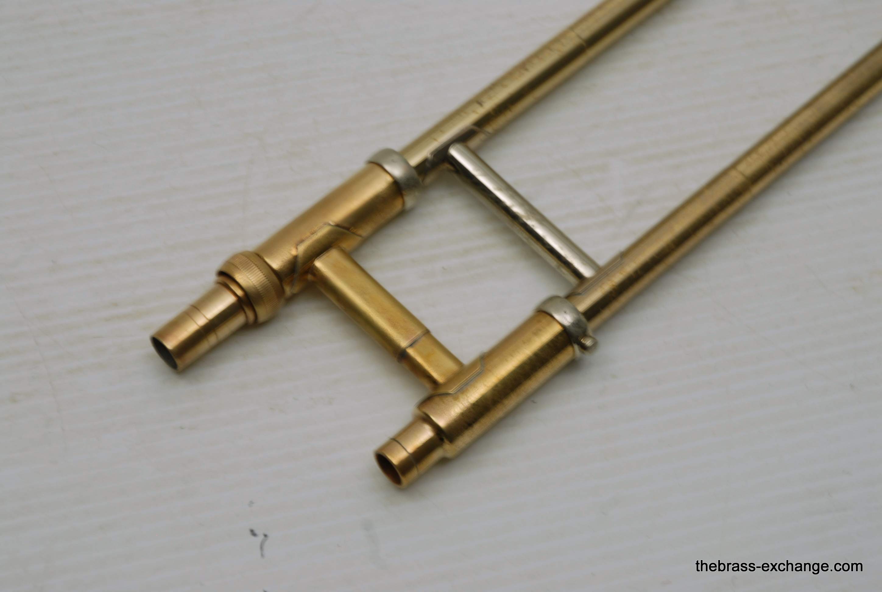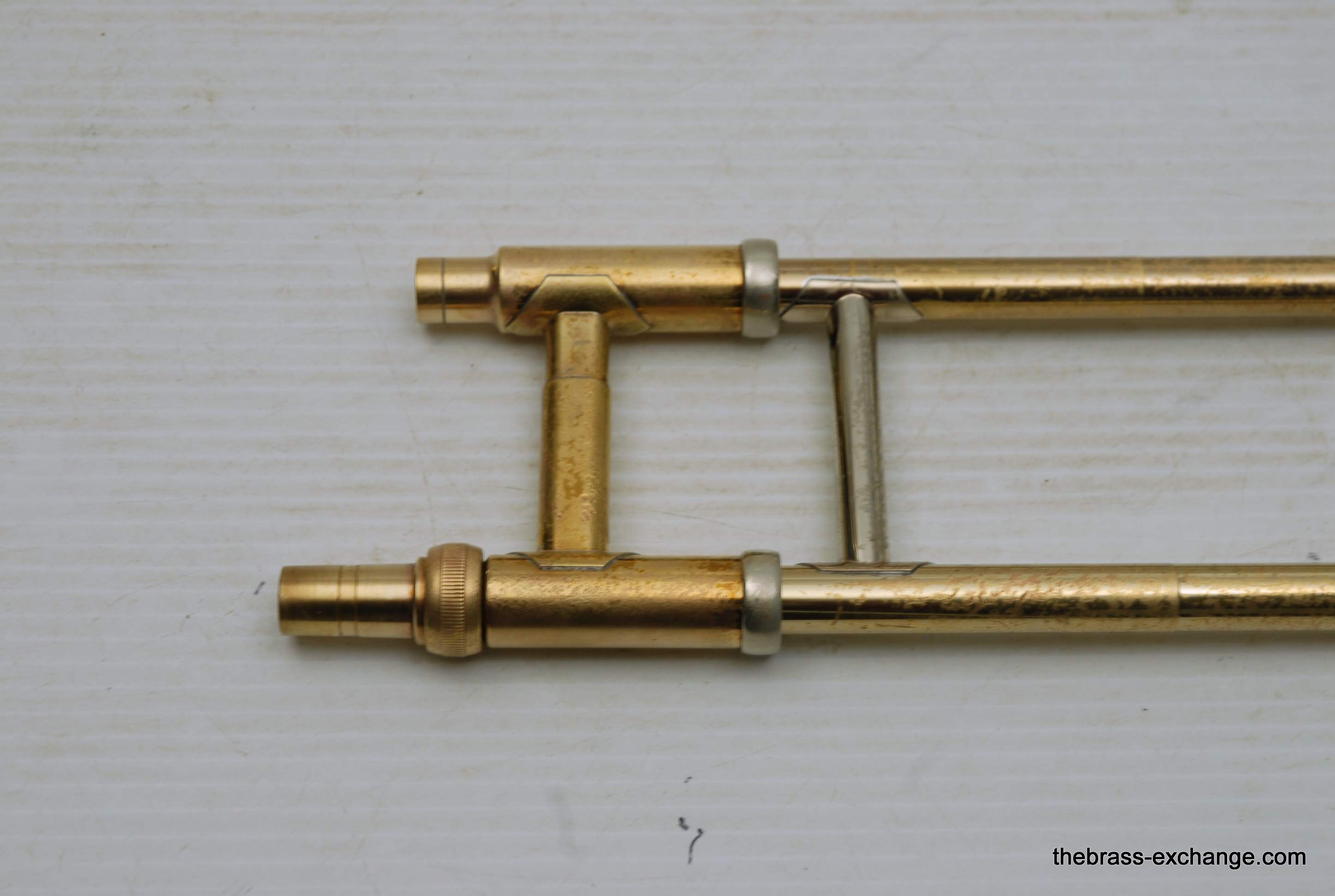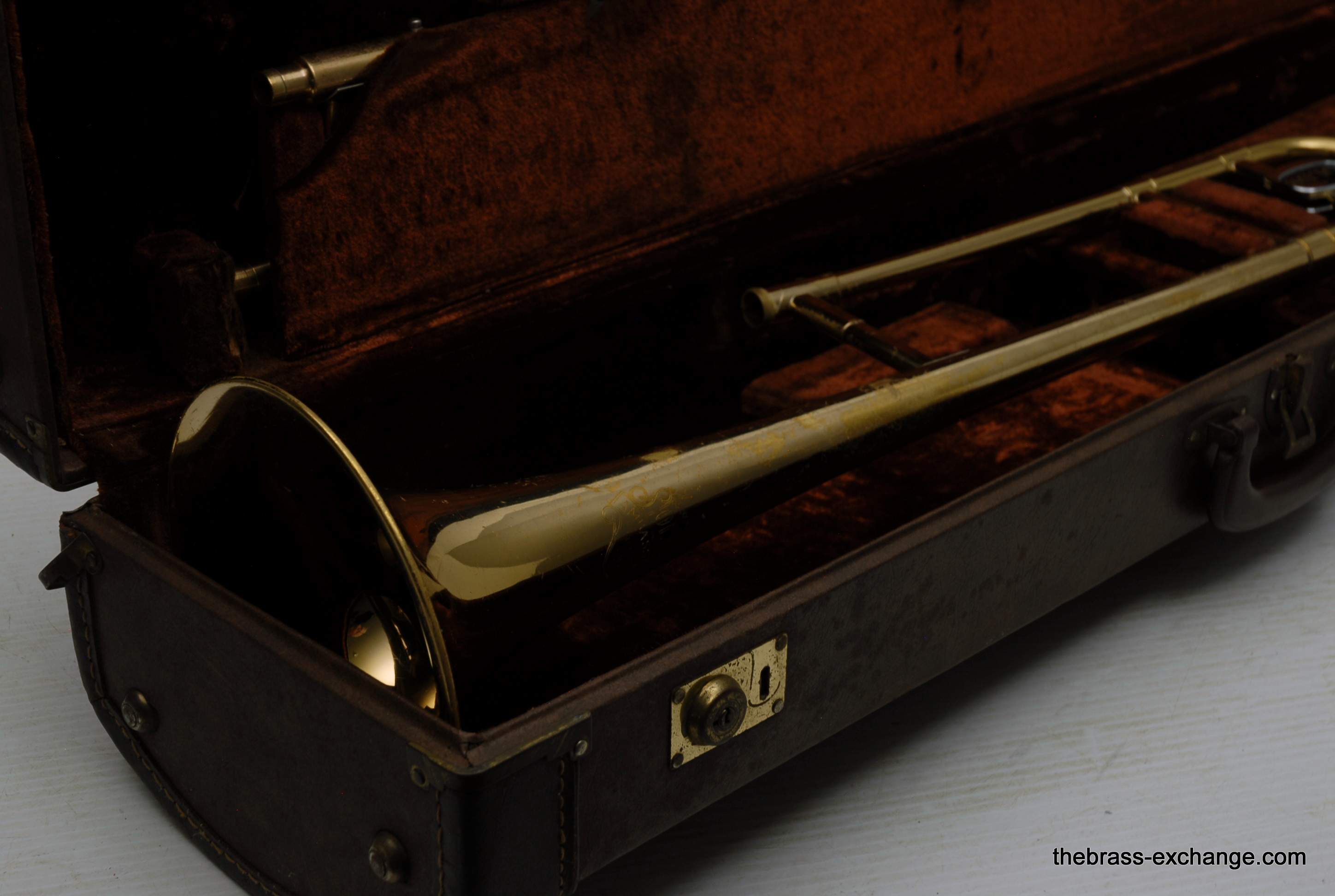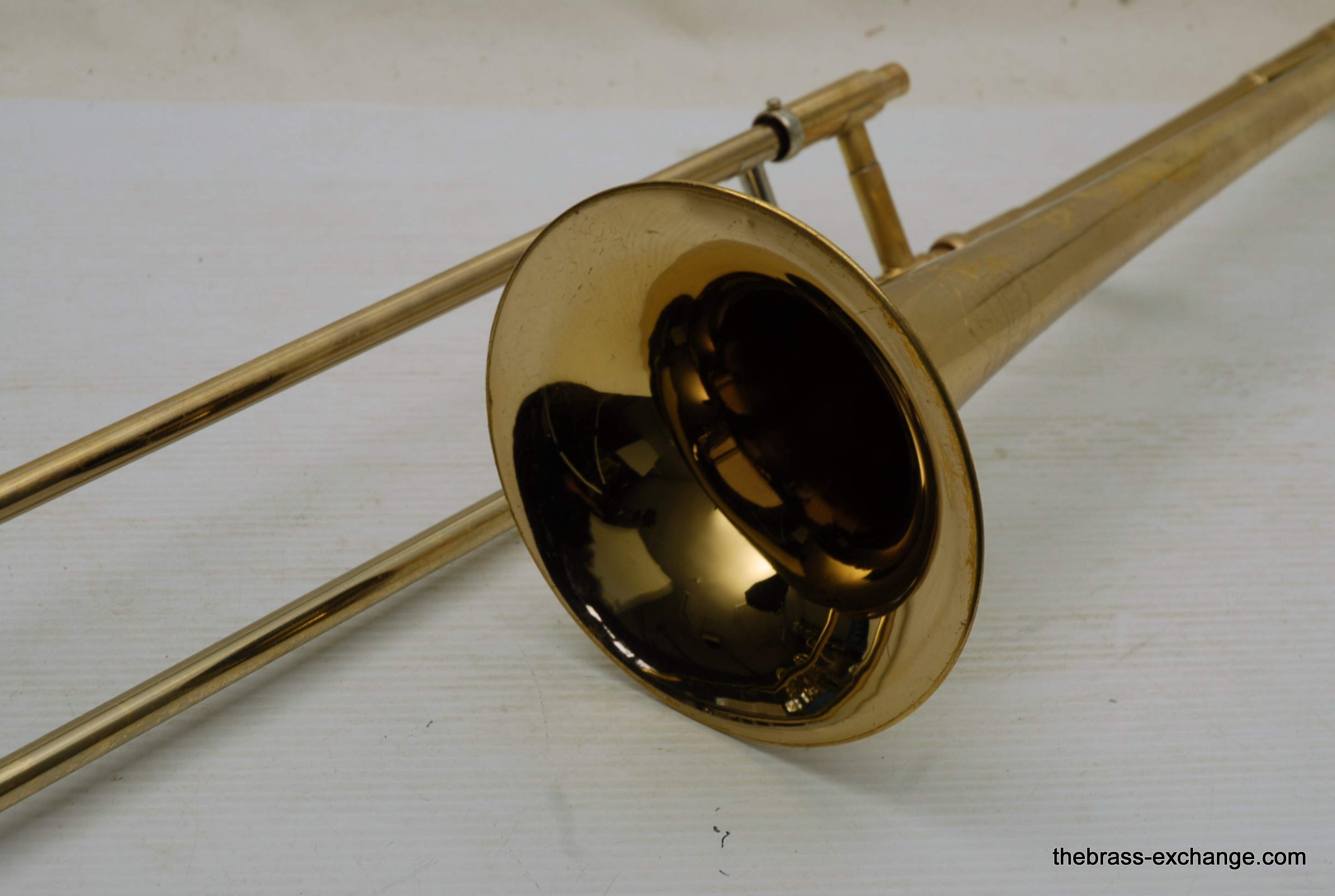 Olds Ambassador Student model trombone made in the 1970's. This is a single owner Ambassador. The horn has not been played since the early 80's and was kept in storage. We took care of full shop service including chemical bath and slide adjust. Olds always had excellent quality instruments from Pro level to student models. All of their instruments were American made. Olds closed it's factory in the late 1970's. They were excellent quality instruments in the final years of F.E. Olds, a true classic American Instrument Factory. This one has 7.5" bell and dual bore handslide for small shank mouthpiece. I personally had one of these from 6th grade all through high school. We bought it used from our local music store. My slide was never very good, but this one has a really nice slide and will not disappoint. This model definitely will do the job for any advancing player from beginner to intermediate. Excellent starter set. Includes case and mouthpiece.