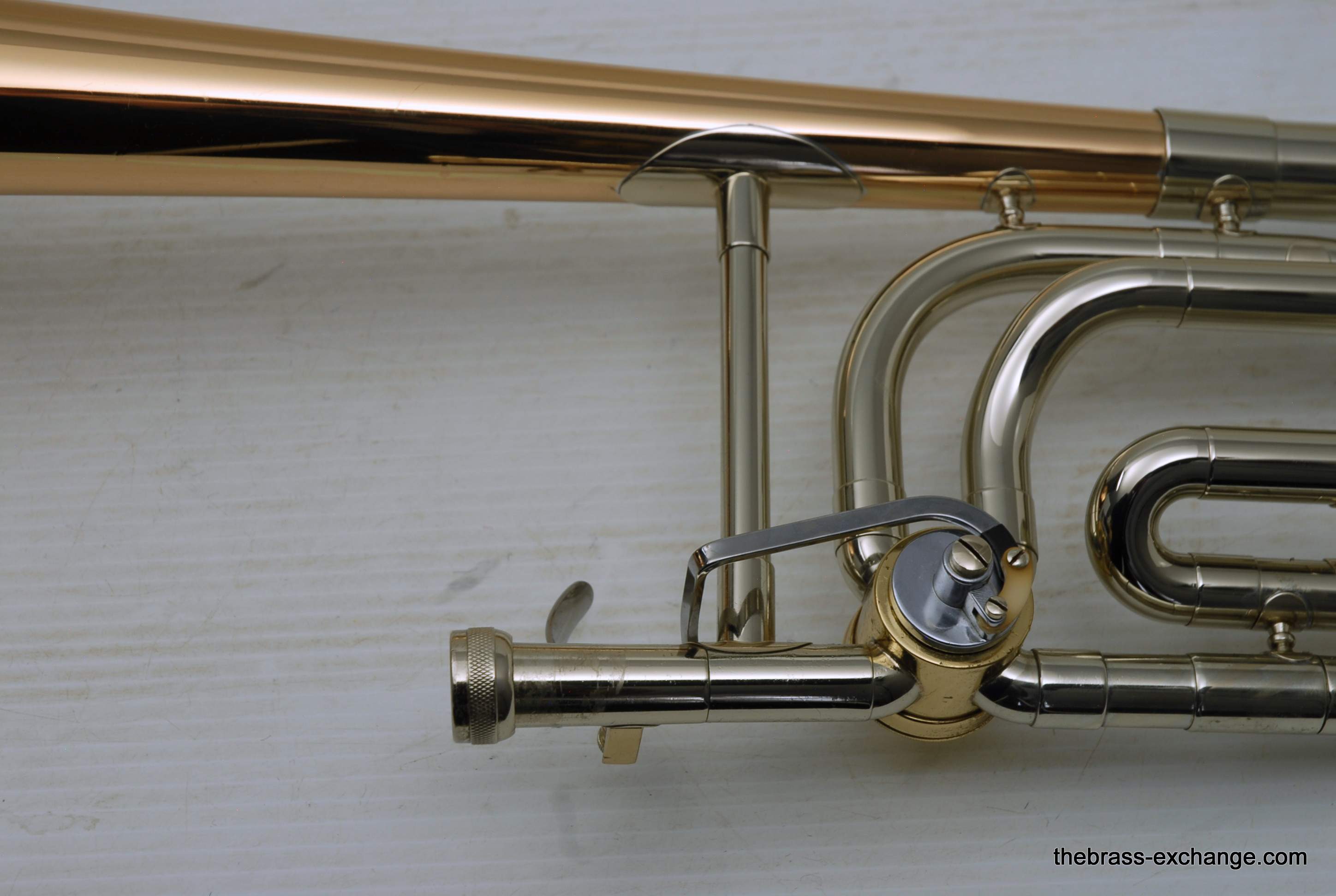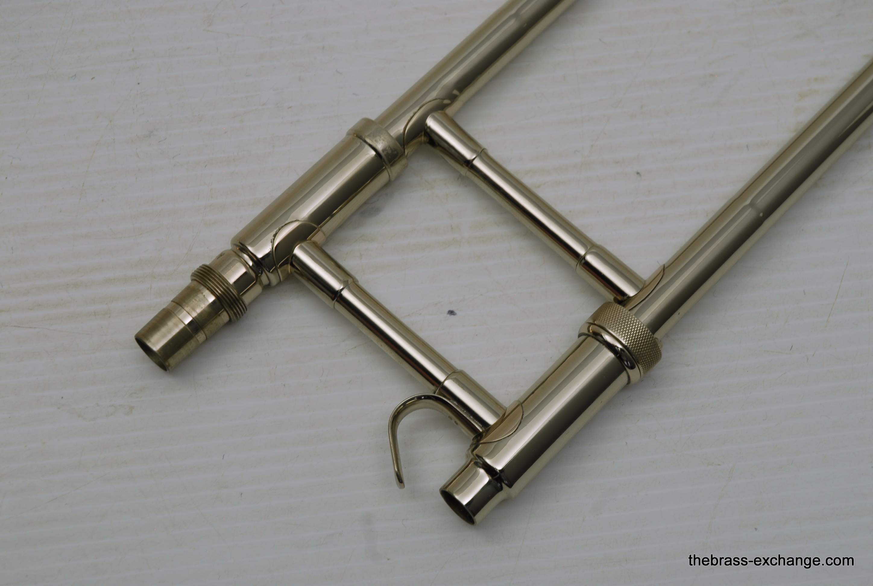 The P-22 features a gold brass bell and nickel silver handslide, delivering a warm, resonant tone with remarkable clarity. The handslide itself is in excellent shape—perfectly straight and smooth, with no plating loss or alignment issues. It's ready to play at a professional level right out of the case.