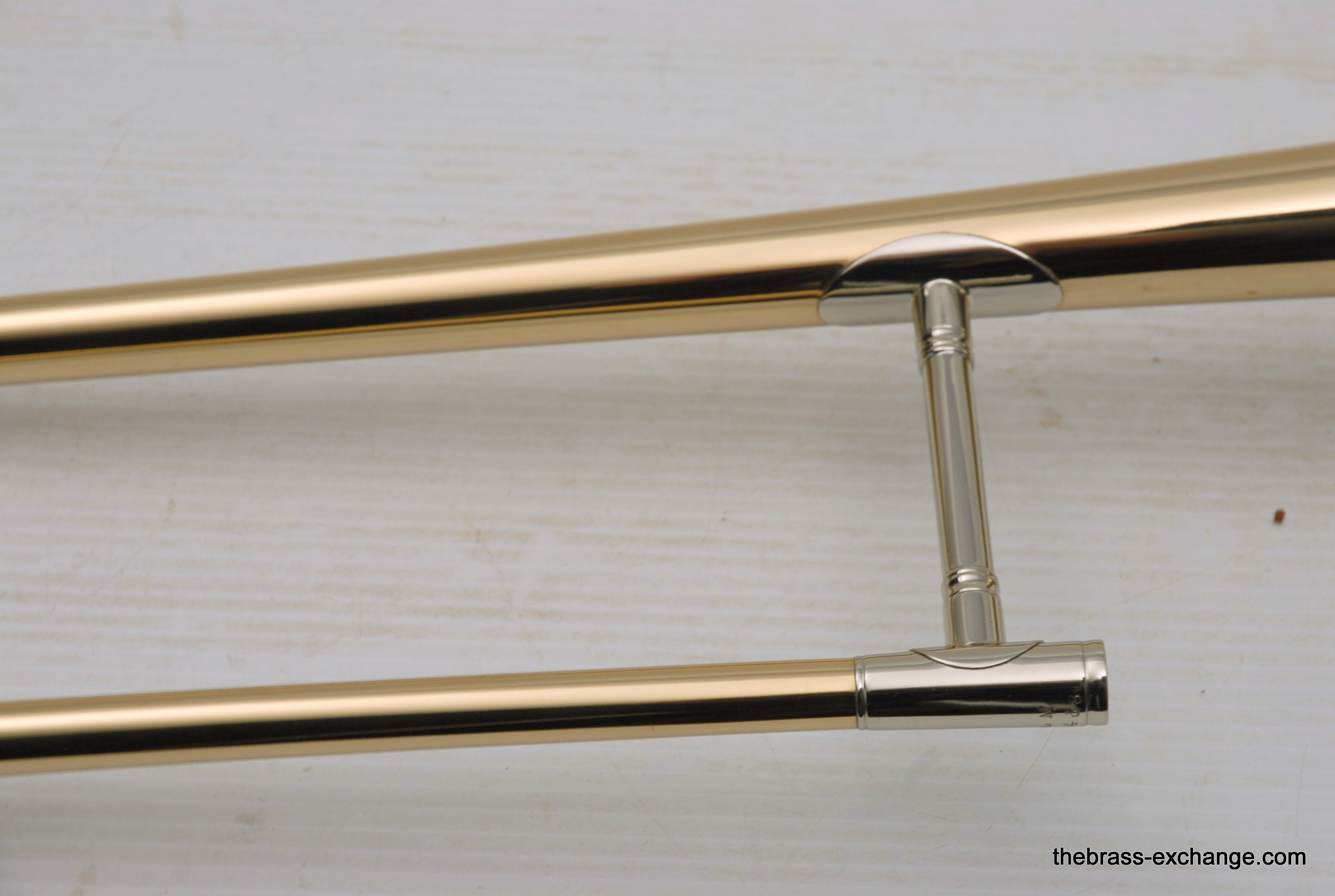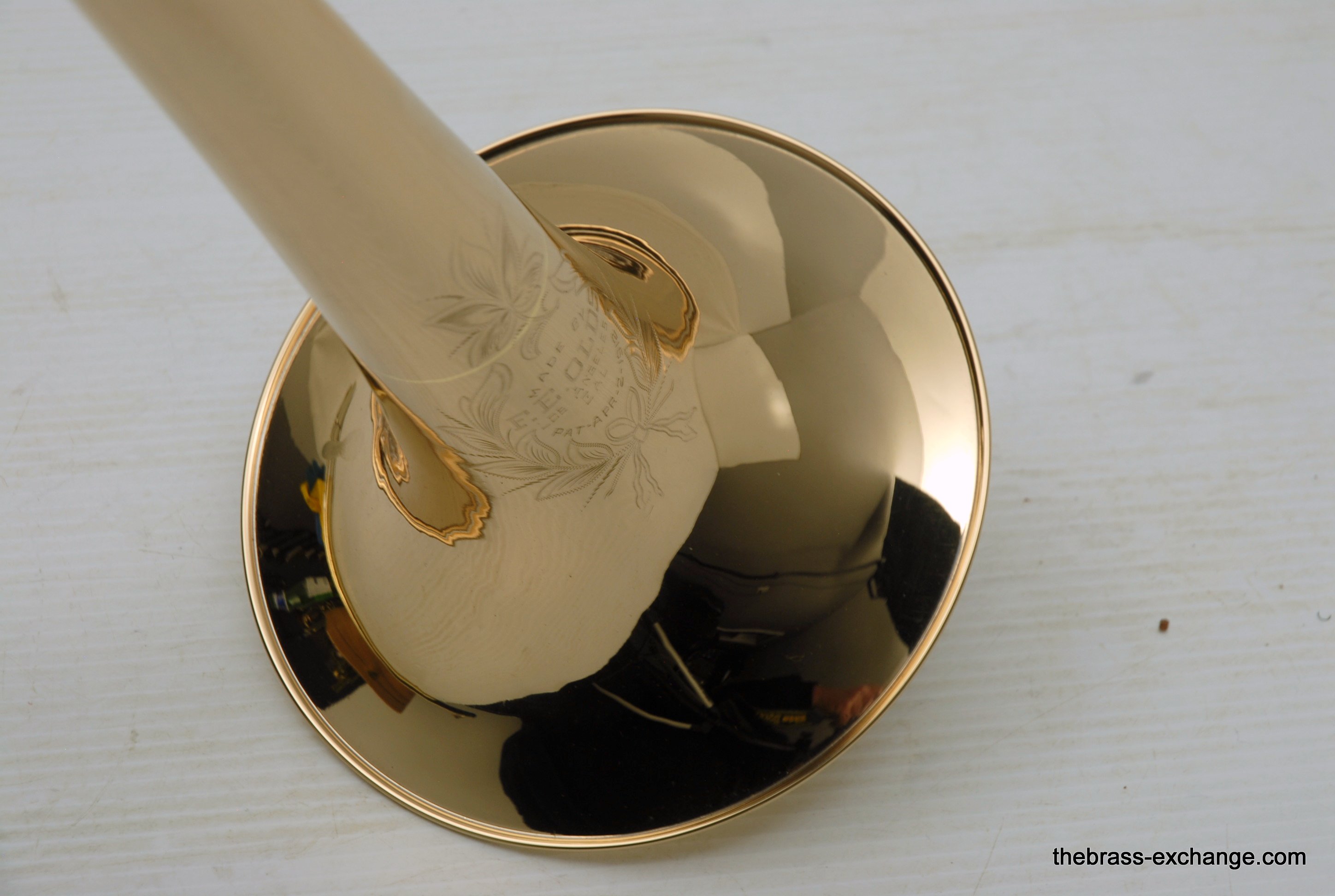 The slide tubes are straight and in perfect condition, with no defects or issues. While it’s unlikely that this is the original finish on the instrument, the restoration work done on it is so expertly done that it’s almost indistinguishable from the original factory work. The lacquer is beautiful, with perfect color and no surface scratches or swirl marks. All the engraving remains crisp, and the stamped serial numbers and markings show no signs of overbuffing, further indicating the high level of craftsmanship that went into the restoration.