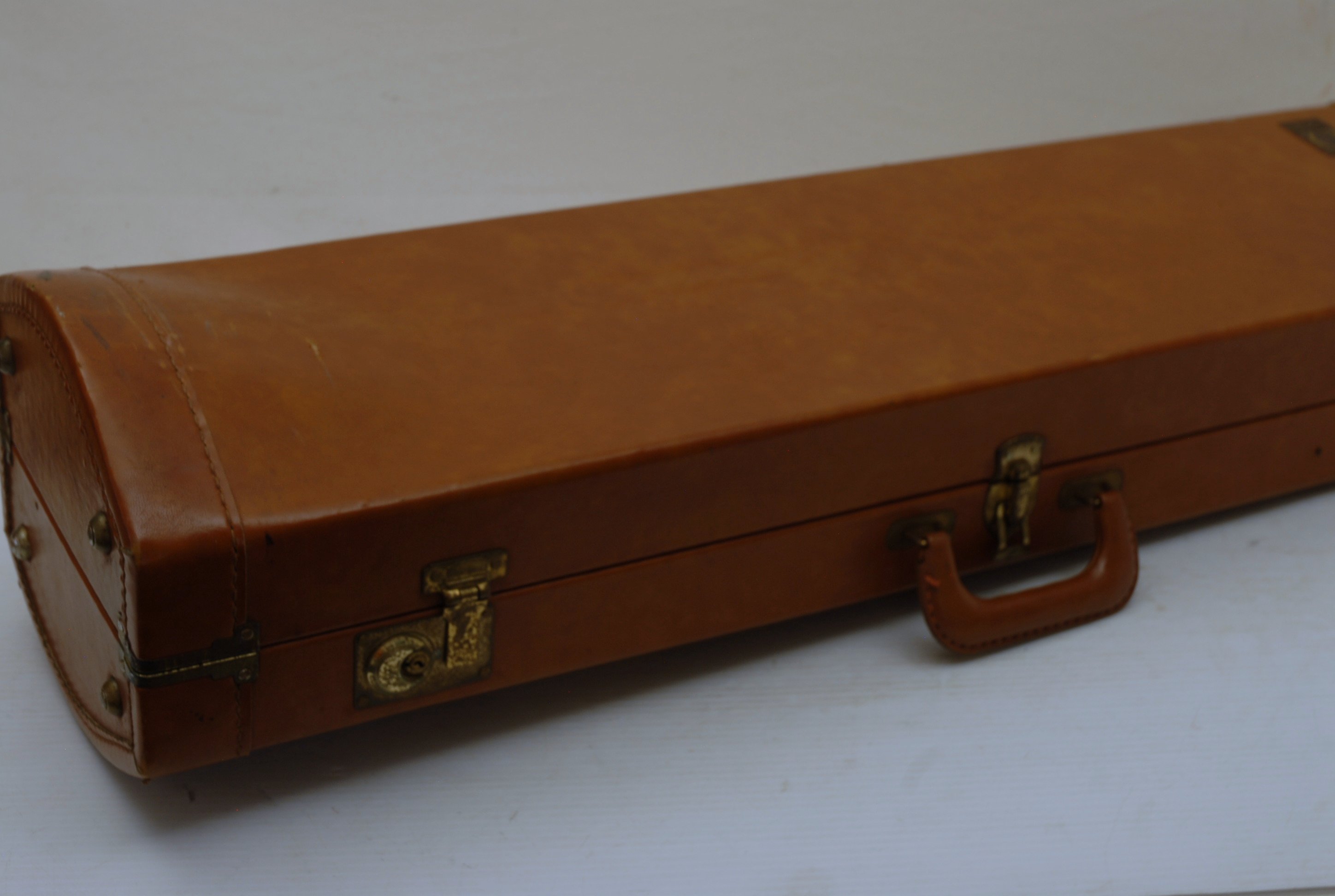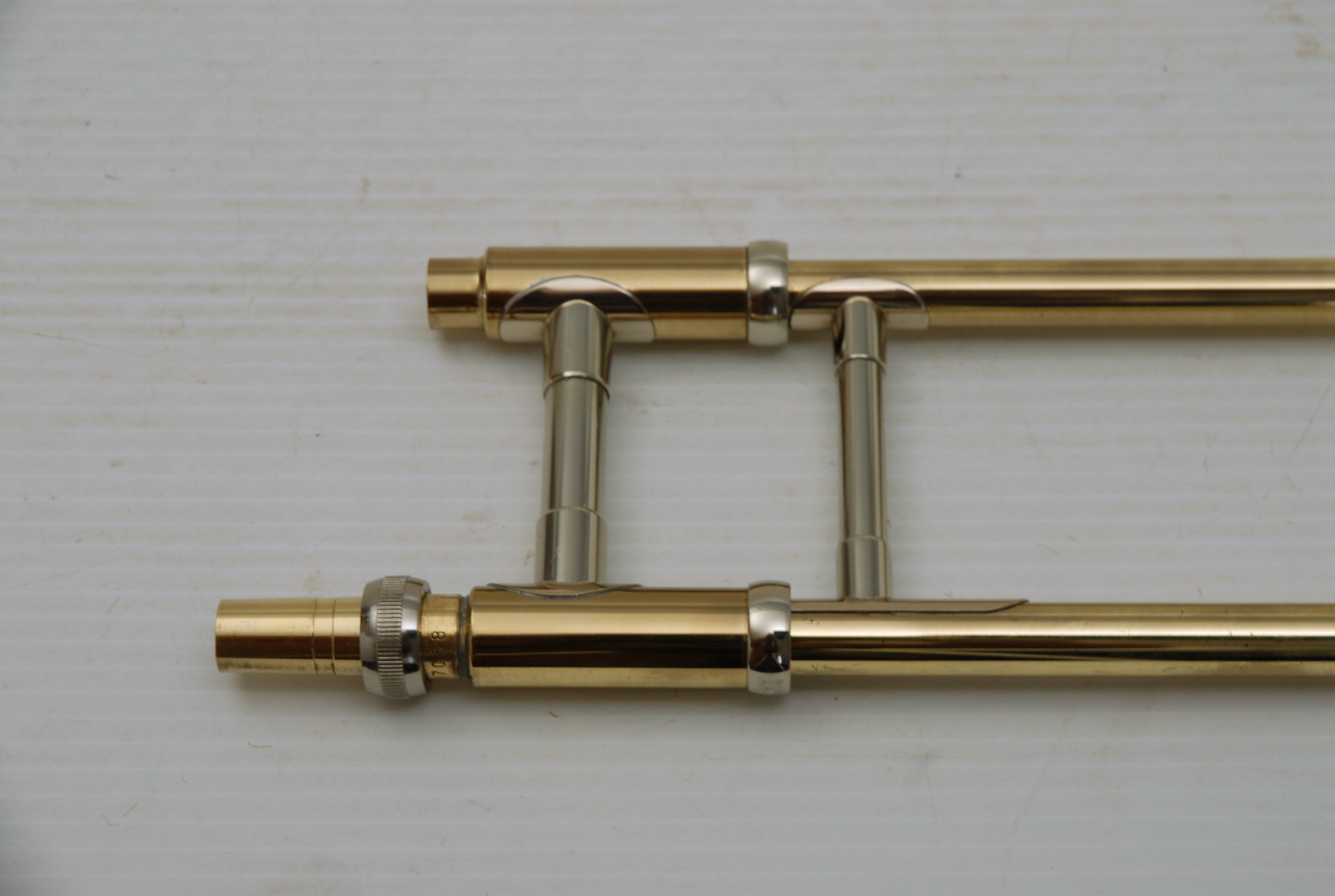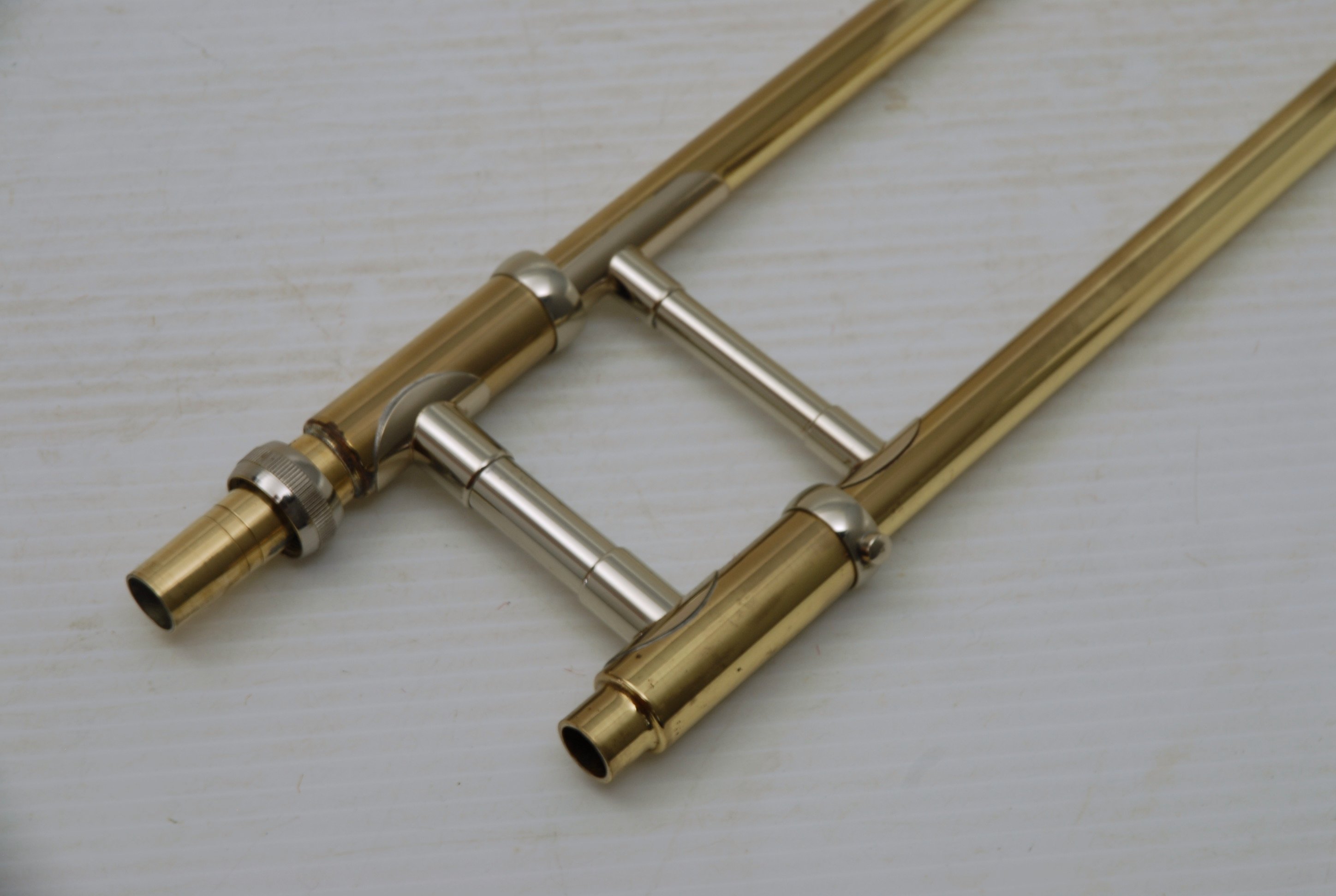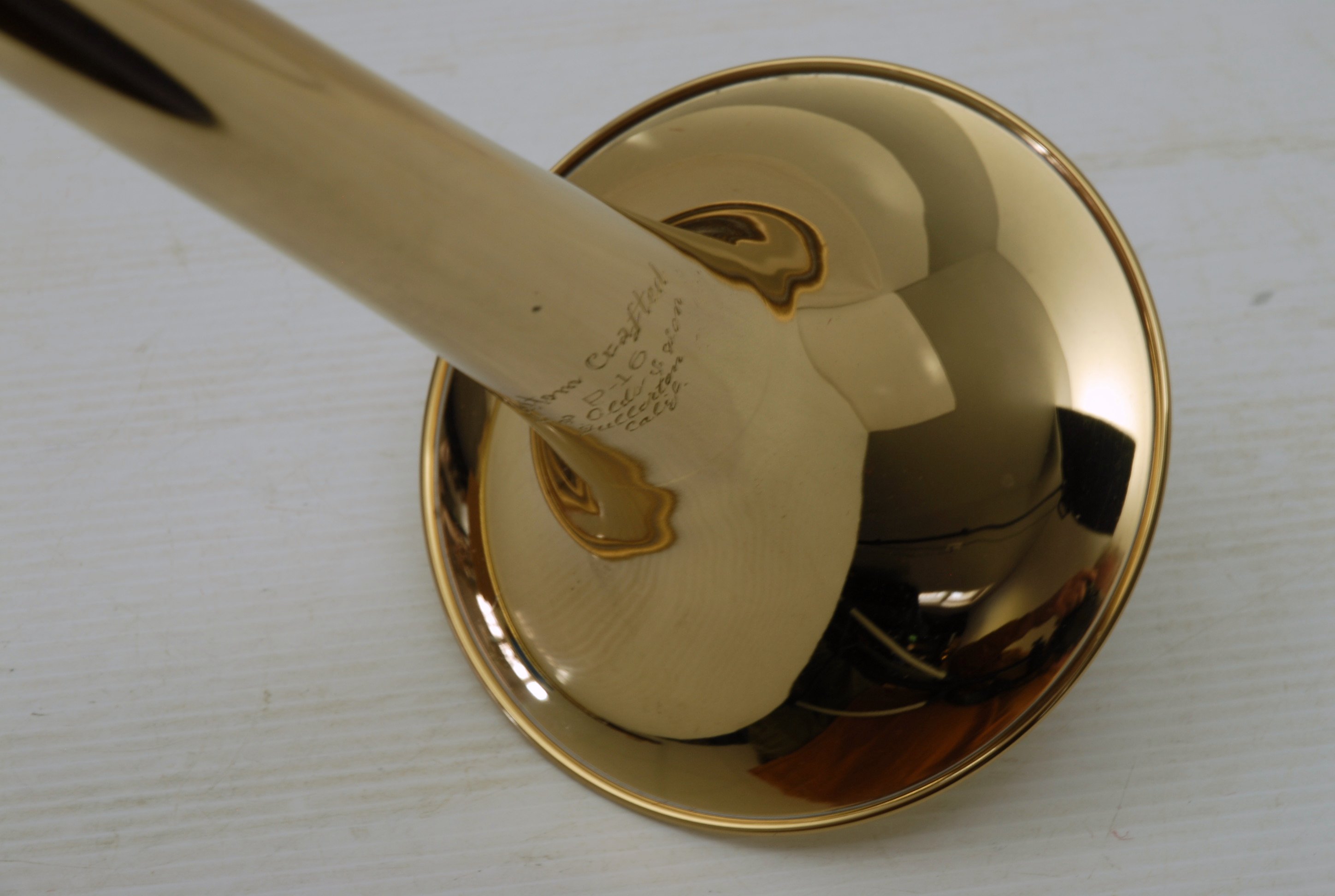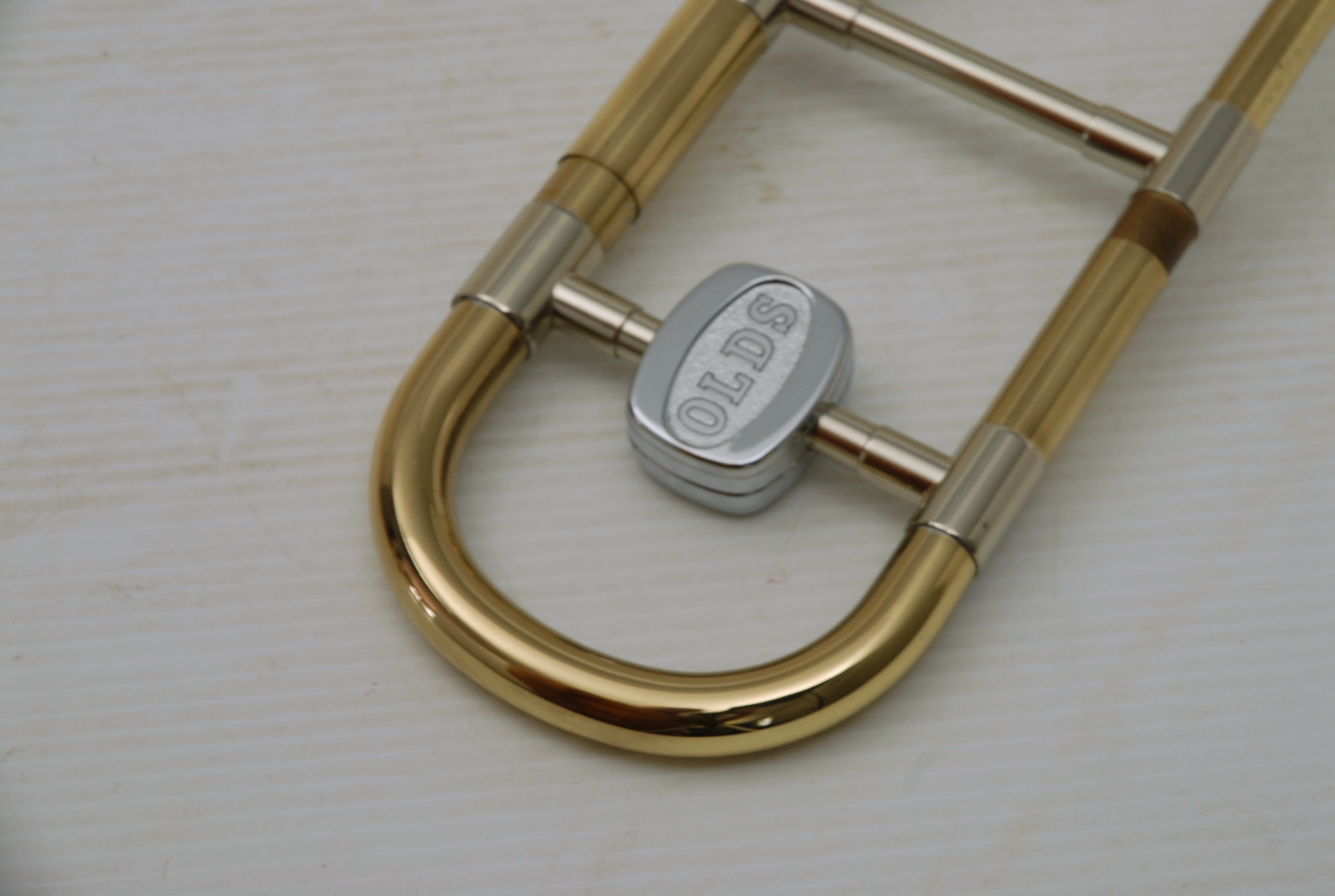 Olds P-16 Fullerton CA, made in the mid-late 1970's. This is a lightweight .500 bore jazz tenor. Has 7.5" lightweight yellow brass bell, and lighweight brass handslide. Has had full shop service including slide set-up. Probably the best slide ever on this model. Plays quick and lively. Would be a great alternative to any player looking for vintage American craftsmanship in an instrument. Excellent quality, made to last a lifetime. This one has not had any trauma or big repairs, and plays like a dream. Original case also in excellent condition. In-stock for immediate delivery.