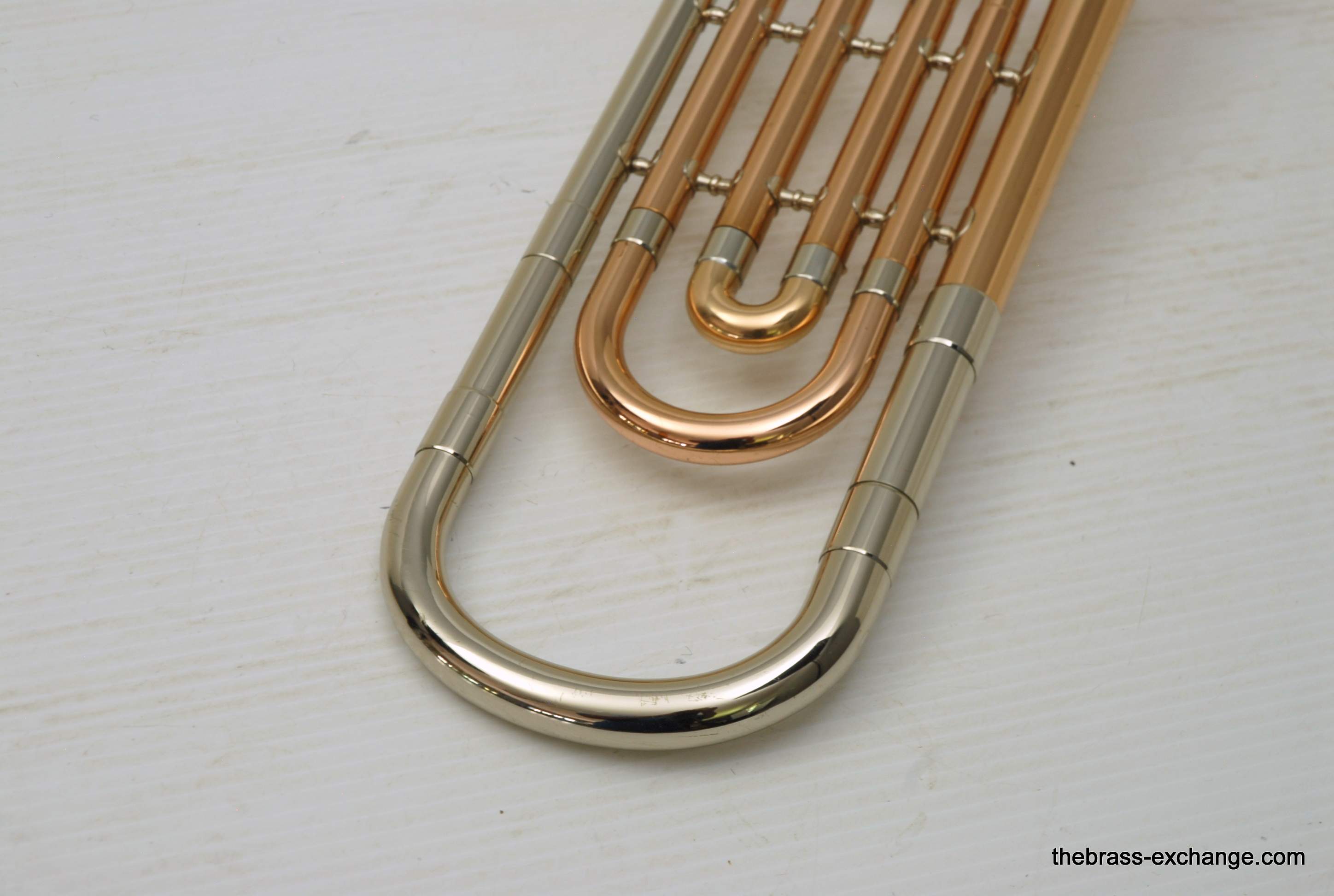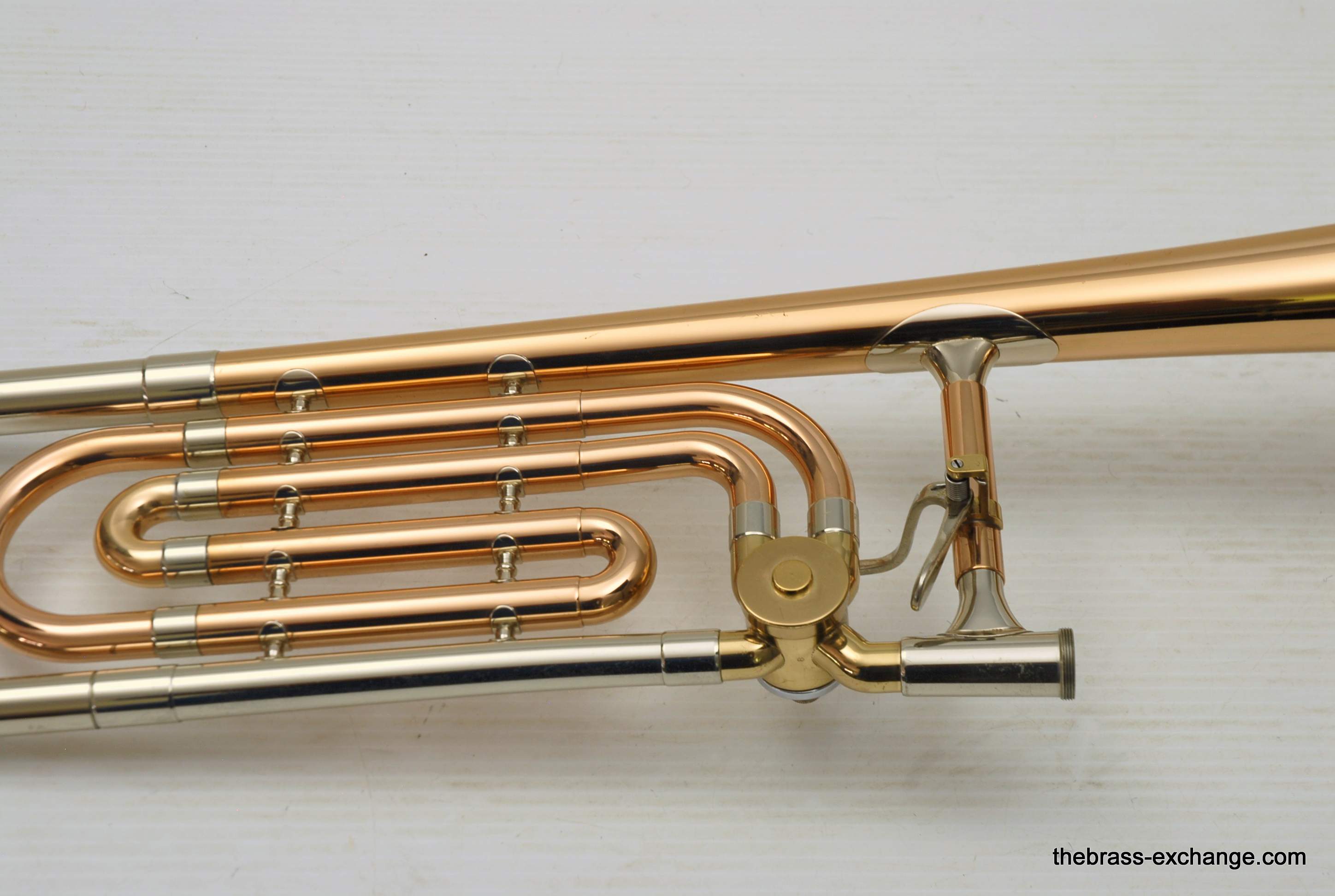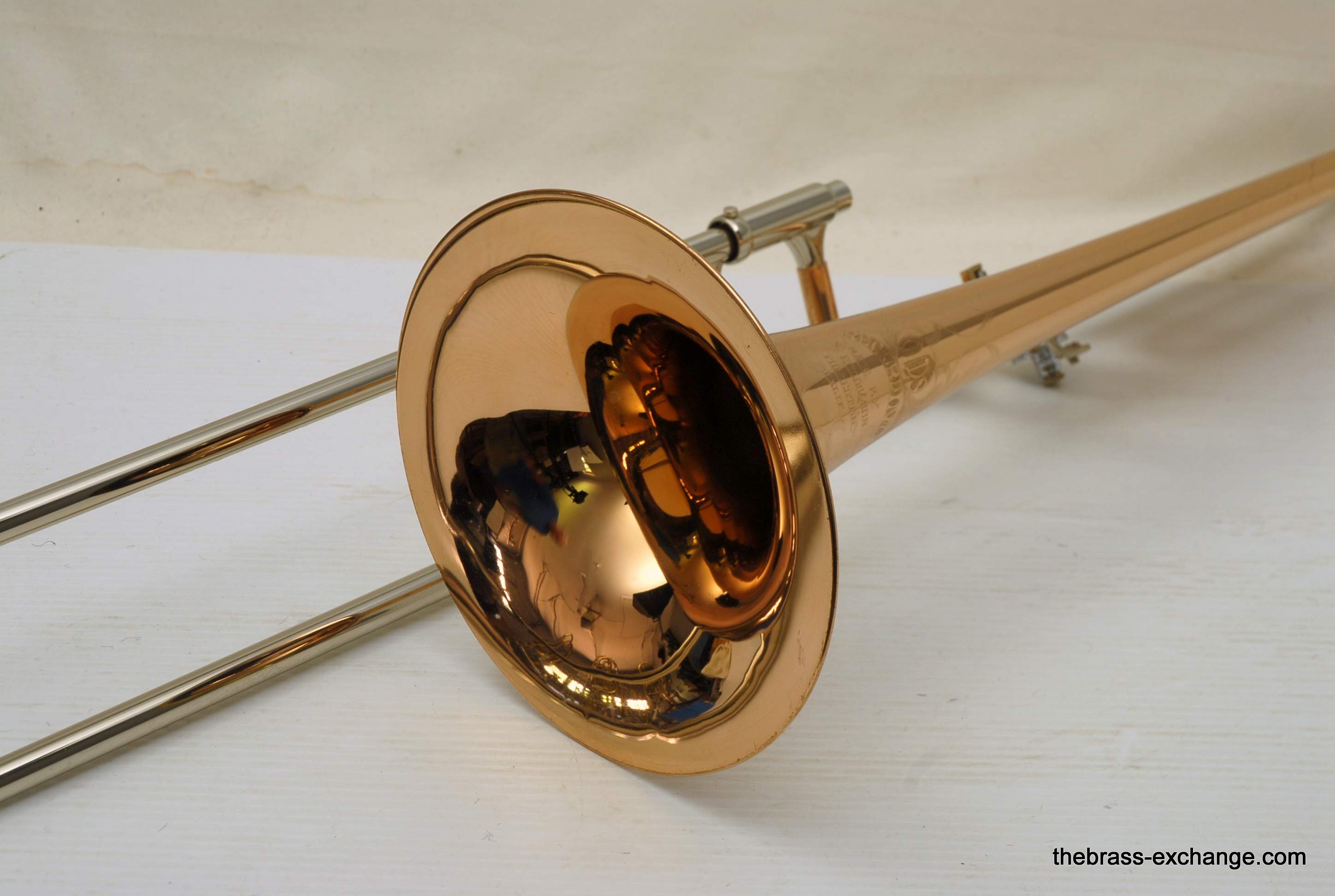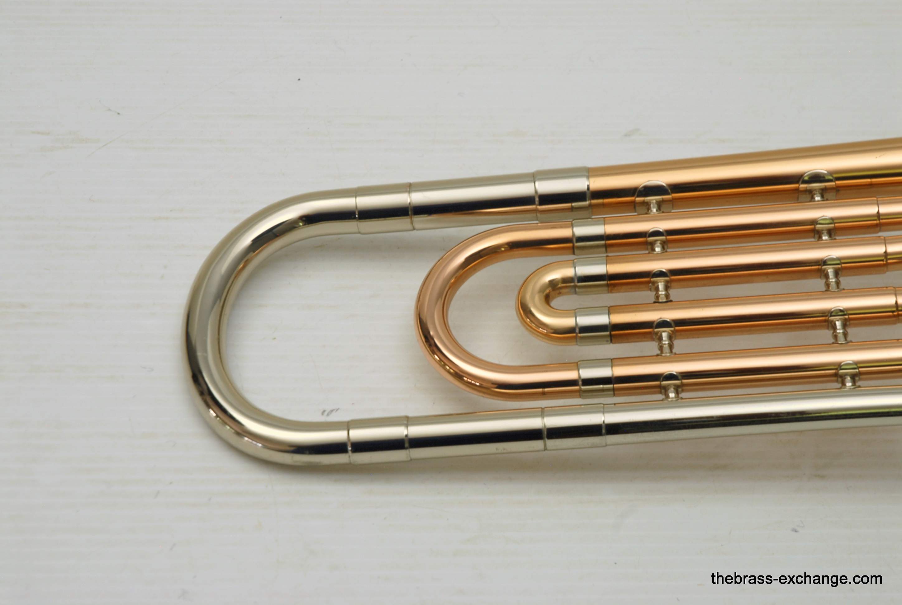 Olds Recording with F attachment. This is a very nice 1960's model, all original parts and lacquer. Has 8.5" gold brass bell, lightweight dual bore nickel silver handslide for small shank mouthpiece. This horn has never been dented damaged or repaired. Has had full shop service is super clean. No issues with playability. Fluted hand slide is near perfect, super straight an no tension, drag, or inner tube plating loss. It really is amazing that this horn has survived the years in such amazing condition. Original coffin style case also in perfect condition. Would be an obvious choice for an advancing player looking for professional level vintage. Is ideal for all around band use, including jazz band. Dual Bore size and small shank mouthpiece facilitates upper register. Gold/Rose Brass Bell Creates immediate warmth in sound. This is the type of horn that plays so easily that you get hooked on it right away, fall in love with beautiful sound. There is a reason why F.E. Olds trombones were so popular for over a half a decade. This one is very good. In-stock for immediate delivery.