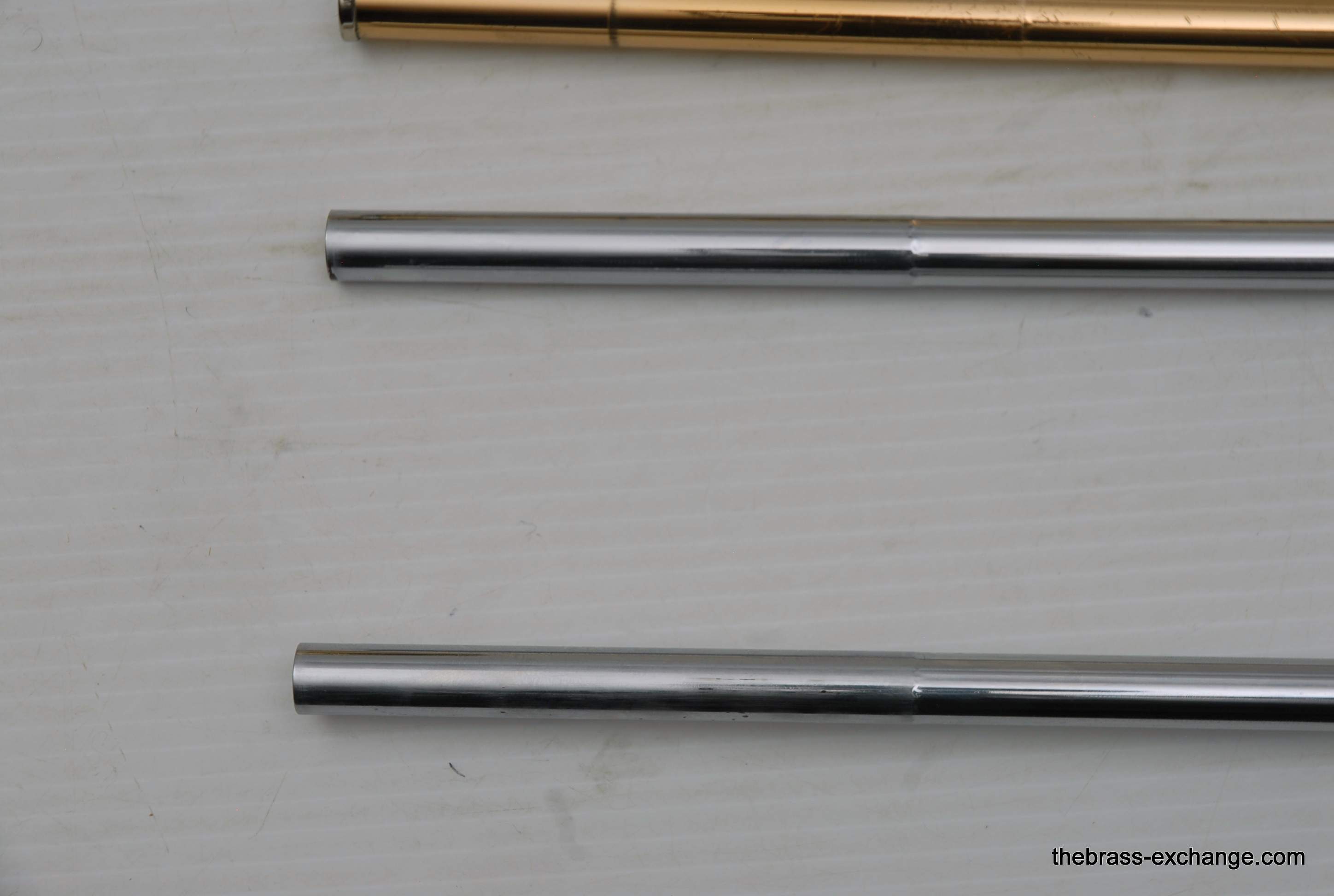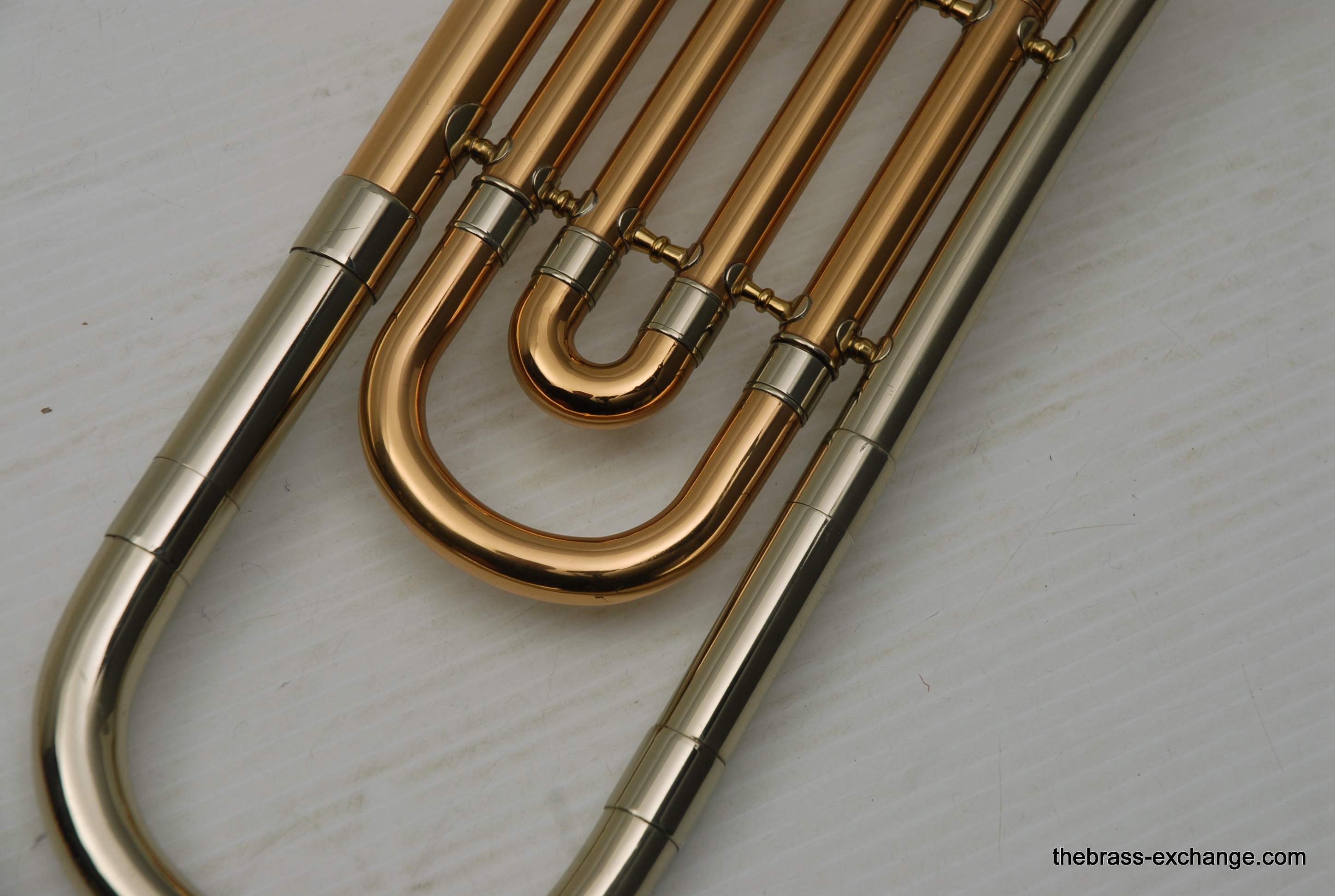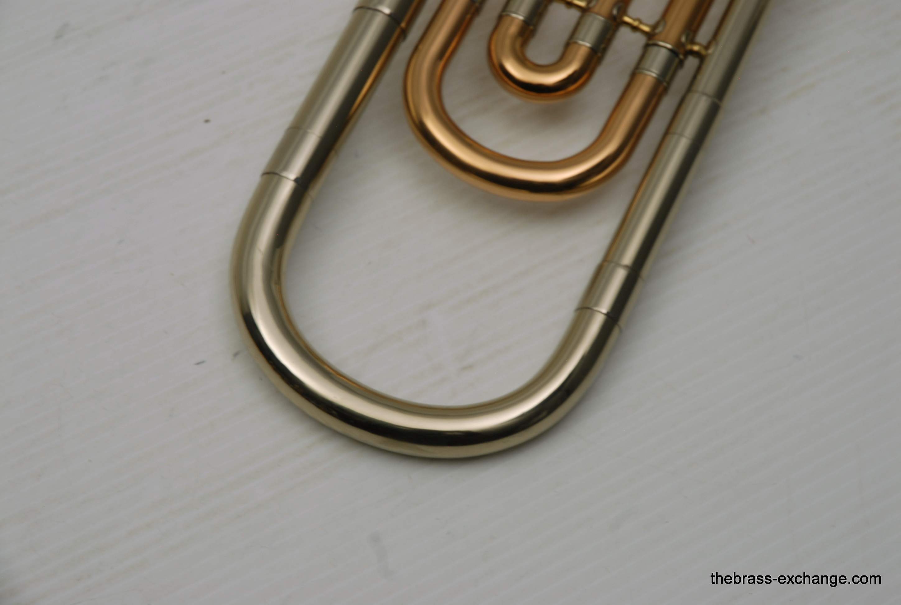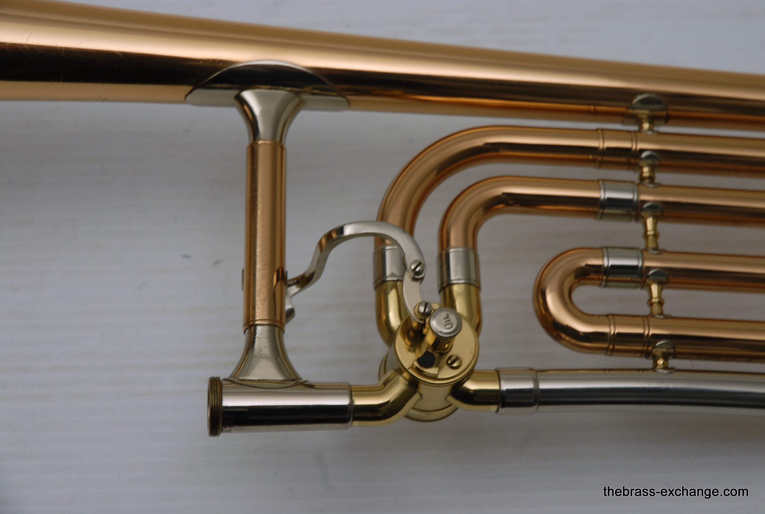 Olds Recording Trombone with F attachment, Vintage 1952 Los Angeles, CA Model.  Has 8.5" gold brass bell with dual bore gold brass handslide.  Later models had nickel silver handslides.  Dual bore .495-.510 fluted inner slide tubes- octagonal shaped, original leadpipe for small shank tenor mouthpiece.  All original parts and lacquer on this instrument.  Has had complete shop once over and is without any defects or issues with playability.  Both and collector and players horn.  Would be ideal for either a young player looking for a nice mid bore or an advanced adult player looking to play something smaller but still 8.5" bell sound.  Olds is known for their quality.  This instrument is proof that they were built to last a lifetime.  Has a new Marco Magi NN-TRK Case.  We sell these cases separately for $395.  Here is a link:  https://www.thebrass-exchange.com/content/trombone-large-tenor-nn-trk
