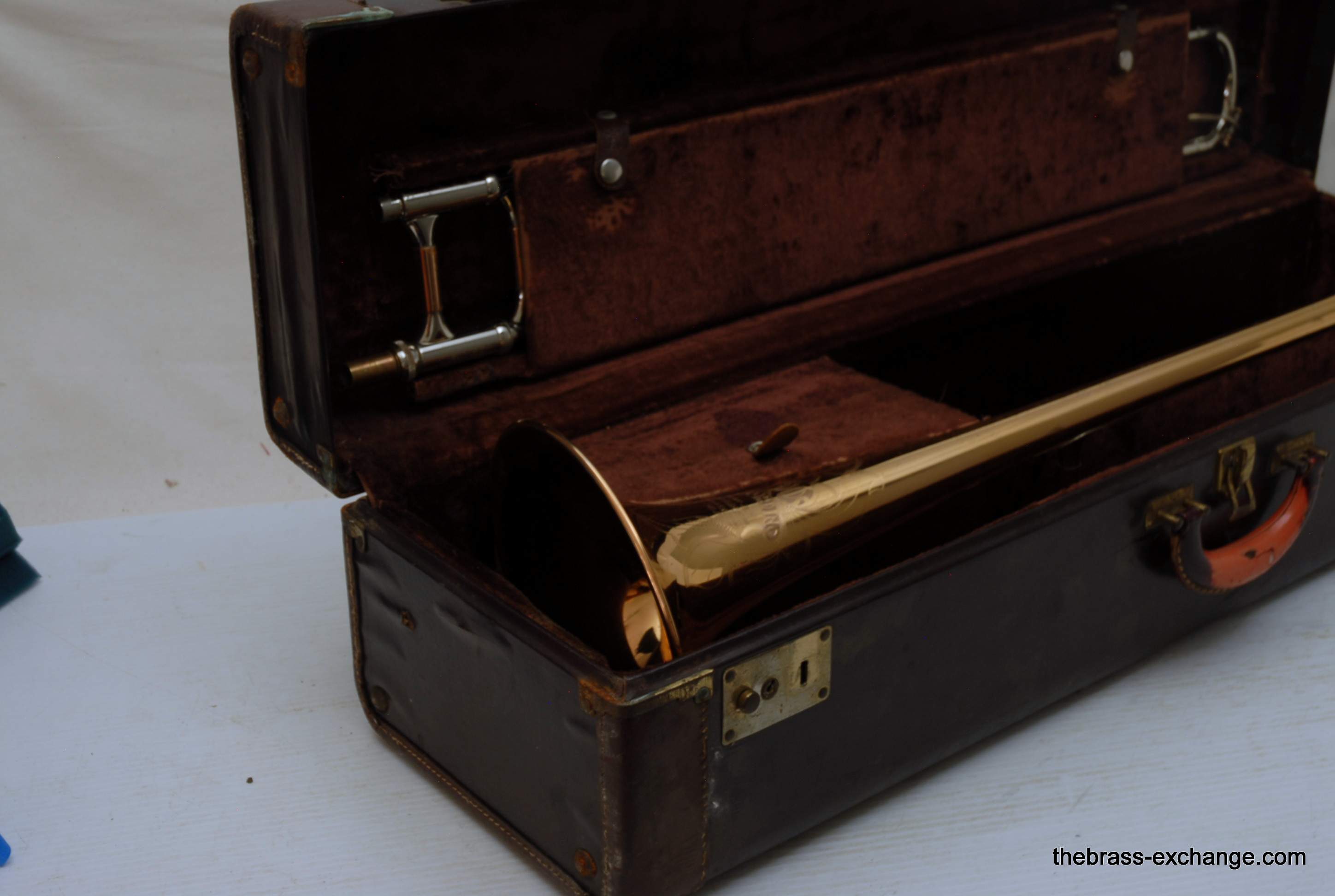 We’ve had many Olds Recording models come through The Brass Exchange over the years, and this one stood out for its solid, vibrant playing feel and exceptionally clean condition. The handslide was perfectly straight with flawless inner tubes and superior alignment, delivering smooth, fast action and effortless response. All parts were original, with factory lacquer intact across the bell, slide, and tuning components.