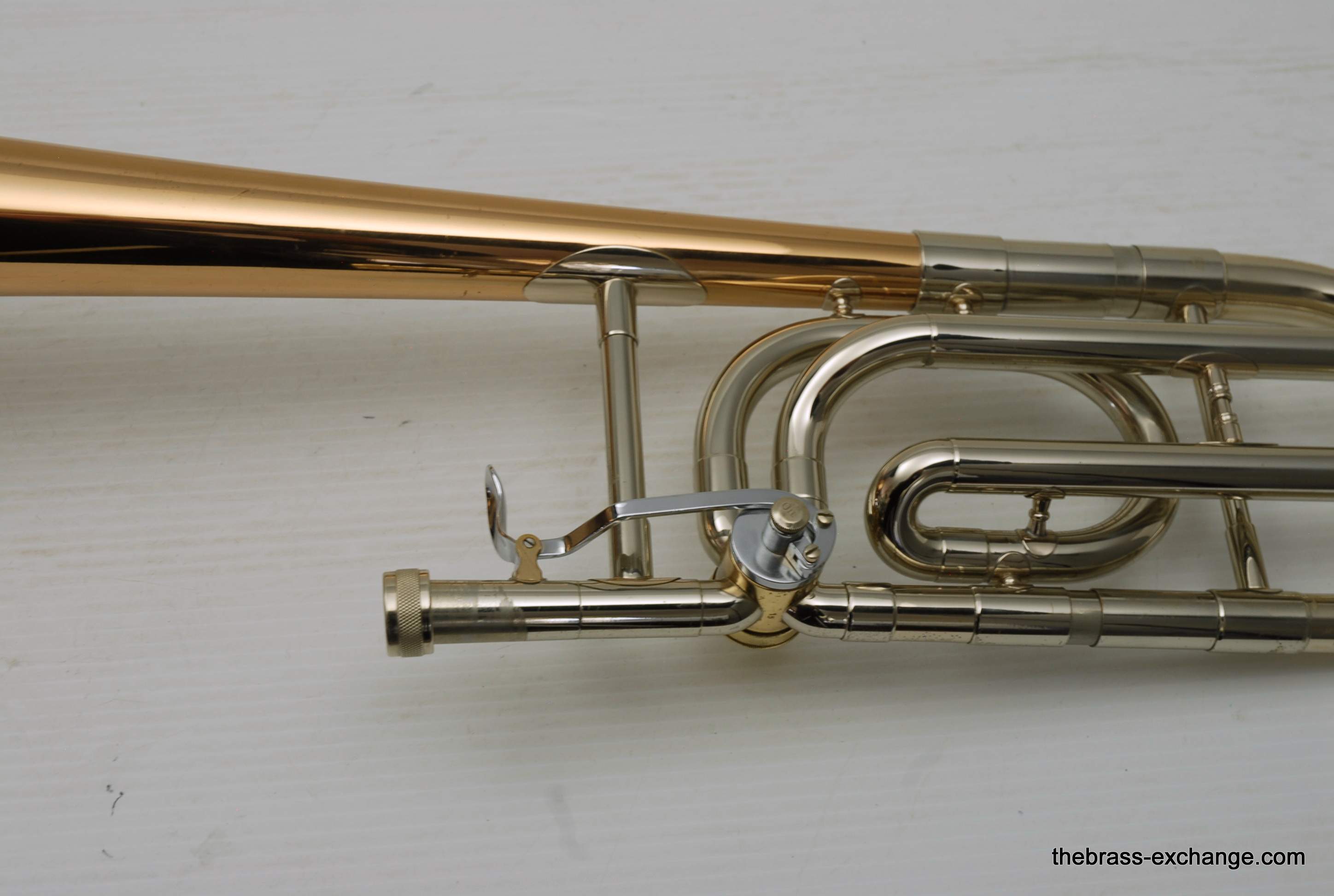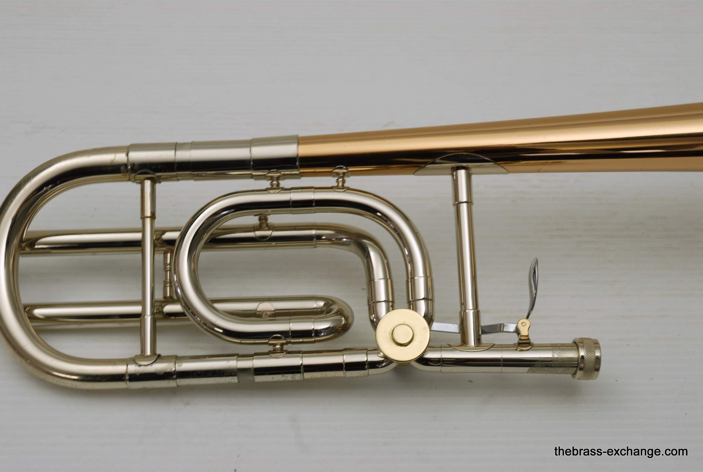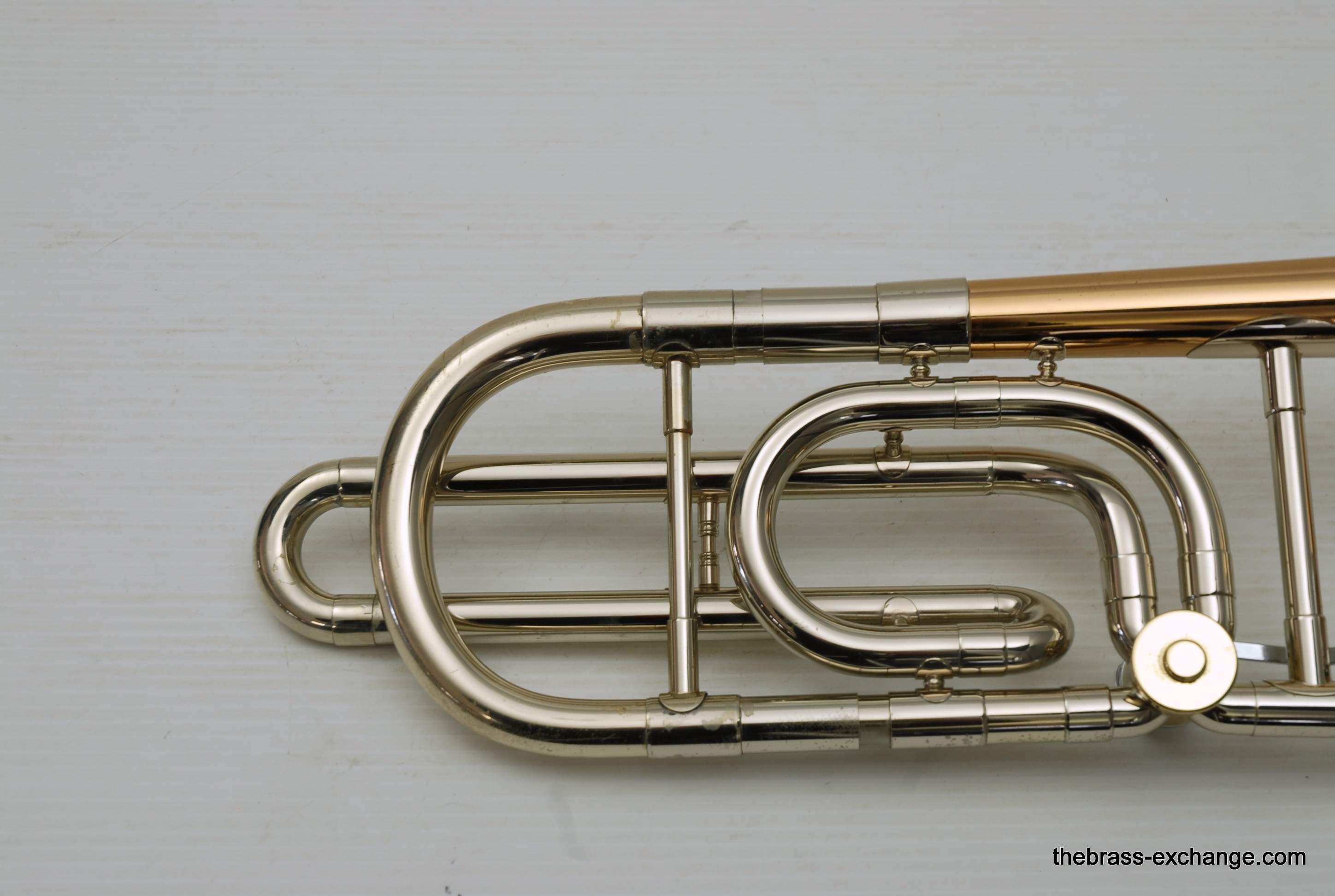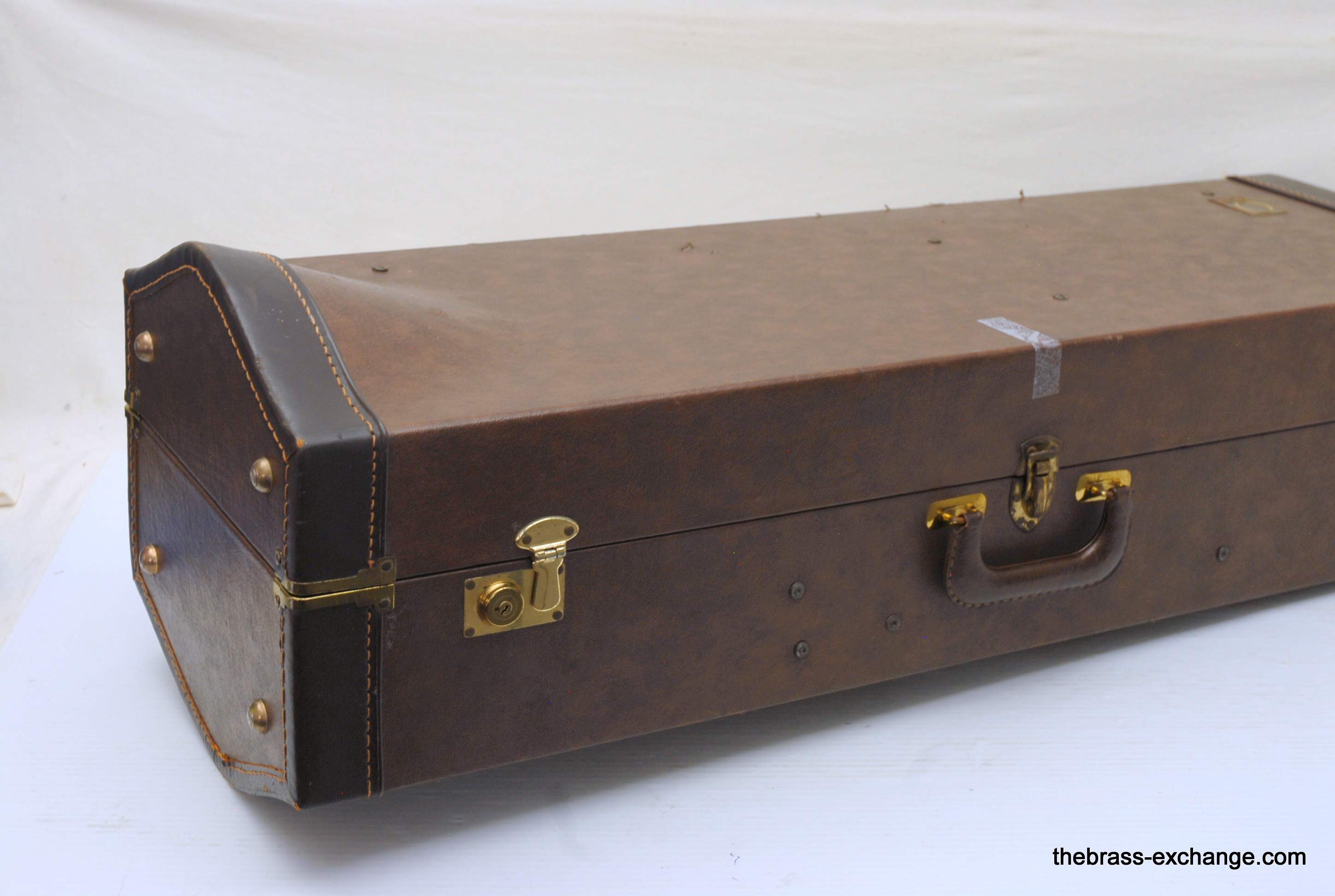 Olds S-22 Bass Trombone, Single Valve. 1960's Model SN 789574 All original parts, lacquer, case. Has 9" gold brass bell, nickel silver bass bore .562 handslide, original mouthpiece and case. This is a rare find. Vintage olds single bass in very good condition. Totally straight horn, no signs of previous repair or damage, does have some smooth plating wear on inner tube, but not a hindrance to playability. It is a great horn. Ideal for anyone looking to play a smaller bass, great for big band, even orchestra where a second valve is not needed. George Roberts played a single valve bass his entire career, and it never held him back.