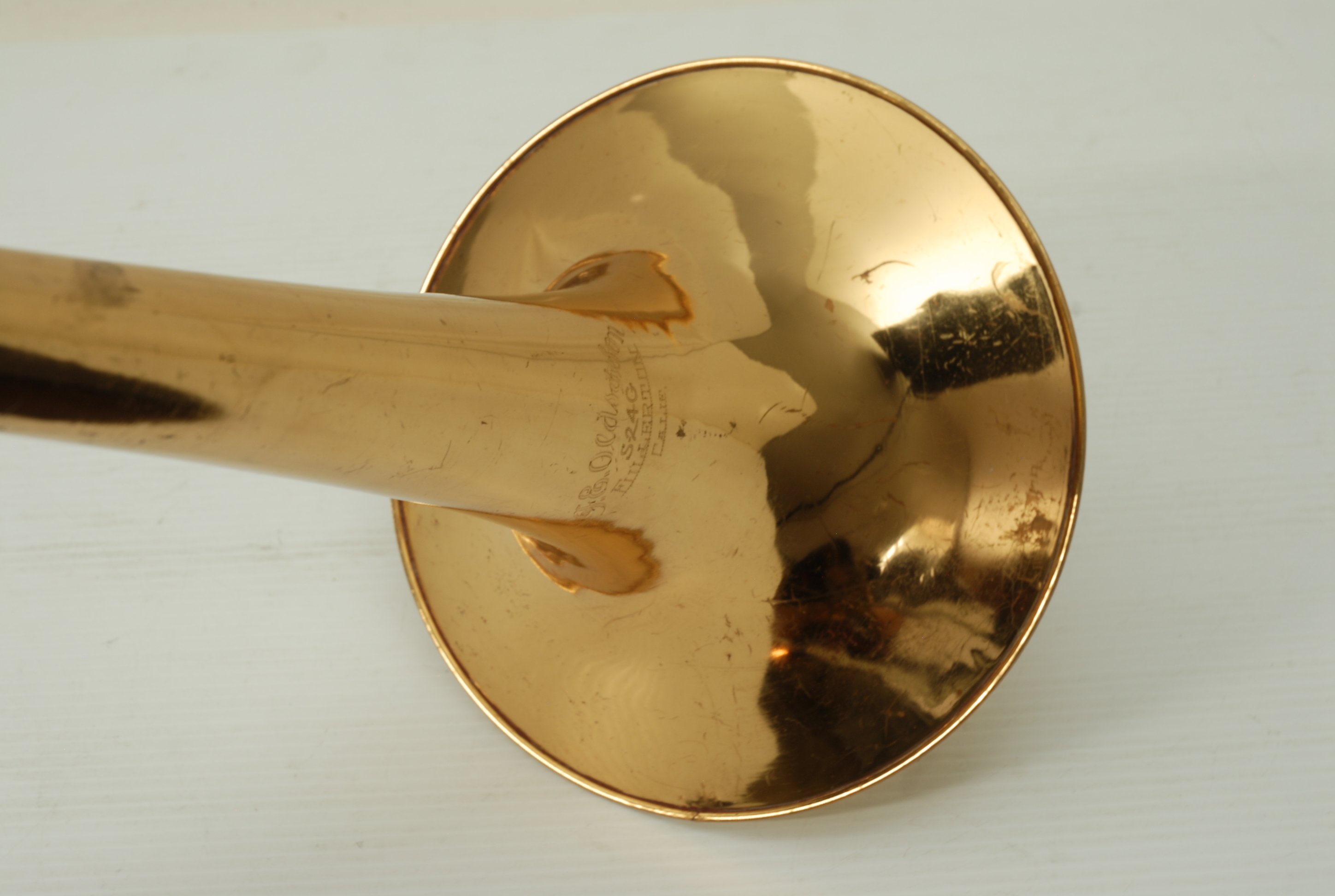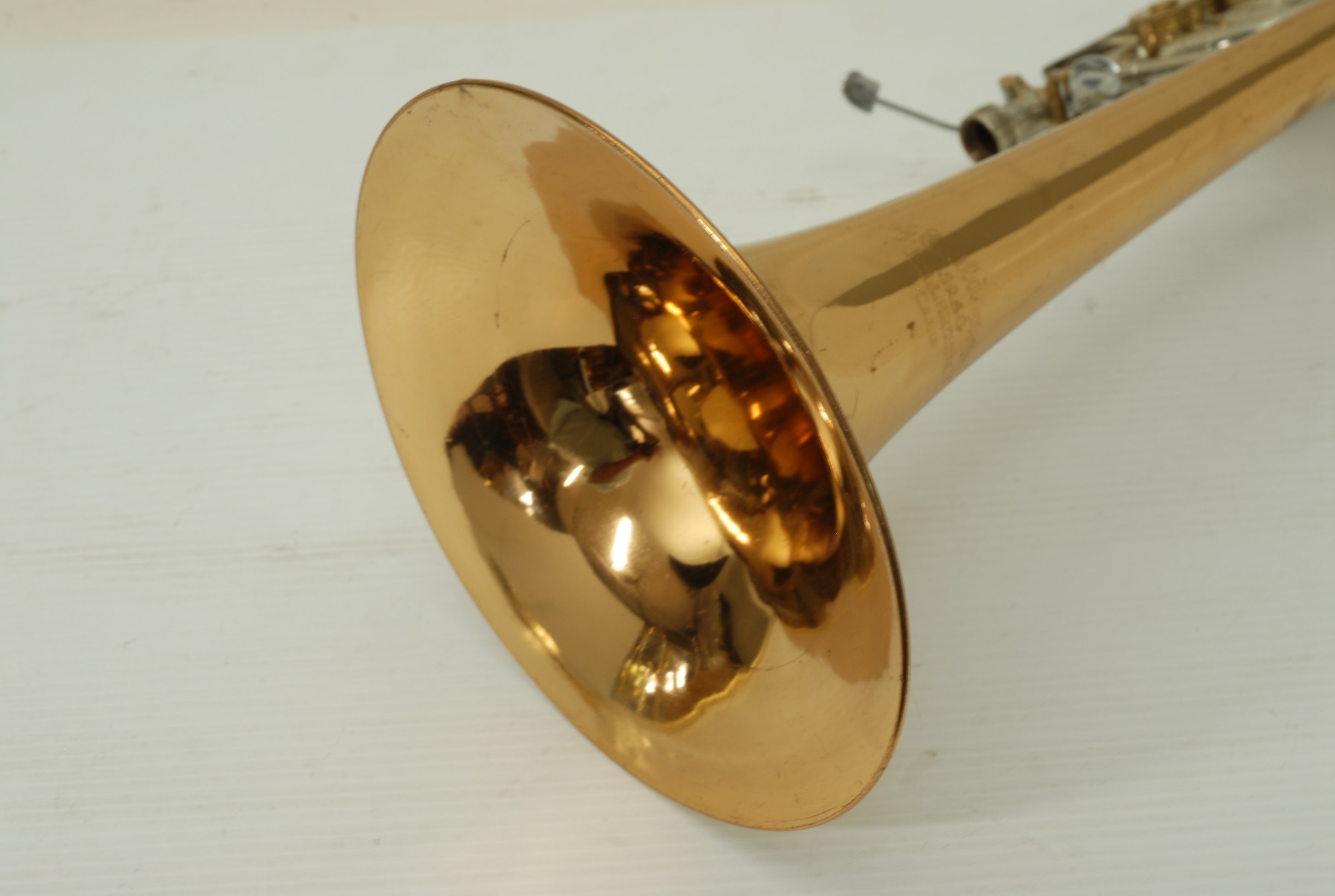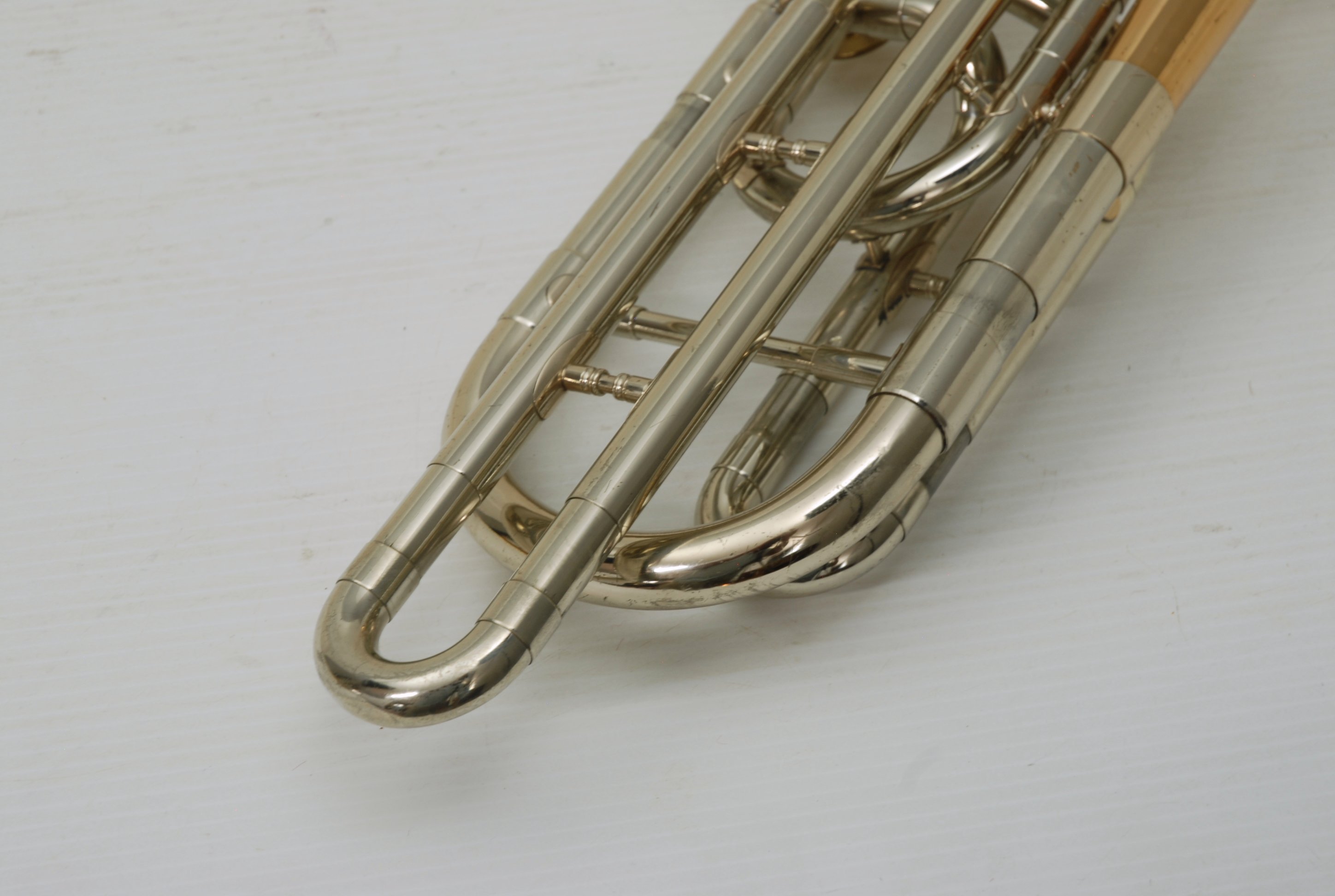 The hallmark of this example is its fully rebuilt handslide, completed by Getzen using the original bracing, inner and outer tubes, and original end crook. The rebuild brought the slide back to modern performance standards while preserving the horn’s authenticity.