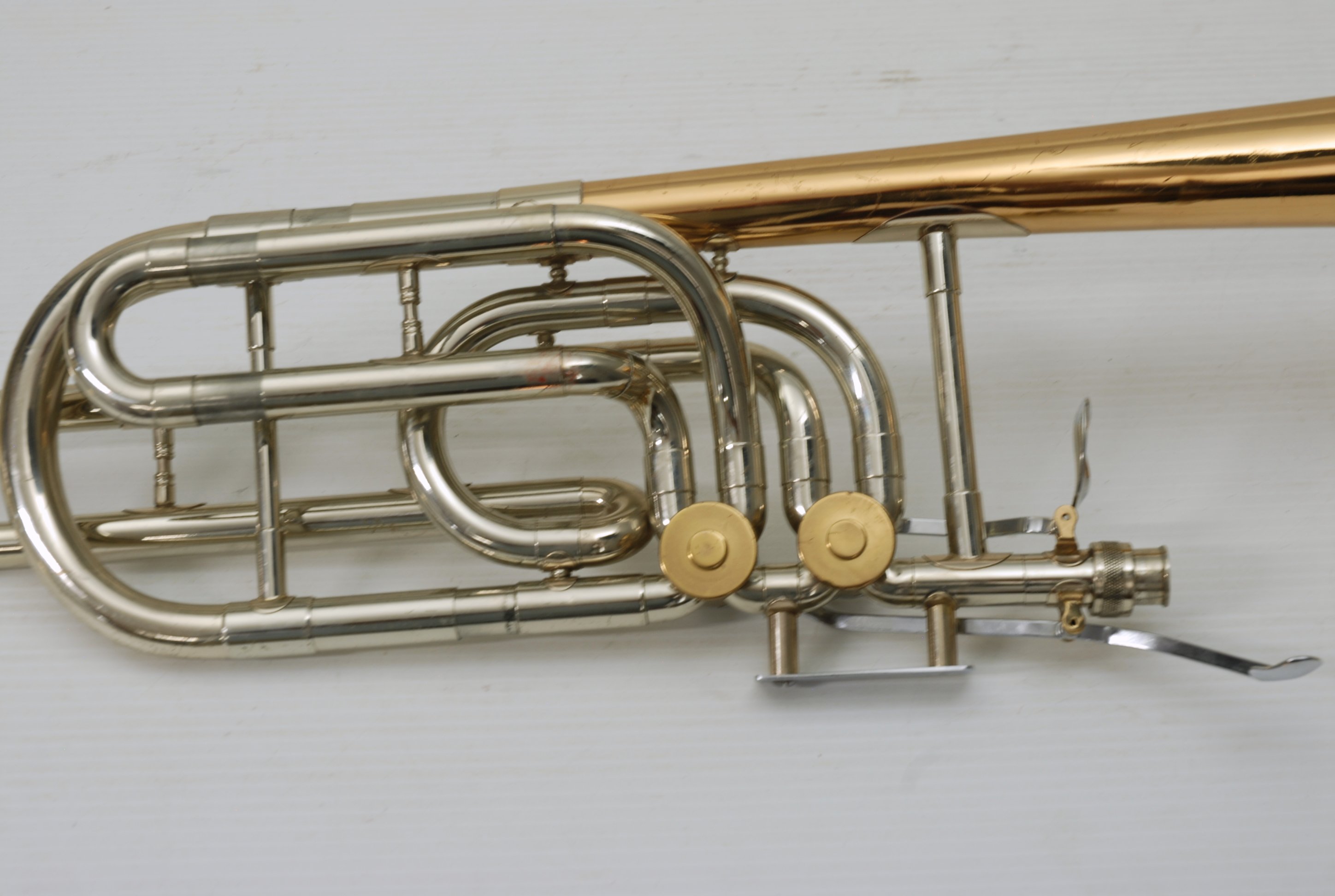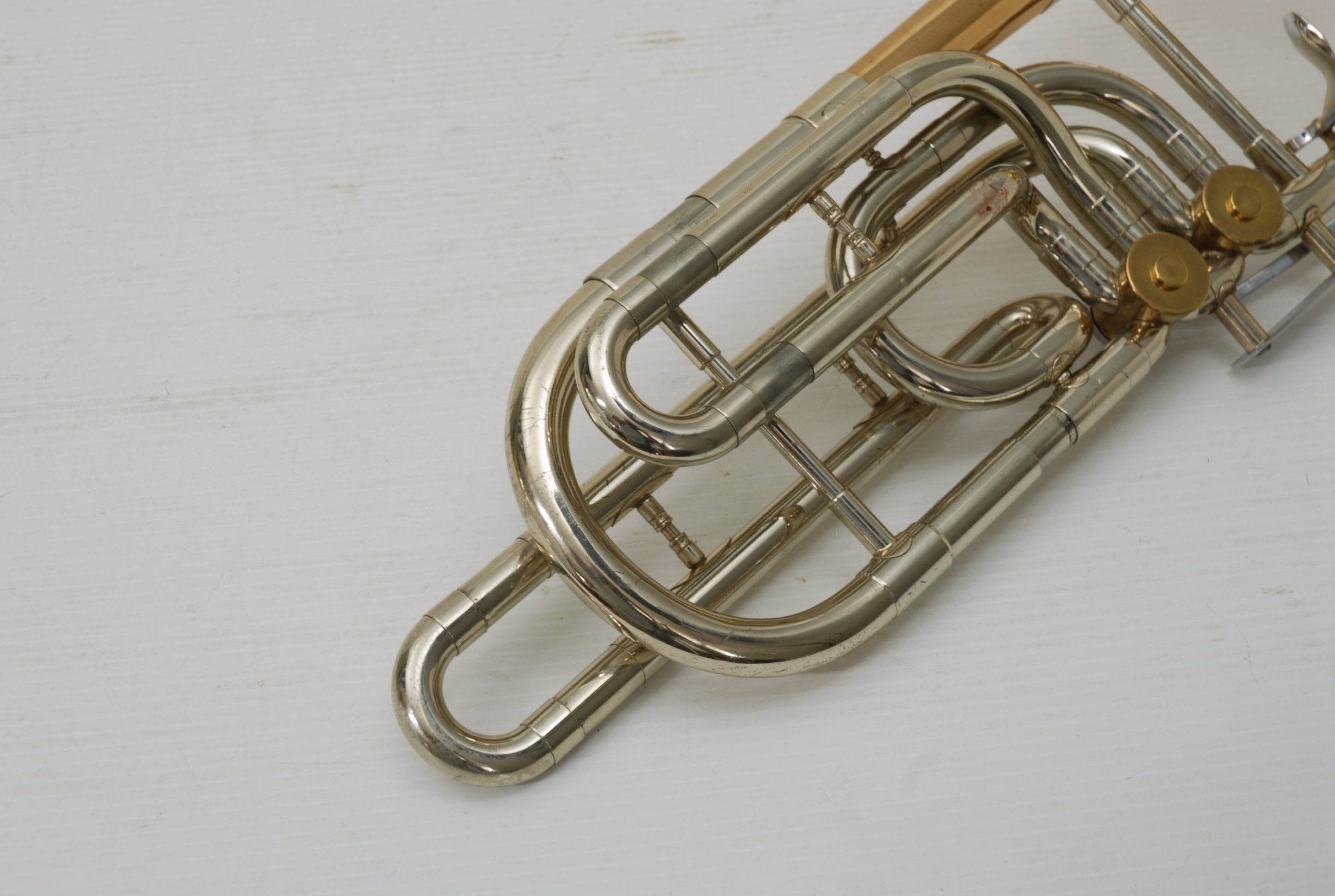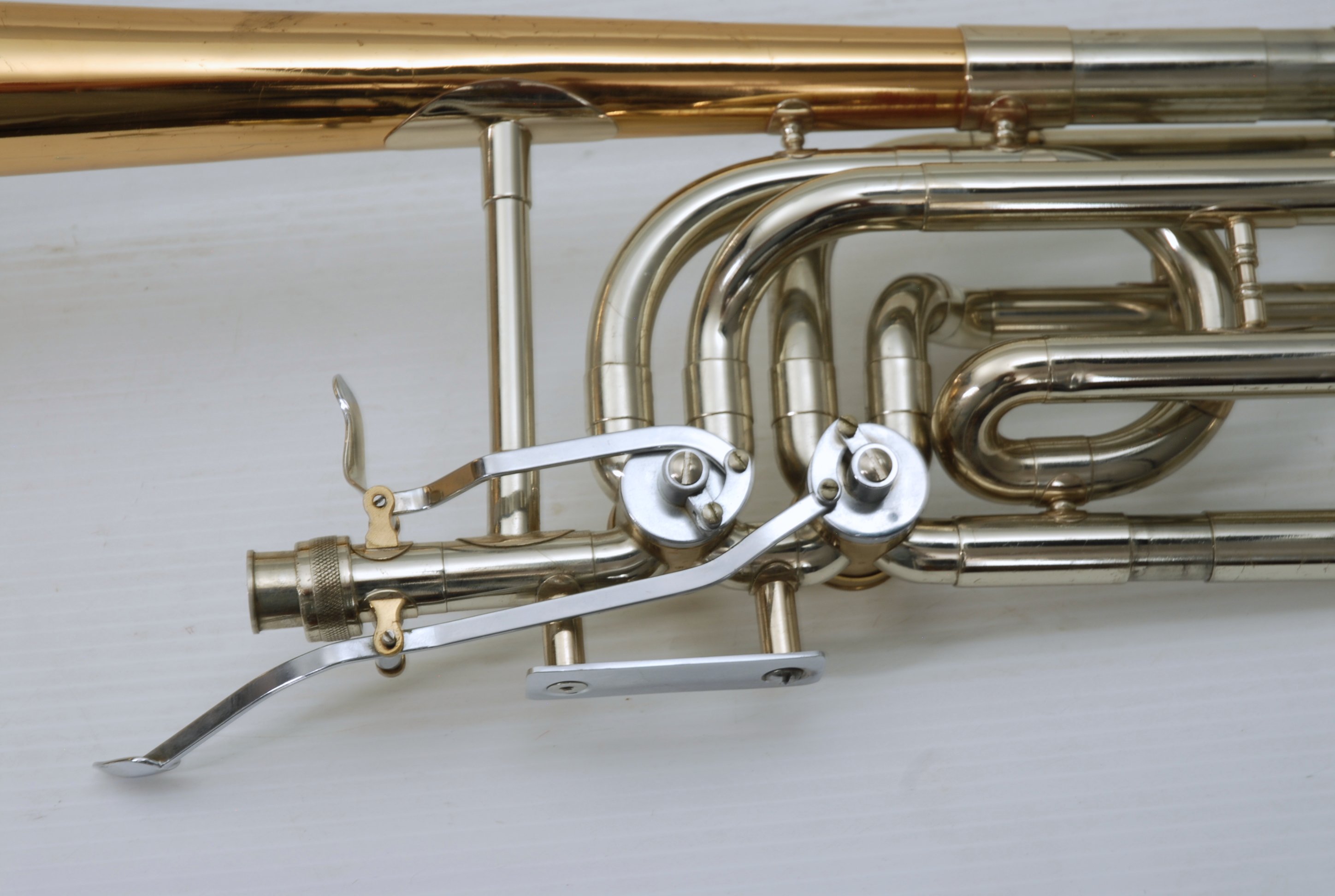 It was marketed toward serious students and working players. With independent valves and a gold brass bell, it performs at a level suitable for many professional applications.