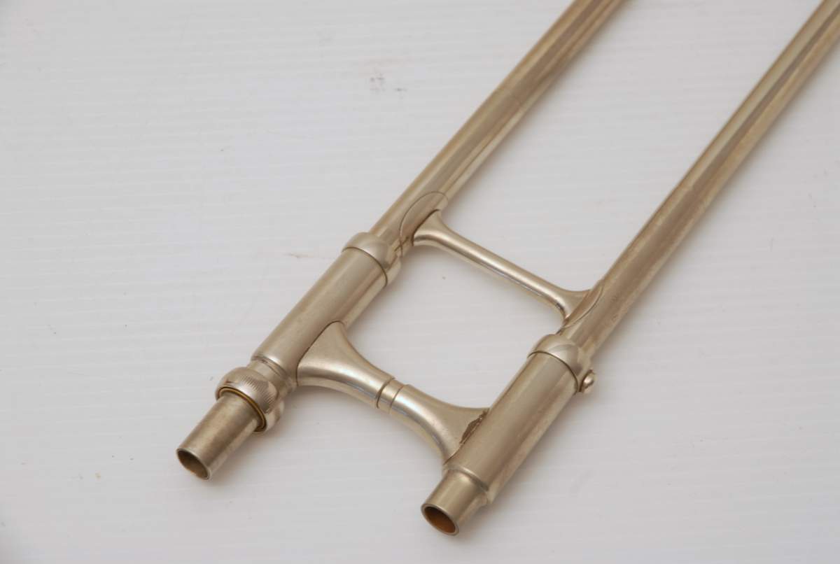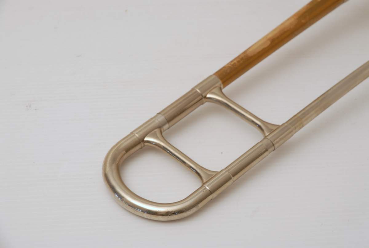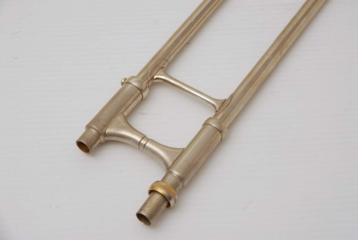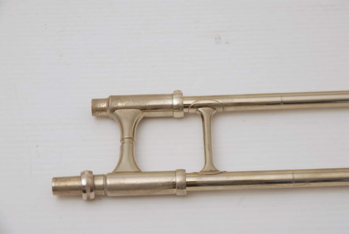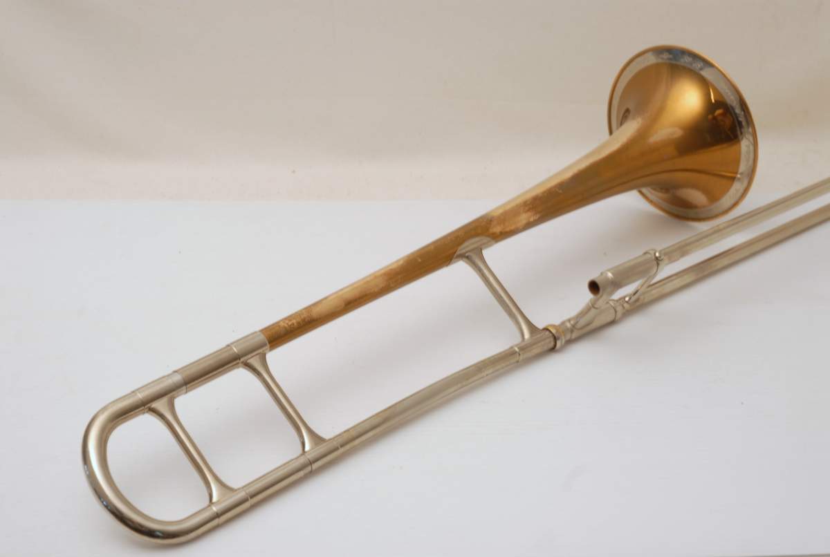 Olds Super Vintage 1950's. All original parts & lacquer. Has dual bore fluted handslide in excellent condition. Has had chemical bath and has been adjusted. No dents or dings on the instrument. Lacquer is original, some wear and signs of age. Would make an excellent small bore for any player looking to depart from Kings, Conns, and Bachs. Original 1950's case included. Mouthpiece not included.