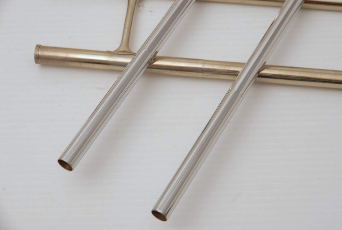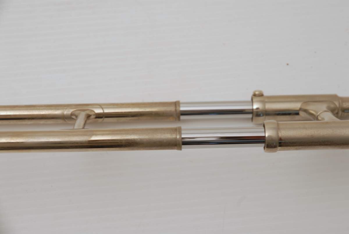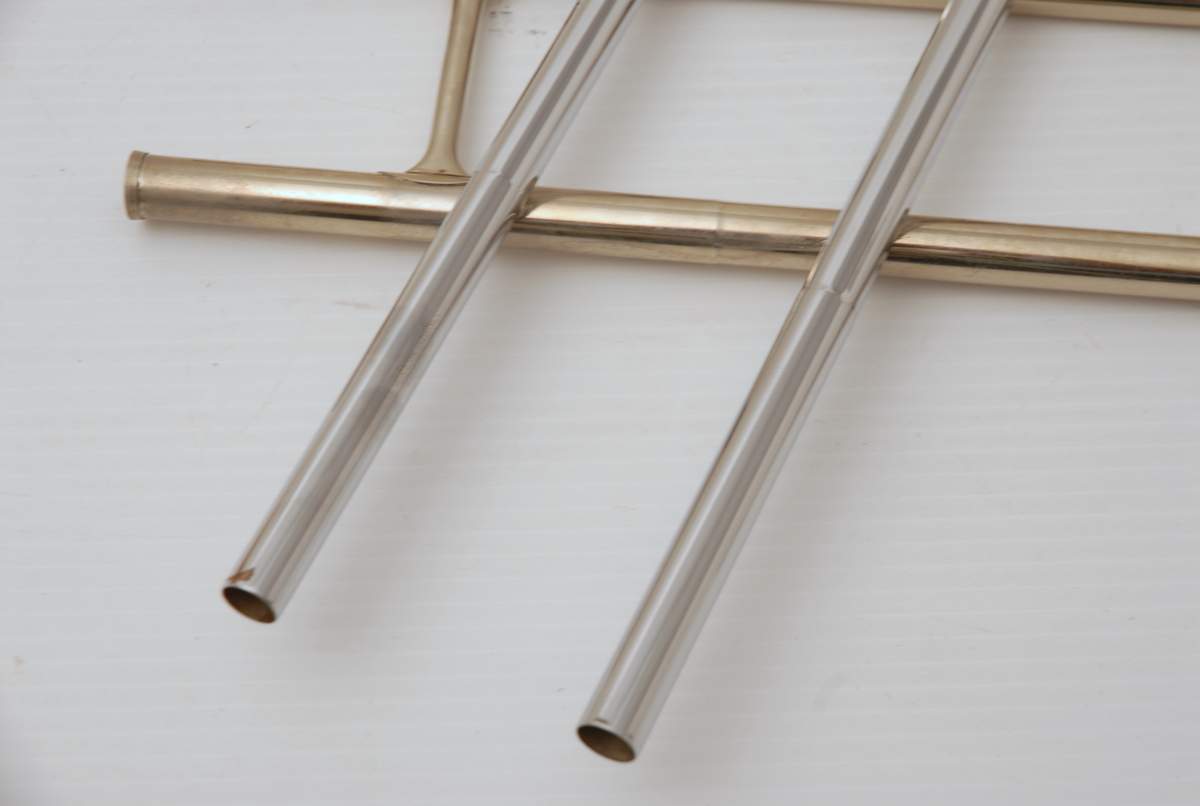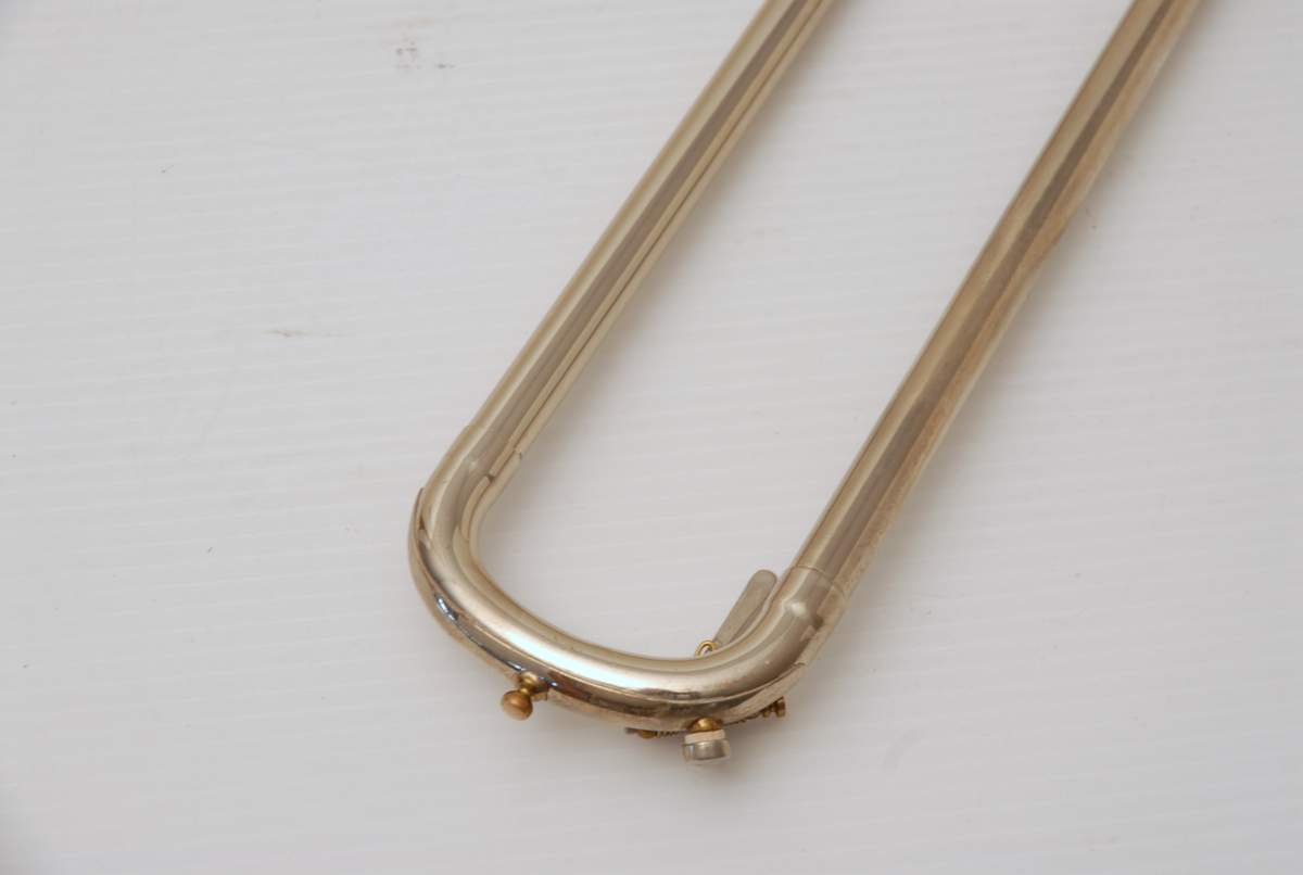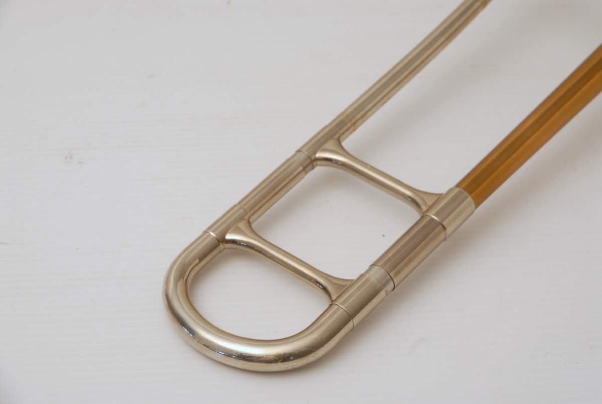 Olds Super Vintage 1950's. All original parts & lacquer. Has dual bore fluted handslide in excellent condition. Has had chemical bath and has been adjusted. No dents or dings on the instrument. Lacquer is original, some wear and signs of age. Would make an excellent small bore for any player looking to depart from Kings, Conns, and Bachs. Original 1950's case included. Mouthpiece not included.