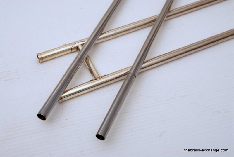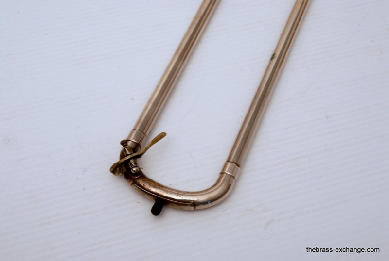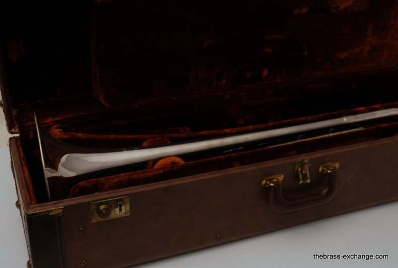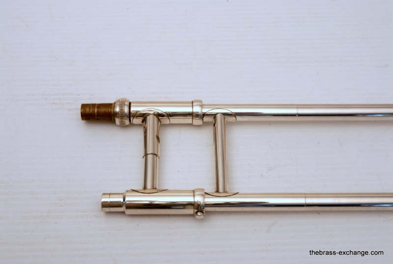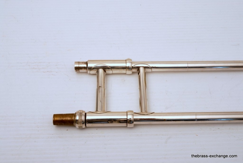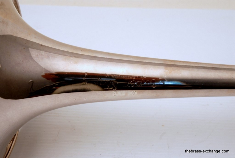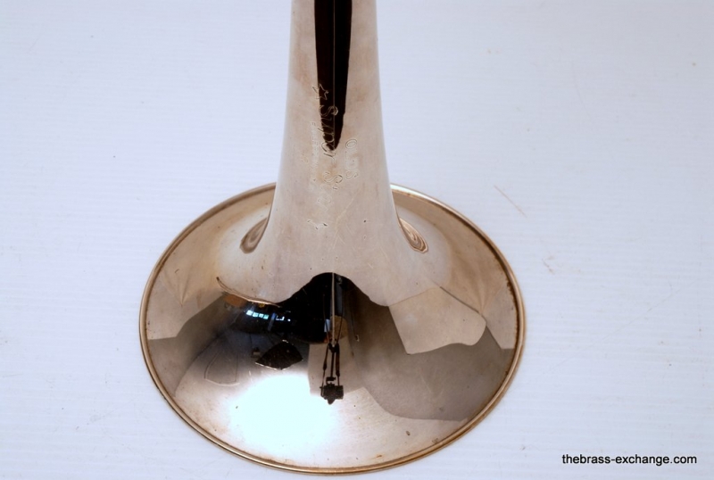 Olds Superstar Model V20. Has 8.5" Bell flare, dualbore handslide .495/.510, takes small shank mouthpiece. Instrument is factory silver plated. Overall in very good condition. The inside of the horn is clean and it plays great. The silver plating is in excellent shape, it will brighten up easily with silver polish. No issues with slide, valve or playability. Would make an excellent trigger horn for a student on a budget. Would also make a great marching horn as is. Original case included. Mouthpiece also included.