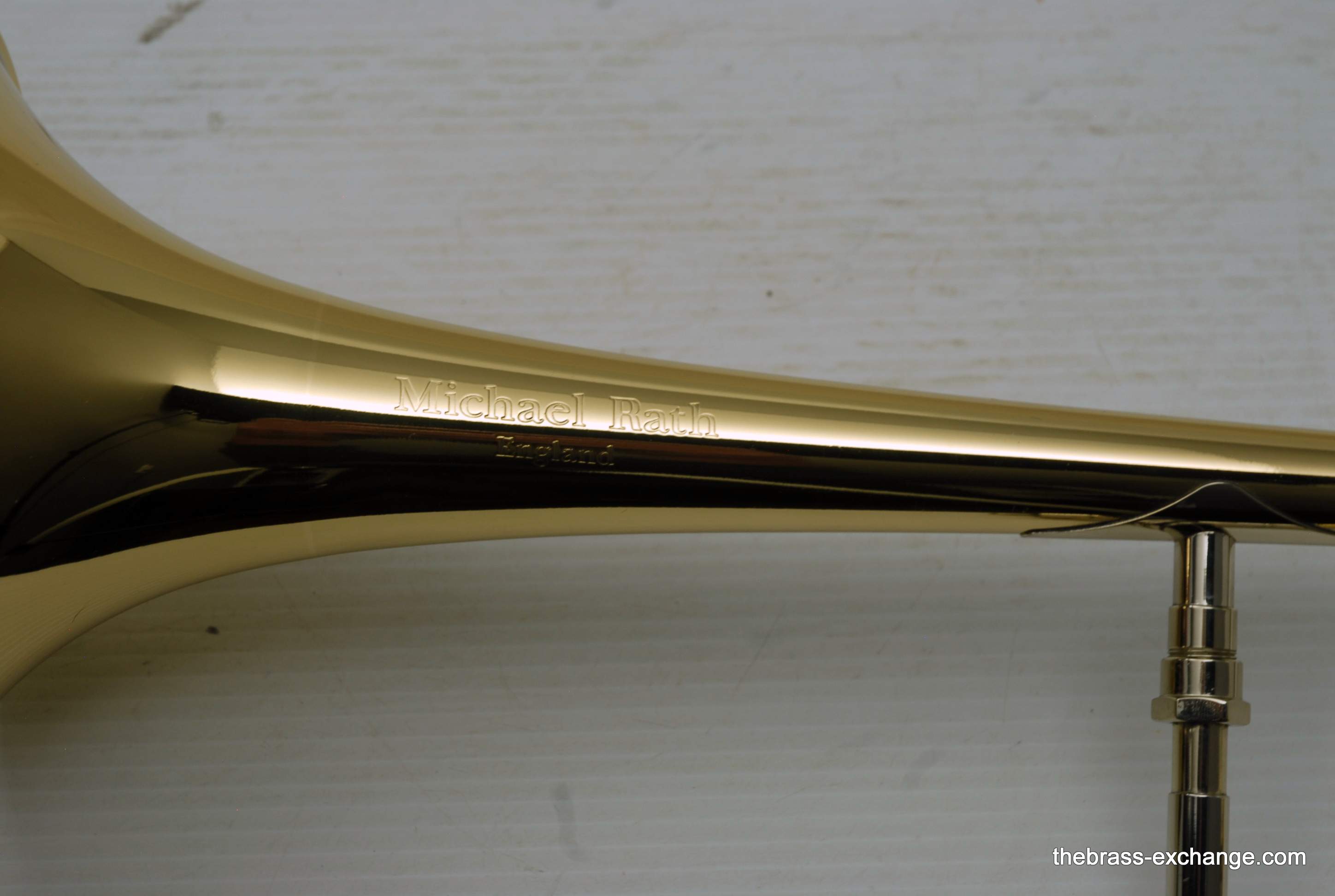 Rath R11 Custom Alto Trombone.Made in England, is authentic from Rath custom shop.  Has tuning in hand slide T.I.S. , Yellow Brass 750Y Bell, removable neck for conversion to trill valve. Includes one removable leadpipe. Is slightly used in excellent condition. Fantastic slide action. Plays with clarity, very intuitive slide positions to pitch, locks in quick and easy. Bell diameter is less than many other alto makers. That's probably why it projects so well. Has a true alto timbre and sound quality. Would be an ideal professional level custom alto for any player looking for something nice and without issue. Case not included. In-stock for immediate delivery.