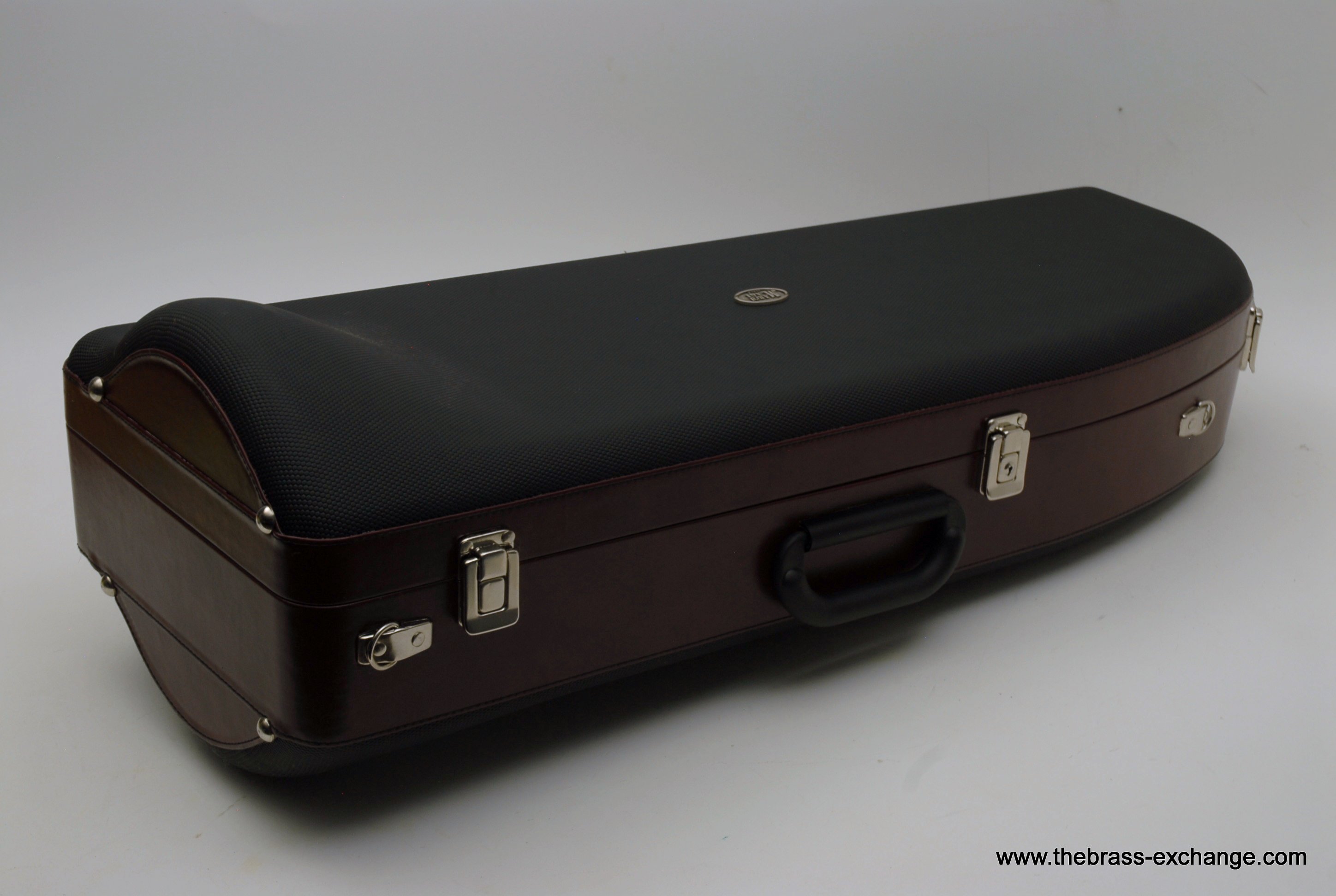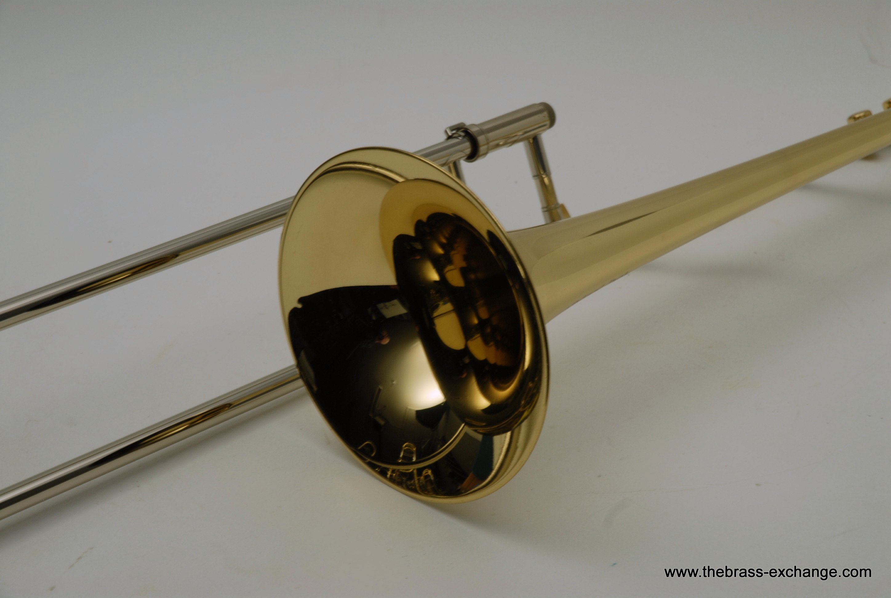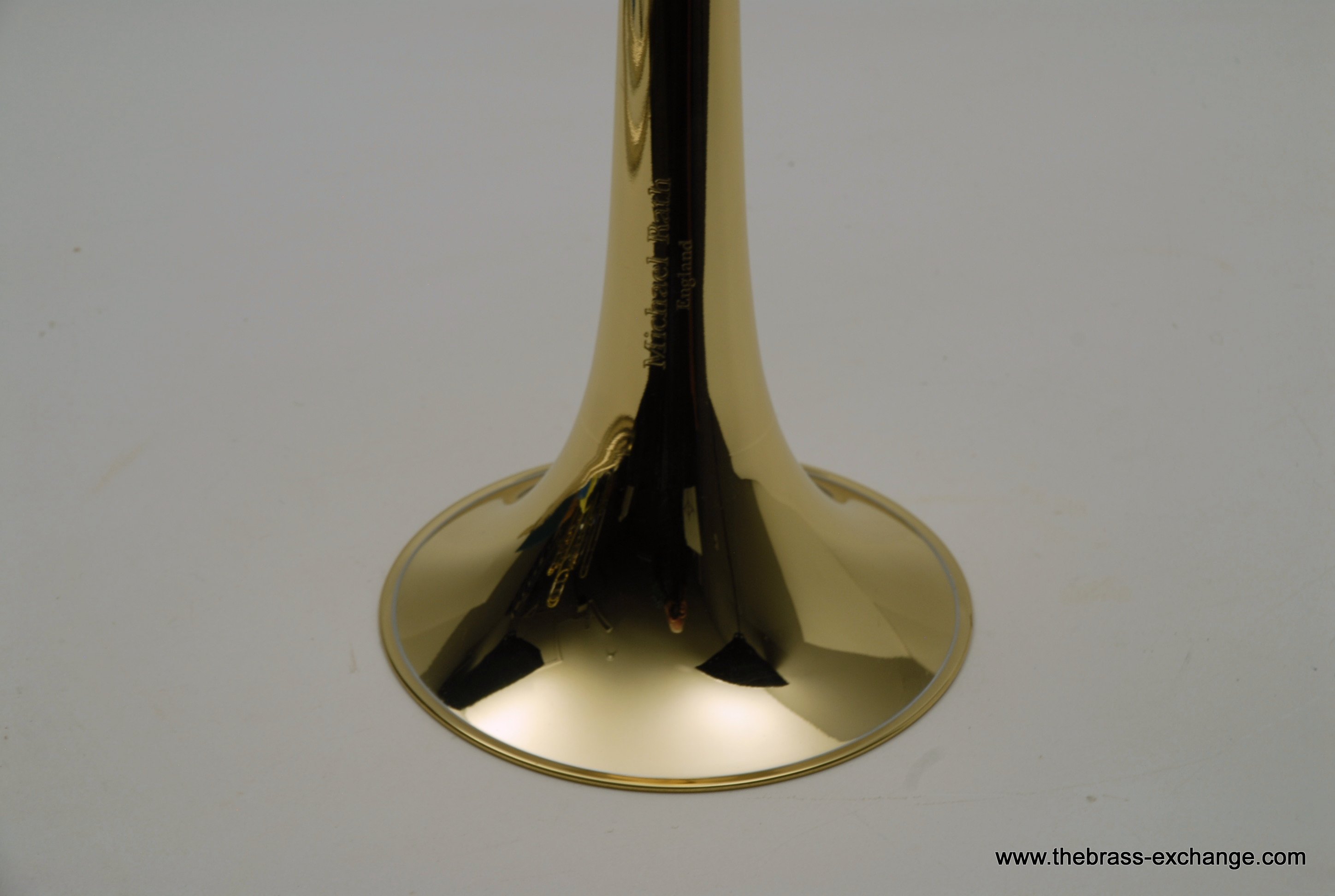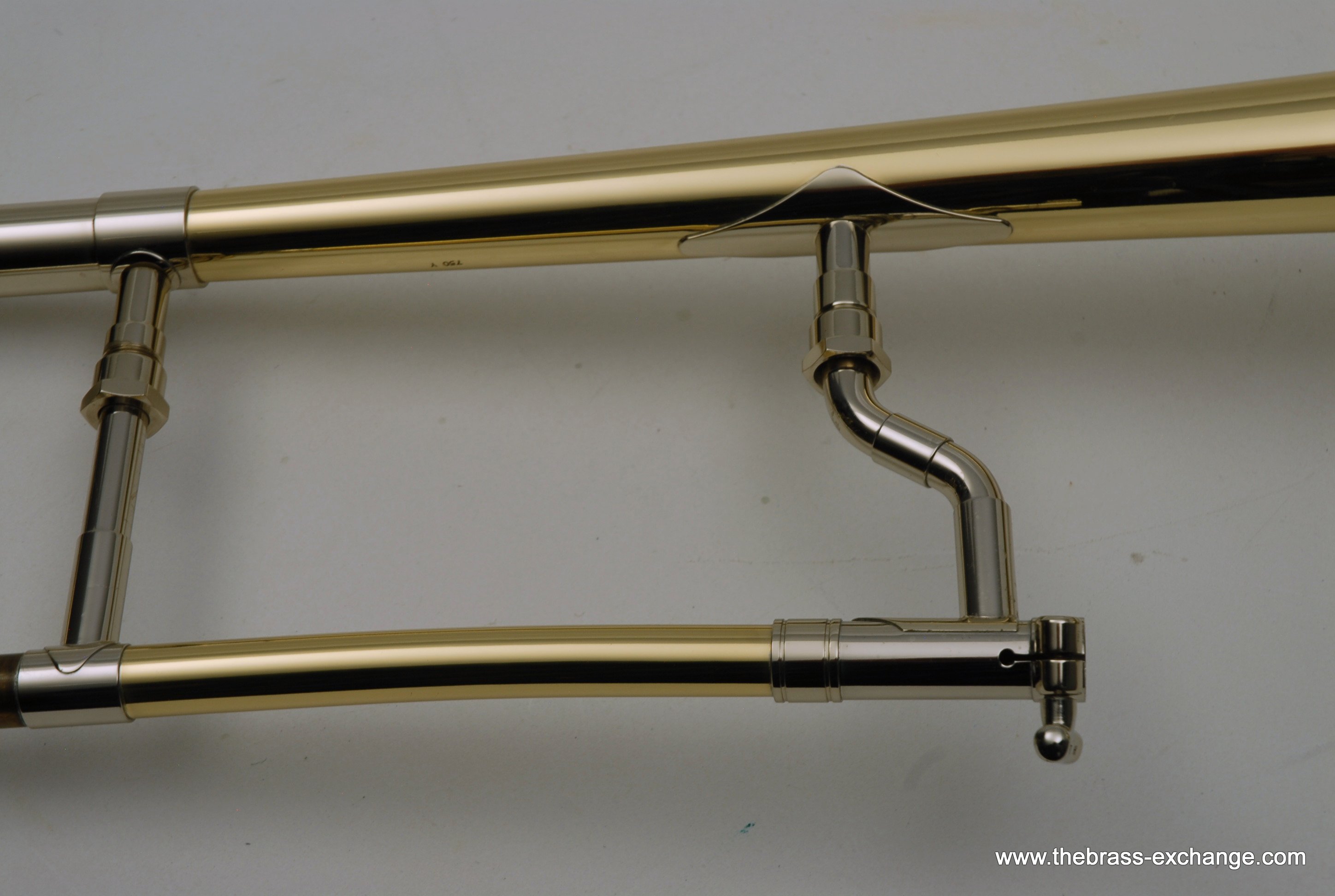 Rath R3 Professional Custom Medium Bore Tenor Trombone Made in England. Pre-owned super excellent condition .525 bore with removable neck pipe, nickel silver slide. Has 8" yellow brass bell, model 750Y. Standard yellow brass tuning slide with signature Rath Balance weight built into tuning slide. Is an excellent playing .525 bore with a complex sound and plays easily. Handslide is fantastic. Minor dings removed from tuning slide crook, is fine now. Overall lacquer is in excellent condition. Would be an excellent choice for anyone looking to play a unique .525 size, or add to your collection of other Rath modular components. Is compatible with Rath custom valve sections. Includes a new Marco Magi NN-TKR case, made in Italy. Also includes 3 removable leadpipes, 2 of the pipes take large shank mouthpiece, 1 pipe takes small shank mouthpiece. Would be great jazz/commercial style trombone.
