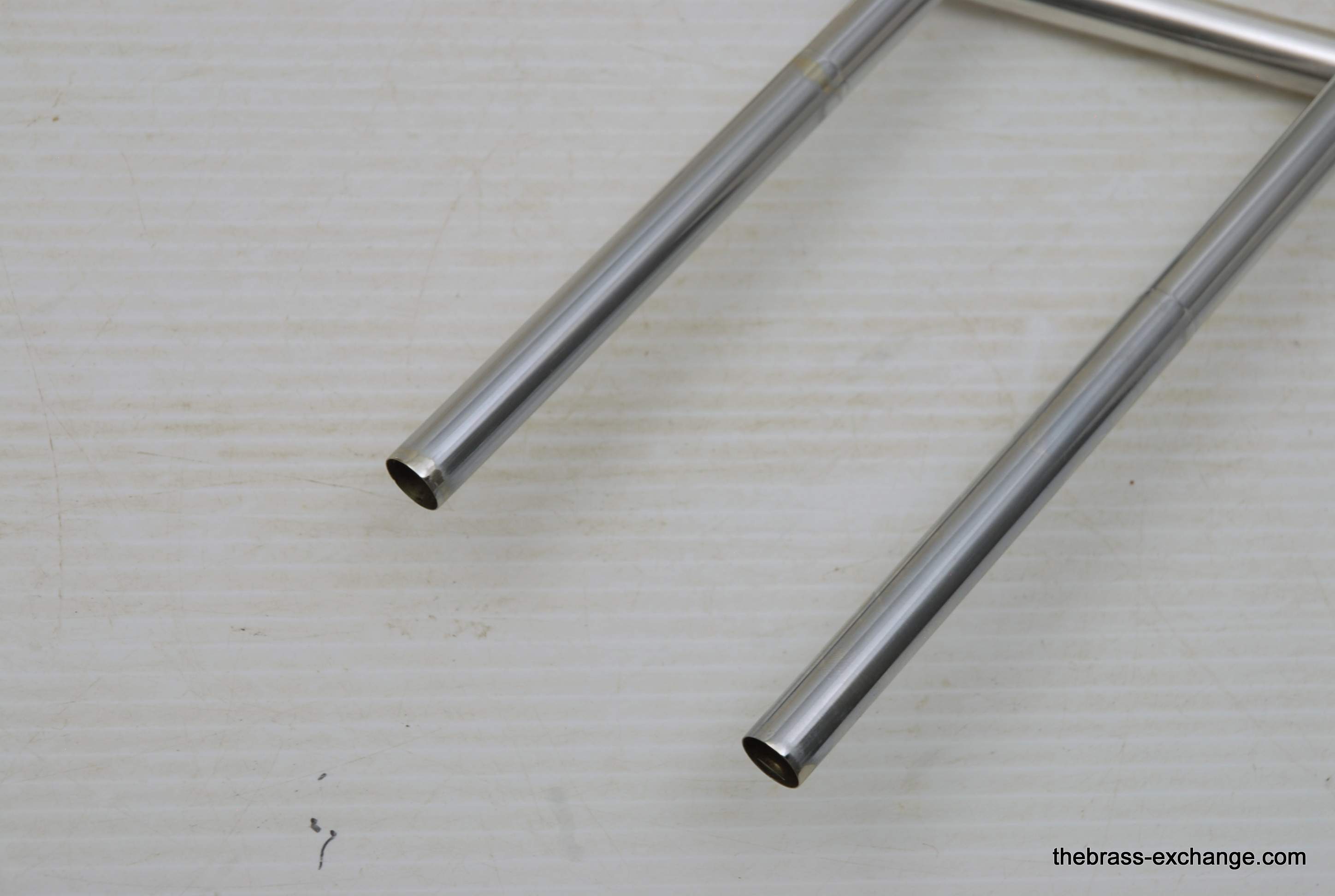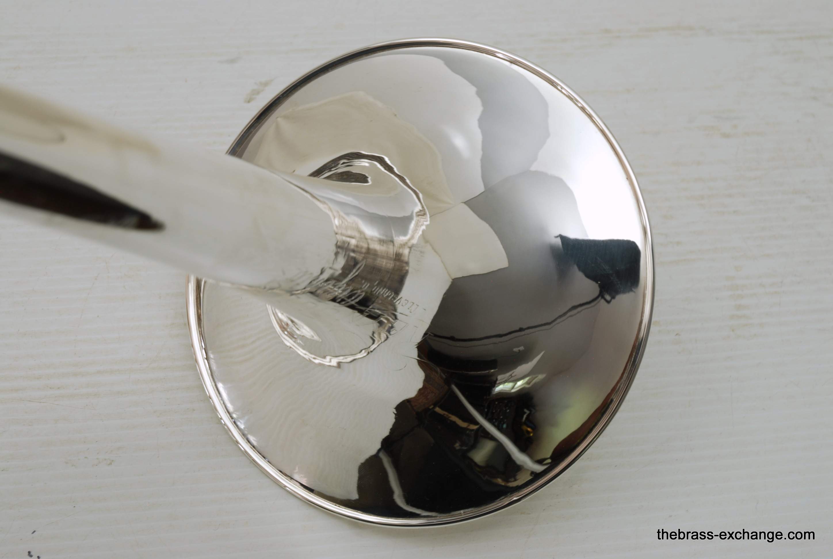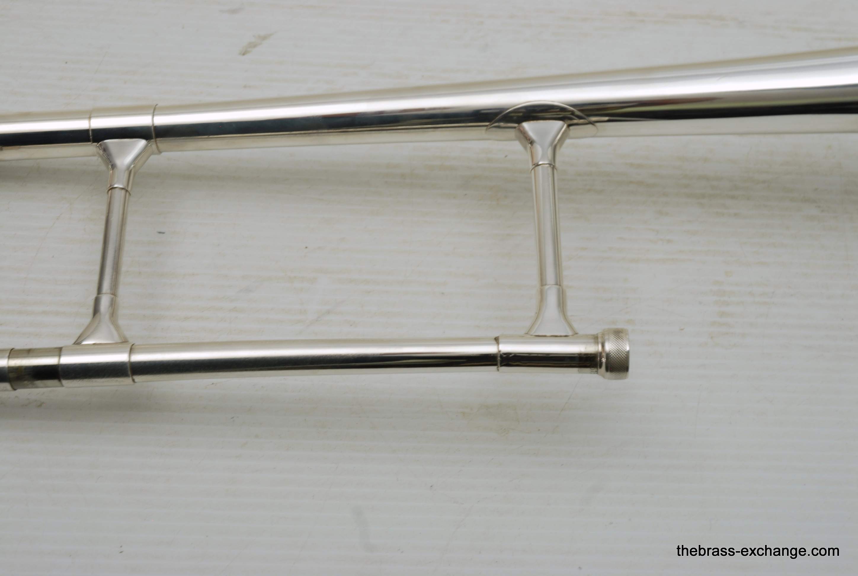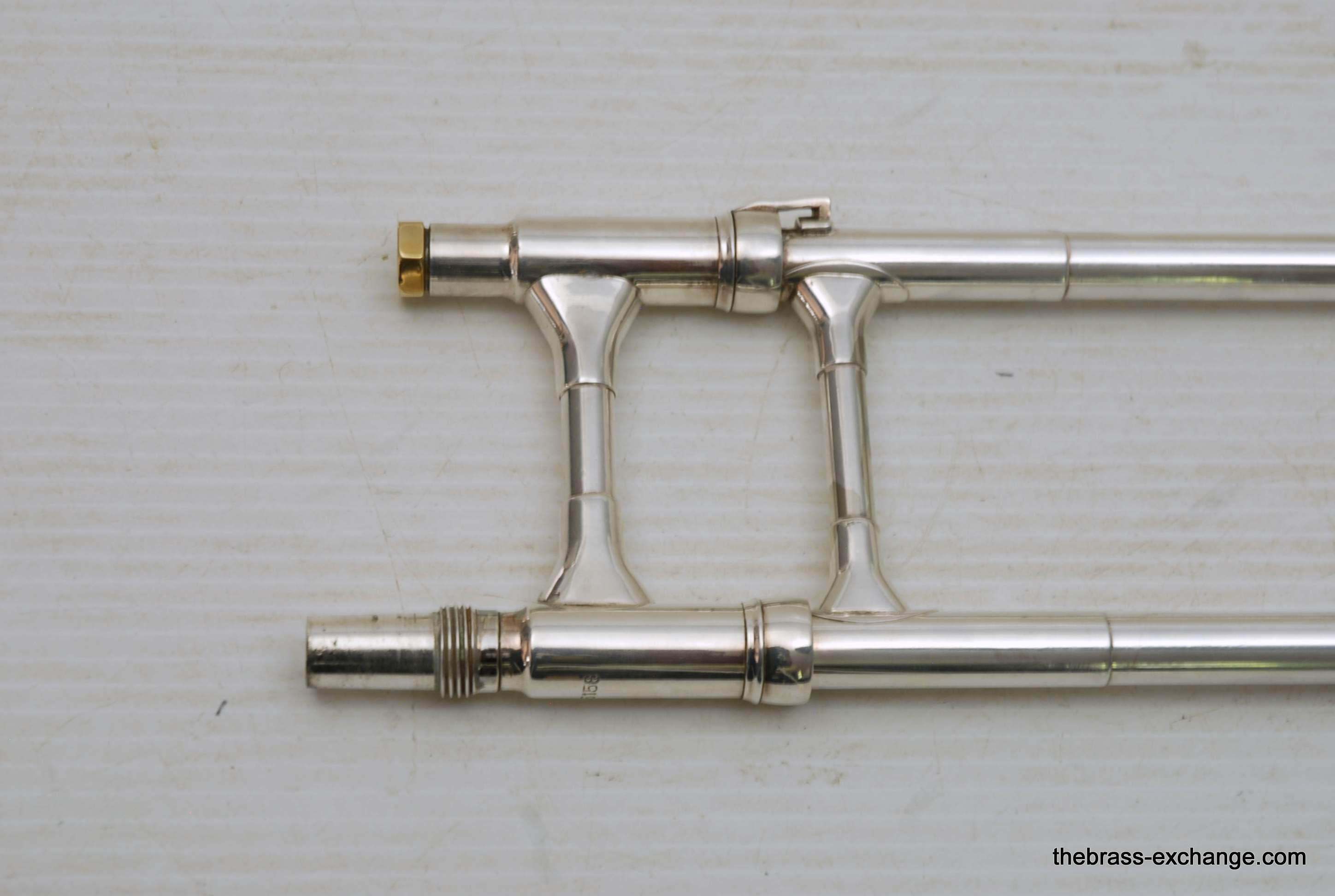 Reynolds TO-26 Medium Bore .520 Silver Plated Tenor. Has 8.5" Bell with .520 straight bore handslide and removable leadpipe. You could consider this a small big horn, or a big small horn. It plays like a medium, but a little extra width in sound with the 8.5" Bell. All original parts and silver plating. Made between 1061-1964. This is a Pro level instrument. Handslide is straight, some minor plating wear. It's a 60 year old instrument and still plays great. Would be an excellent all around tenor for band, jazz band, anywhere when and F trigger is not desired, and small bore is too small. This is a medium size horn with a gorgeous sound. Has had full shop service and is gig ready. Original case included. In-stock for immediate delivery.