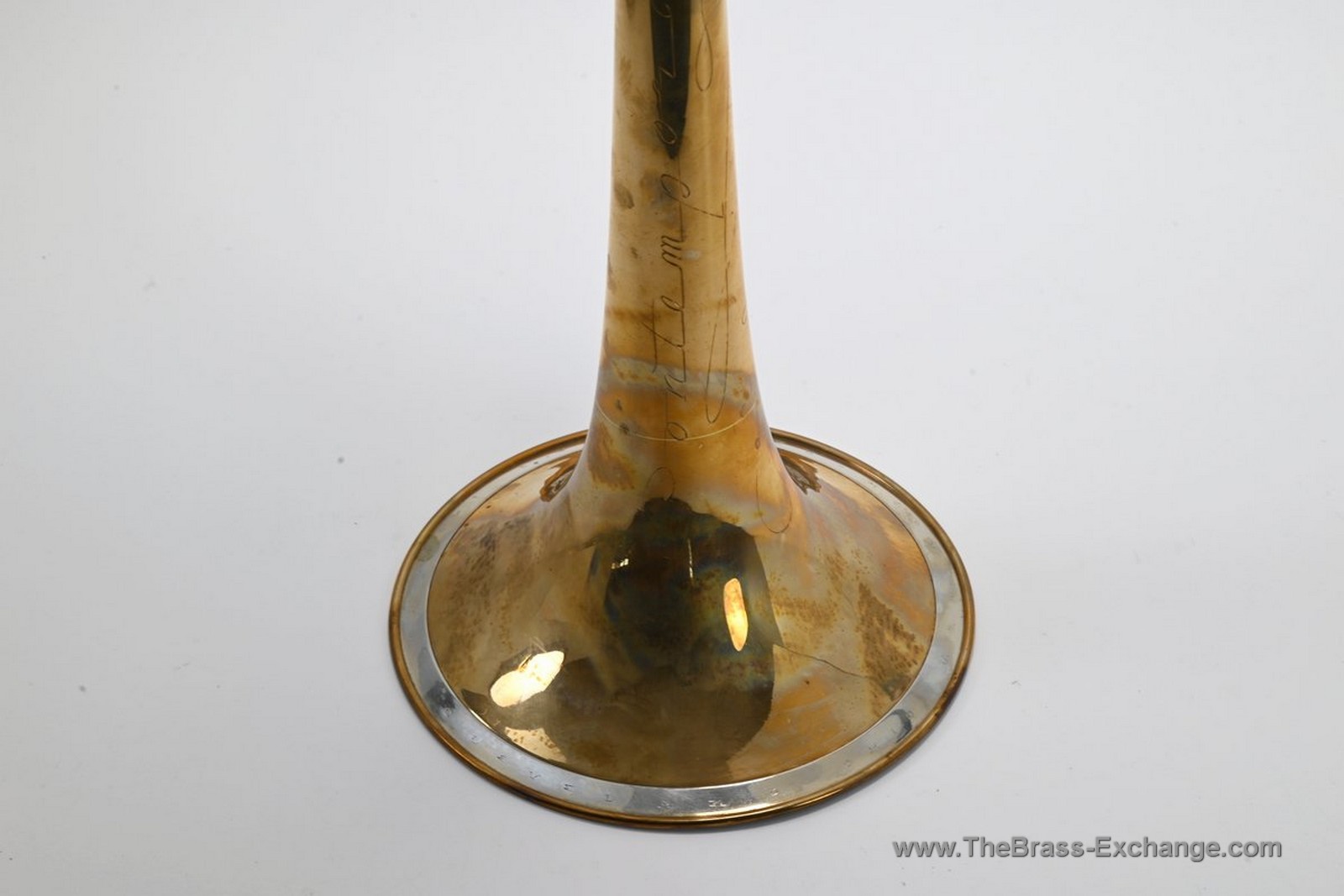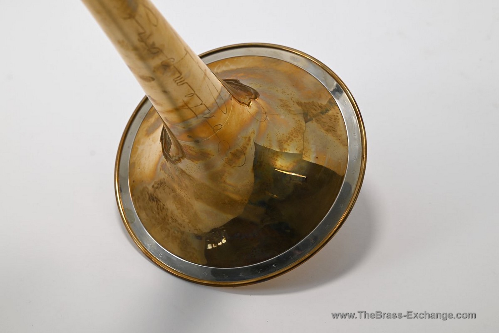 The bell is currently unlacquered brass with natural patina. Importantly, the bell has never been creased or structurally damaged, and the instrument shows no signs of prior trauma or repair.