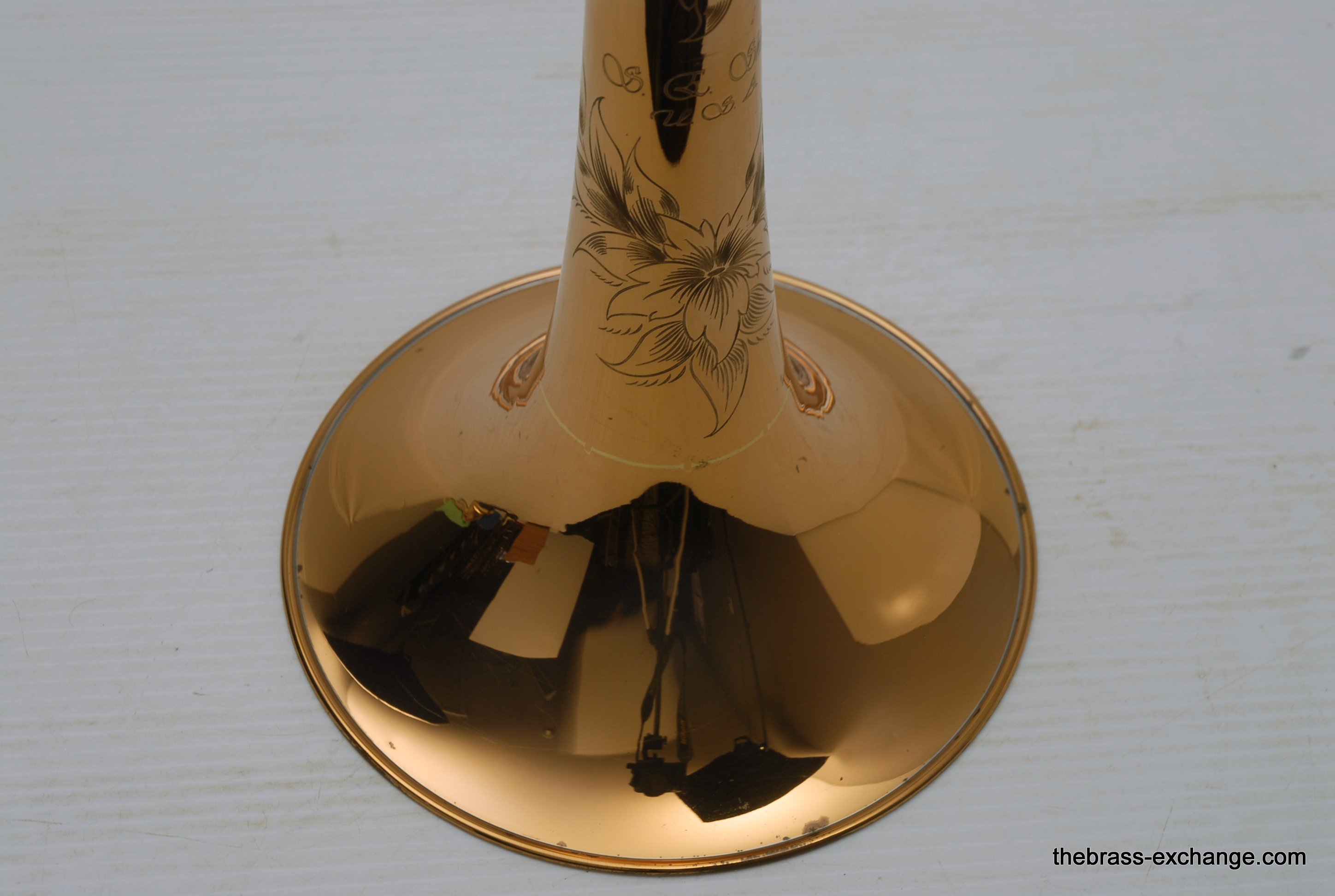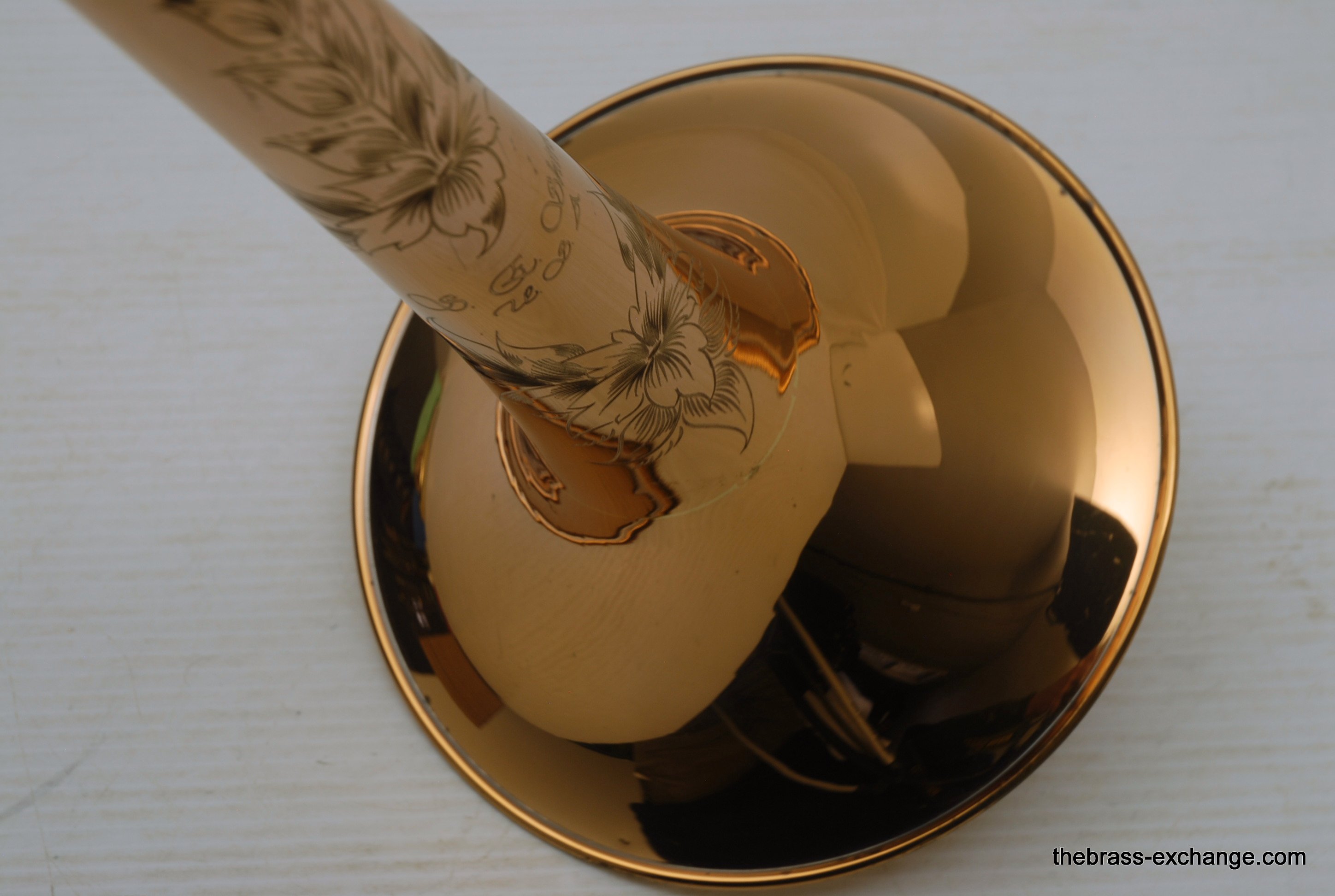 S.E. Shires Tenor Bell Section, Used, Model 1RT7. This is a standard tenor 8.5" bell with Rose Brass, Soldered Rim, and T7 flare thinning treatment. Is used in great condition, no signs of previous damage or repair, minor lacquer blemishes. Fits perfectly with all current S.E. Shires Components.