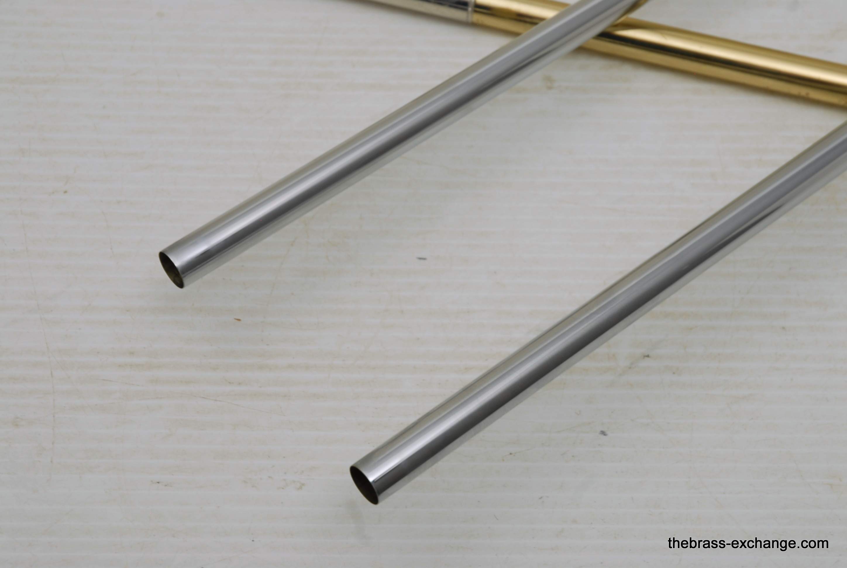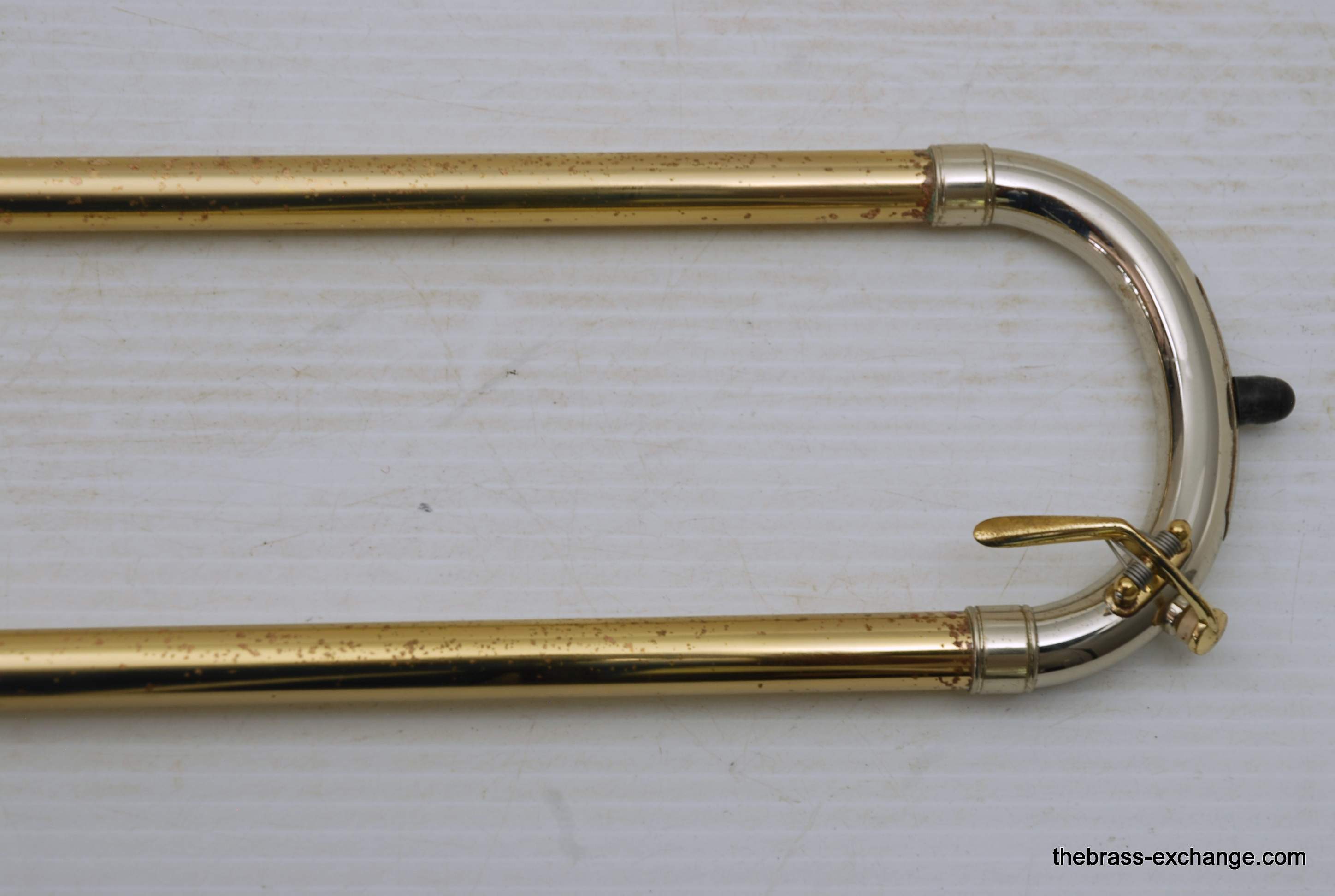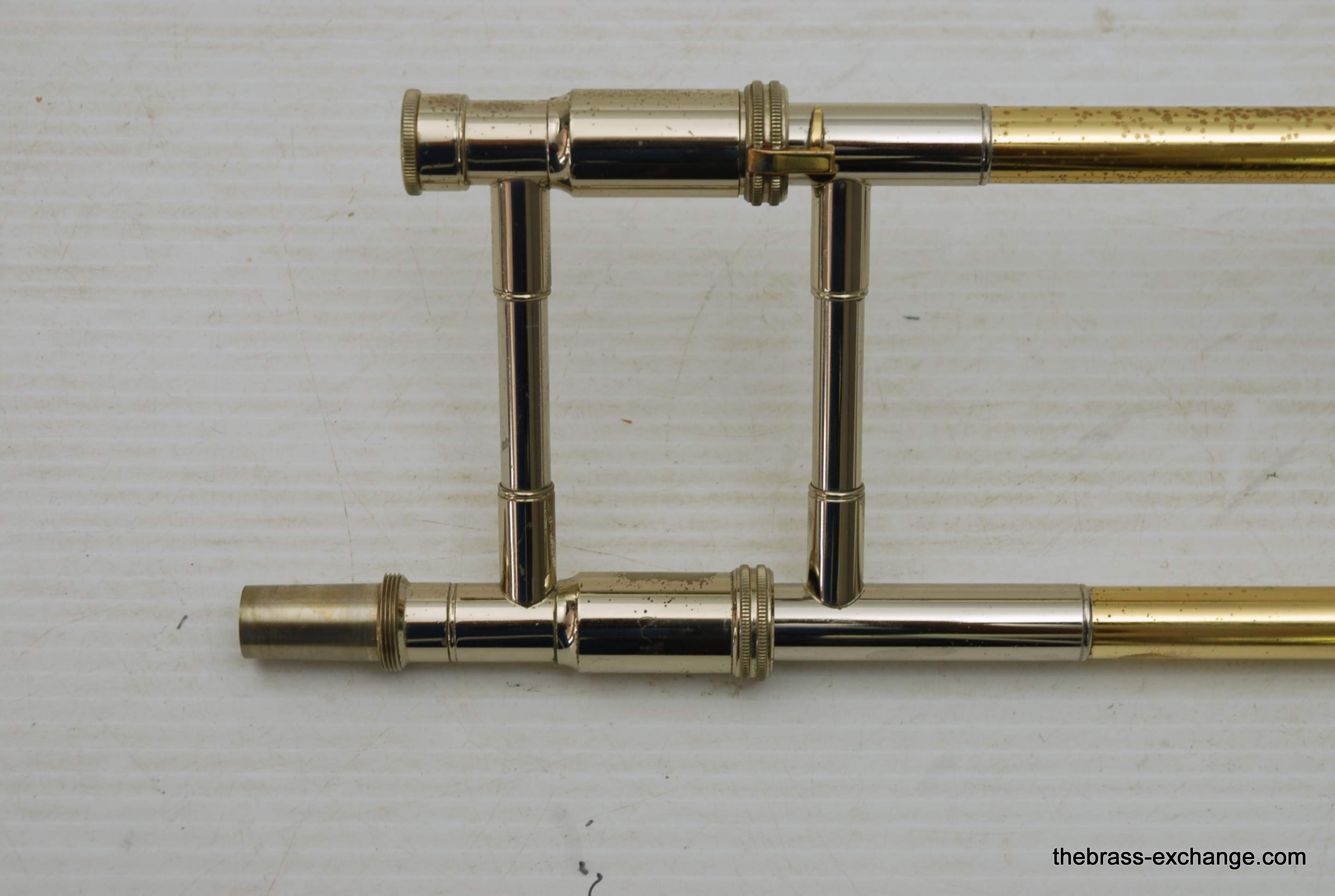 S.E. Shires Custom Series Bass Trombone Handslide Pre Owned, Model B62.  Standard weight straight bore .562, yellow brass with nickel oversleeves, and nickel endcrook.  Is a straight slide, no previous damage, excellent tubes, no wear on inners, some lacquer wear on outers, grip areas, but not too bad.  Has had full shop service, once over and chemical bath.  Includes choice of one removable leadpipe, multiple choices available, please call or email for leadipe options.  Excludes Sterling Silver.  In-stock for immediate delivery.