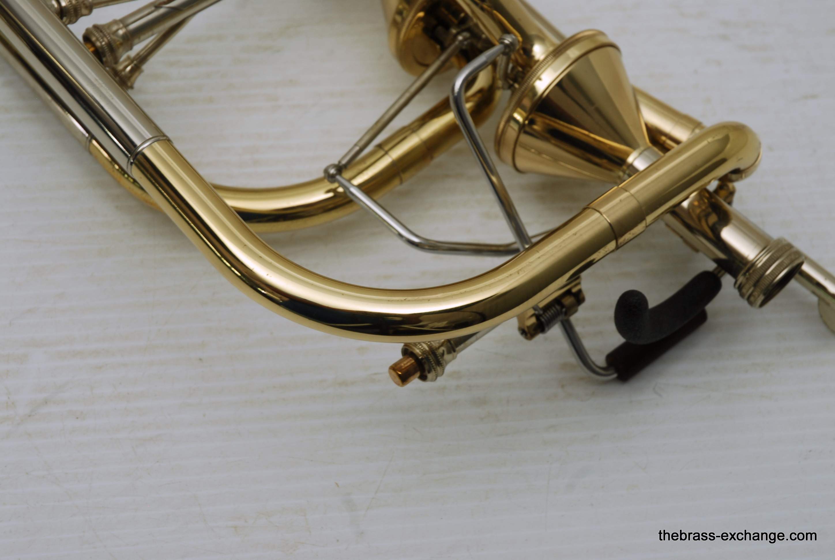 S.E. Shires Custom series Bass Axial Flow Valve Set. Indepenent Bb/F/Gb/D. Is in excellent conditon and has had full shop service including chemical bath/flush and once over. Has factory installed adjustable thumb rest bar. Bass bone players know that this helps with ergonomics and is the way to go. No inner wear on rotors. All of the linkeage and small parts are 100%. This is a great valve set without any issues, minor cosmetic lacquer wear only. A new custom Axial Set from the factory today sells for $3175 with limited availability and long lead time to order. This one is in stock for immeditate delivery.