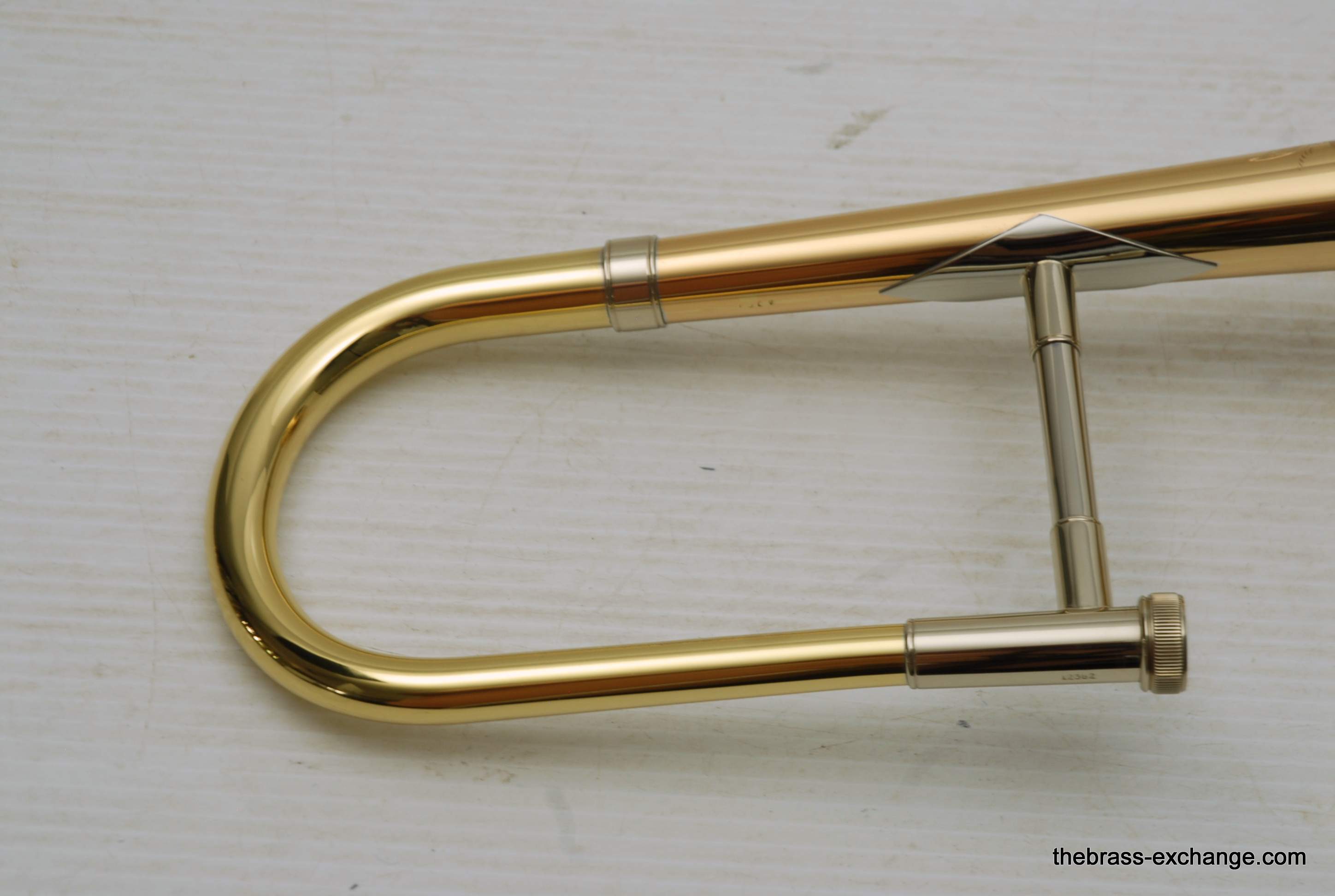 The horn features the A1GMT8 gold brass bell, known for its warmth, clarity, and rich upper overtones. Alto trombones can vary widely in timbre and projection, and this particular bell strikes a superb balance between agility and tonal depth. It speaks easily in all registers and feels immediately responsive under the ear.