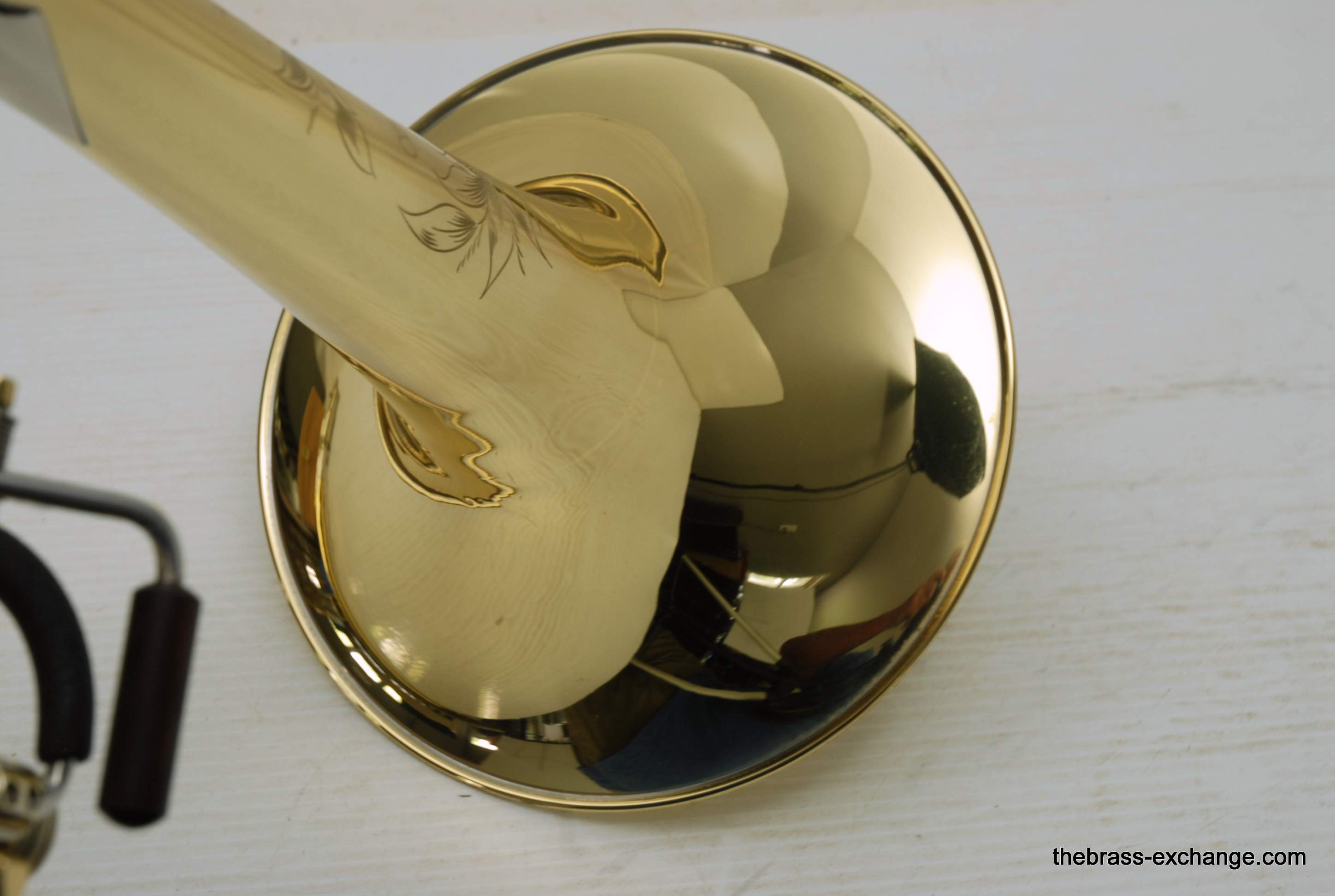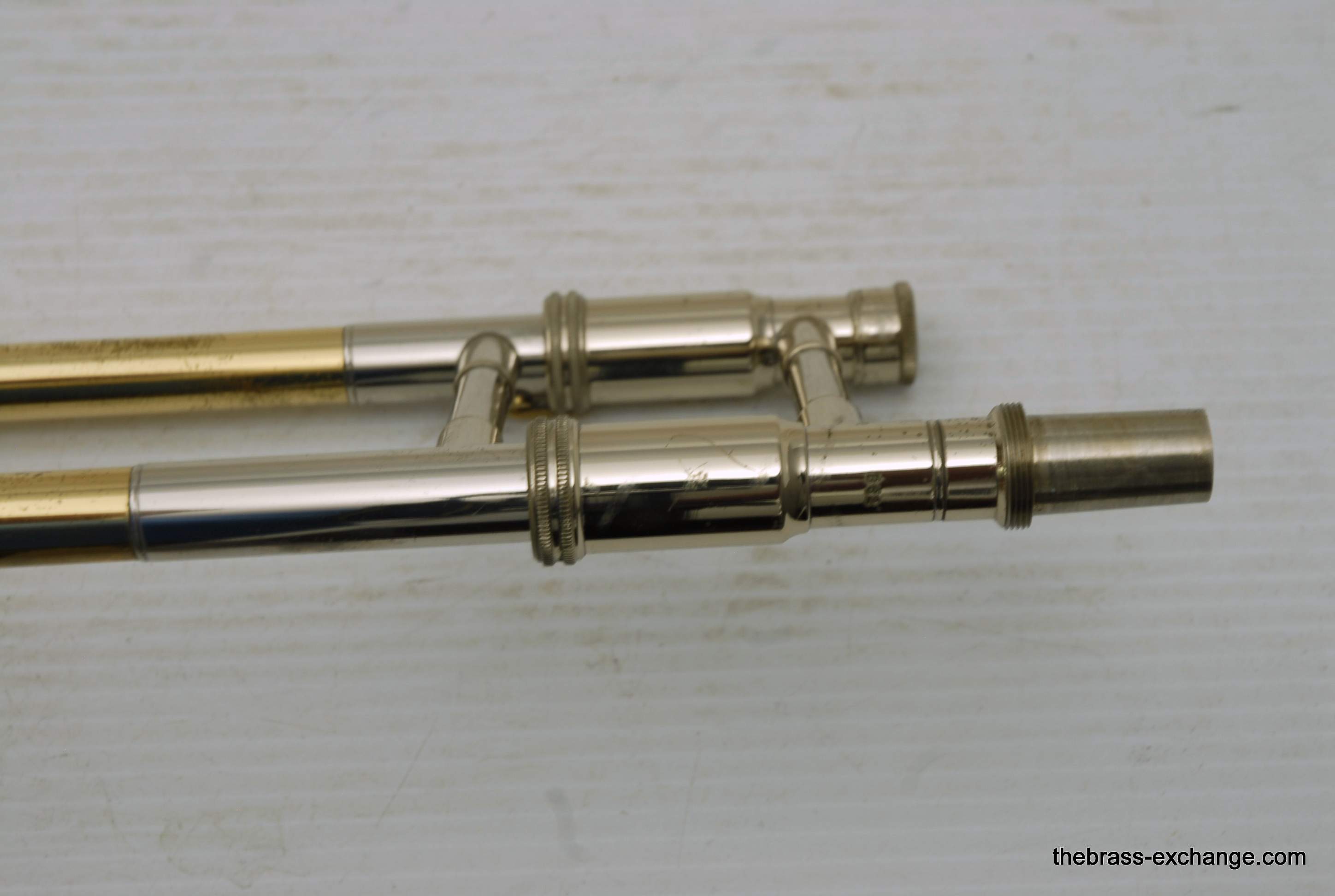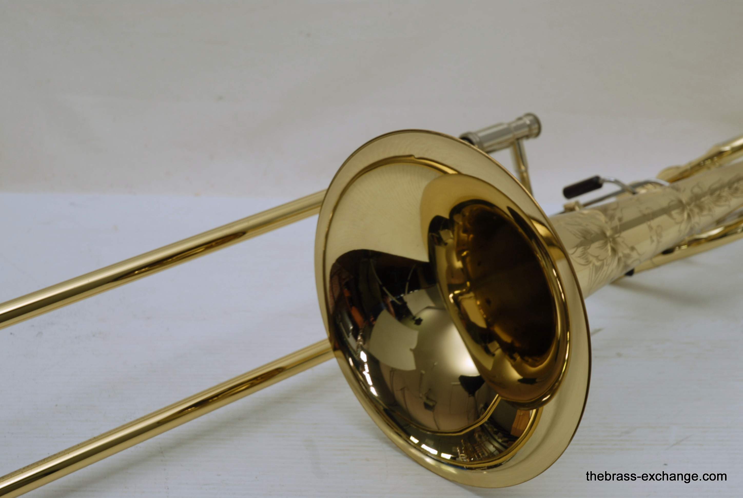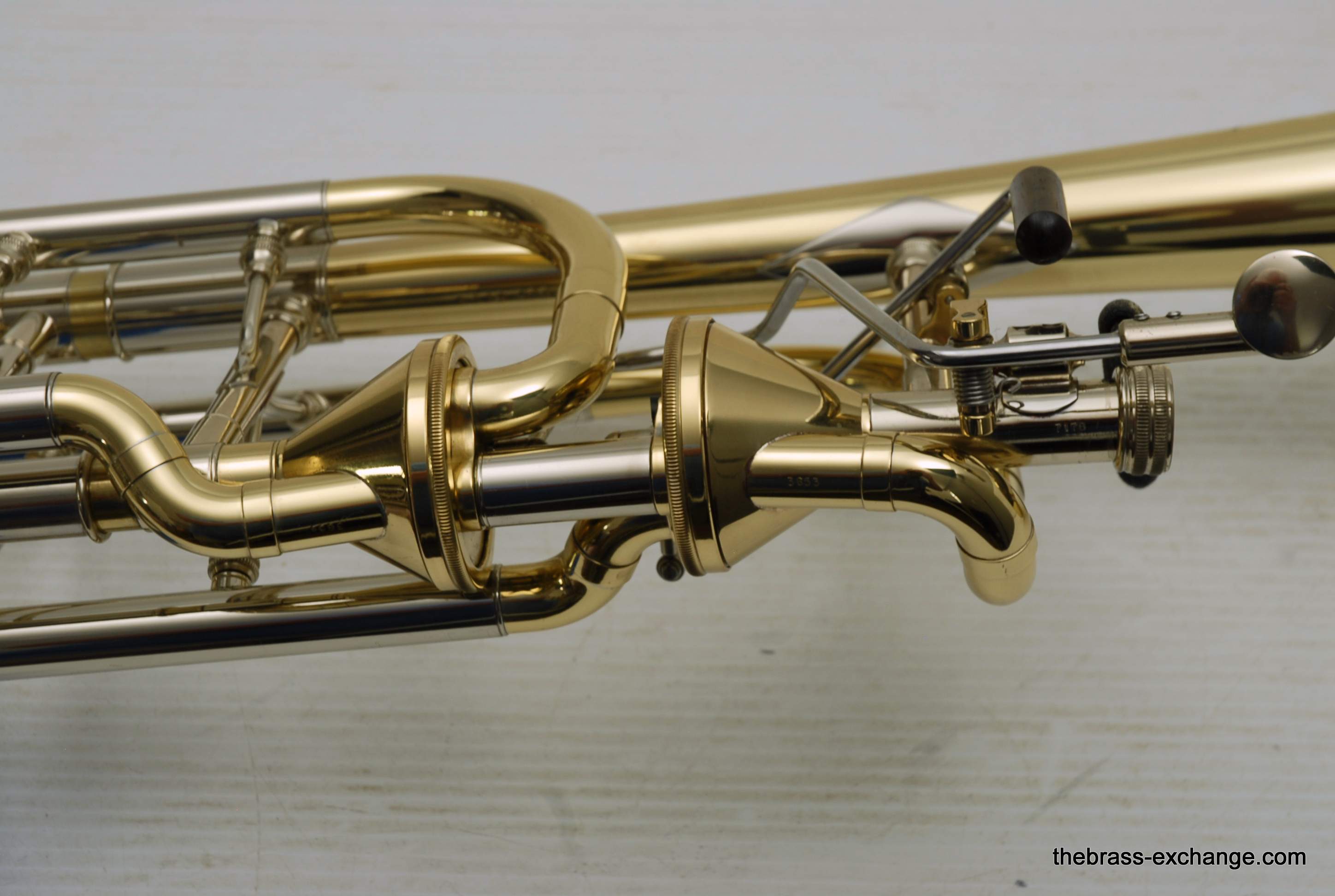 S.E. Shires Custom Bass Trombone, Made in Massachusetts. Pre-owned Axial Flow Independent Bass Bb/F/Gb/D tuning. Has TII 7YLW yellow brass lighweight with 9.5" flare, standard weight B62 bass trombone slide with one removable leadpipe. Factory intalled thumb bar, adjustable and removable. This is a fantastic conditon Bass. Never damaged or repaired. A factory new Shires bass today is in the $6500 price range with a 6-9 month wait. This one is as good as new and is available for immediate delivery. Minor lacquer wear on handslide grip areas. Otherwise a near perfect condition instrument. We are an authorized S.E. Shires dealer and know that this one is up to par. No defects, or flaws, it is not a B-stock, just slighltly used, pre-owned, single owner. Comes with a premium Italian made Marco Magi NN Series Bass Case, Super durable, protection, and very comfortable back pack straps. It is a light case, about the same as Marcus Bonna. However, we have a new Shires Marcus Bonna in Stock and will substitute for an an addtiional $300, or if you don't want a case at all, take off $250 from the listing price. Please call to order.