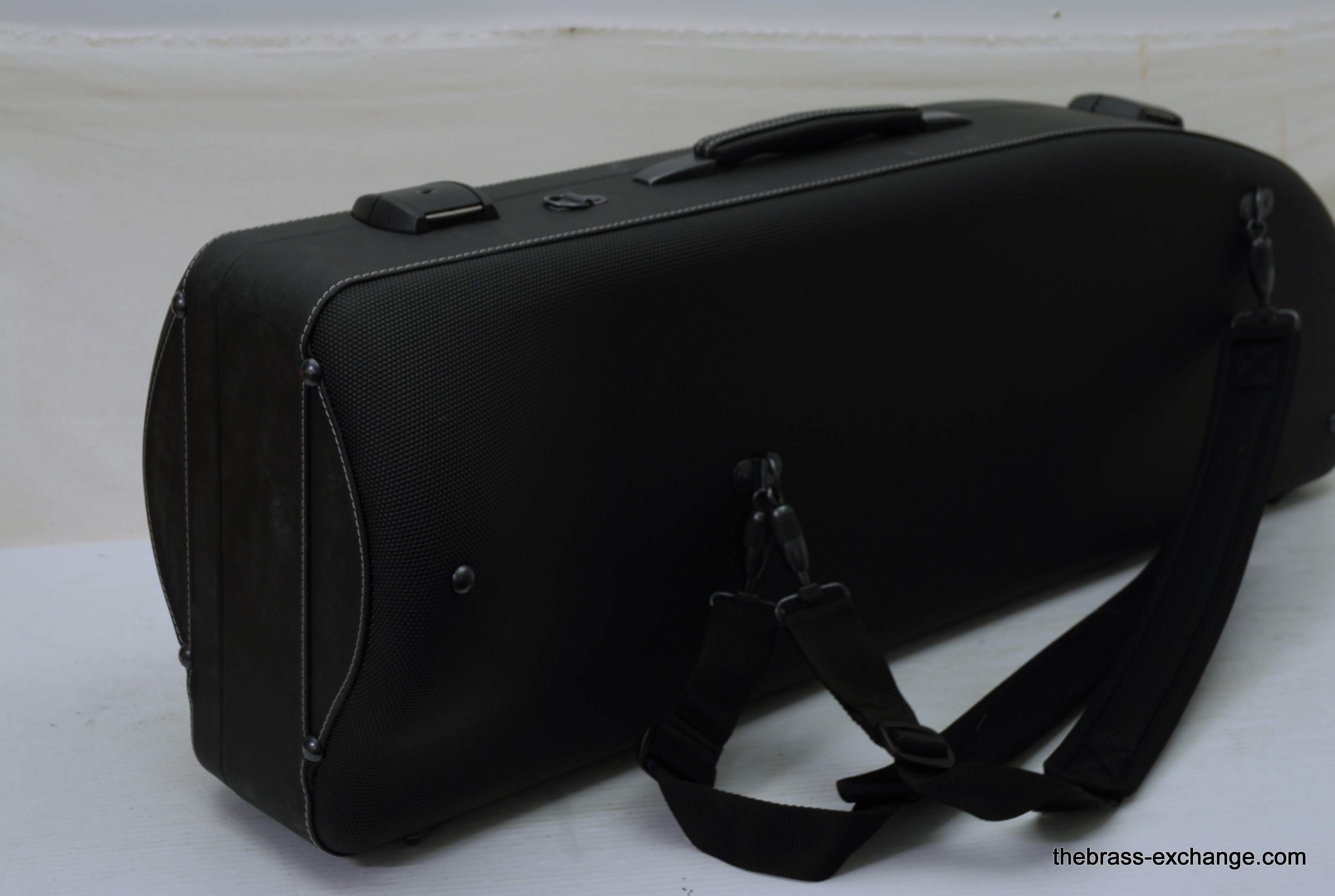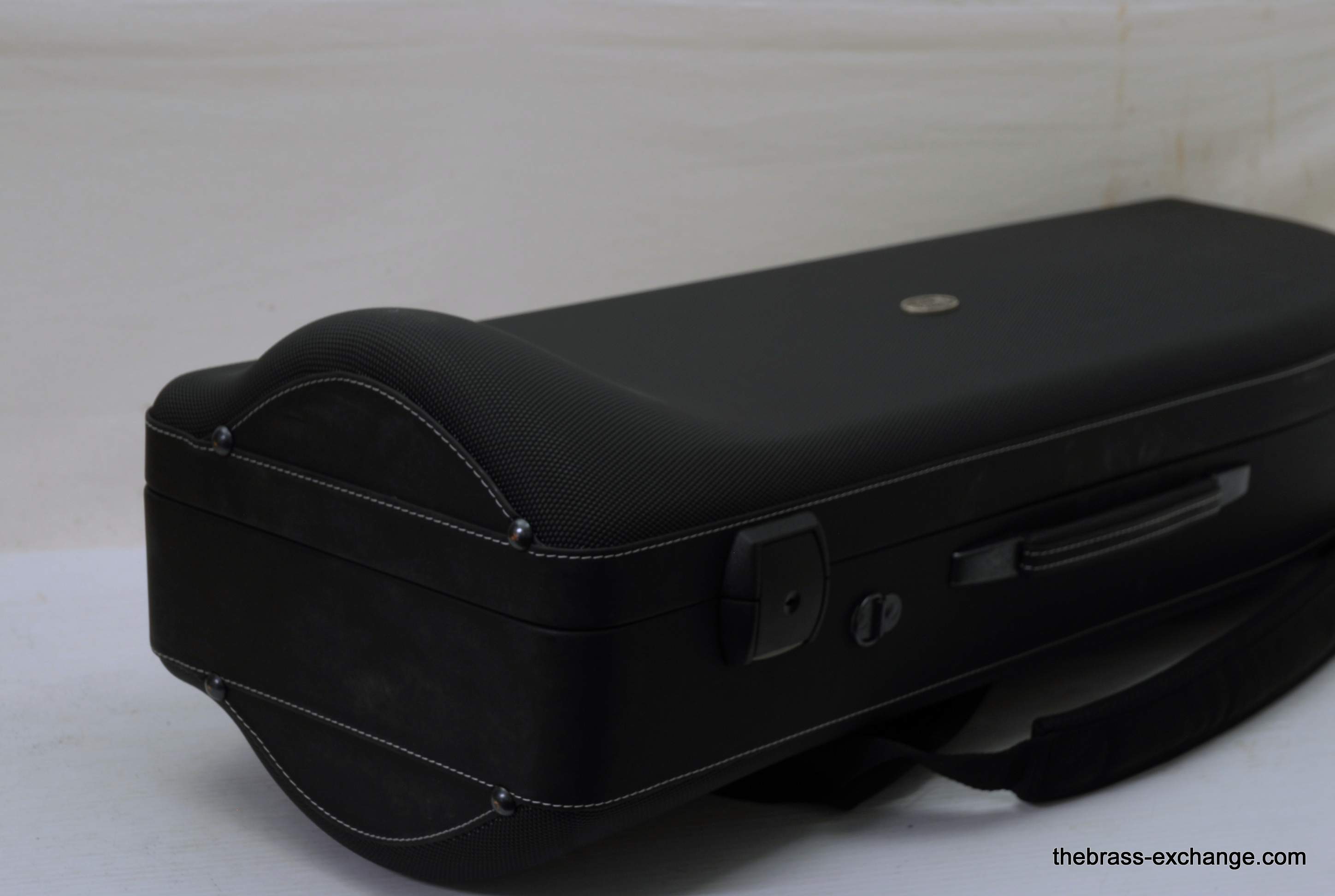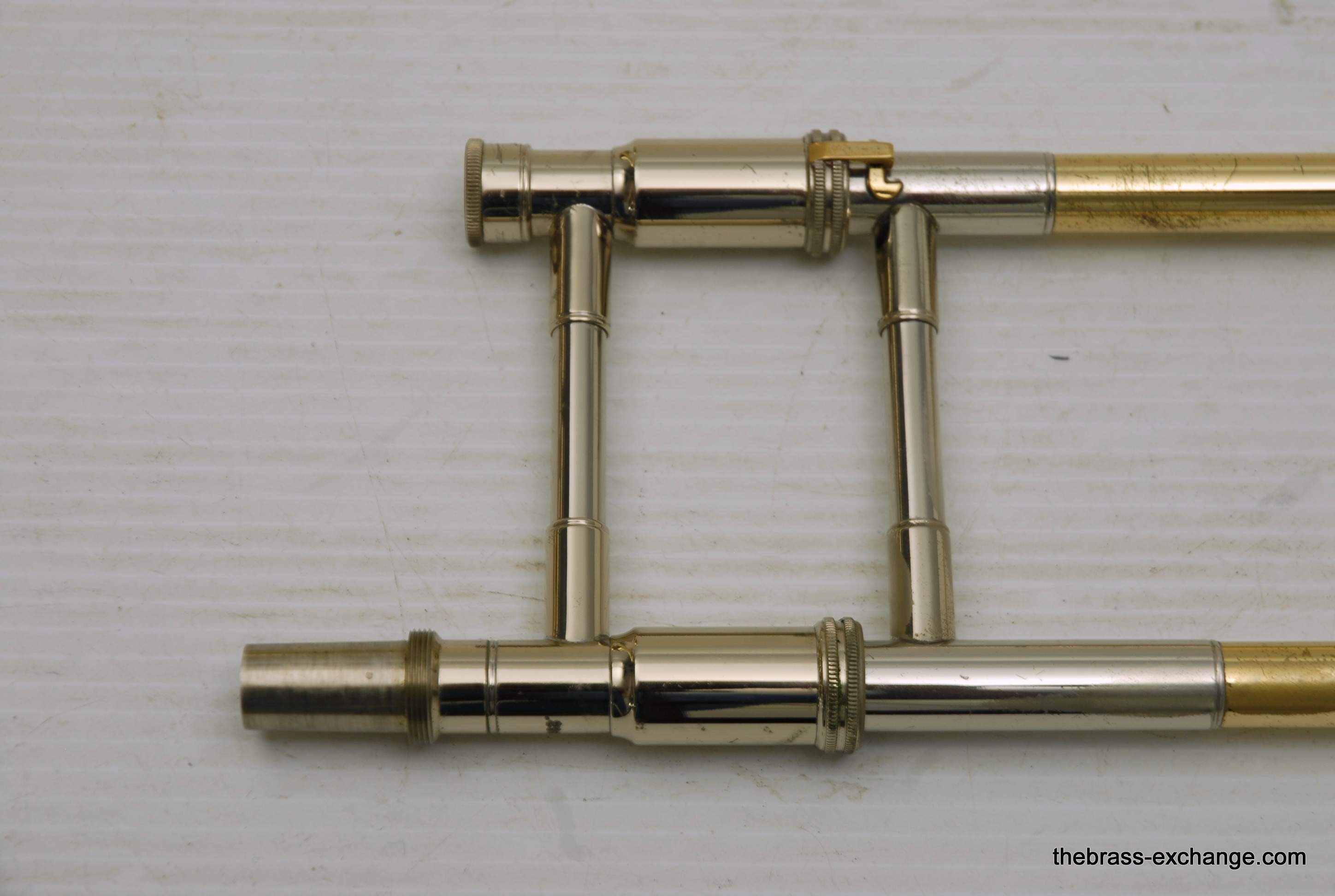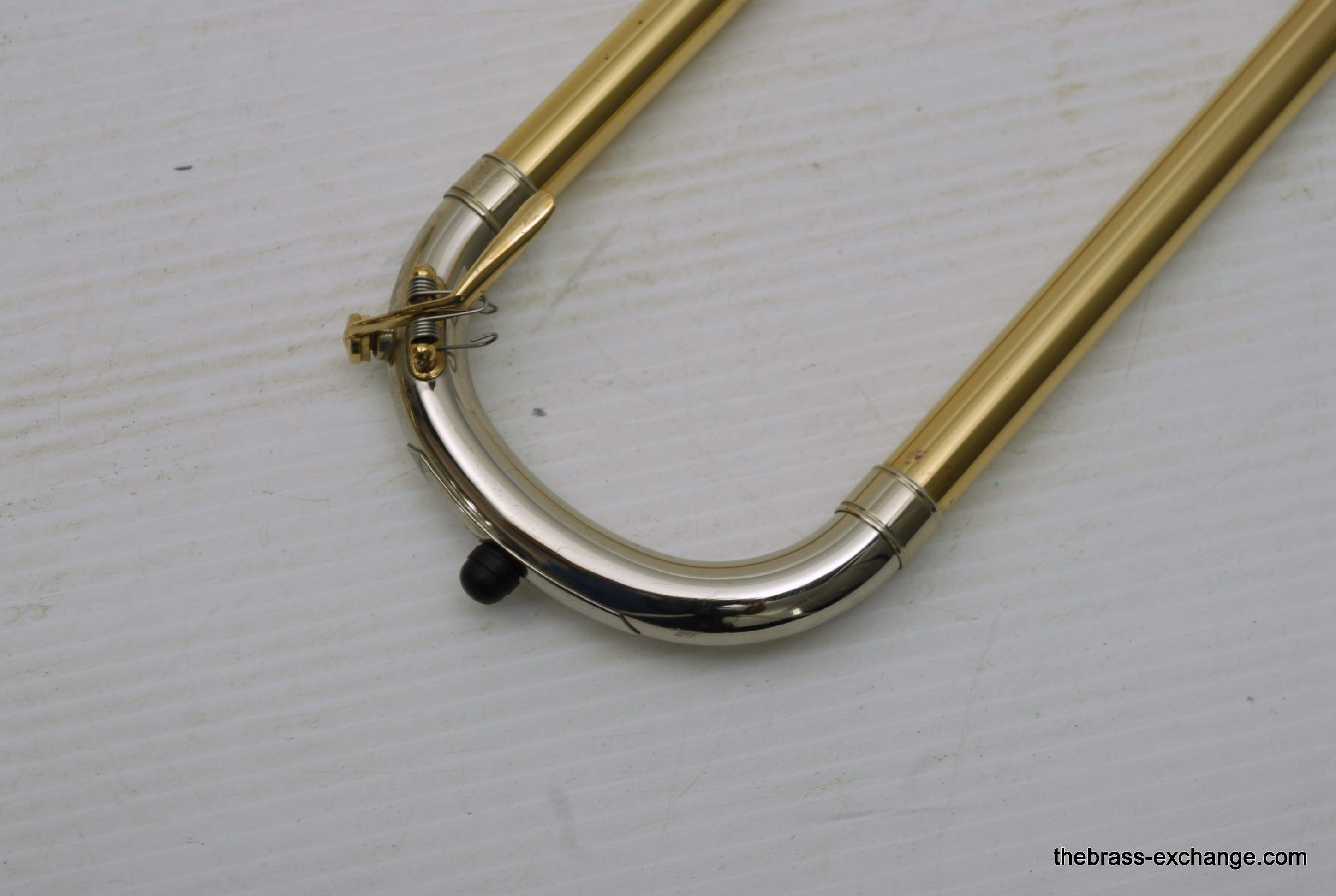 S.E. Shires Custom Bass Trombone, Made in Massachusetts. Pre-owned Axial Flow Independent Bass Bb/F/Gb/D tuning. Has TII 7YLW yellow brass lighweight with 9.5" flare, standard weight B62 bass trombone slide with one removable leadpipe. Factory intalled thumb bar, adjustable and removable. This is a fantastic conditon Bass. Never damaged or repaired. A factory new Shires bass today is in the $6500 price range with a 6-9 month wait. This one is as good as new and is available for immediate delivery. Minor lacquer wear on handslide grip areas. Otherwise a near perfect condition instrument. We are an authorized S.E. Shires dealer and know that this one is up to par. No defects, or flaws, it is not a B-stock, just slighltly used, pre-owned, single owner. Comes with a premium Italian made Marco Magi NN Series Bass Case, Super durable, protection, and very comfortable back pack straps. It is a light case, about the same as Marcus Bonna. However, we have a new Shires Marcus Bonna in Stock and will substitute for an an addtiional $300, or if you don't want a case at all, take off $250 from the listing price. Please call to order.