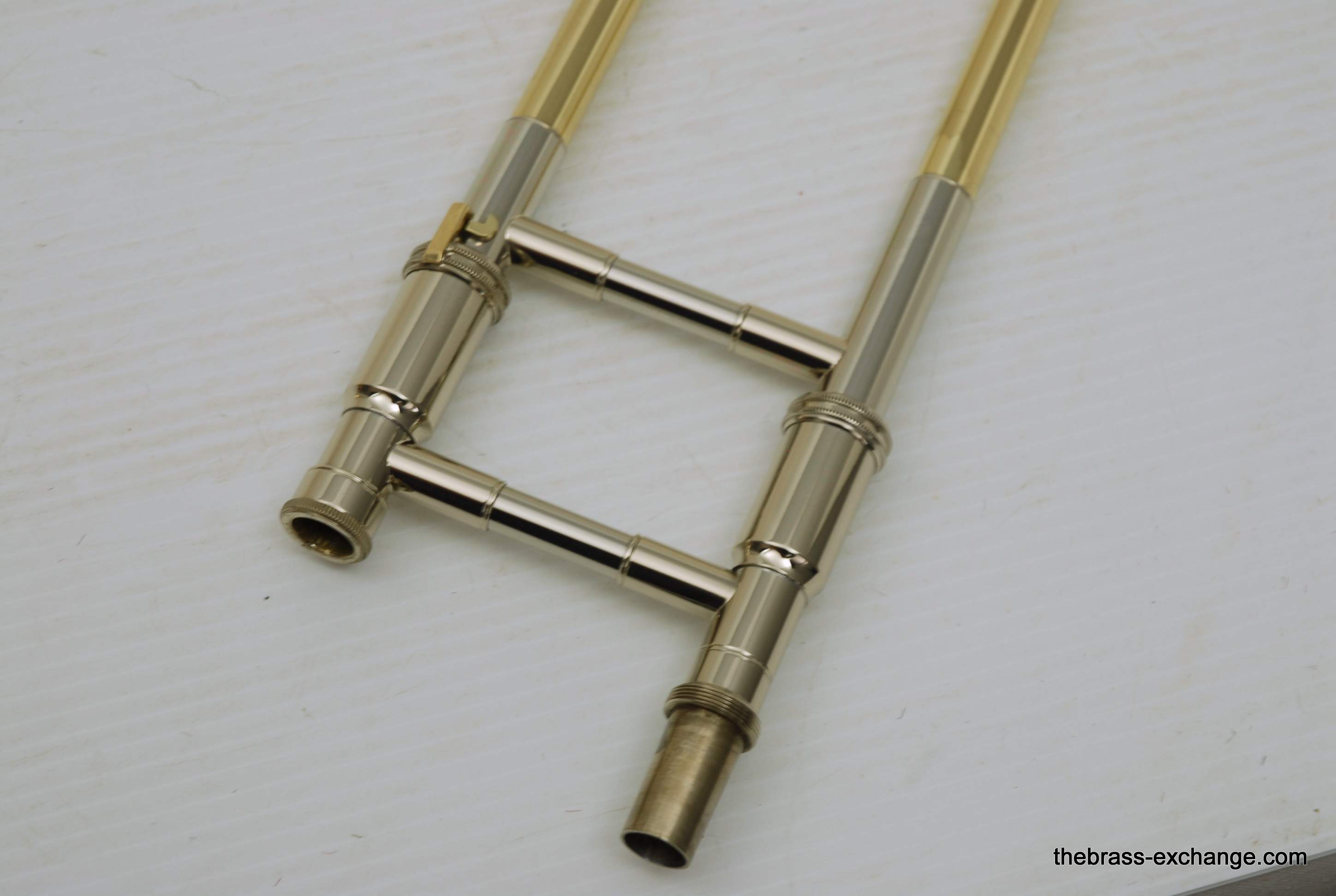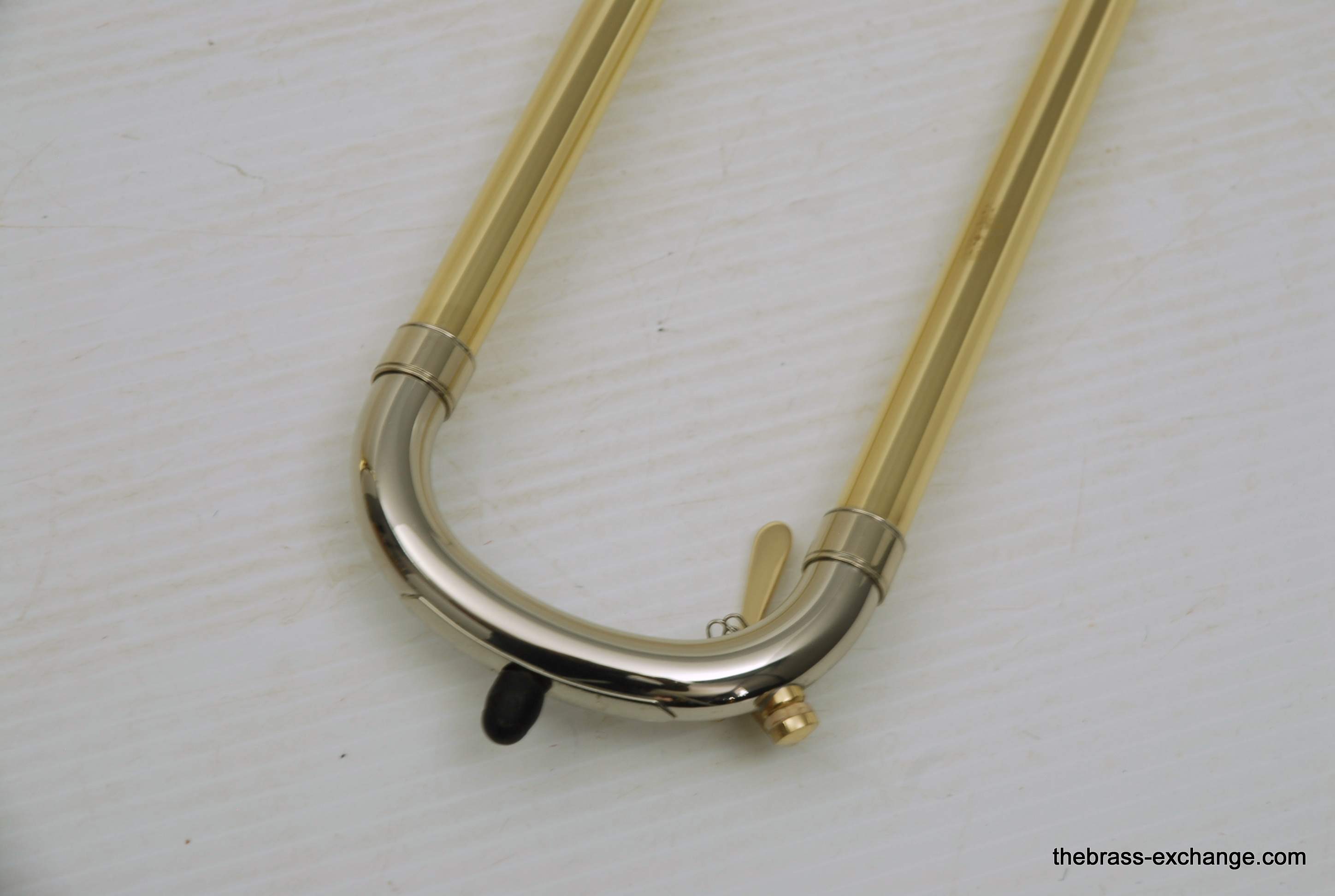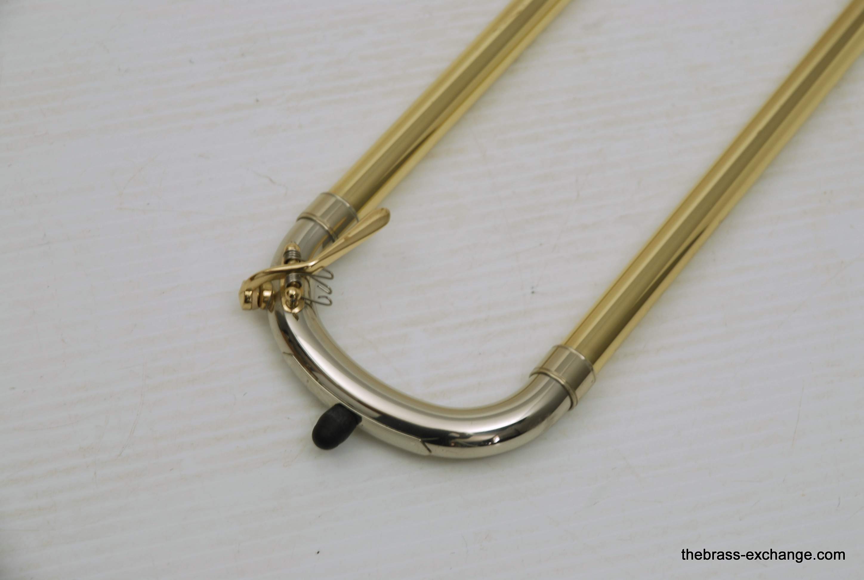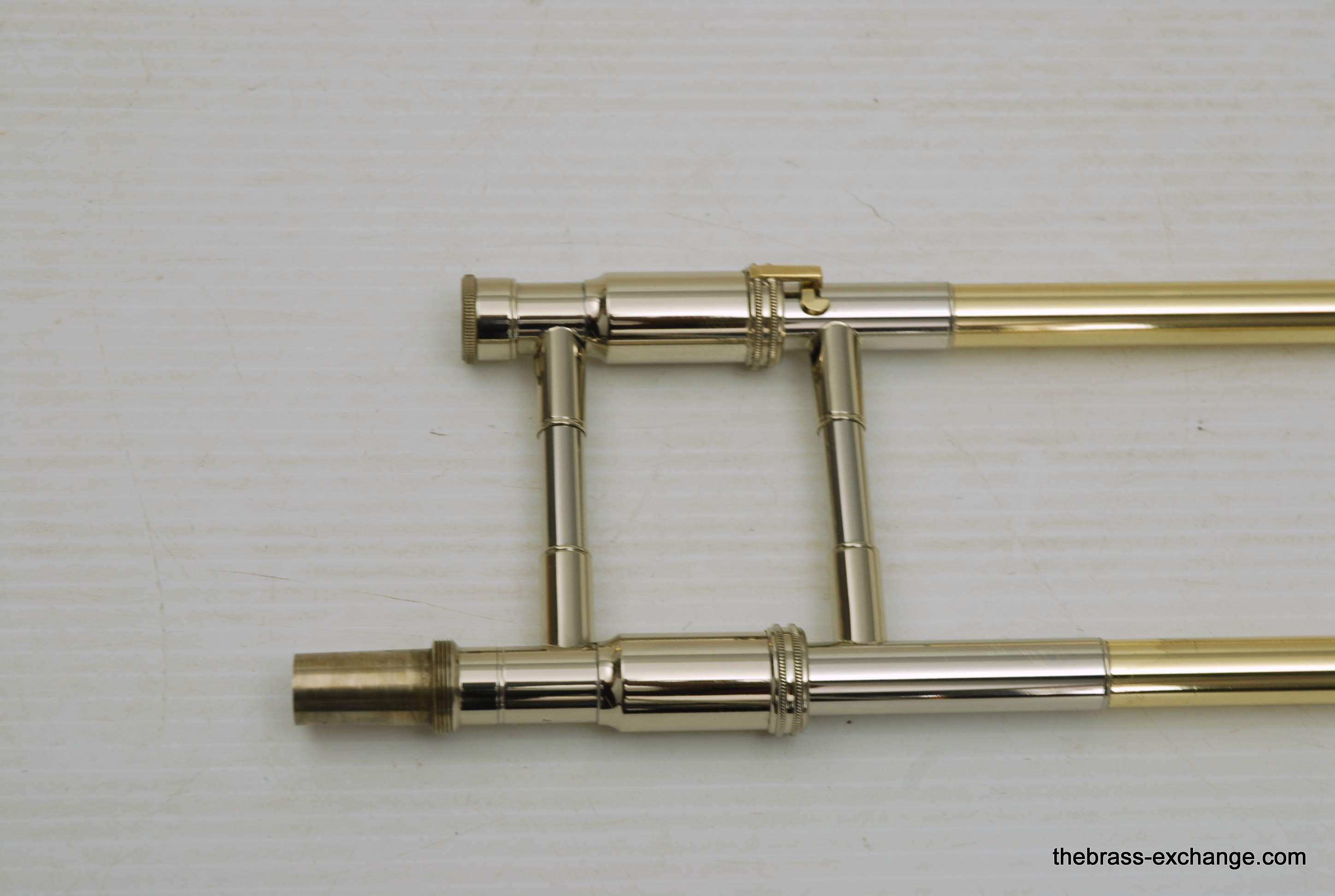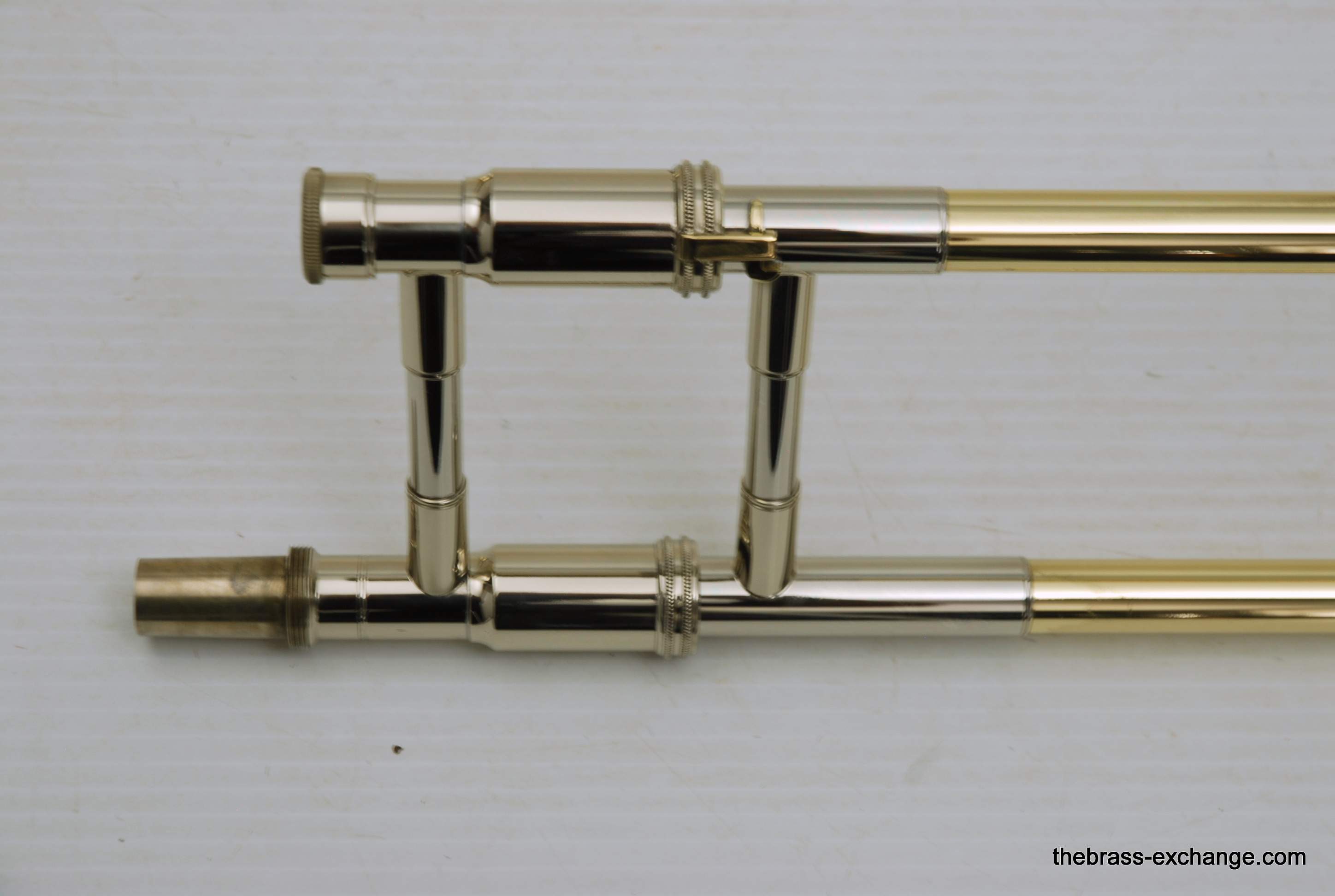 S.E. Shires Handlside T47. This is the standard width large bore tenor .547 handslide. Has less width than the TW47 model. Many players that use this model feel that it plays easier in the upper register, making it ideal for first parts. Is a Boston make custom standard weight slide. Is perfectly straight, and has had full shop service including chemical bath and touch up lacquer on the grip area. Looks fantastic and plays perfectly. Includes one #2 leadpipe. A factory new S.E. Shires slide today is $1390. This one is as good as new. Save Now! In-stock for immediate delivery.