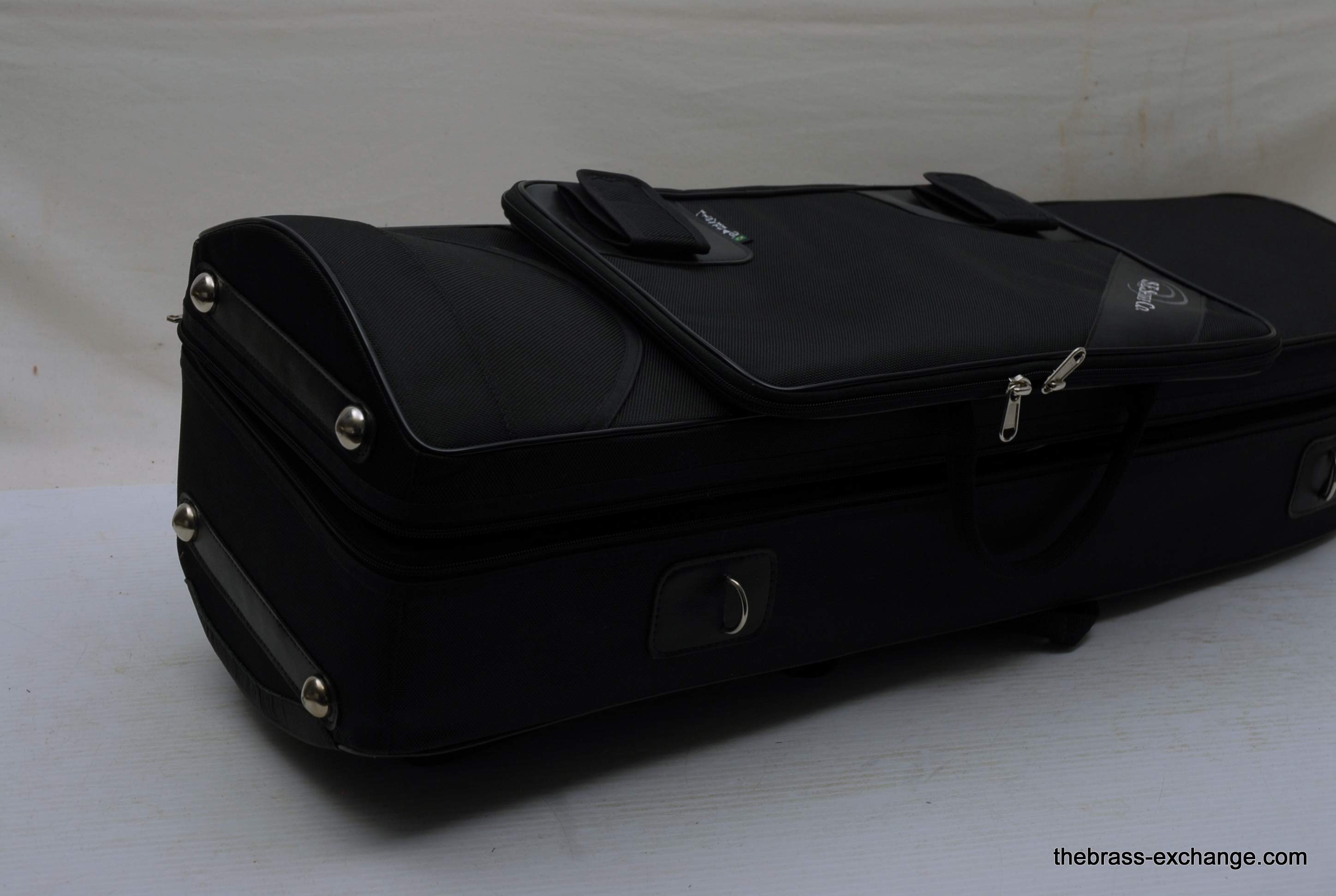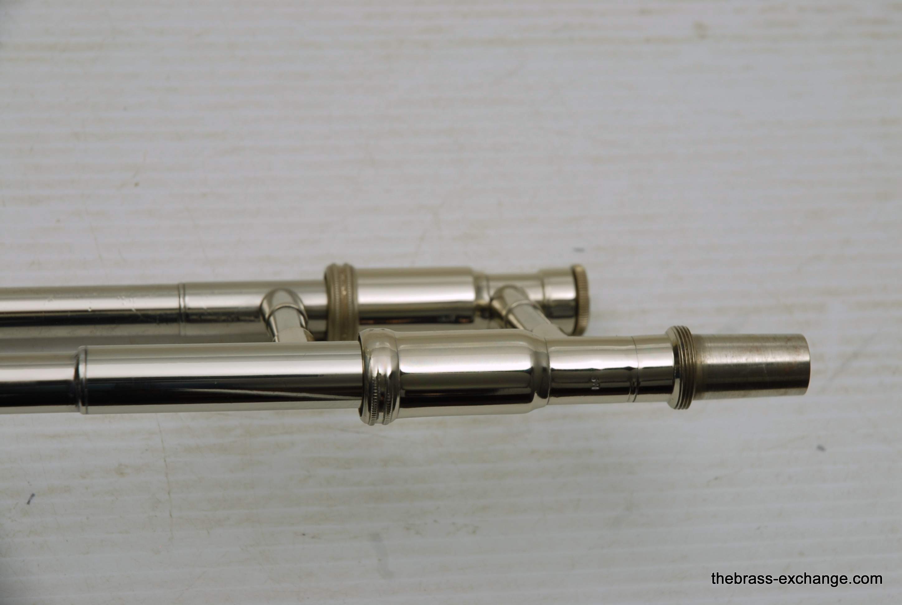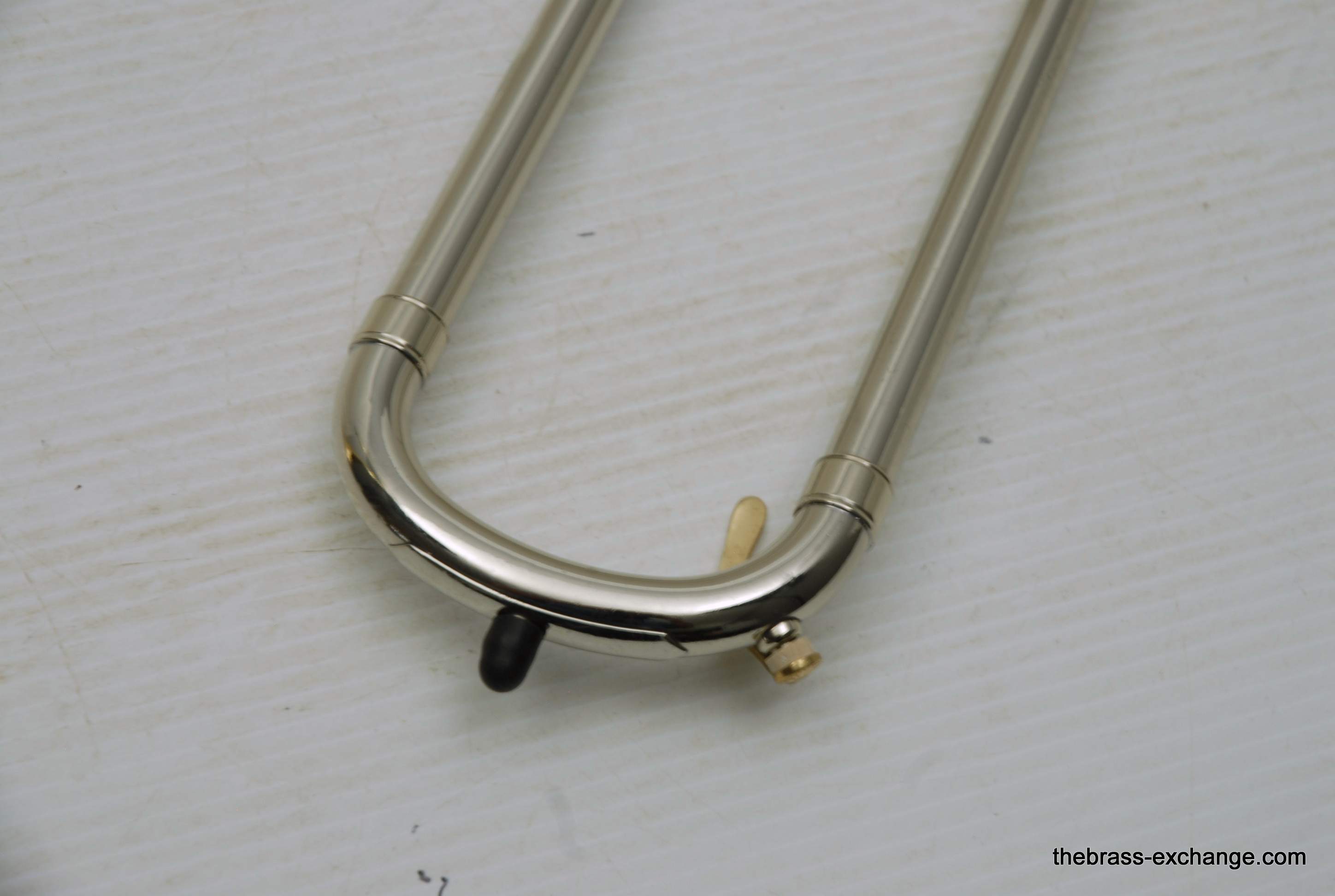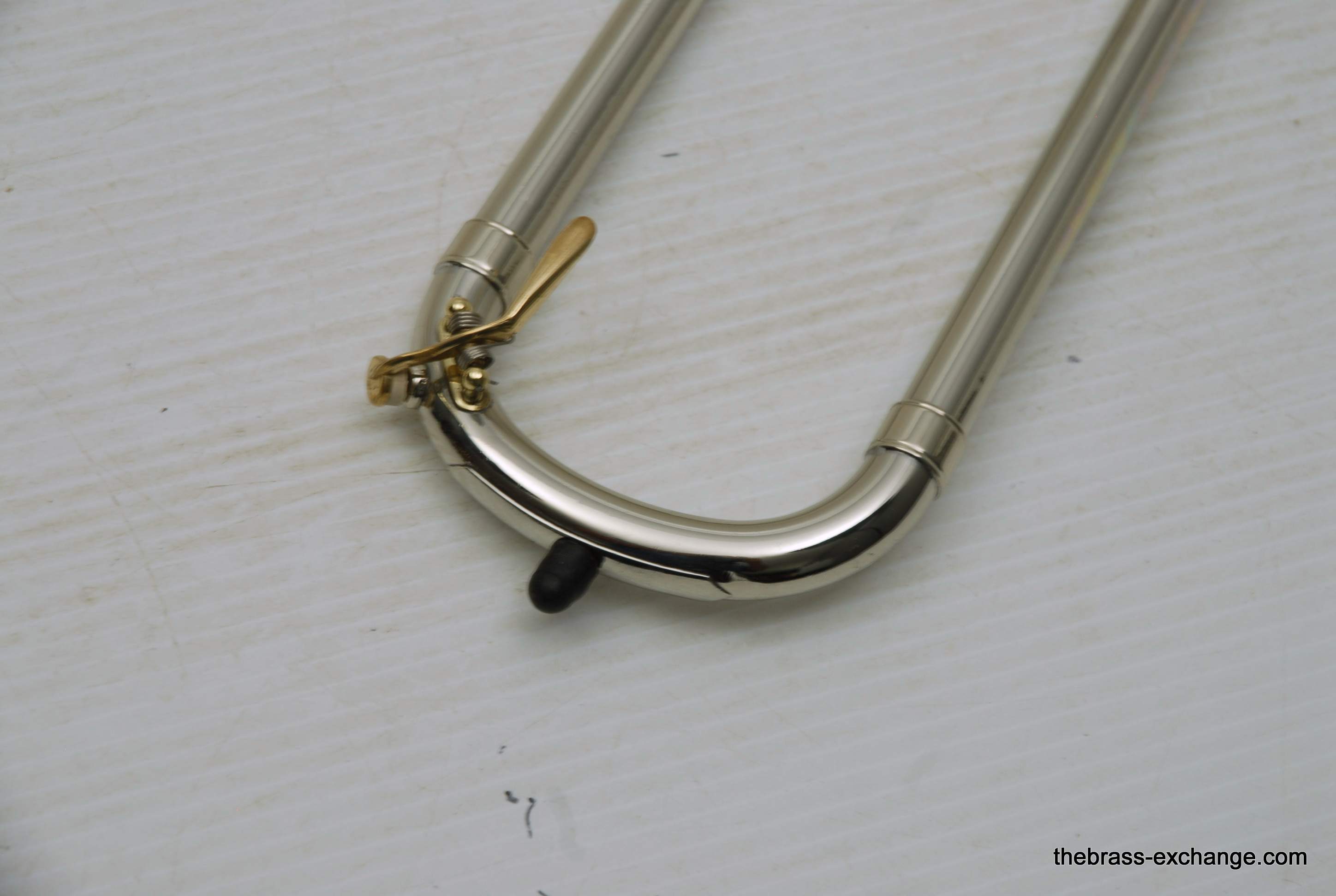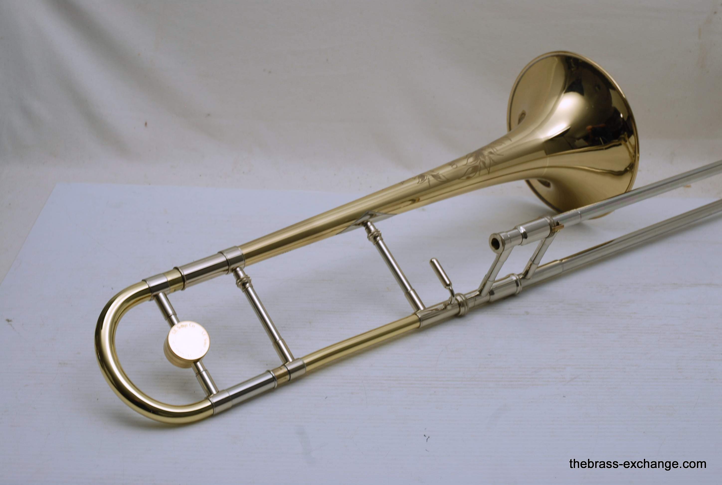 S.E. Shires Custom Series Medium Bore Tenor.  Has .525 bore T25N Standard weight nickel silver hand slide, reconditioned with new lacquer.  Has 8.5" Light Weight  Yellow Brass Bell 7YLW.  Removable neck, balance weight and tuning slide are new.  Includes two removable leadpipes, one for small shank receiver, one for large shank. Also includes new Marcus Bonna S.E. Shires Logo Case.  If no case, take off $300.  In-stock for immediate delivery.