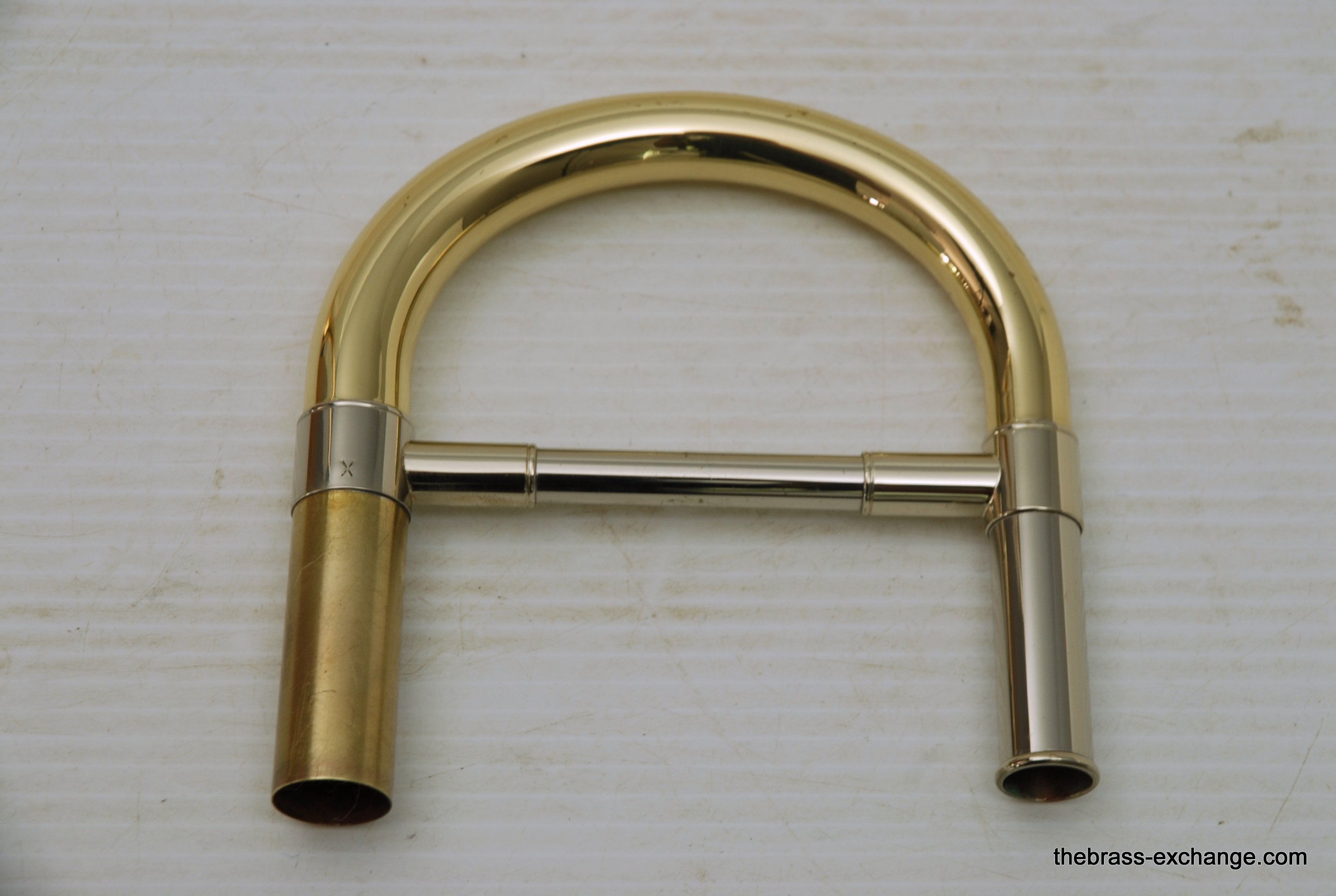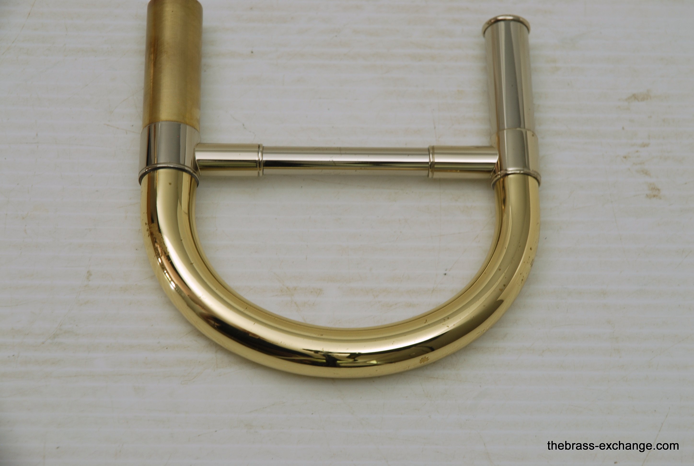 S.E. Shires Model X tuning slide for tenor trombone, yellow brass, with X taper design. This is a custom component made at the Boston, MA factory, showcasing the high standards of precision and craftsmanship that S.E. Shires is known for worldwide.