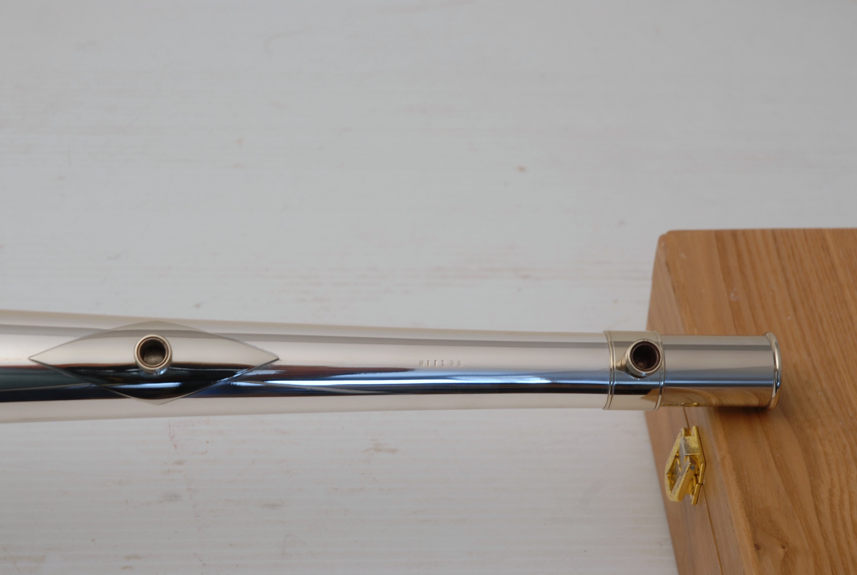 This item has been sold and is now featured here in our Archive of Sold Instruments as a reference for musicians considering a Shires sterling silver bell or researching BII taper options for bass trombone customization.