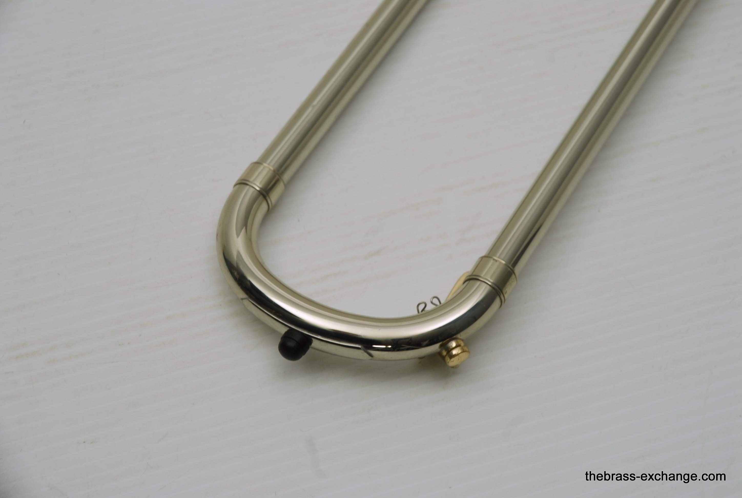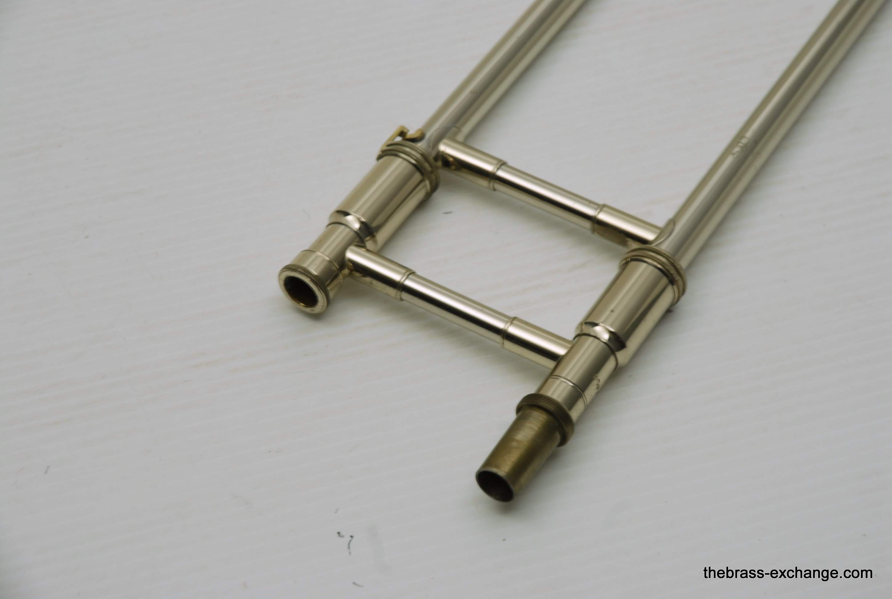 S.E. Shires Custom Series Tenor Trombone Hand Slide Model TB47NLW.  Lighweight Nickel Silver straight bore .547 with bass trombone end crook.  This is one of the slide options that you will see today on the Custom Vintage New York S.E. Shires Model.  This slide also pairs extremely well with gold brass tenor bells and is a personal favorite- I play one exactly like it.  Includes one removable leadpipe. Totally straight tubes, no inner slide plating defects, never dented or damaged, has some external lacquer wear, but not much.   Will have chem bath and once over prior to delivery after 1-03-2023