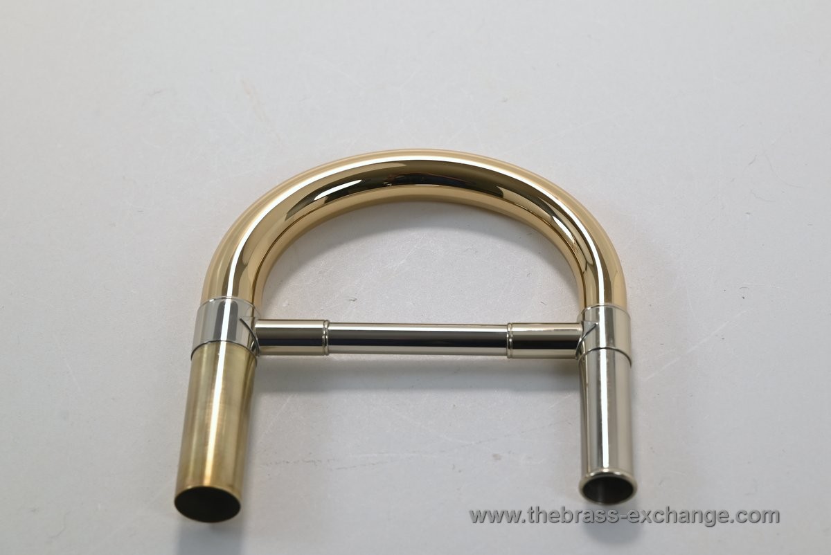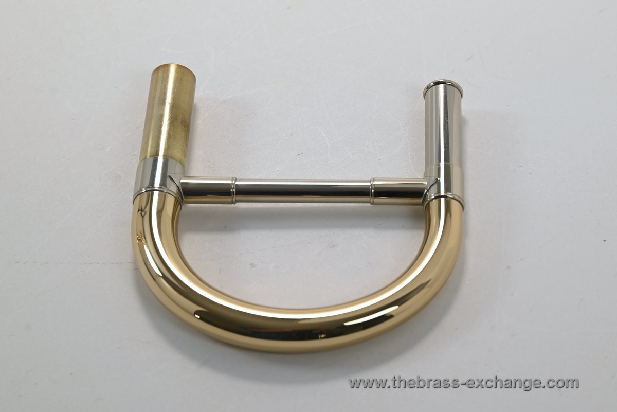 S.E. Shires Custom Series model TG tuning slide, crafted with gold brass drawn tubes. This is designed for large bore tenor trombones with F attachment or a straight neck pipe.