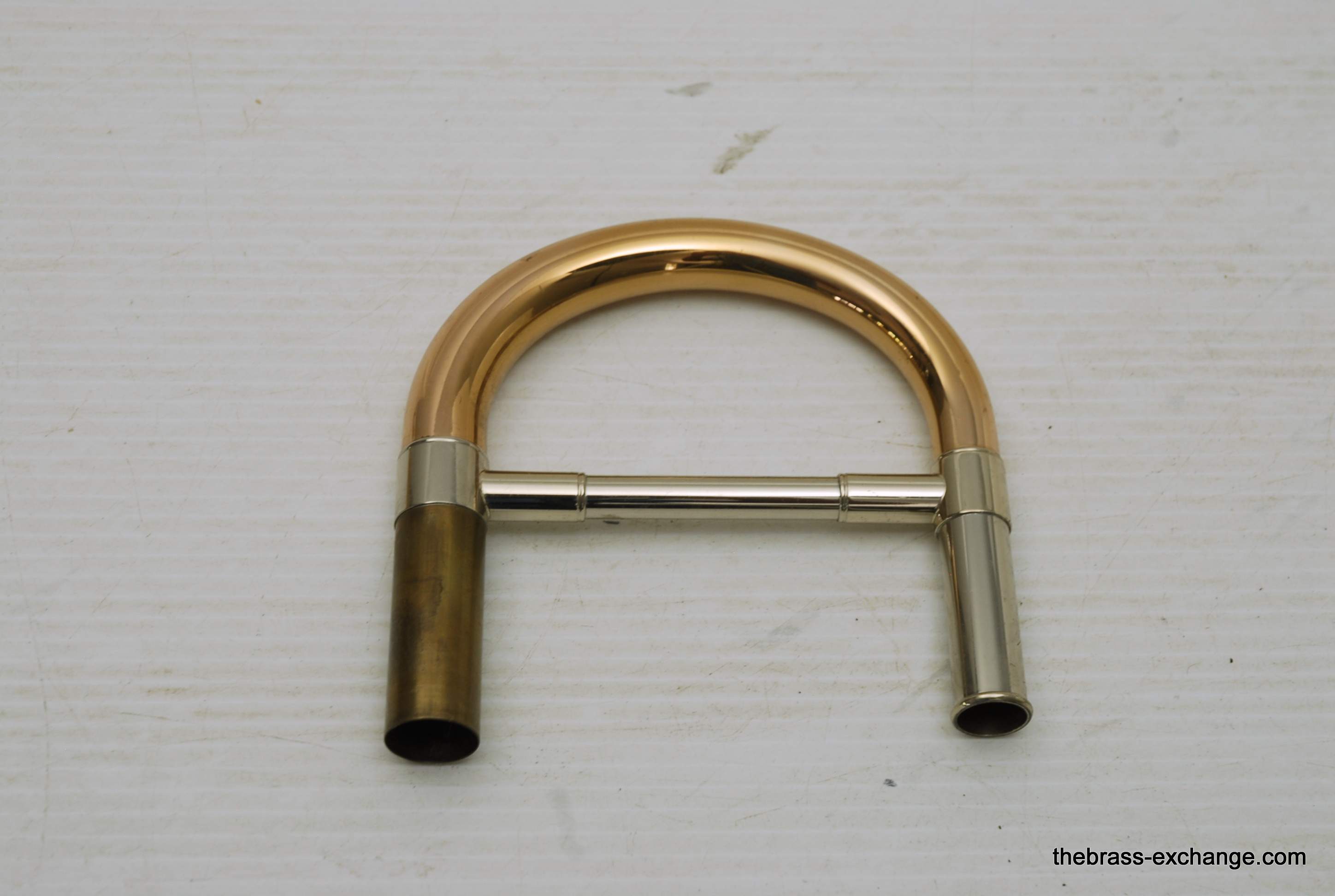 This S.E. Shires TG gold brass tuning slide was part of the Custom Series line, built with drawn tubes and a standard taper. It fits perfectly with all past and current Shires Custom Series tenor trombones, offering a slightly warmer tonal profile compared to yellow brass options.