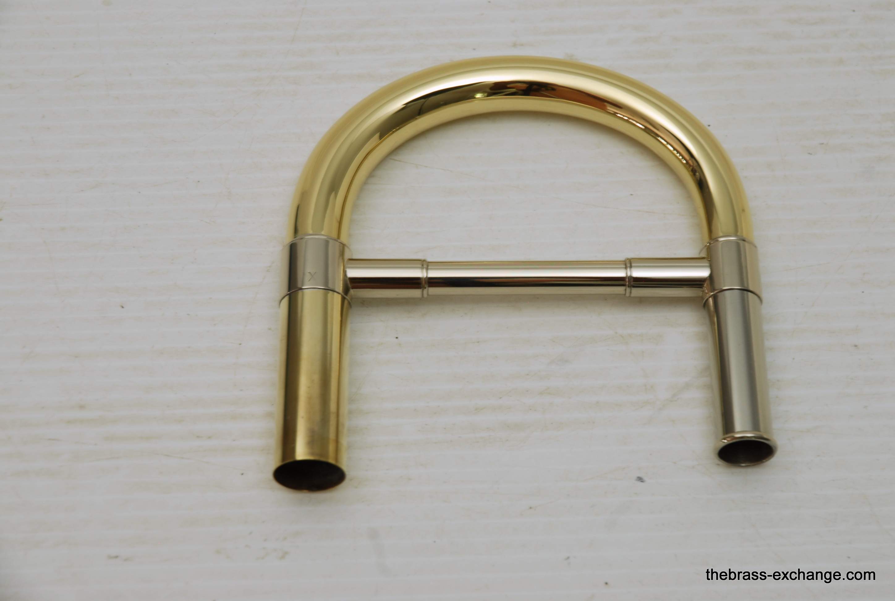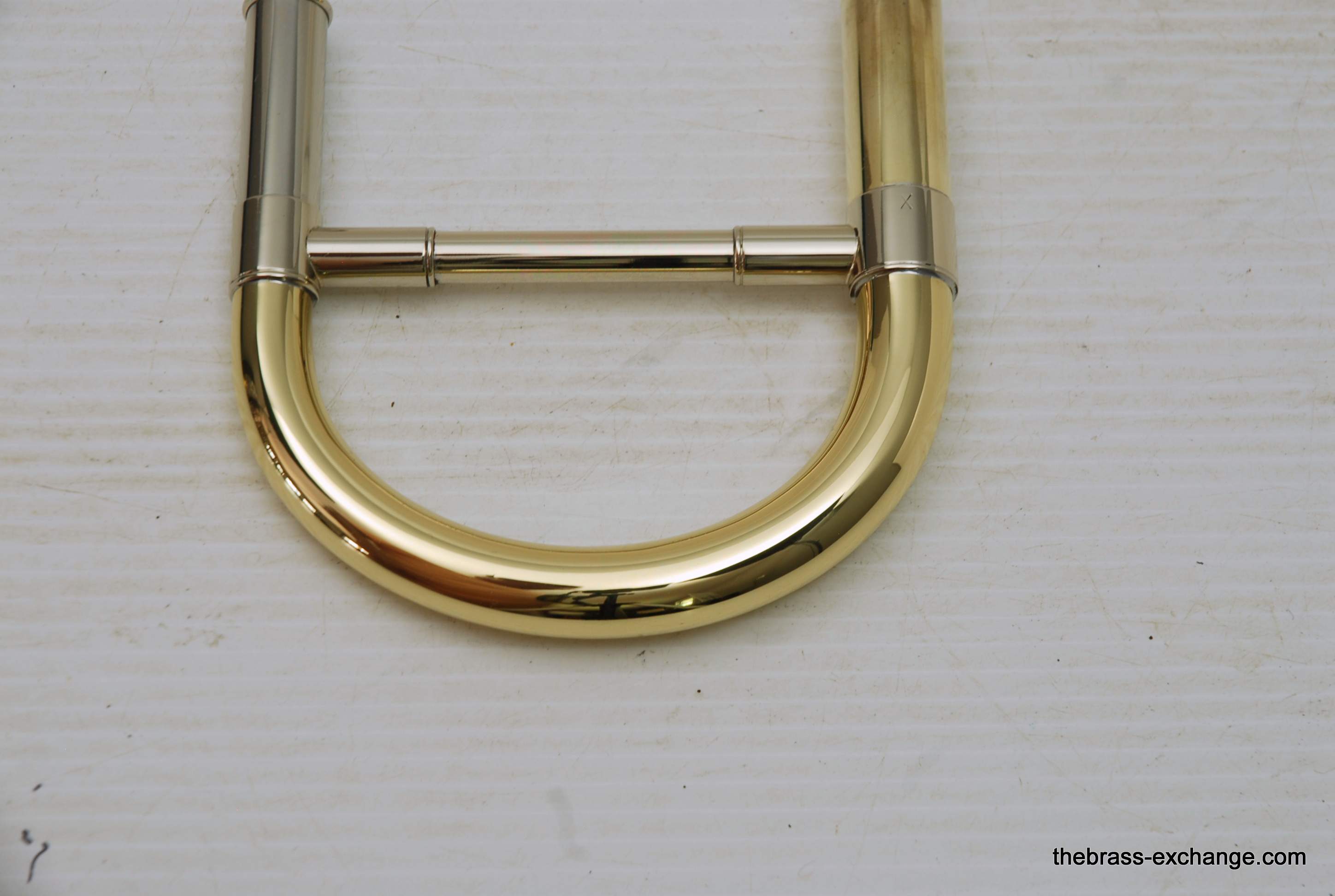 S.E. Shires Tenor Tuning Slide TYX.  Custom Series, yellow brass with X taper.  This is the preferred tenor tuning slide for Type II bells, Vintage NY model, or the Chicago Model.  However, some players like to use it with Type I bells also.  The main difference between this and the standard TY taper is the rate of taper from the large tube side to small tube side in the crook.  The X is a more rapid taper vs.  TY which is more gradual.  Players that use this model on TII bells report that it makes the bell come alive and adds just a little more magic to the sound.  This one has been sold.